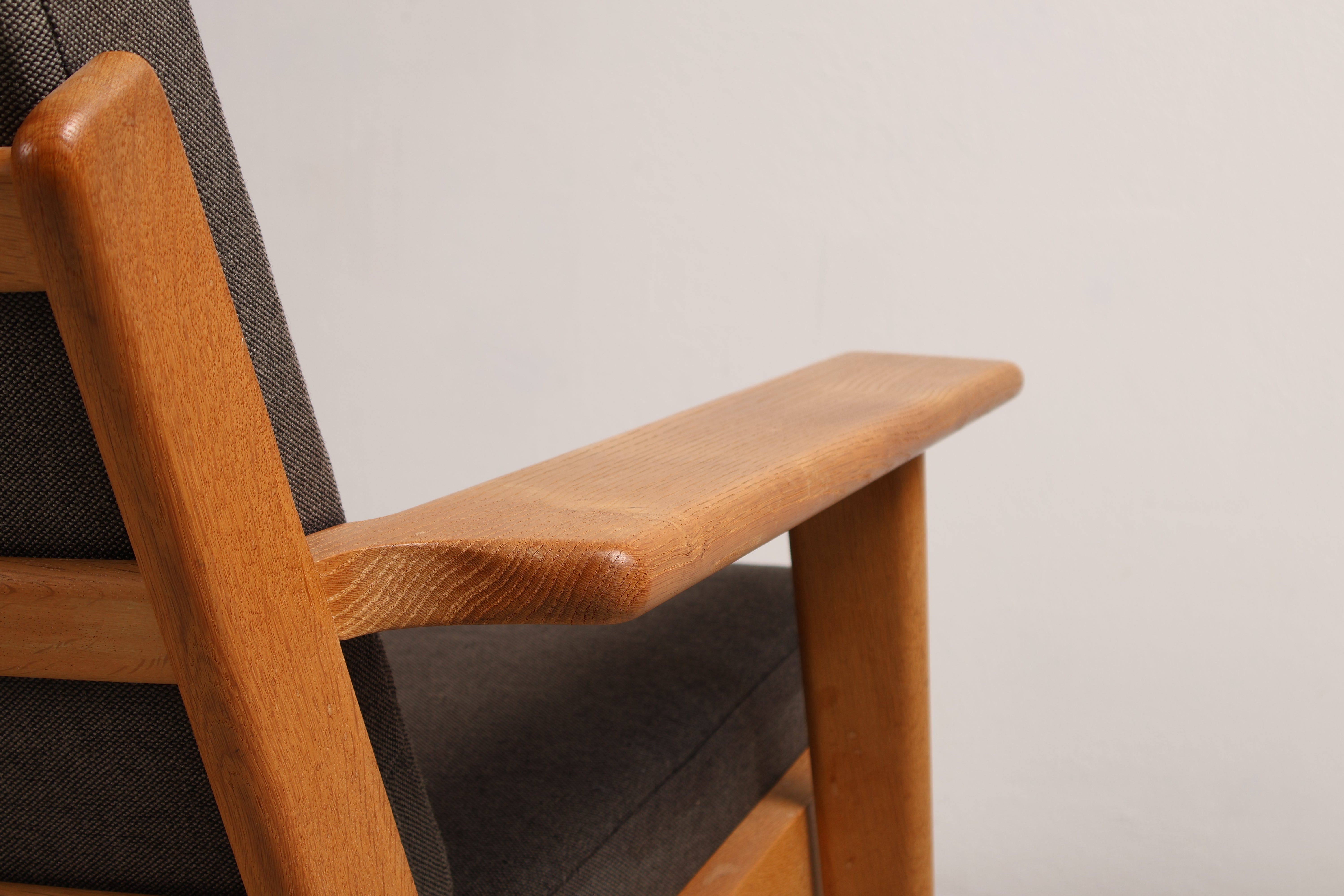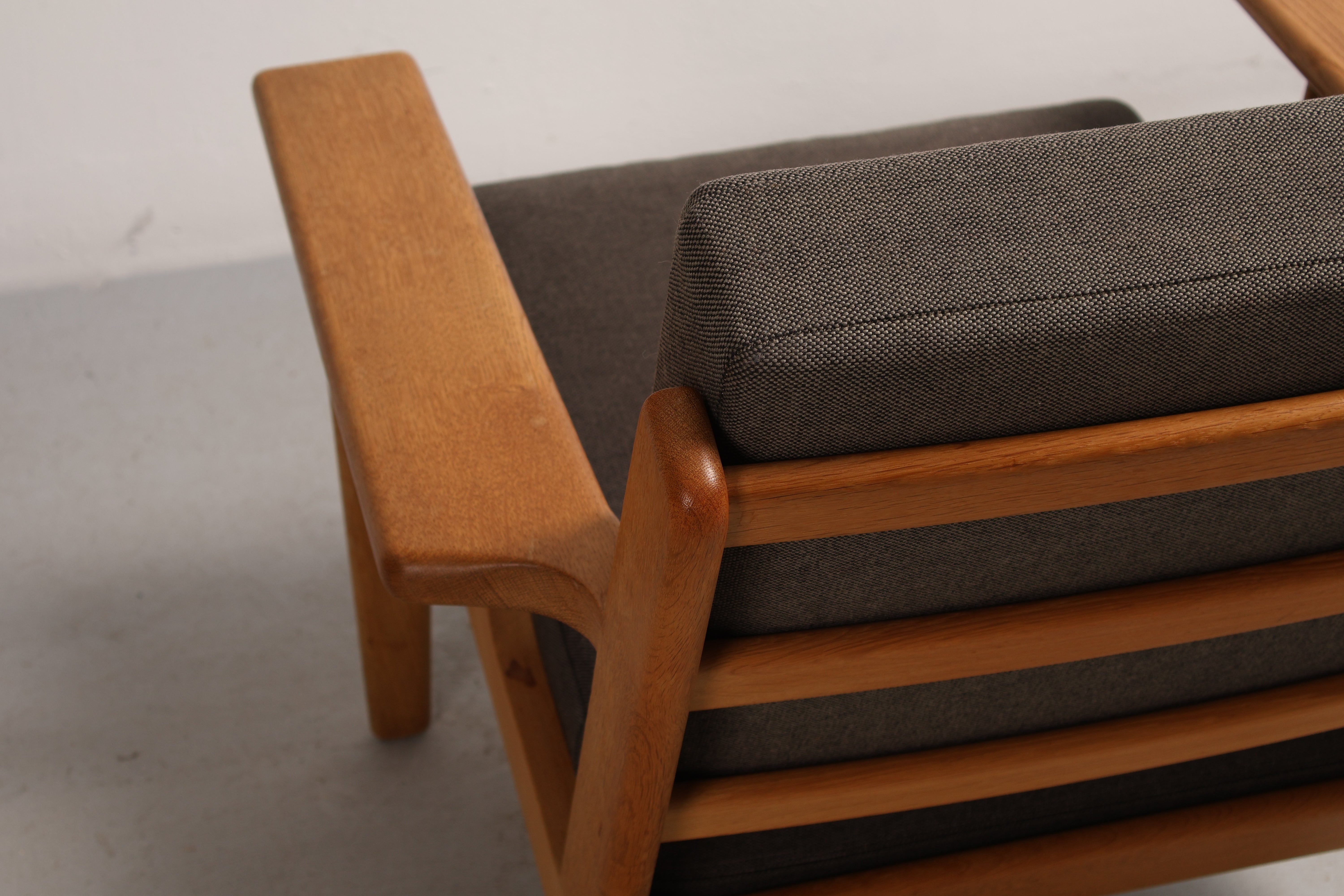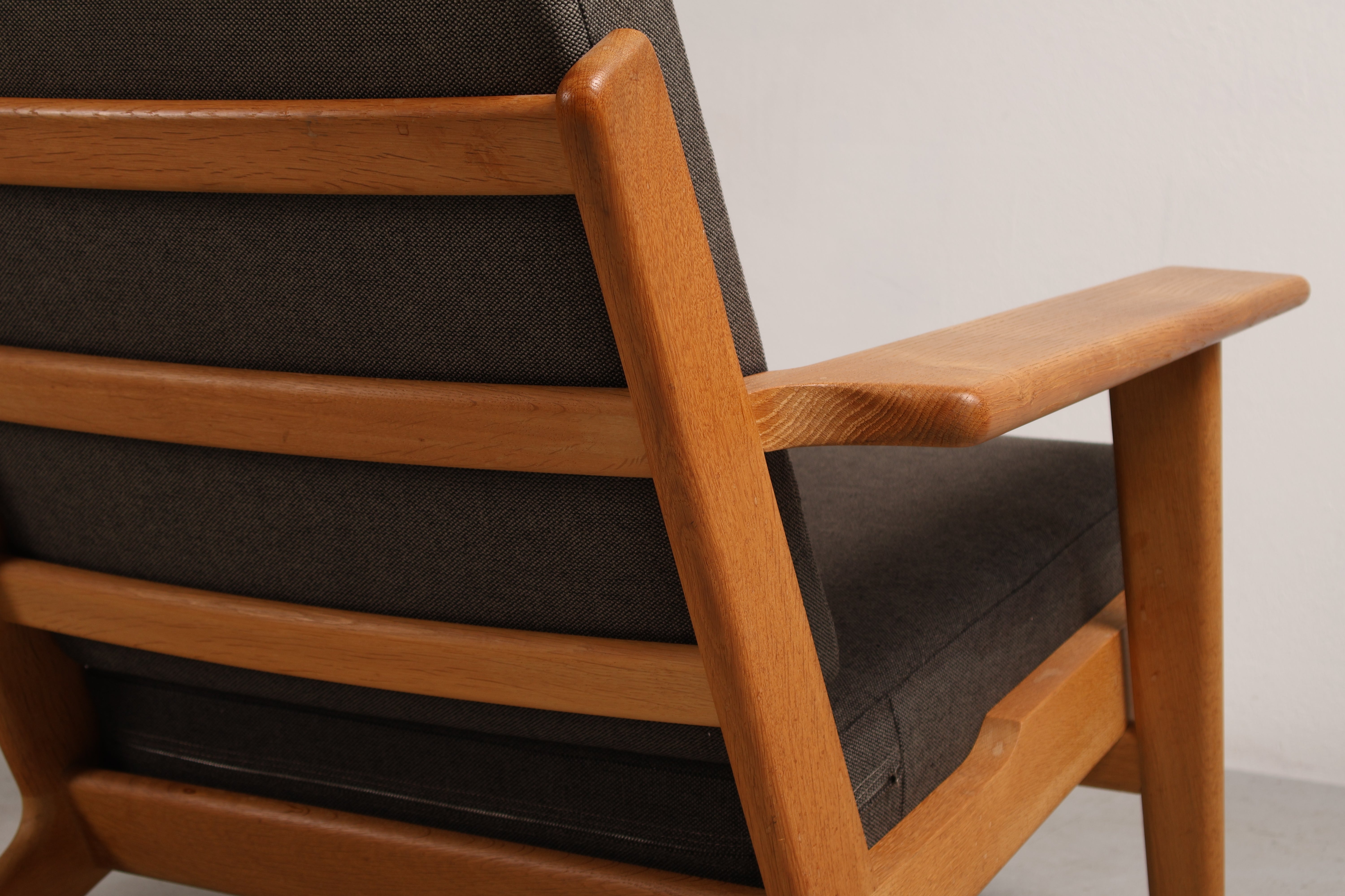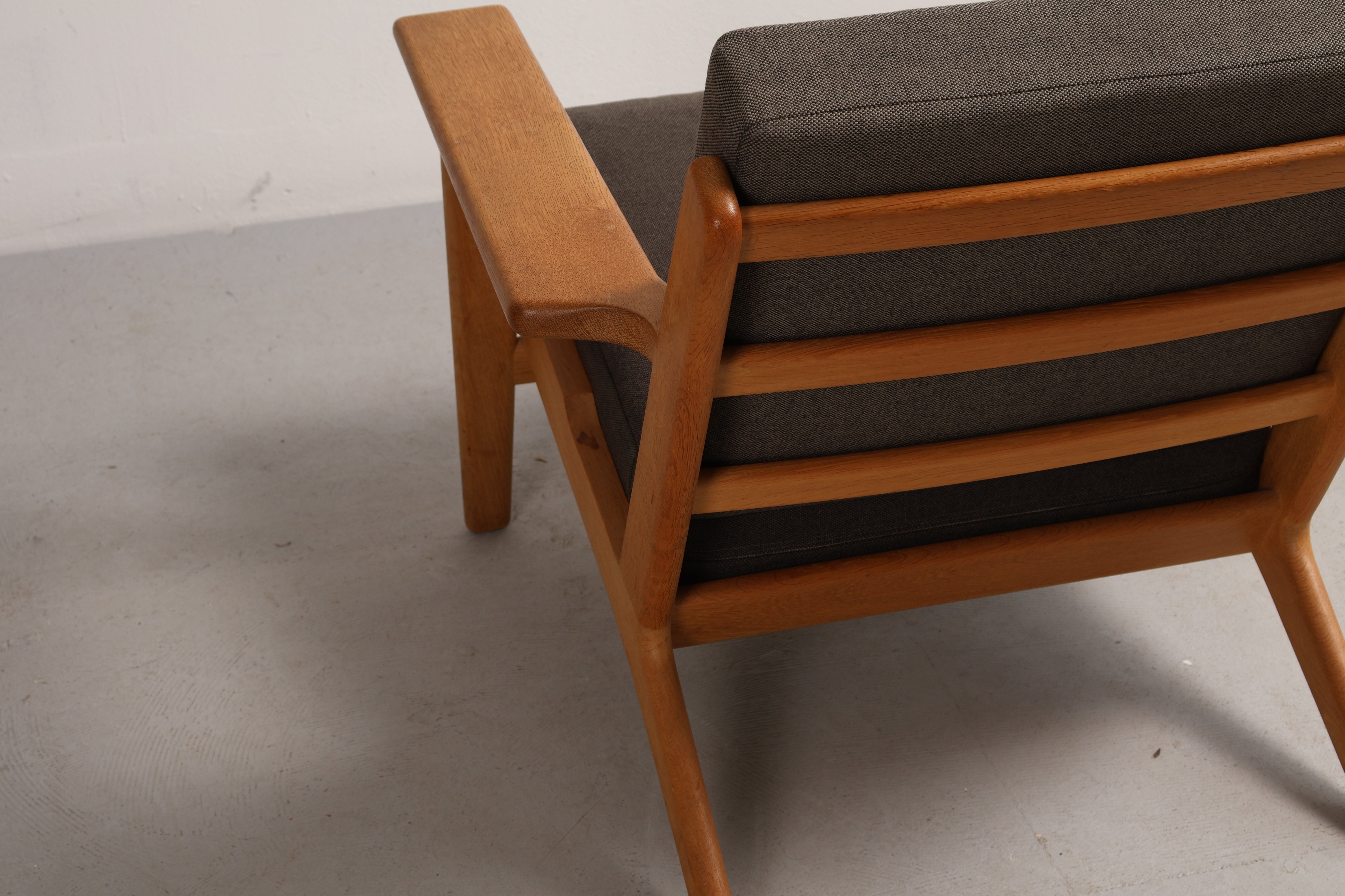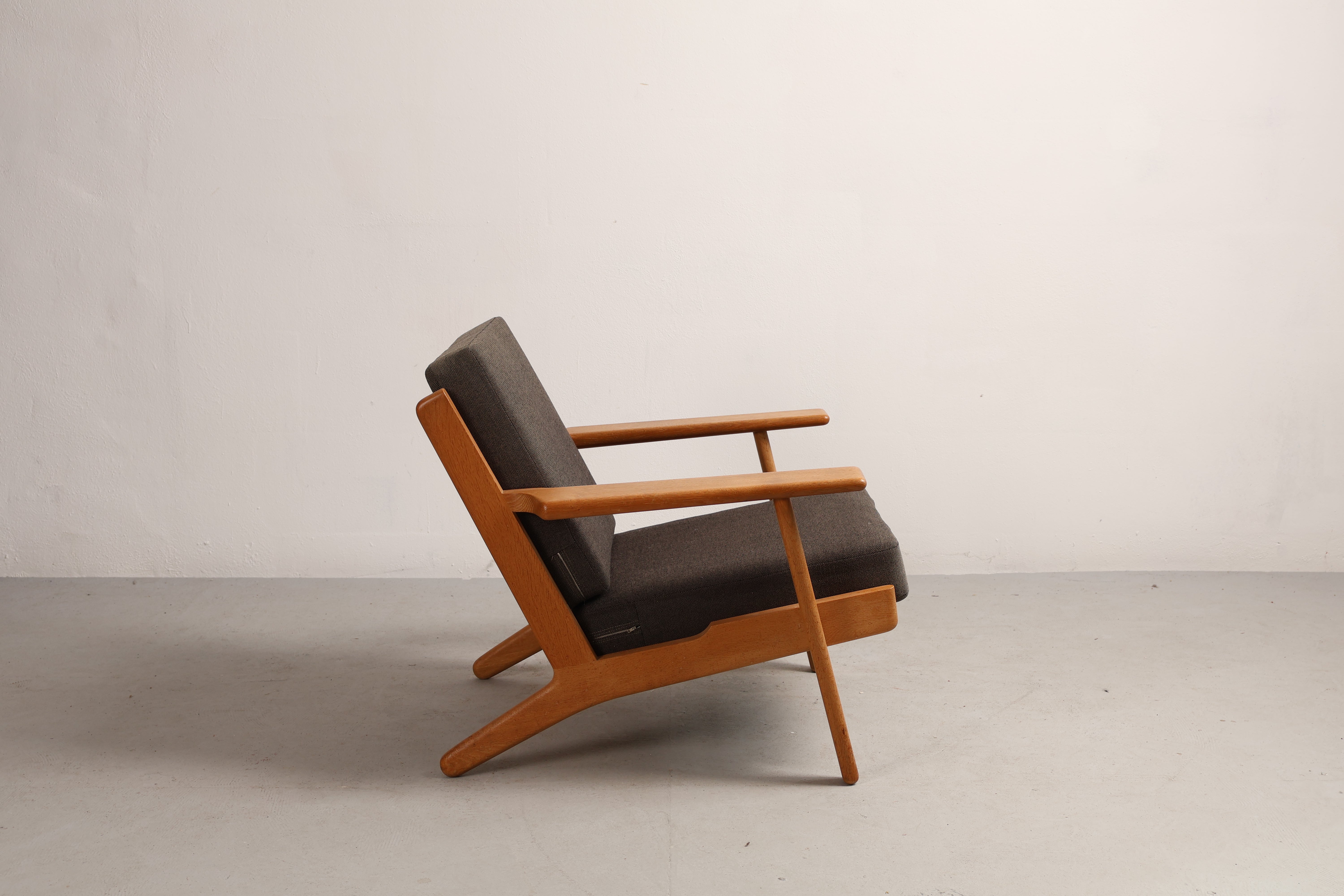 Sessel „GE 290“ aus den 60er-Jahren von Hans Wegner. Hergestellt in Dänemark. Gefertigt aus Eiche. Höhe 81 cm, Breite 75 cm, Tiefe 78 cm.