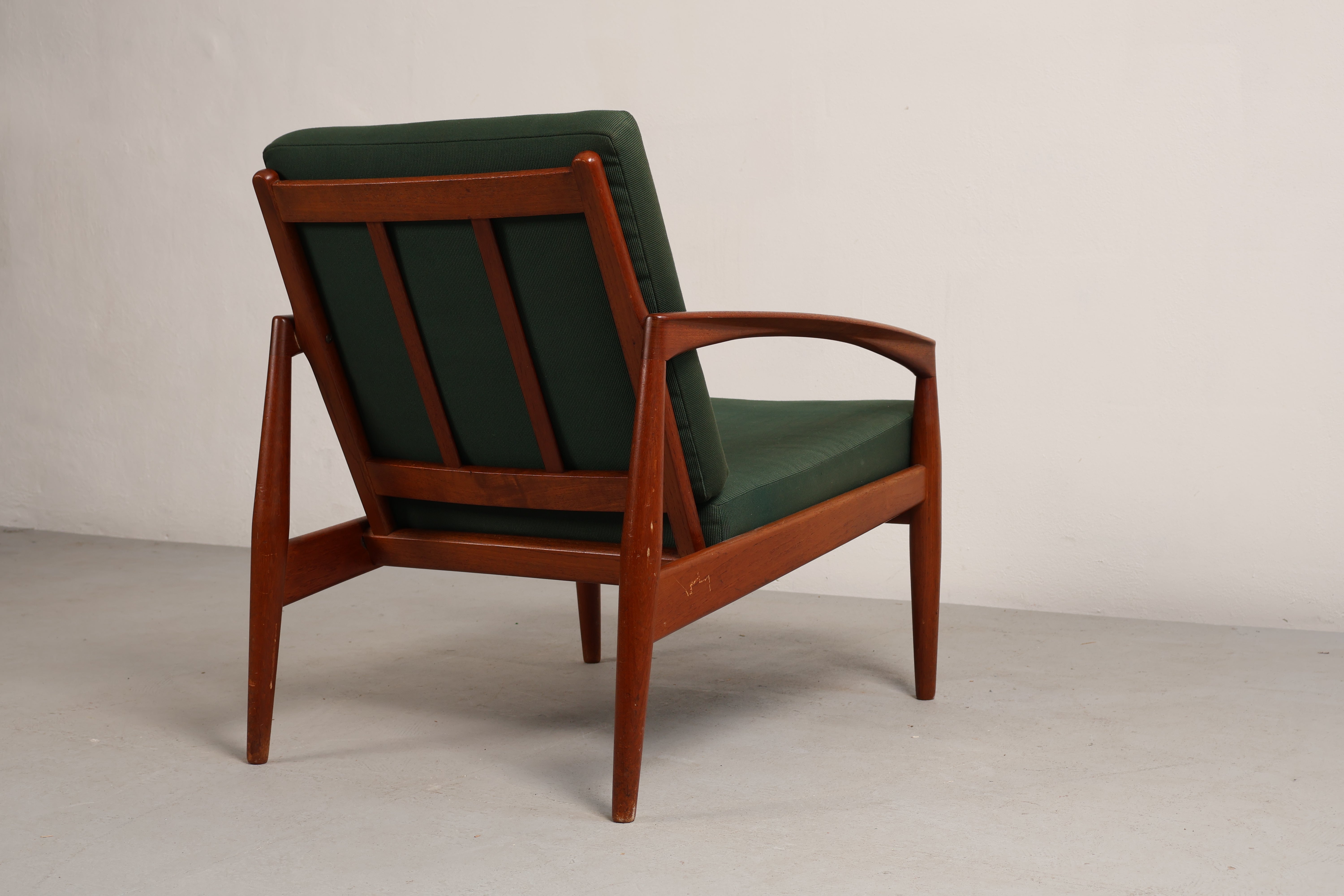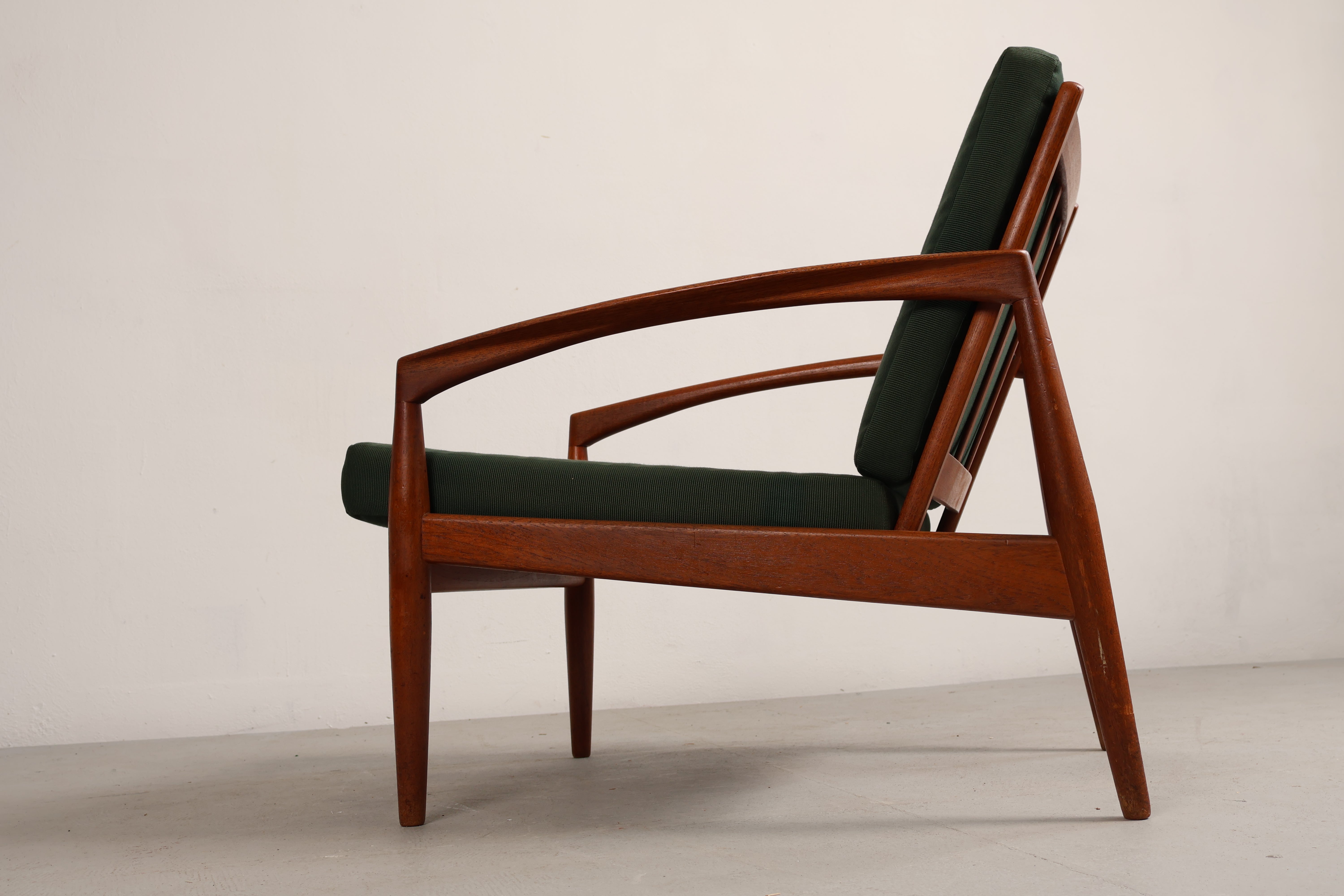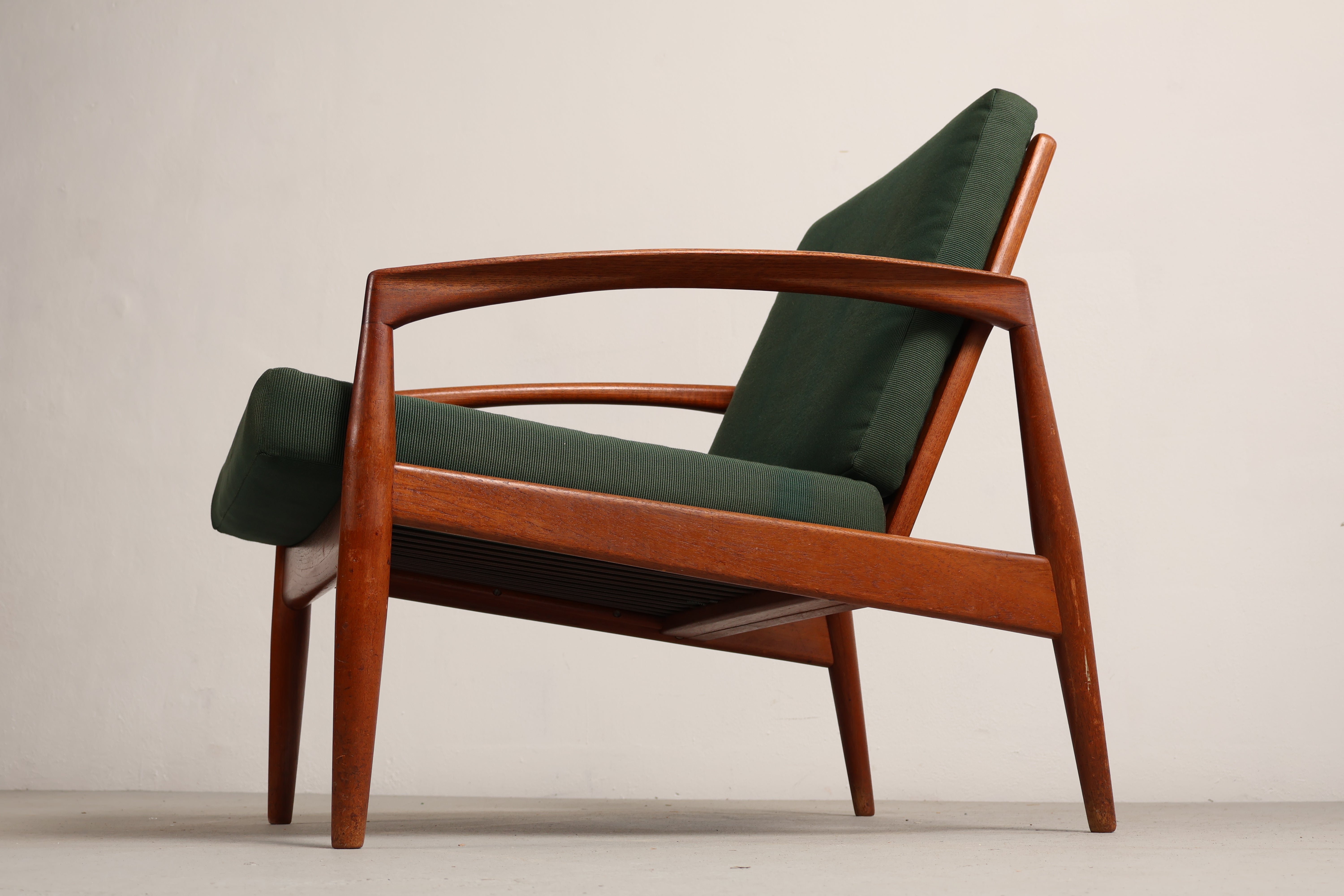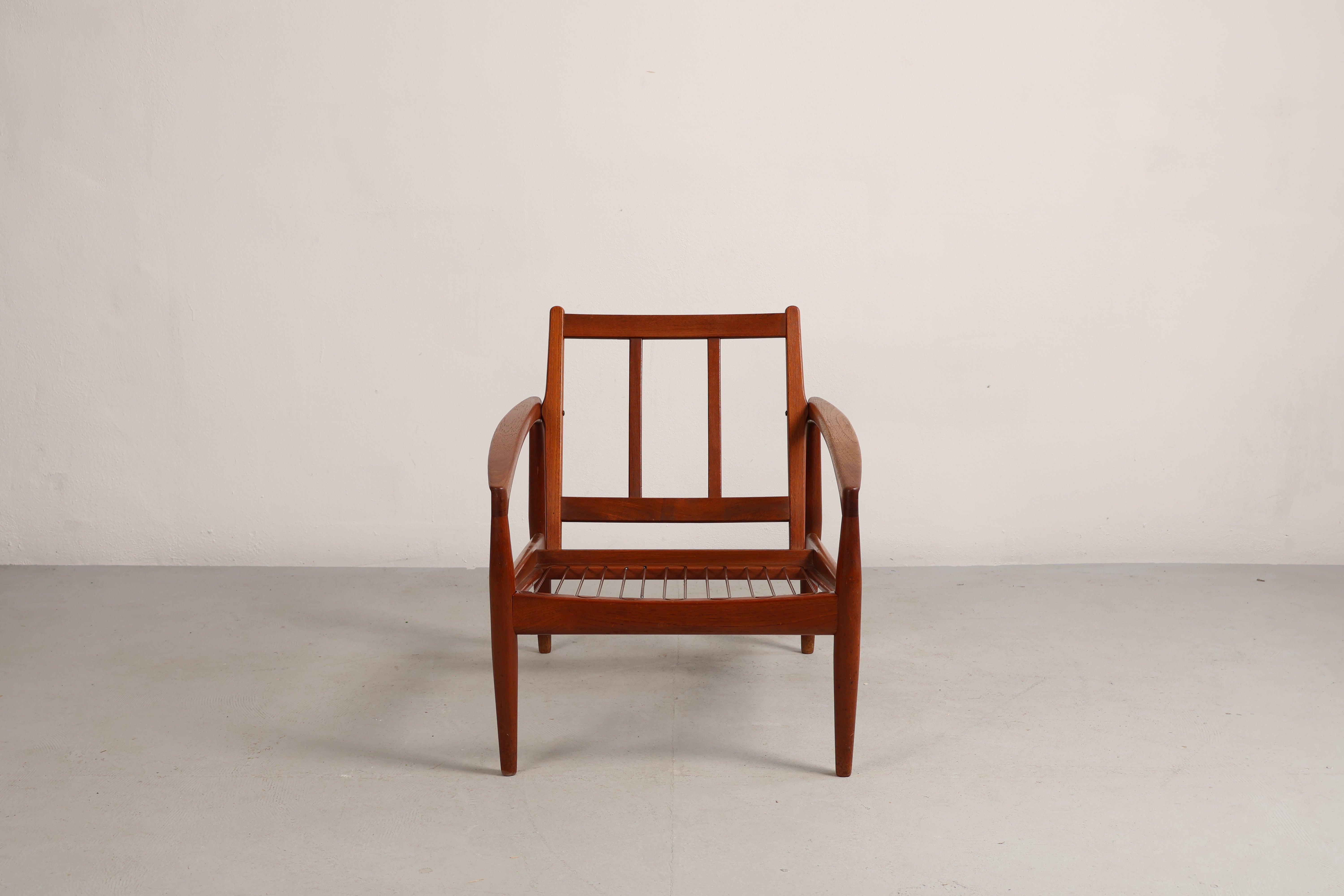 Sessel „Paper Knife“ aus den 60er-Jahren von Kai Kristiansen für Durup. Hergestellt in Dänemark. Gefertigt aus Teak. Höhe 75 cm, Breite 63 cm, Tiefe 75 cm.