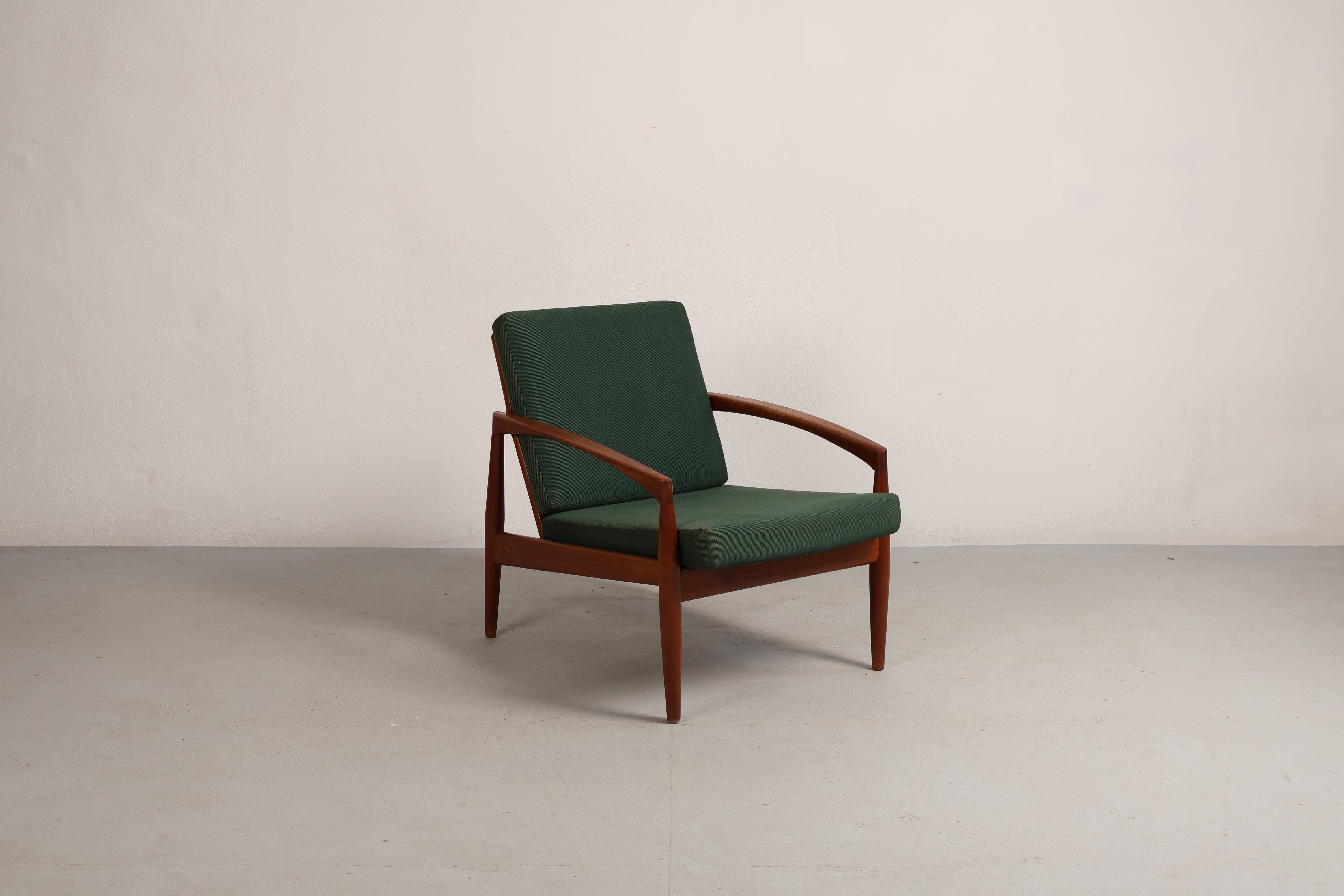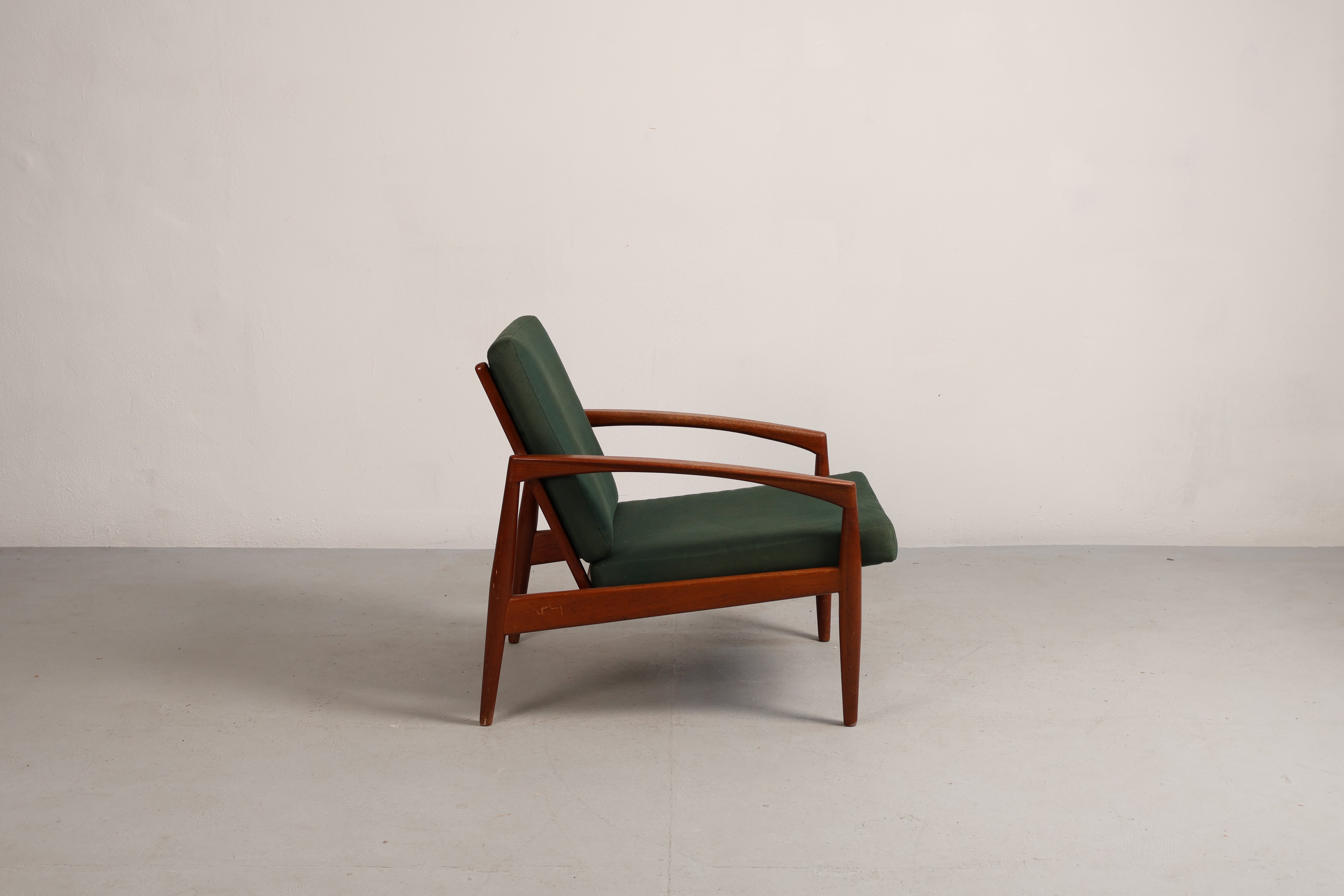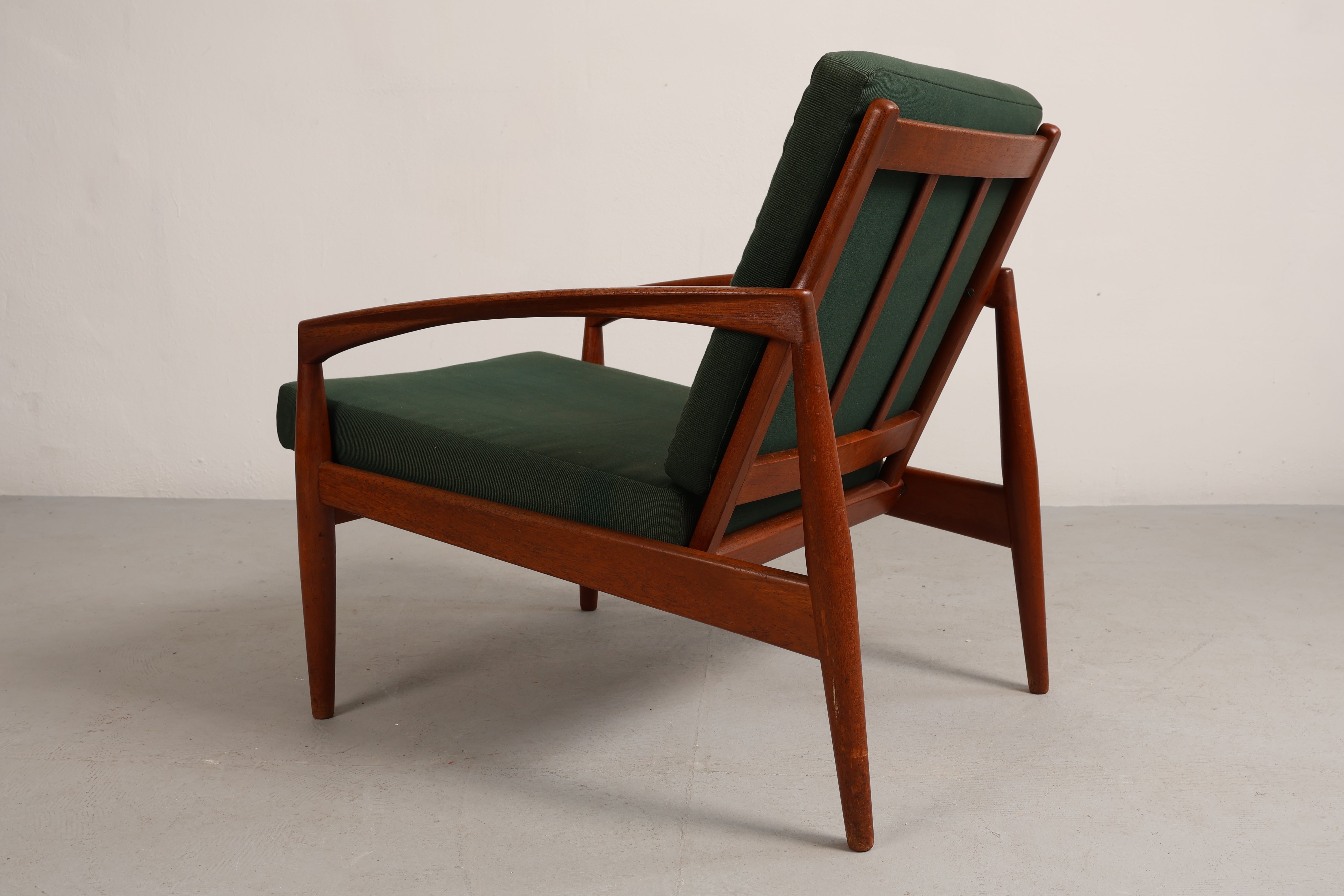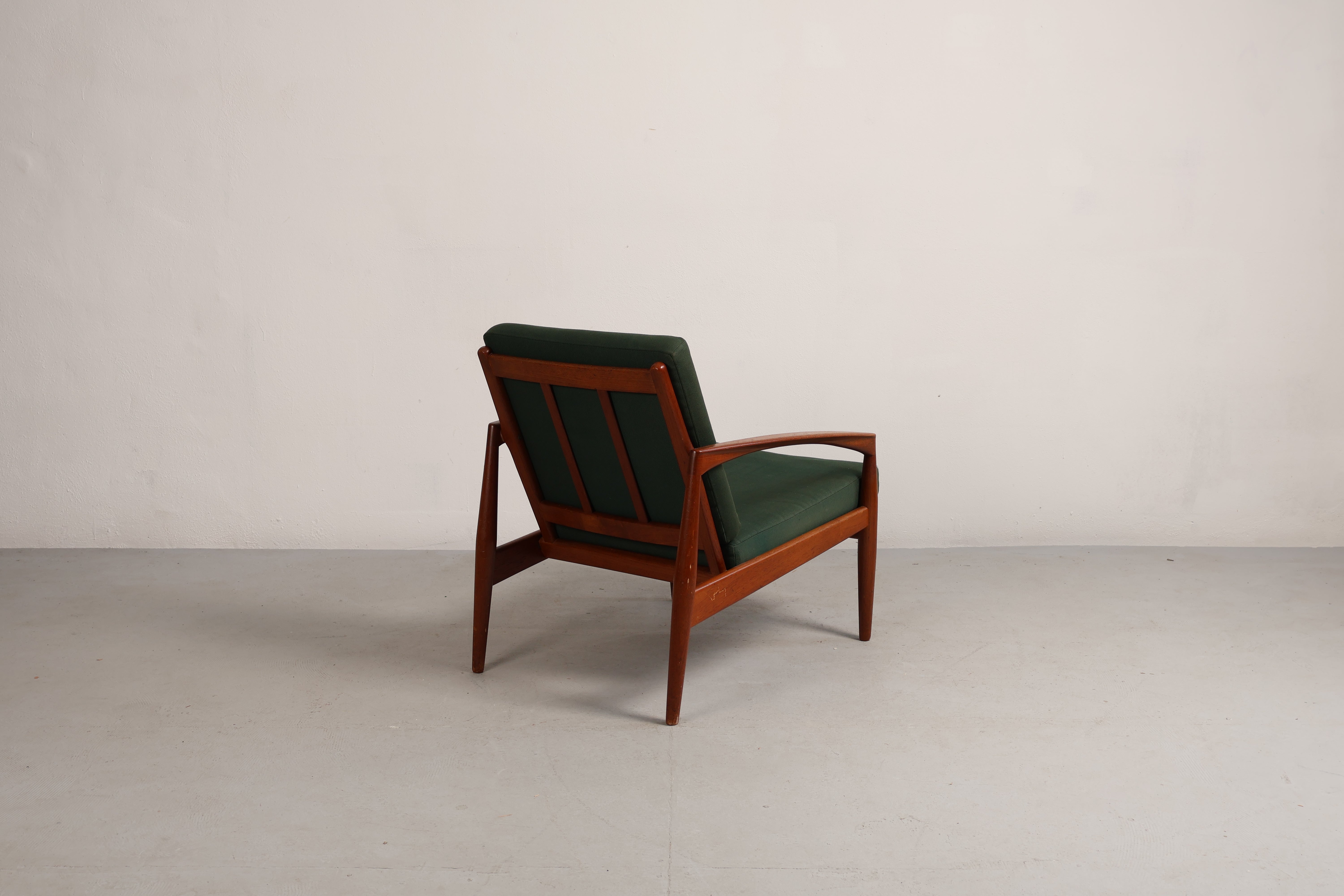 Sessel „Paper Knife“ aus den 60er-Jahren von Kai Kristiansen für Durup. Hergestellt in Dänemark. Gefertigt aus Teak. Höhe 75 cm, Breite 63 cm, Tiefe 75 cm.
