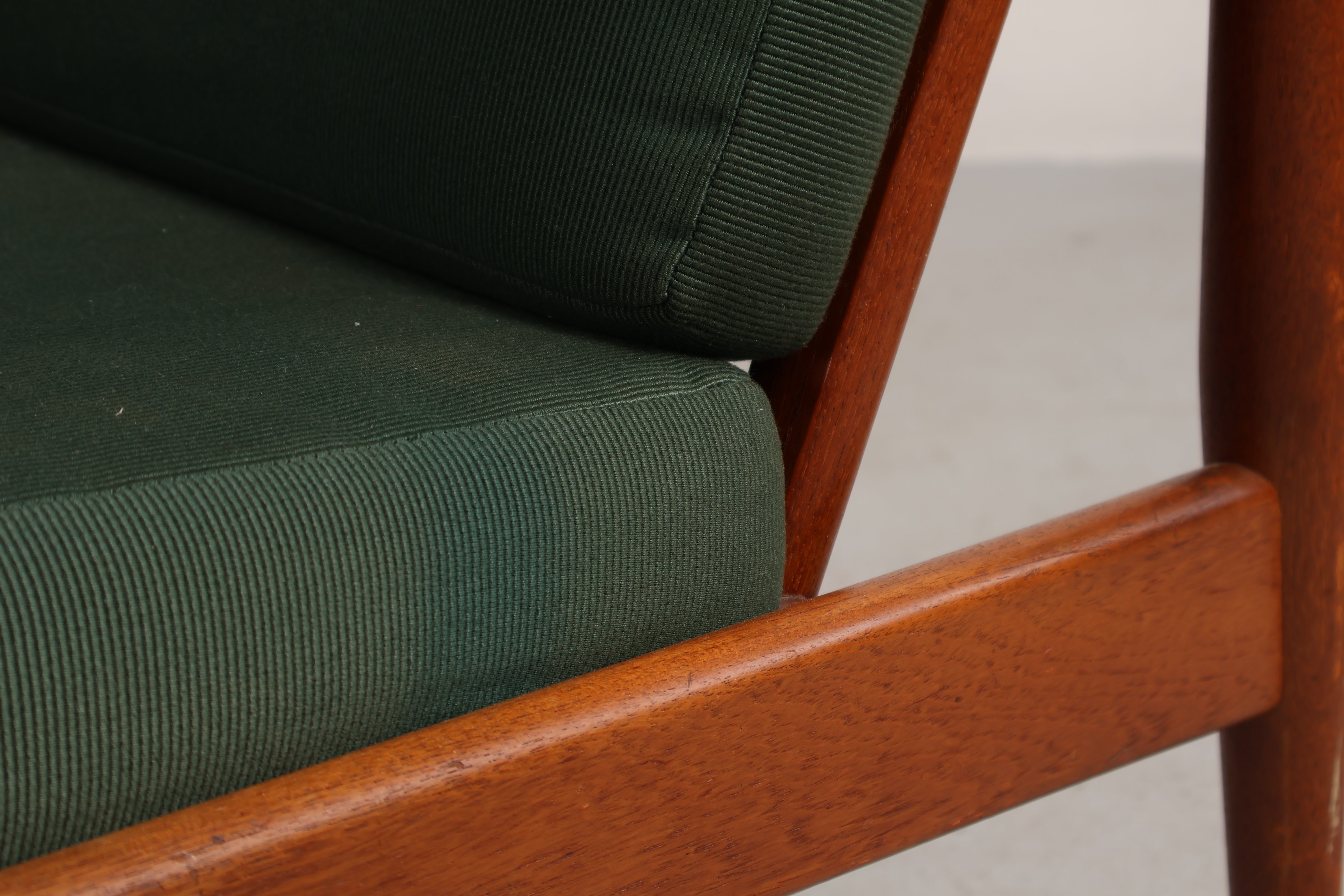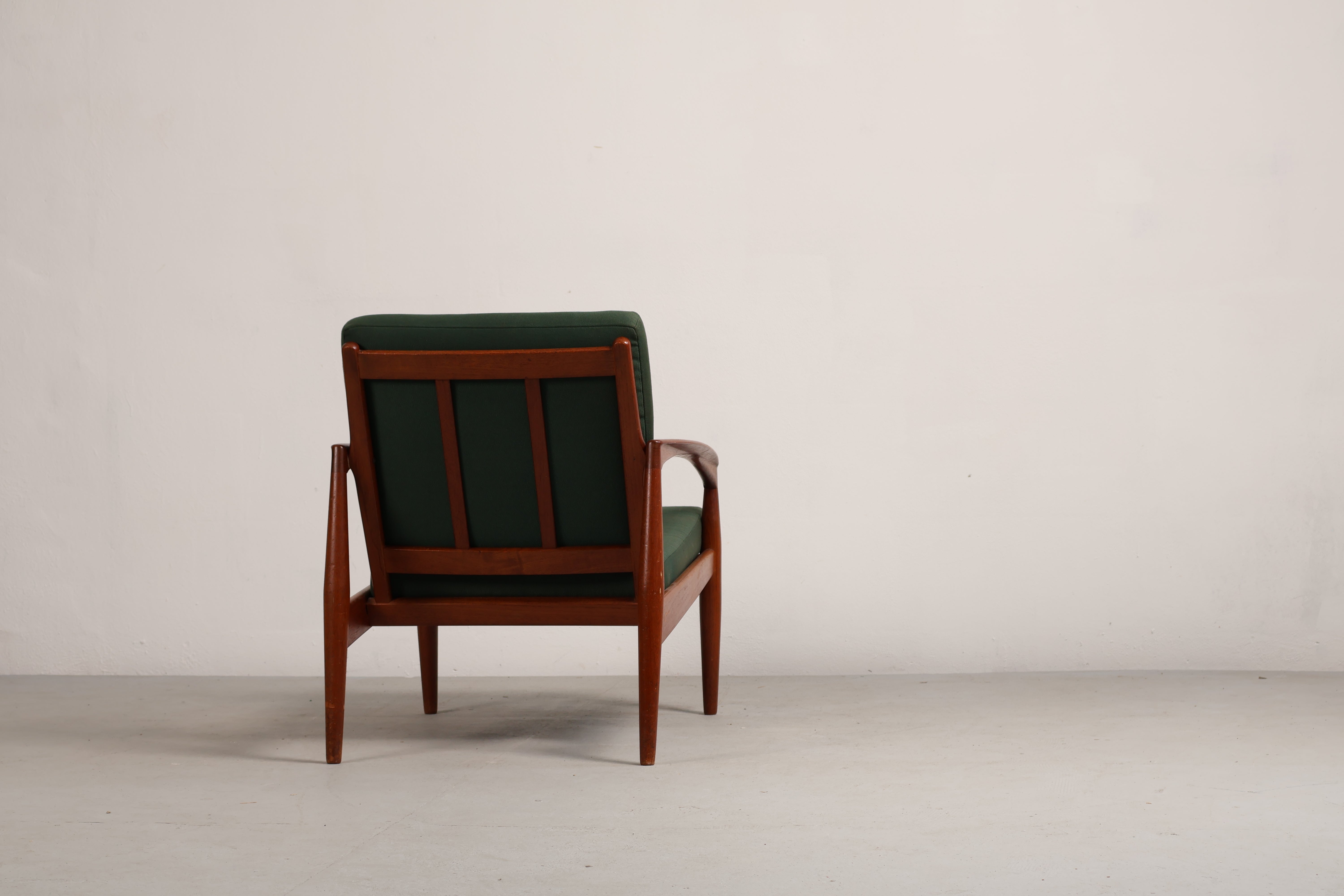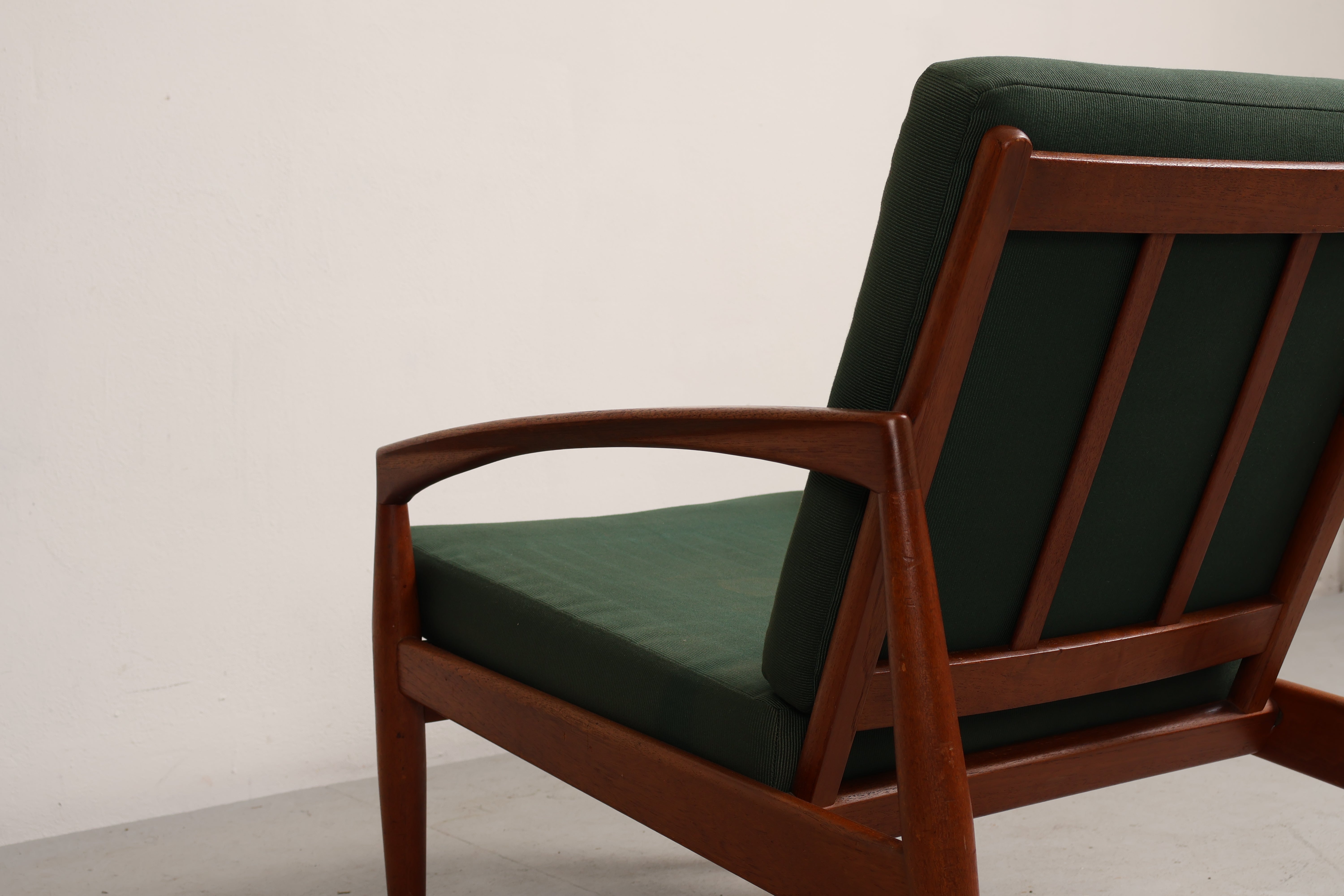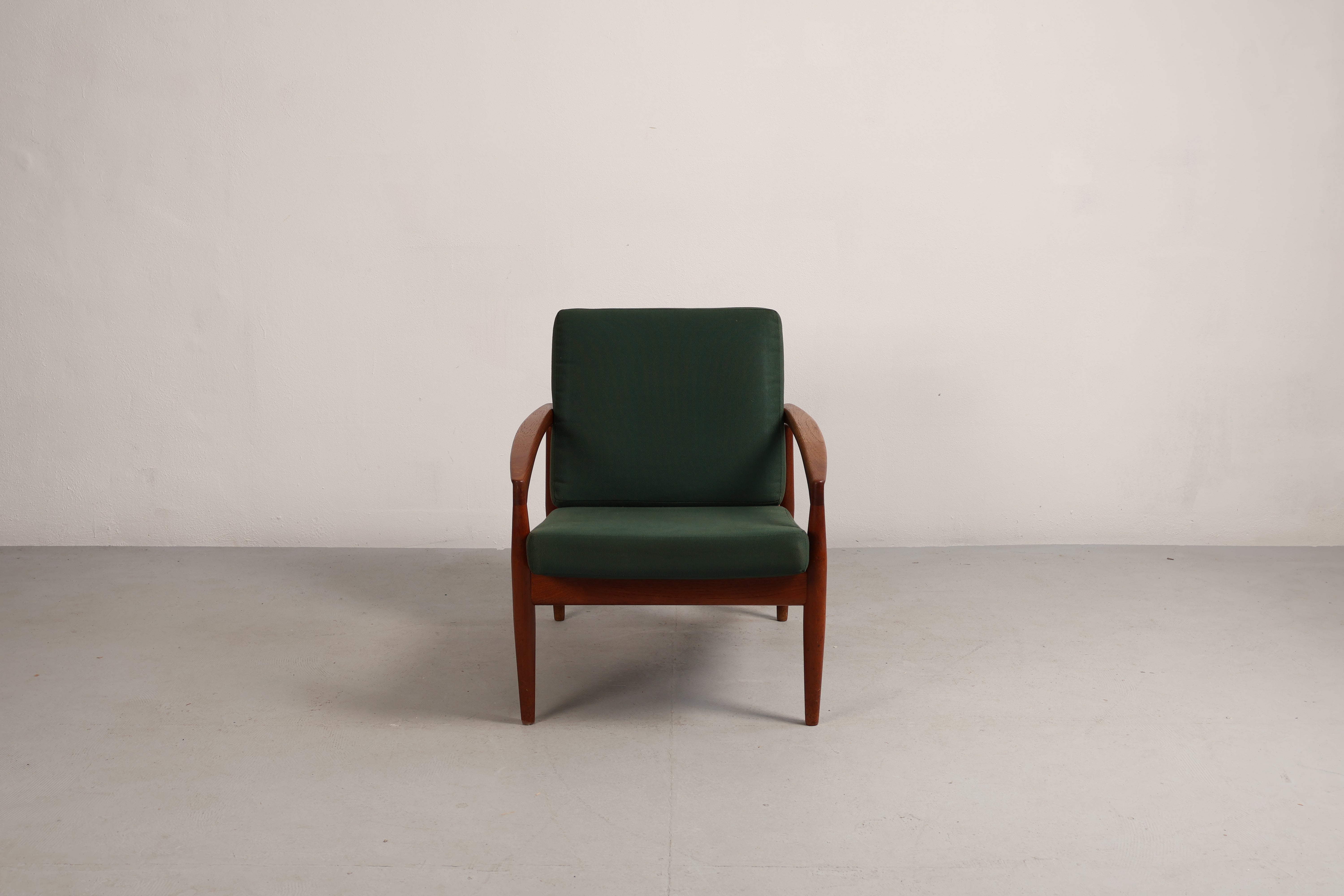Sessel „Paper Knife“ aus den 60er-Jahren von Kai Kristiansen für Durup. Hergestellt in Dänemark. Gefertigt aus Teak. Höhe 75 cm, Breite 63 cm, Tiefe 75 cm.