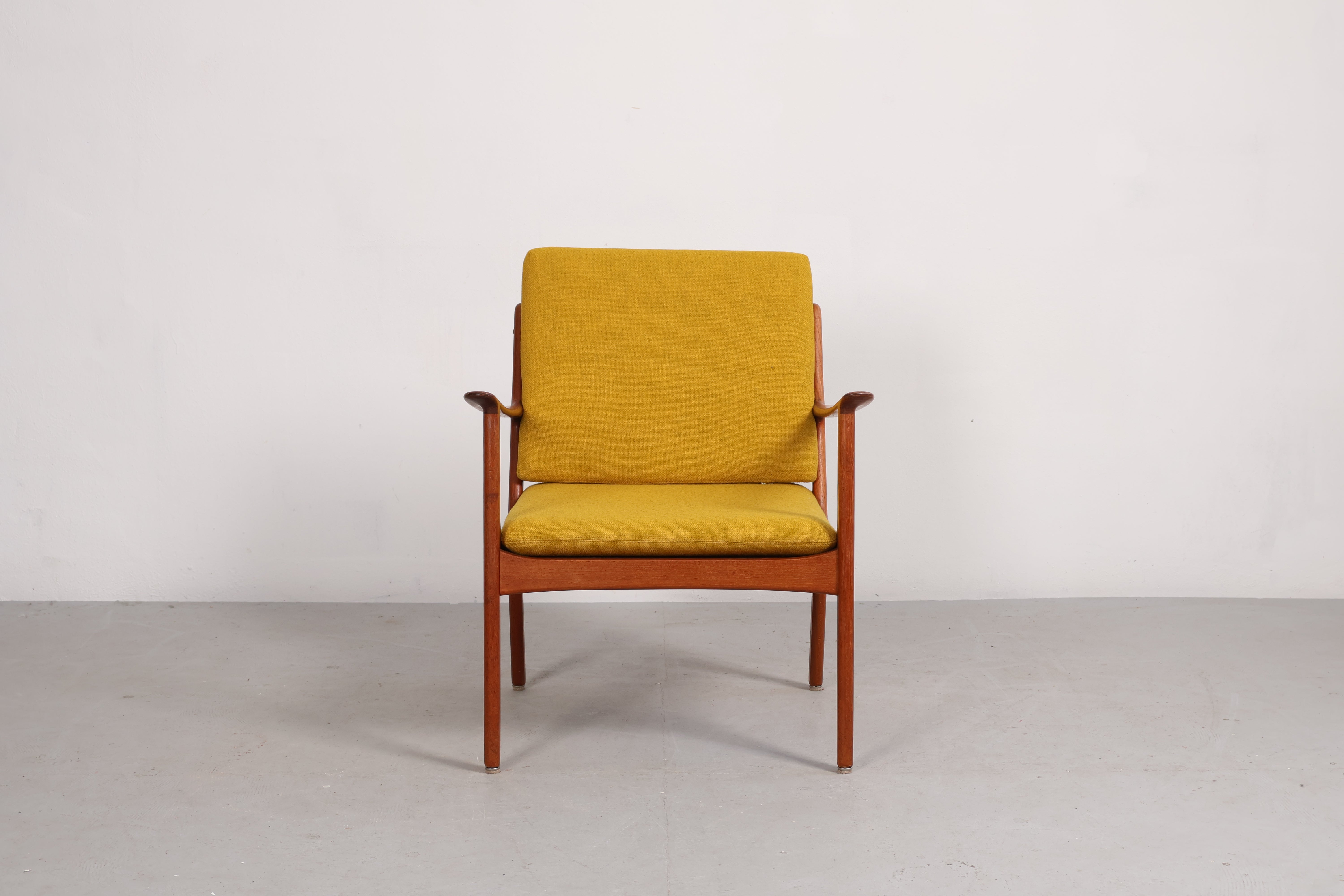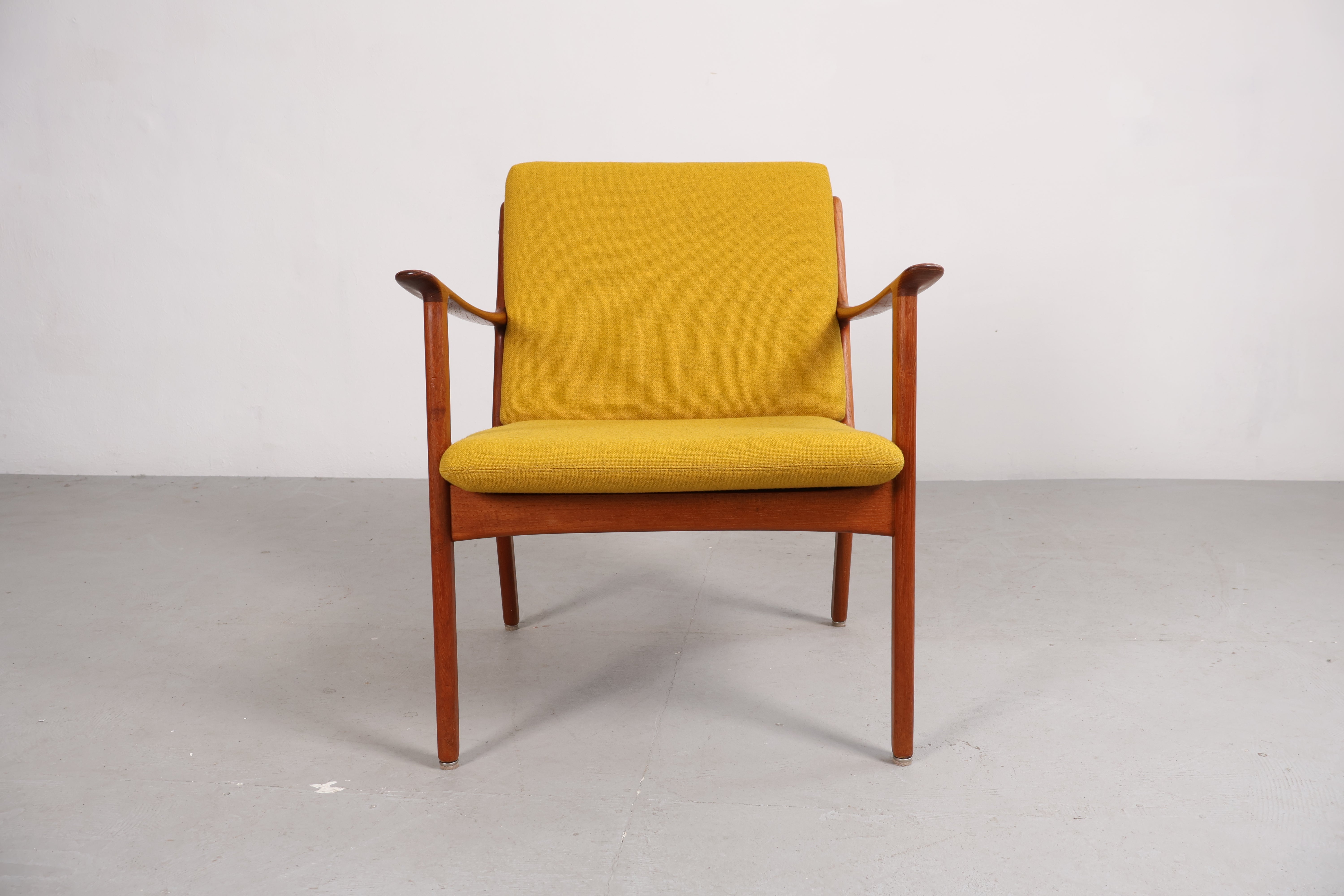 Sessel „PJ 112“ aus den 60er-Jahren von Ole Wanscher für Poul Jeppesen. Hergestellt in Dänemark. Gefertigt aus Teak. Höhe 77 cm, Breite 66 cm, Tiefe 72 cm.
