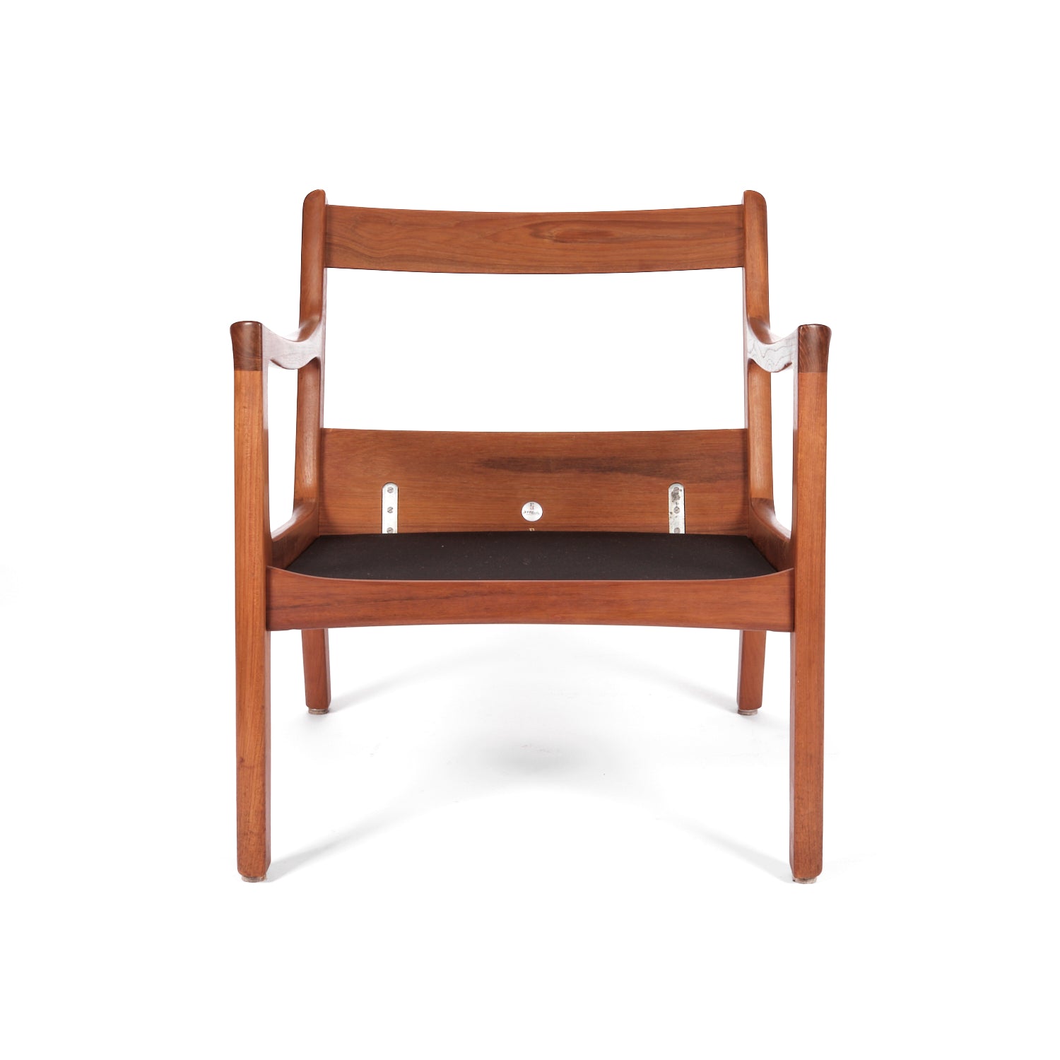 Sessel „Senator“ aus den 60er-Jahren von Ole Wanscher. Hergestellt in Dänemark. Gefertigt aus Teak. Höhe 82 cm, Breite 68 cm, Tiefe 76 cm.