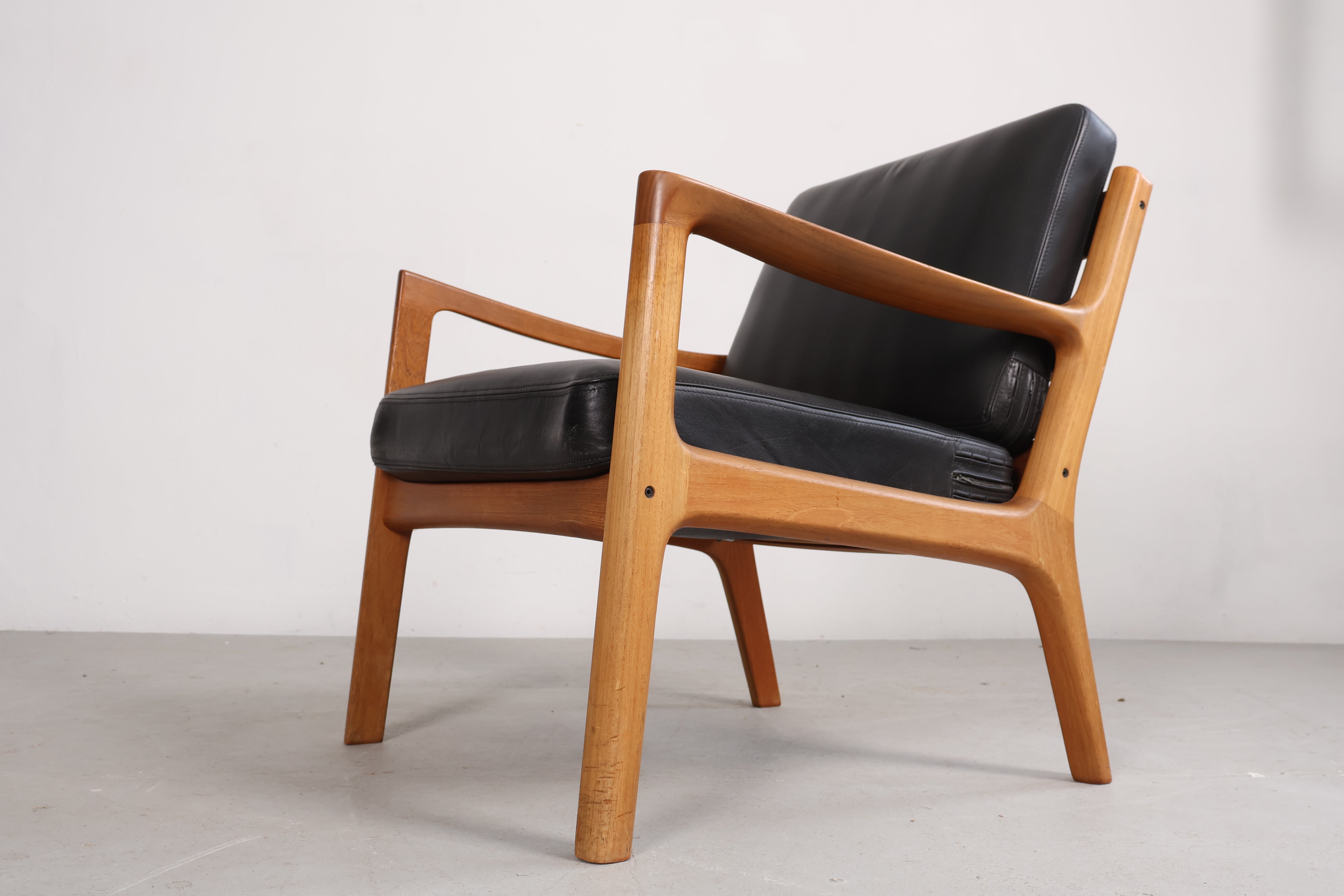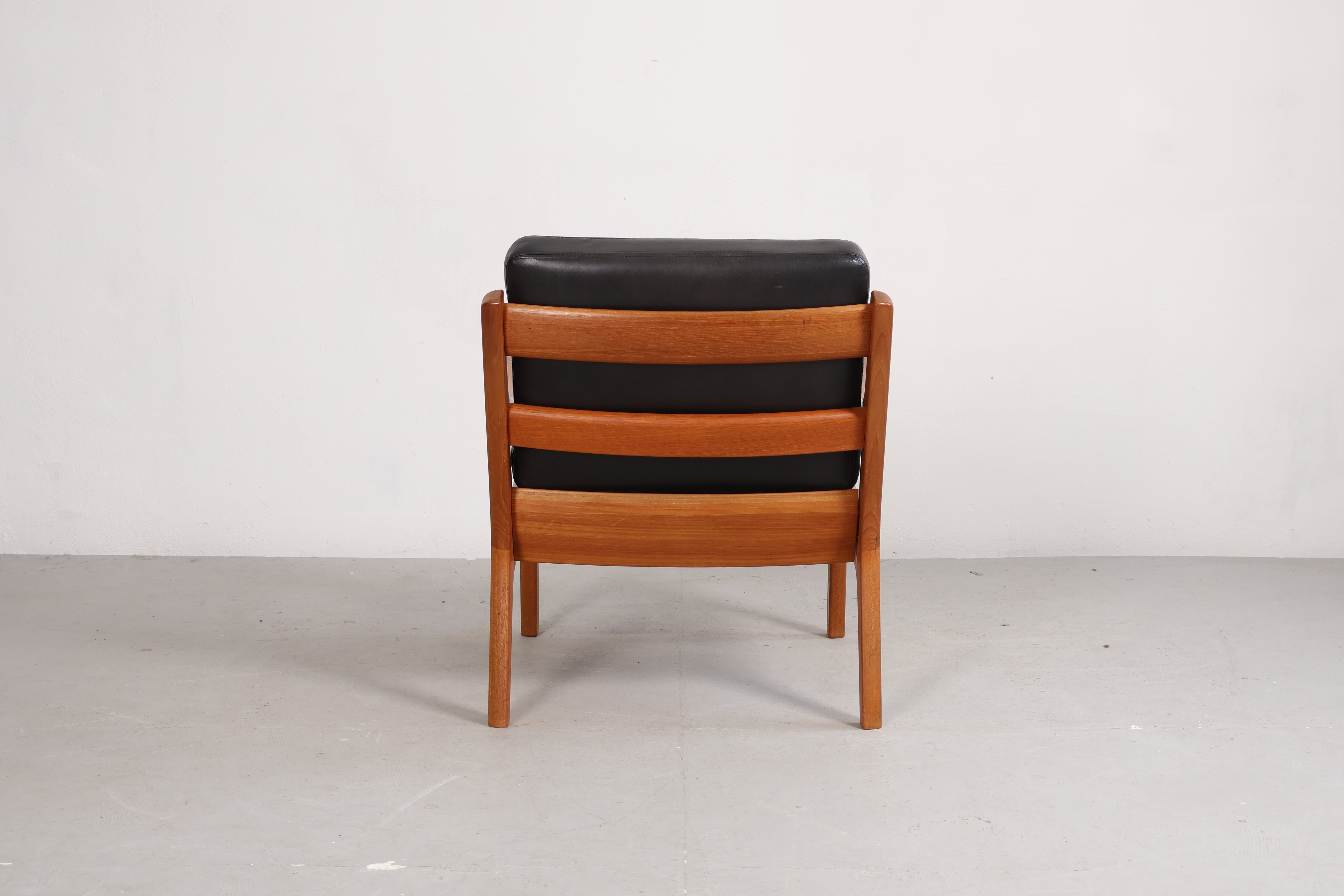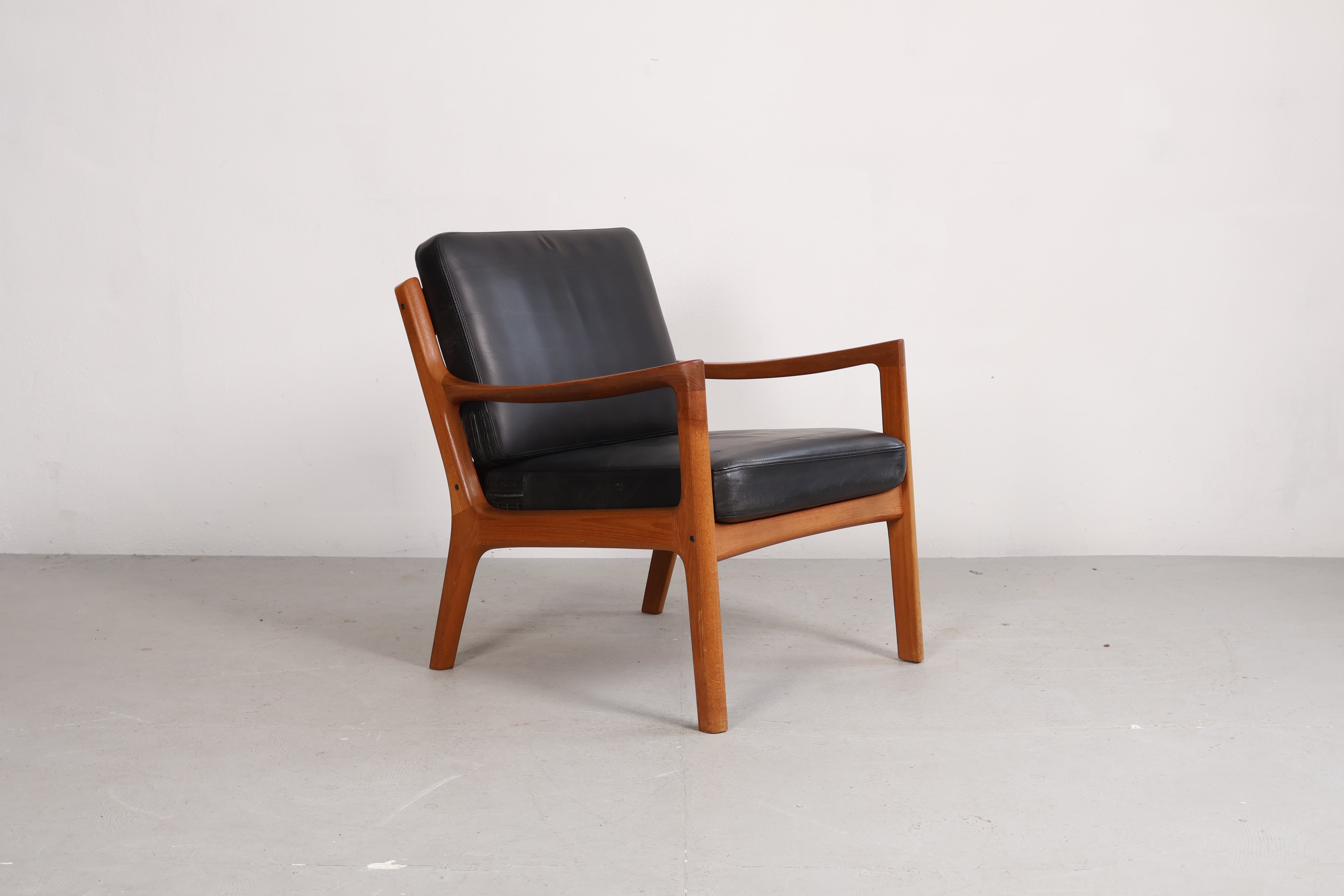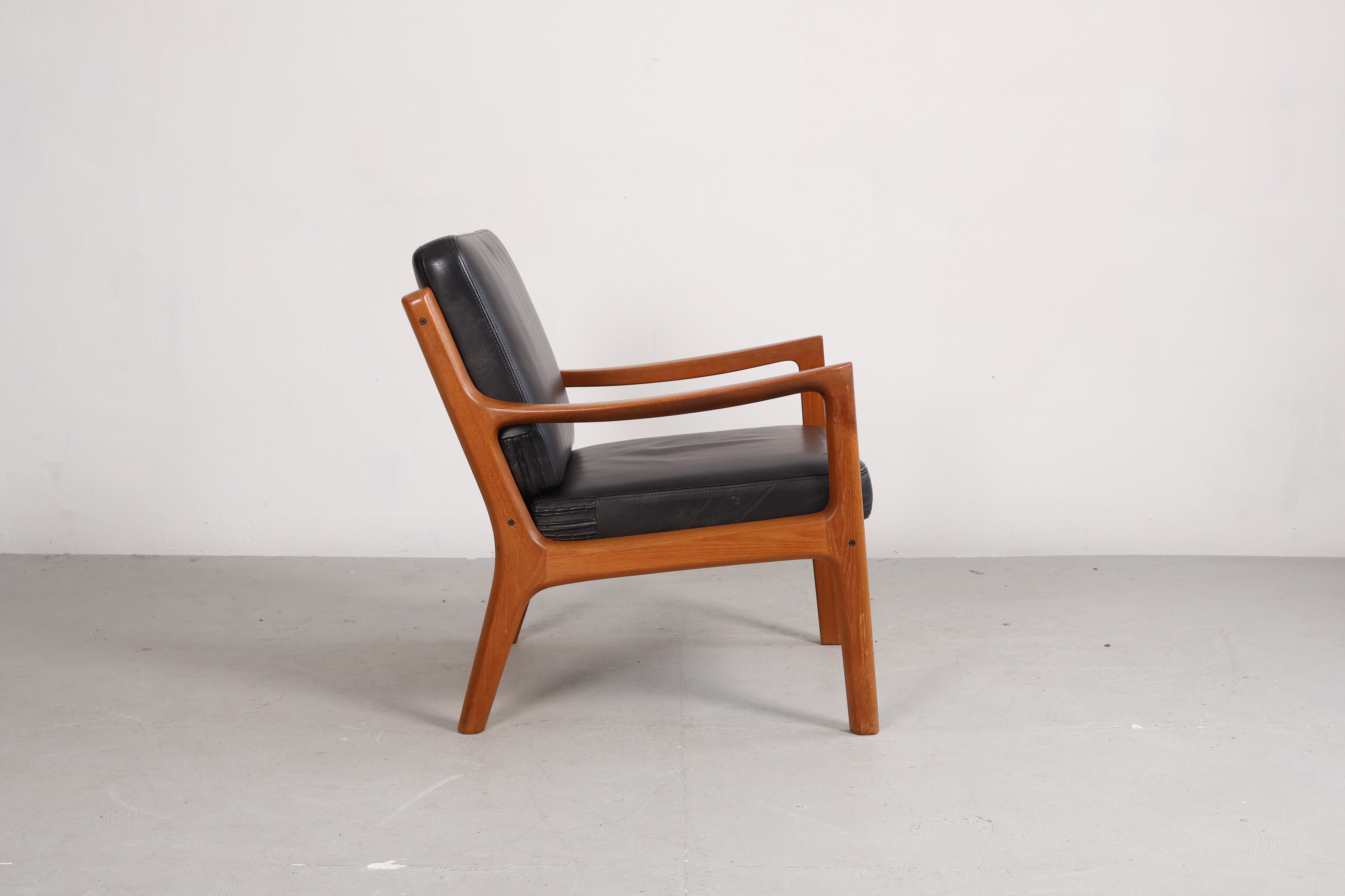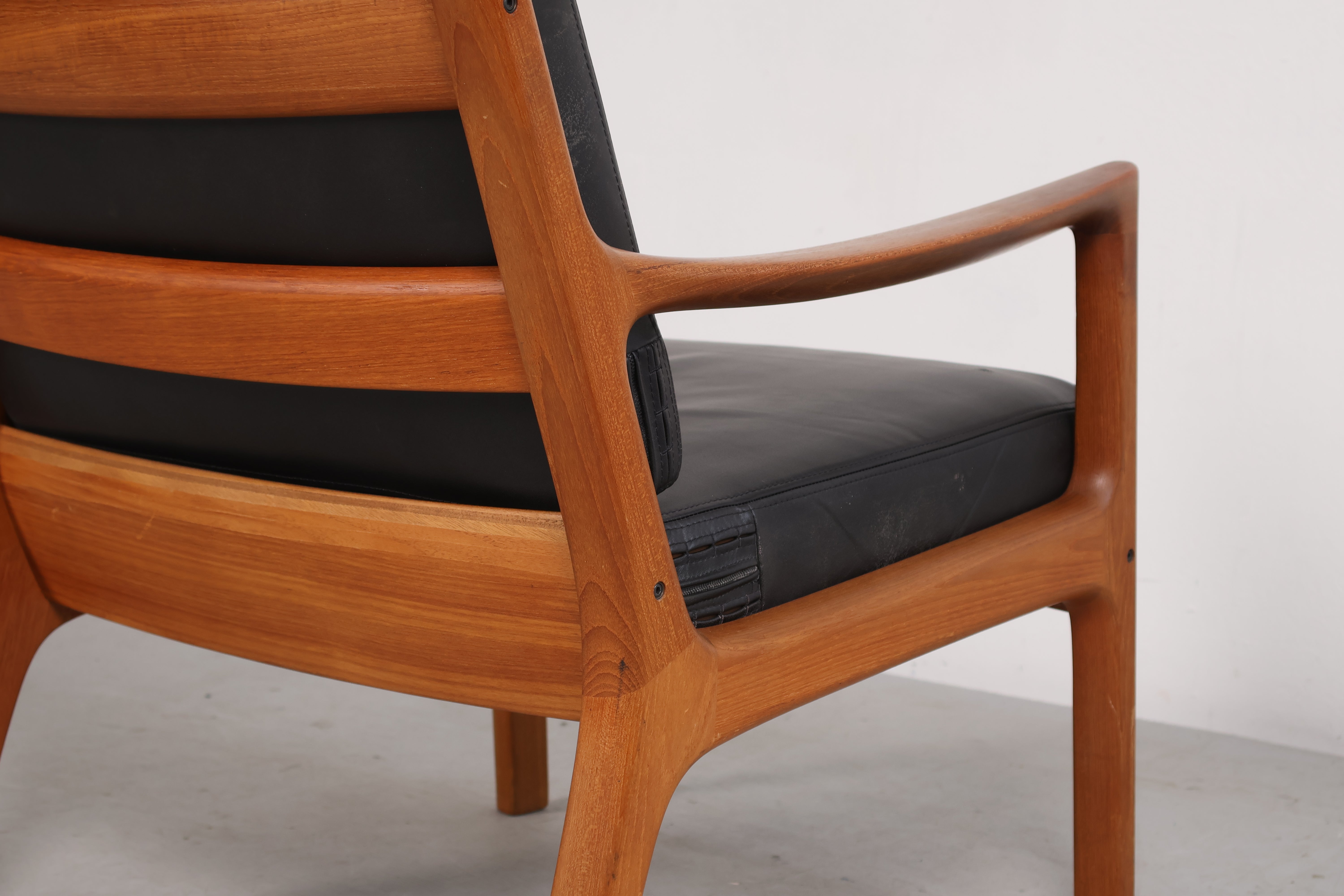 Sessel „Senator“ aus den 60er-Jahren von Ole Wanscher. Hergestellt in Dänemark. Gefertigt aus Teak, Leder. Höhe 82 cm, Breite 68 cm, Tiefe 76 cm.
