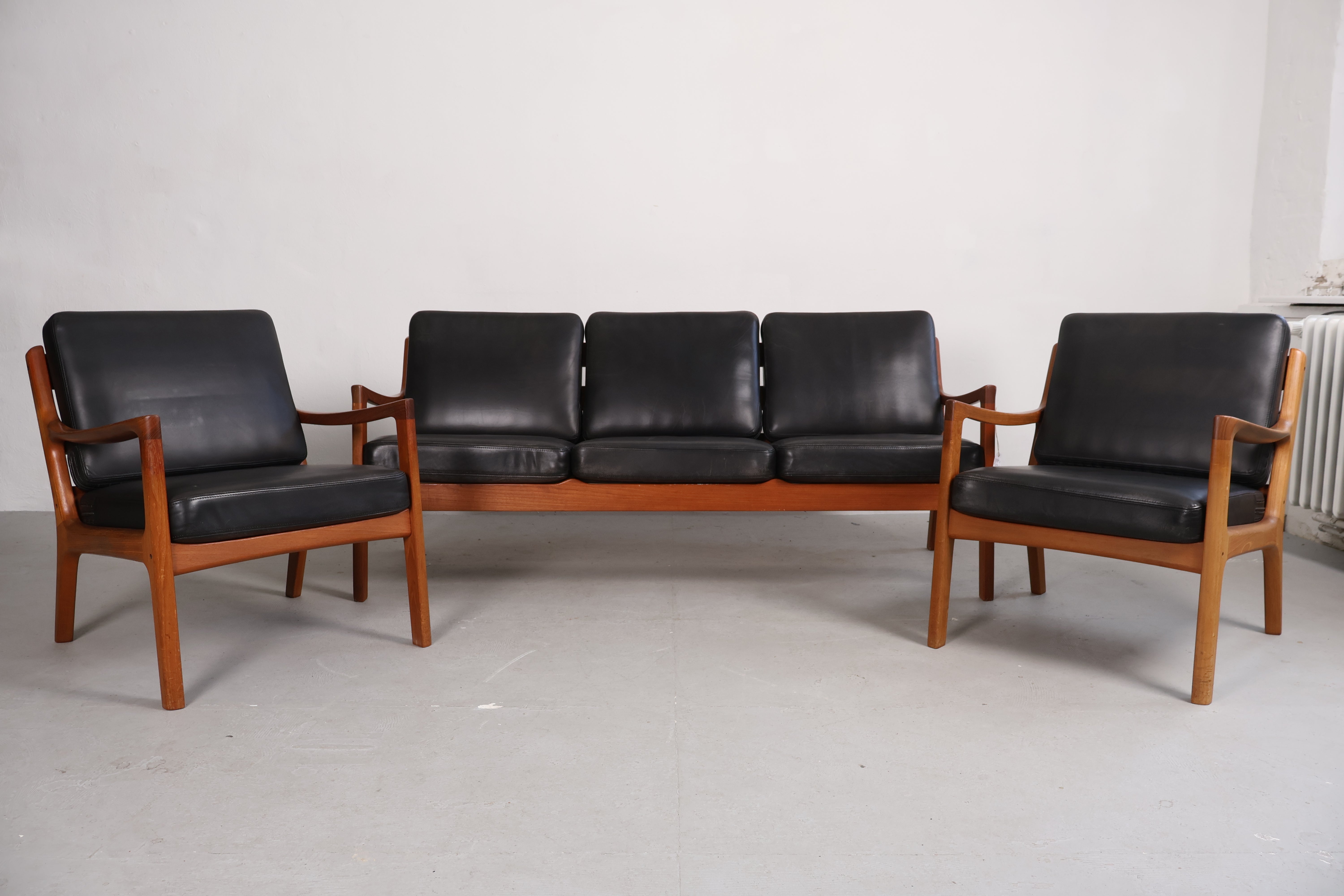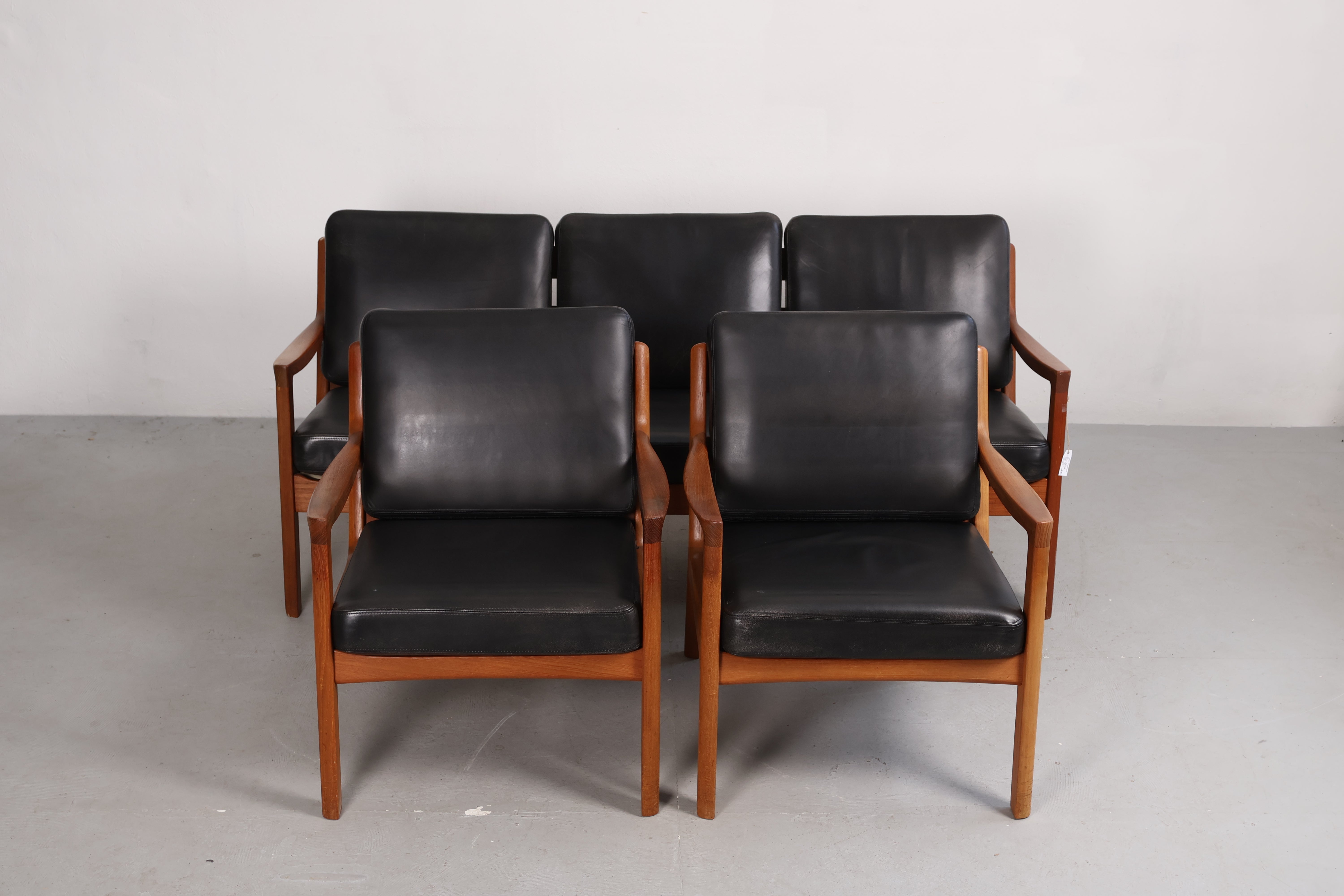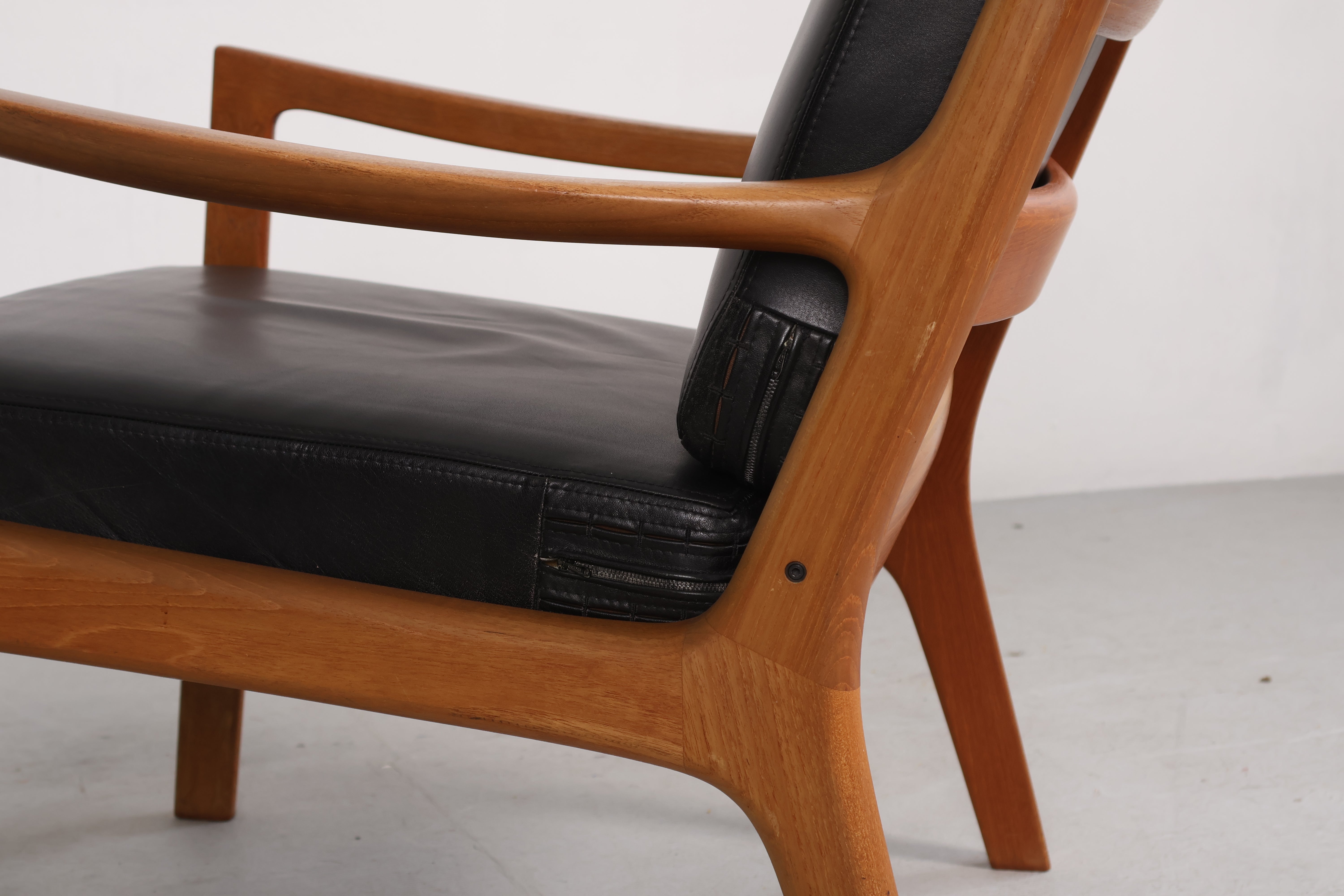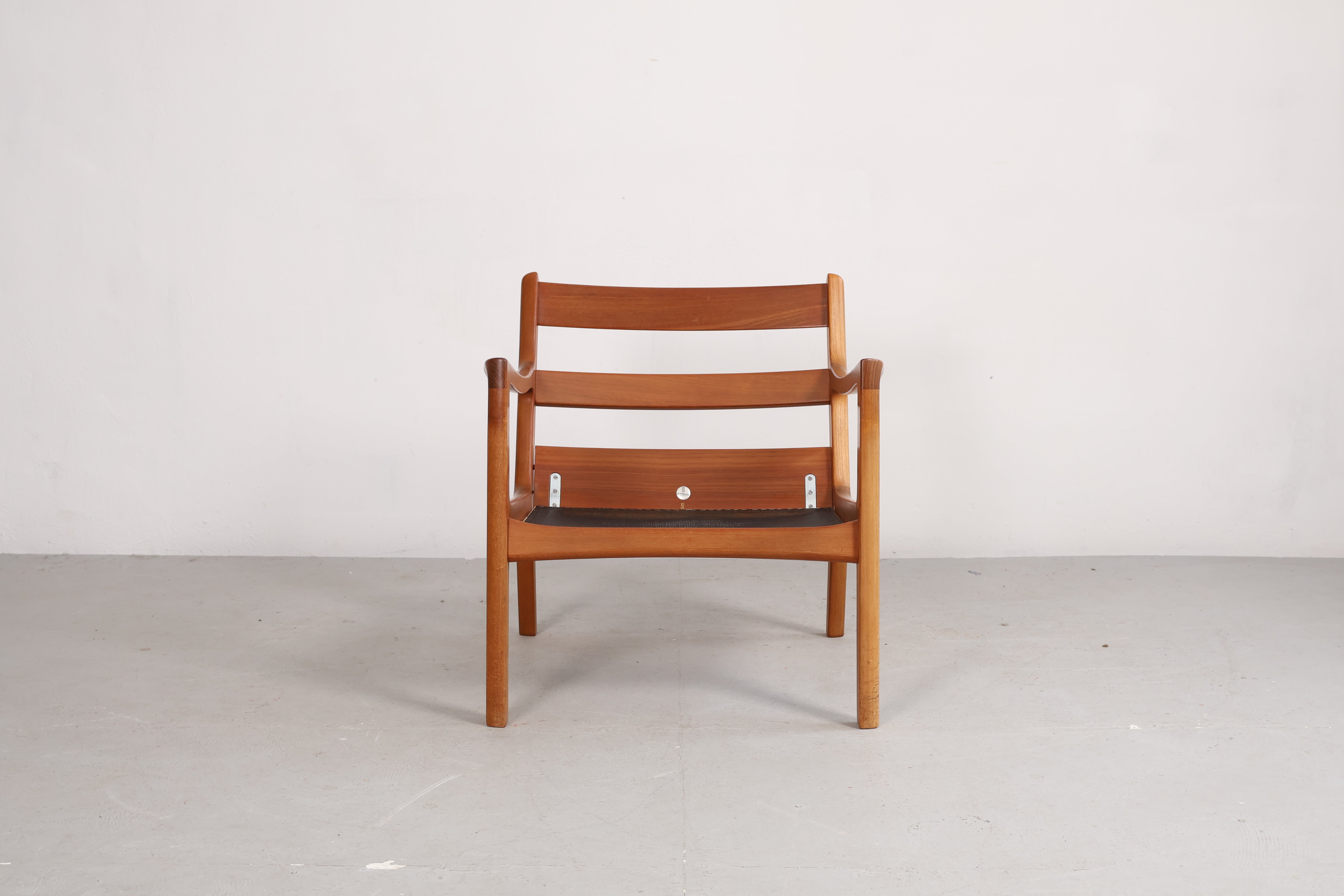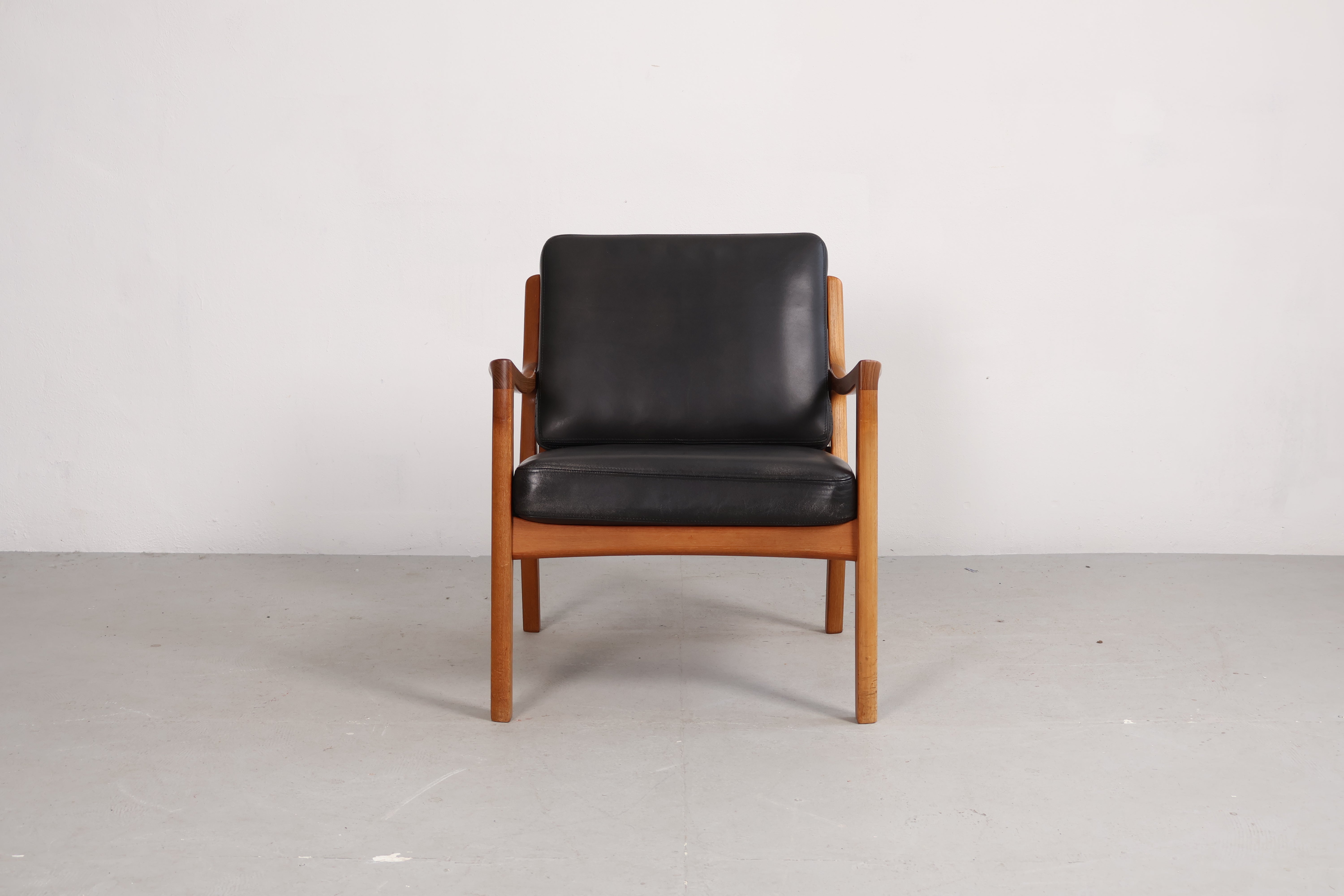 Sessel „Senator“ aus den 60er-Jahren von Ole Wanscher. Hergestellt in Dänemark. Gefertigt aus Teak, Leder. Höhe 82 cm, Breite 68 cm, Tiefe 76 cm.