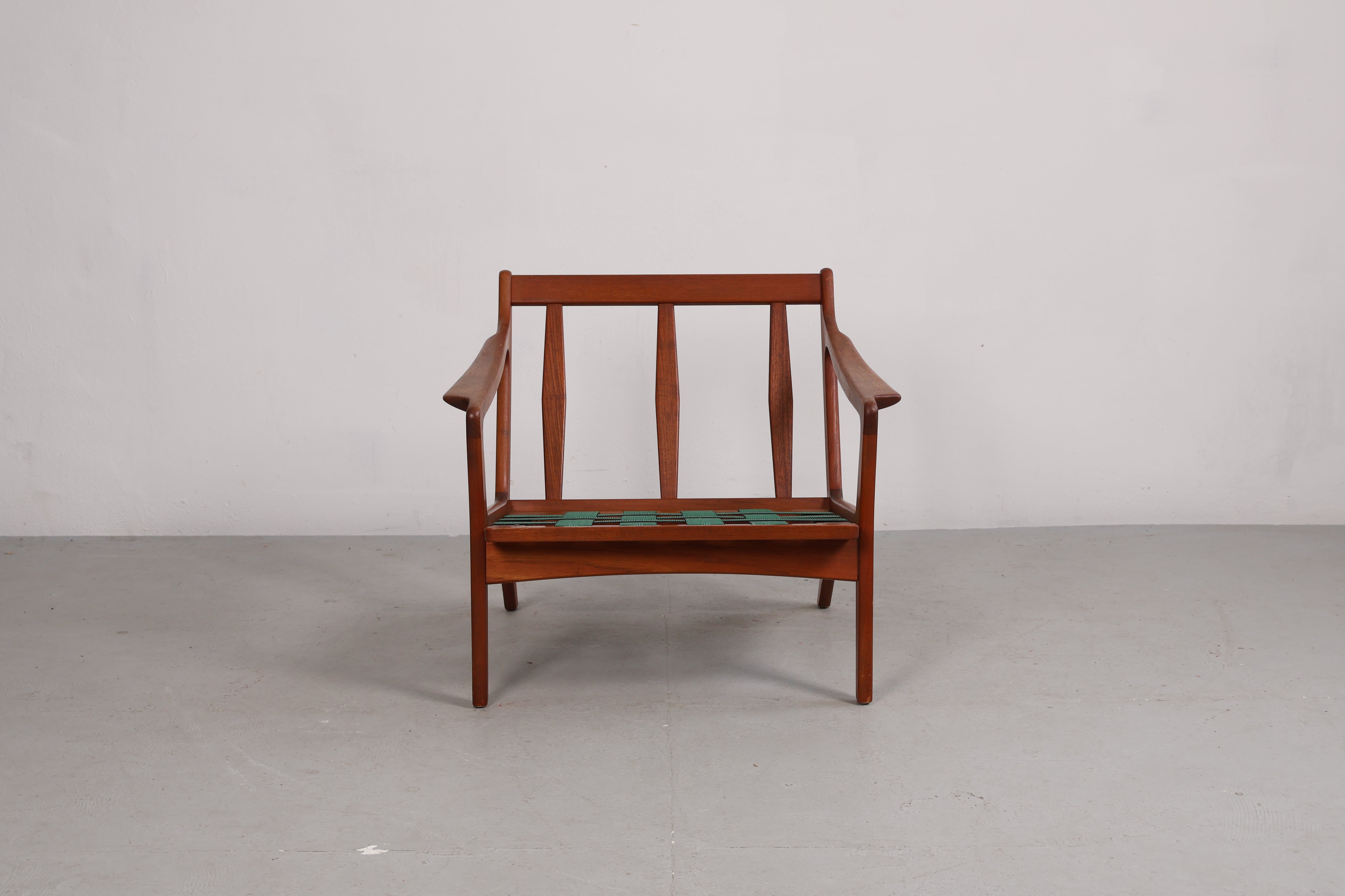 Sessel aus den 60er-Jahren von Arne Wahl Iversen. Hergestellt in Dänemark. Gefertigt aus Teak. Höhe 69 cm, Breite 72 cm, Tiefe 76 cm.
