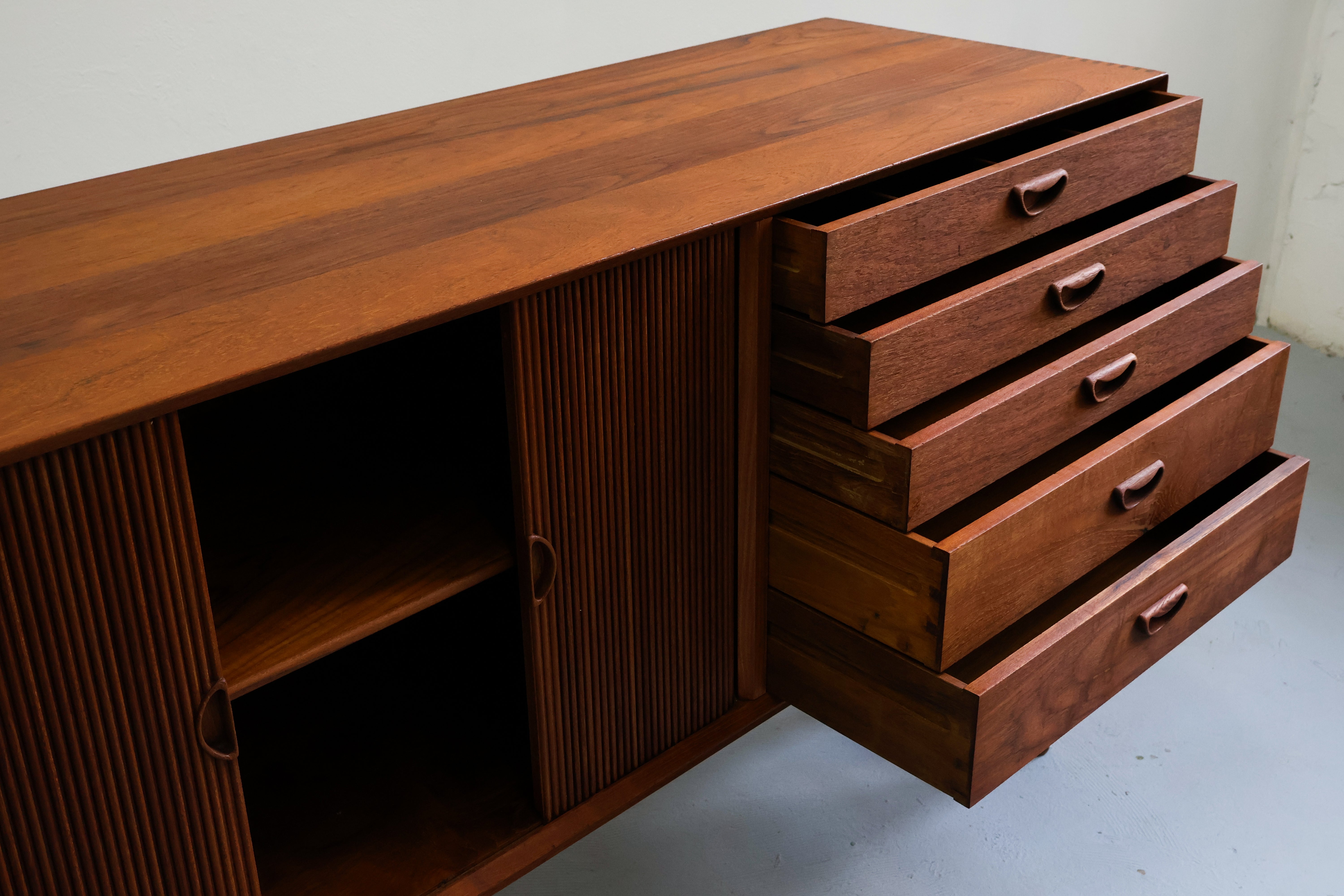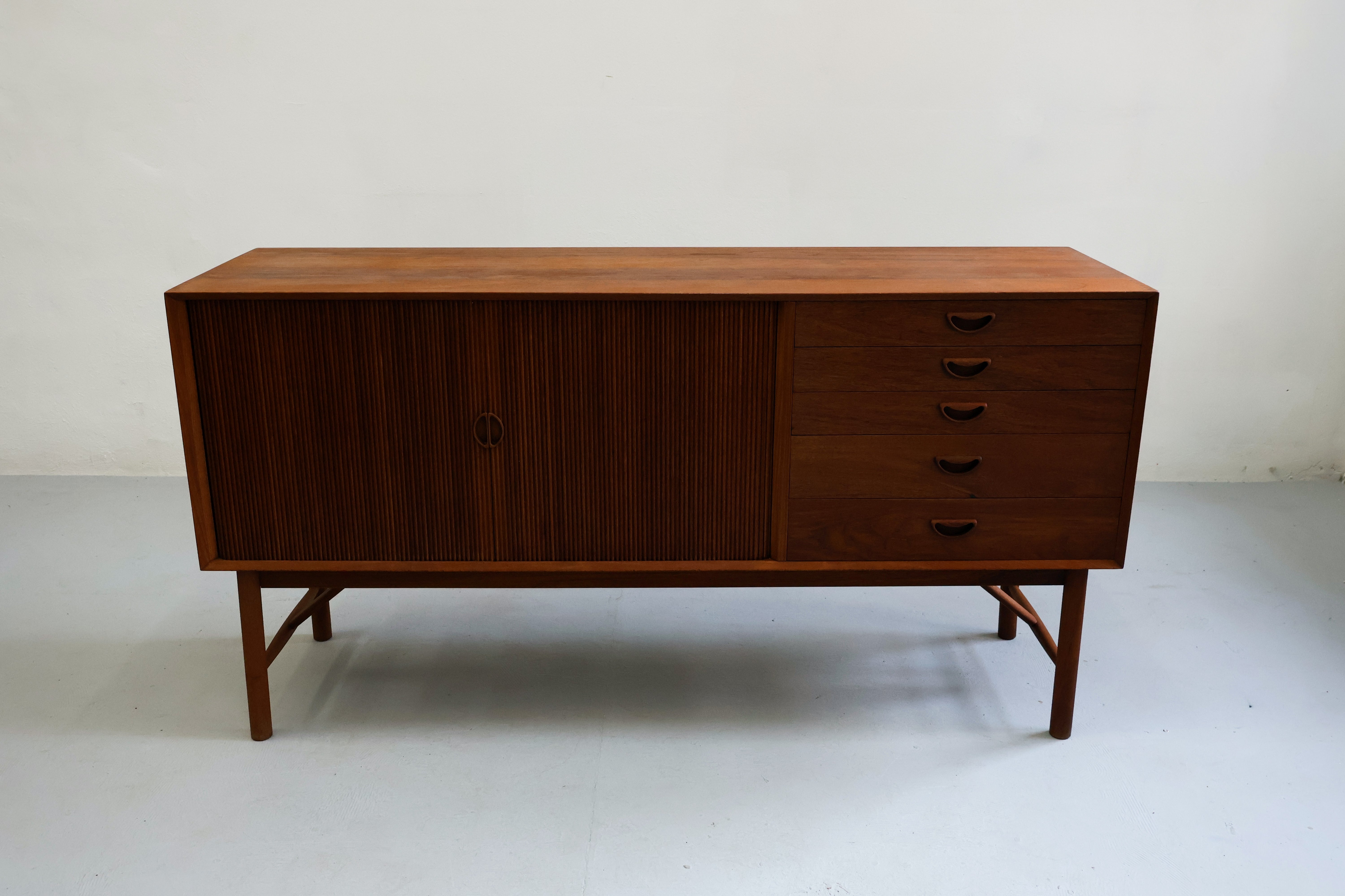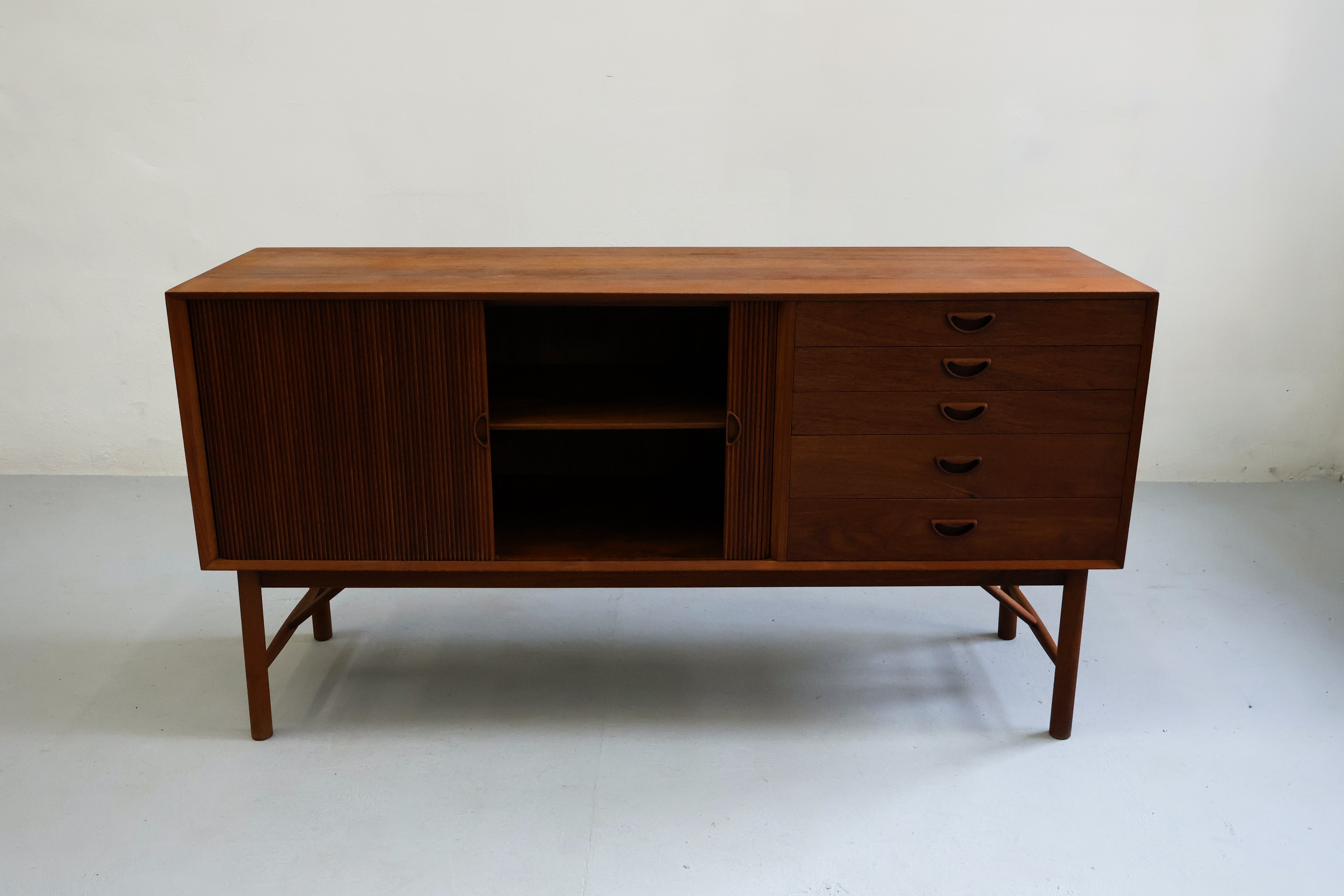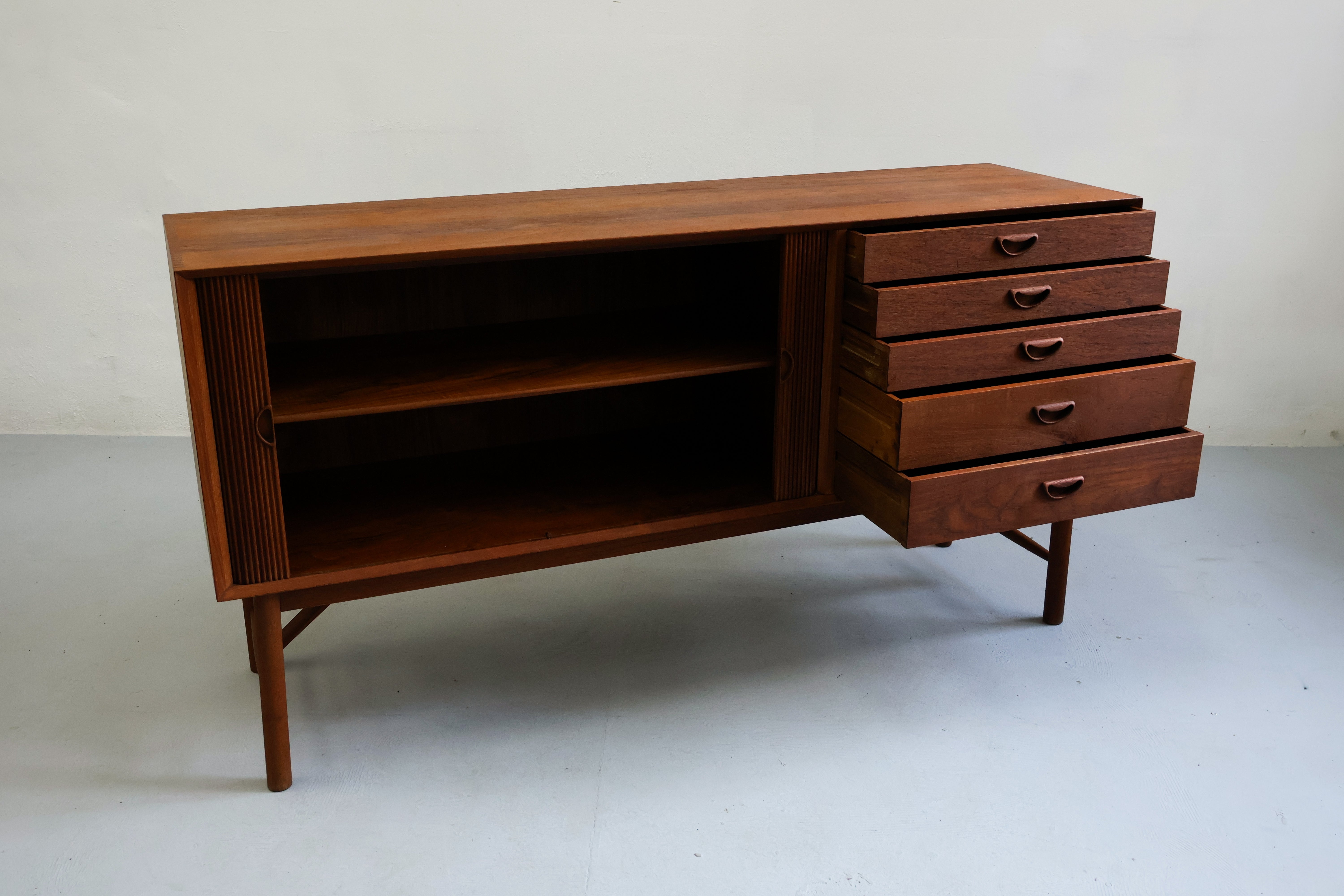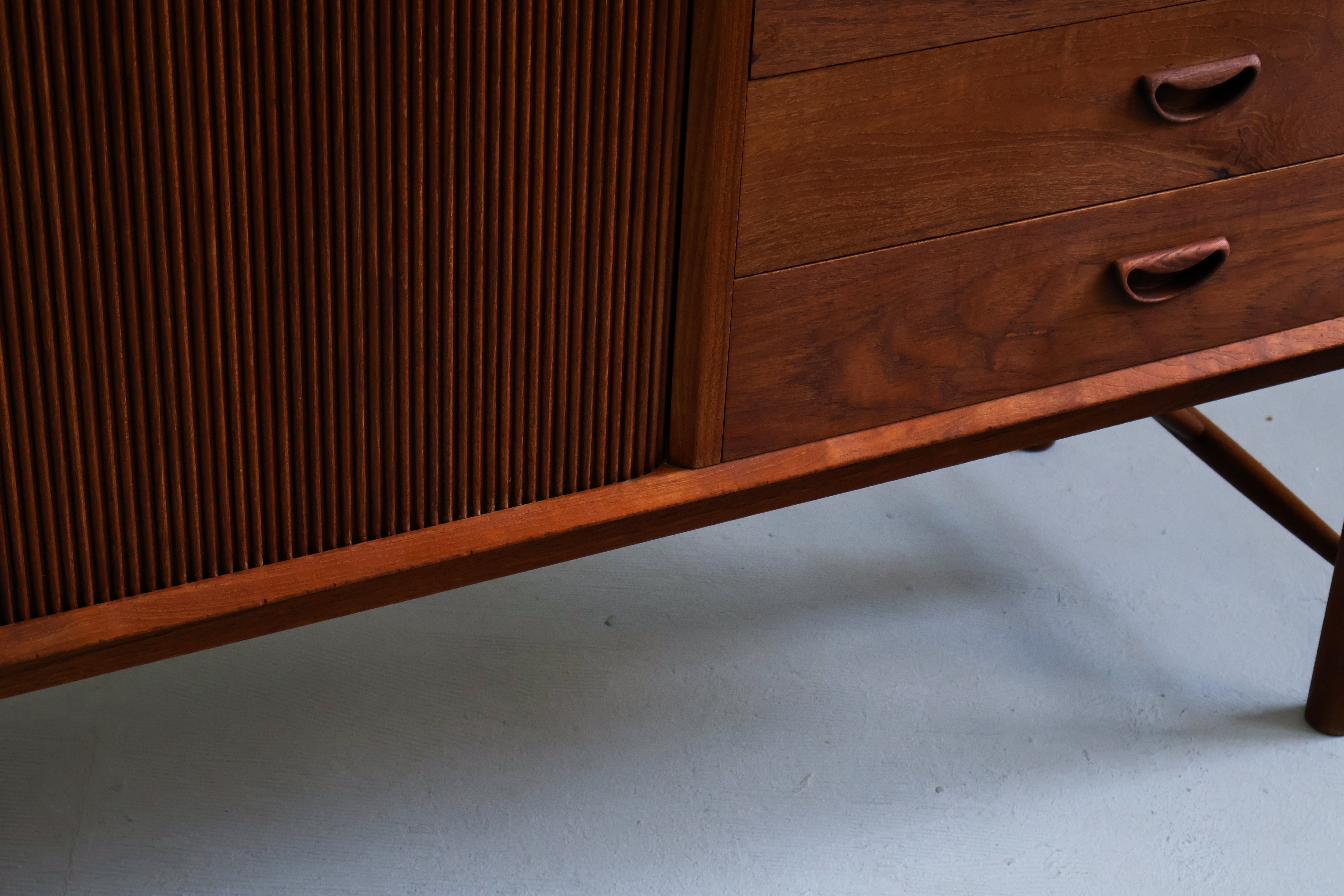 Sideboard „Lamellentüren“ aus den 60er-Jahren von Peter Hvidt. Hergestellt in Dänemark. Gefertigt aus Teak. Höhe 87 cm, Breite 166 cm, Tiefe 48 cm.