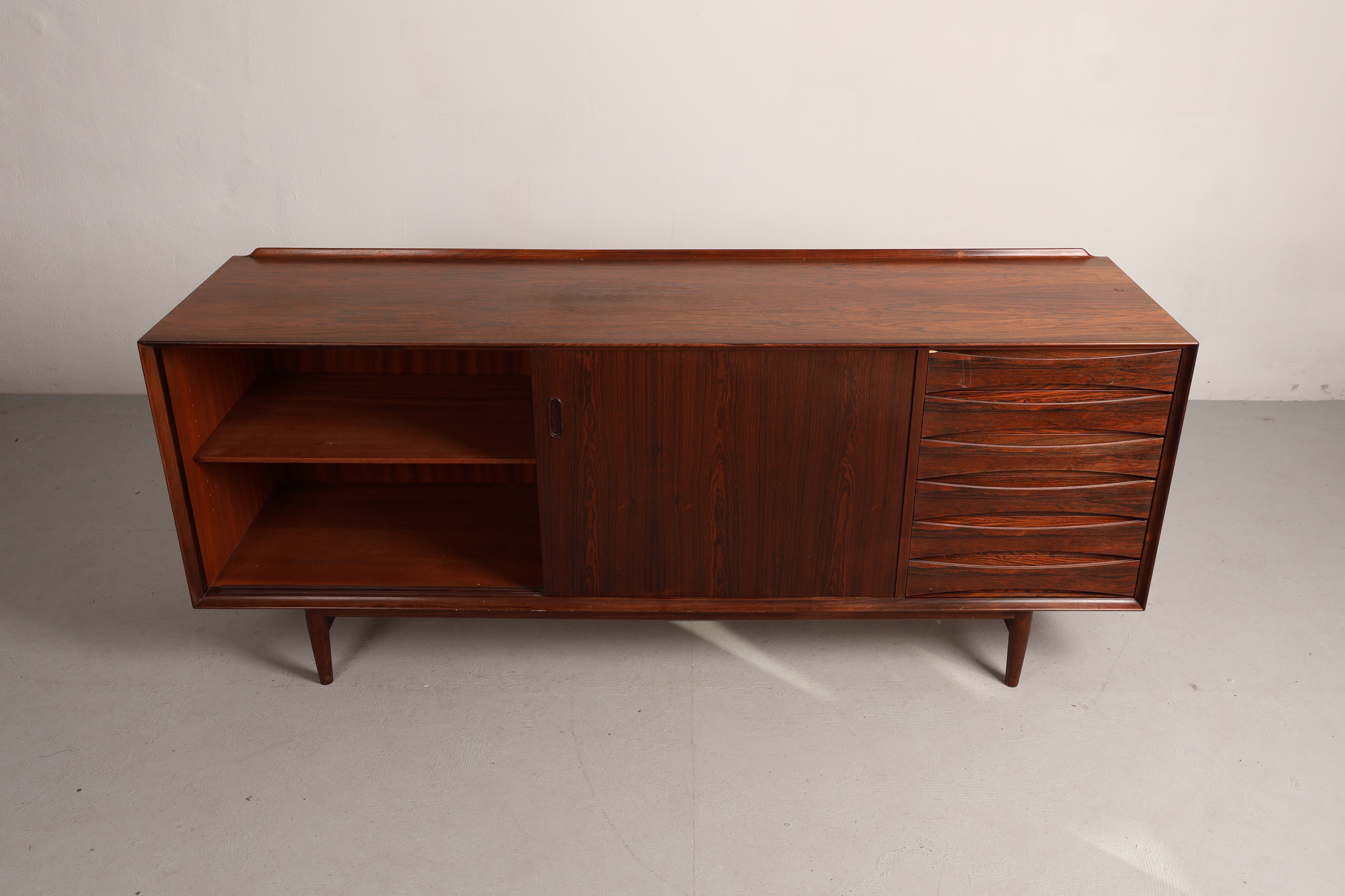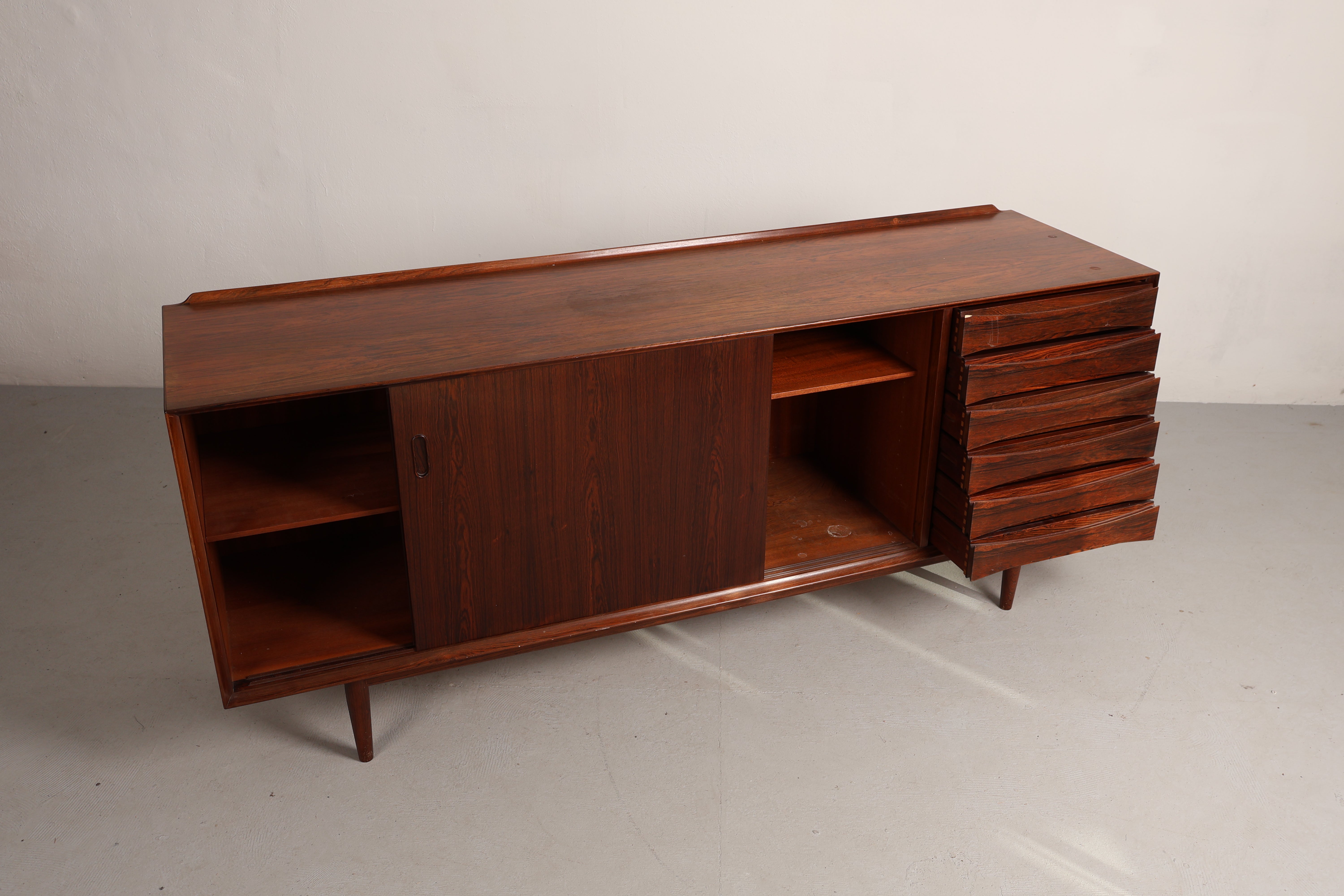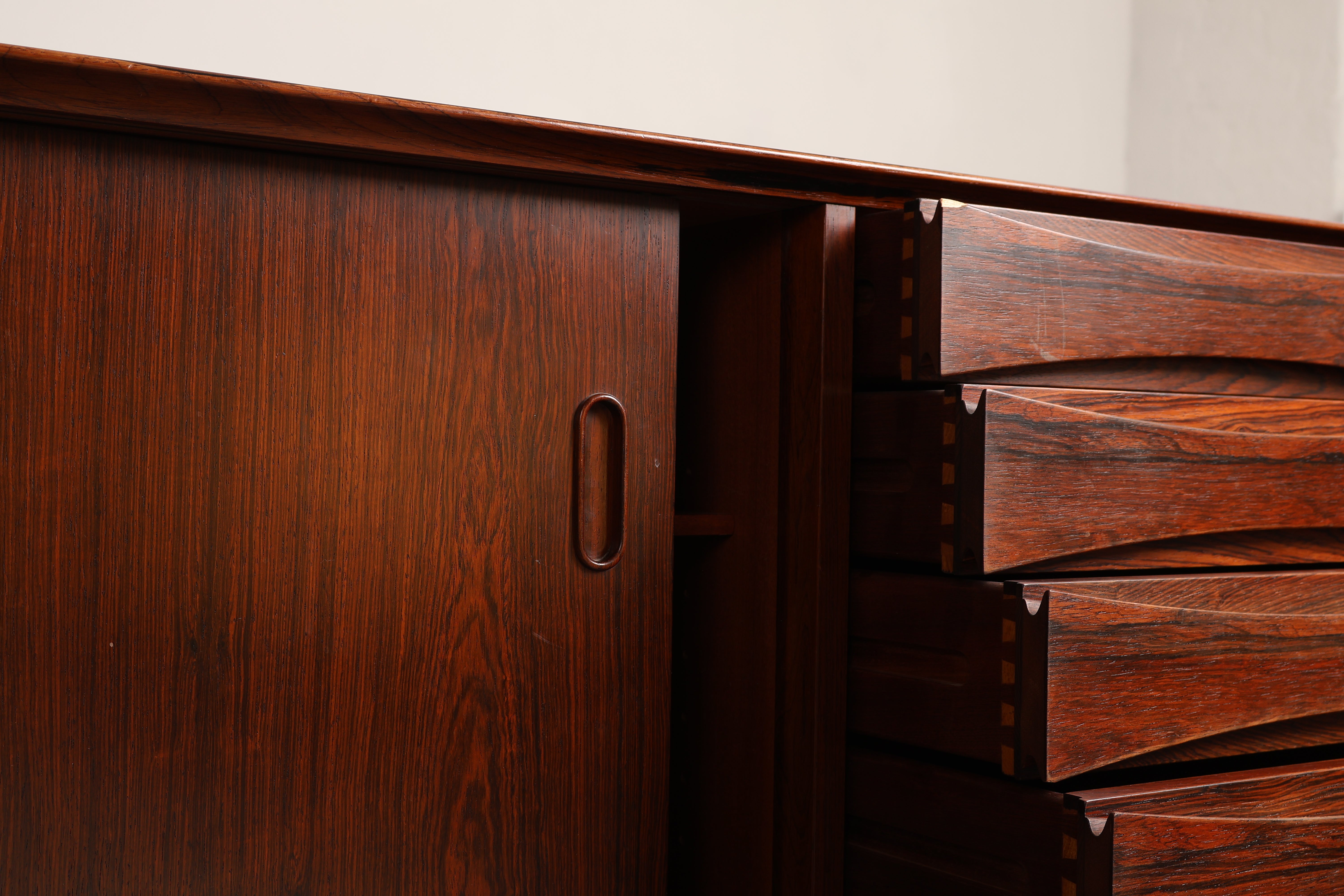 Sideboard „Modell 0529“ aus den 60er-Jahren von Arne Vodder. Hergestellt in Dänemark. Gefertigt aus Palisander. Höhe 76 cm, Breite 182 cm, Tiefe 49 cm.
