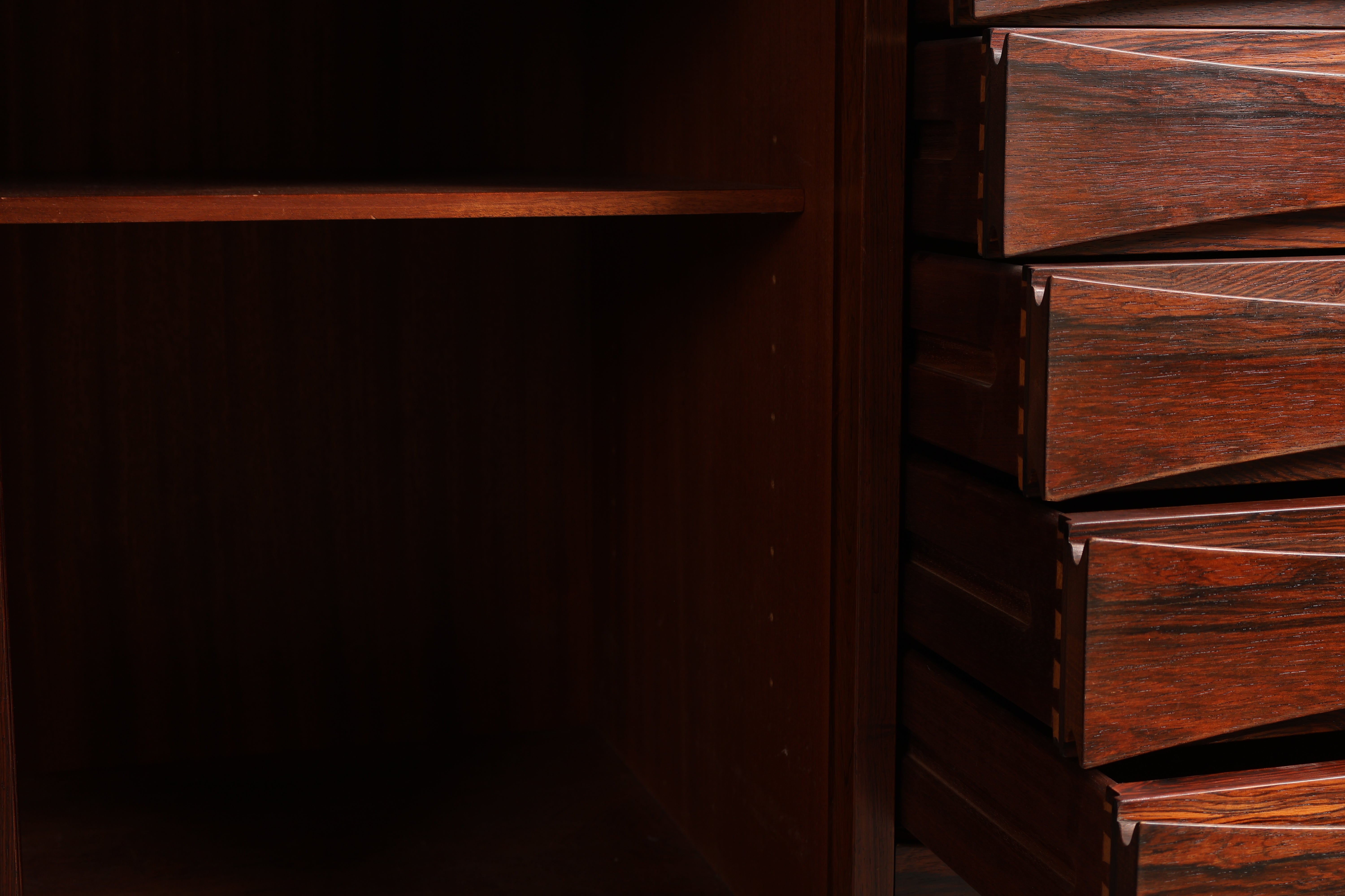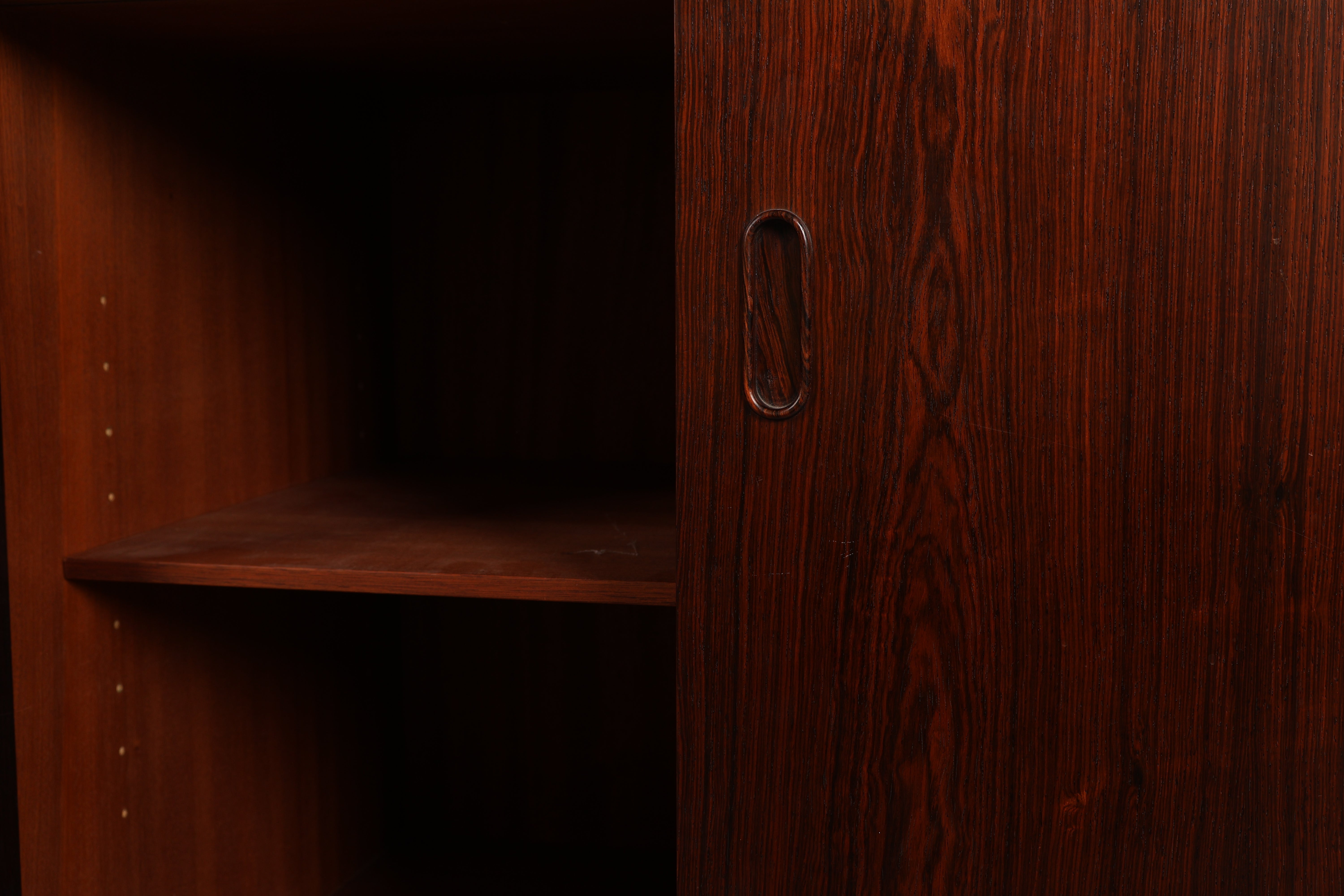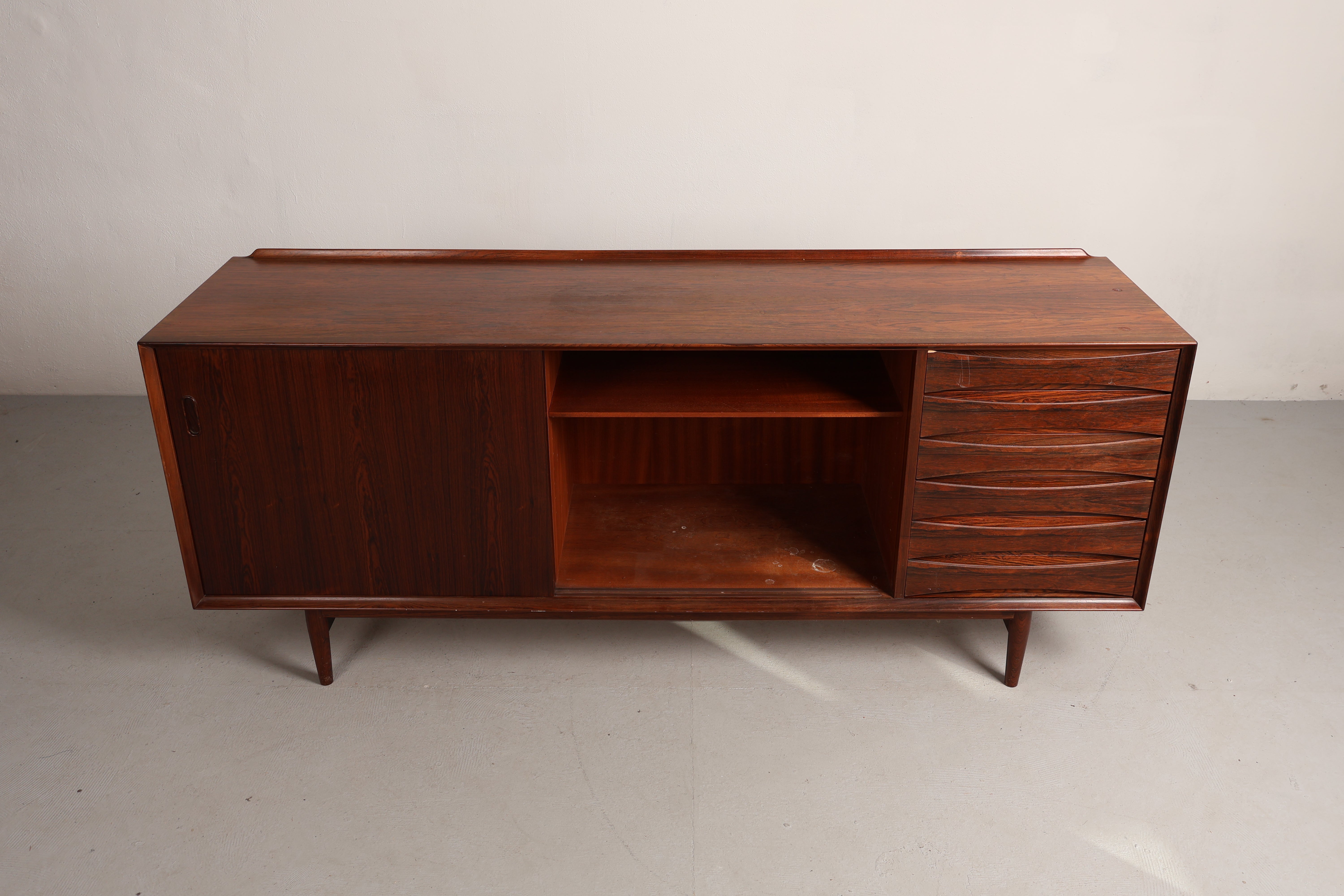Sideboard „Modell 0529“ aus den 60er-Jahren von Arne Vodder. Hergestellt in Dänemark. Gefertigt aus Palisander. Höhe 76 cm, Breite 182 cm, Tiefe 49 cm.