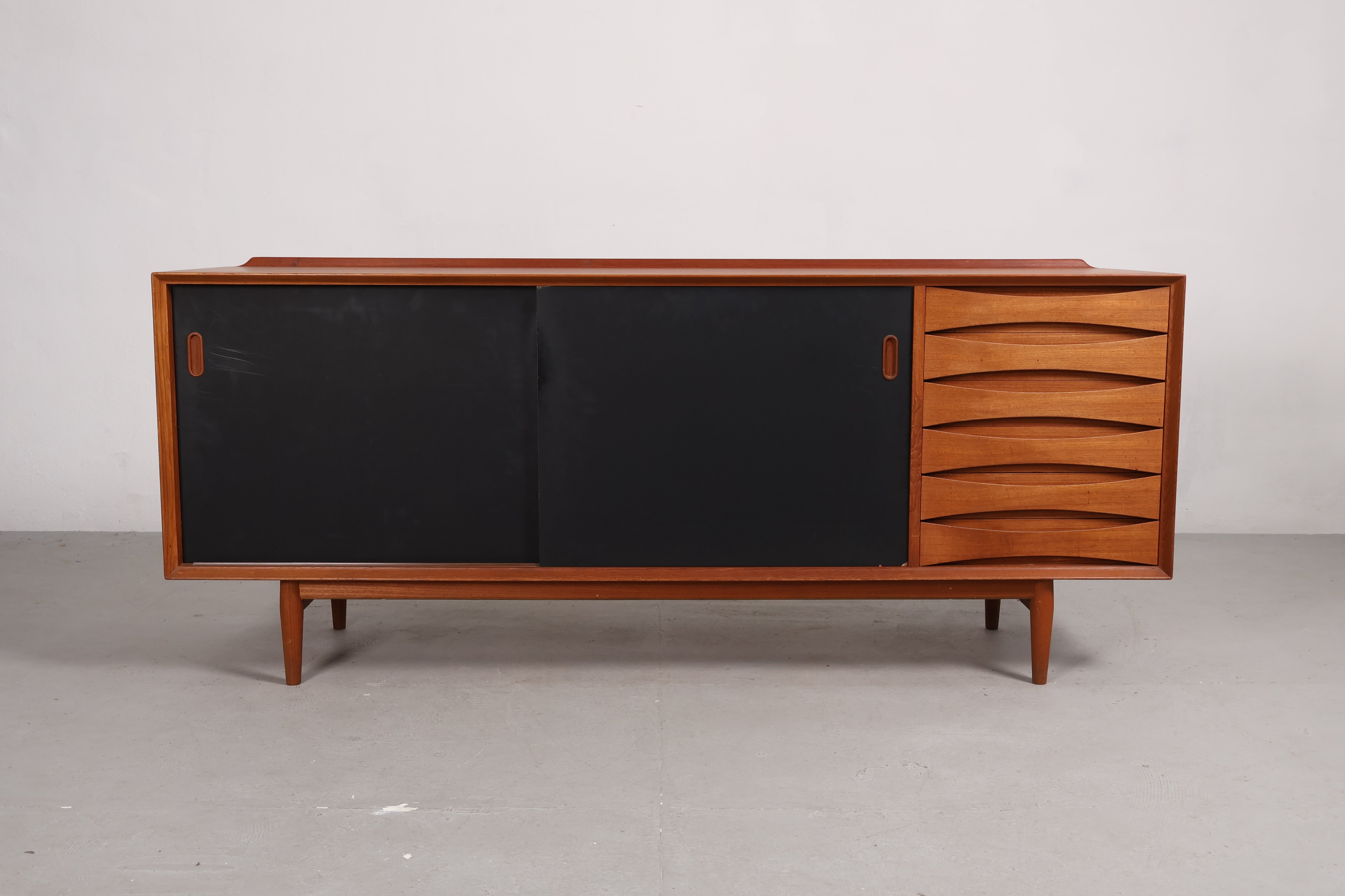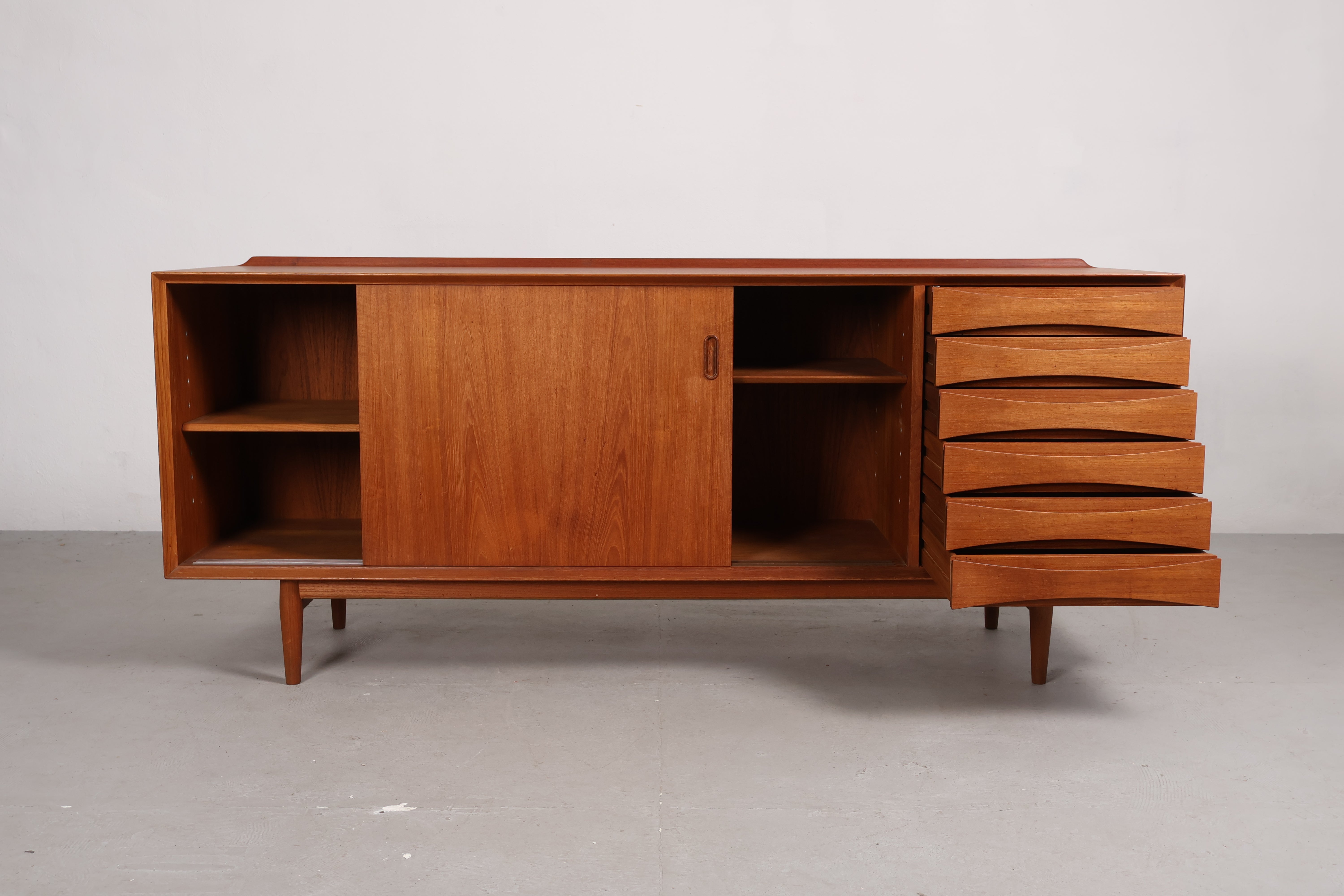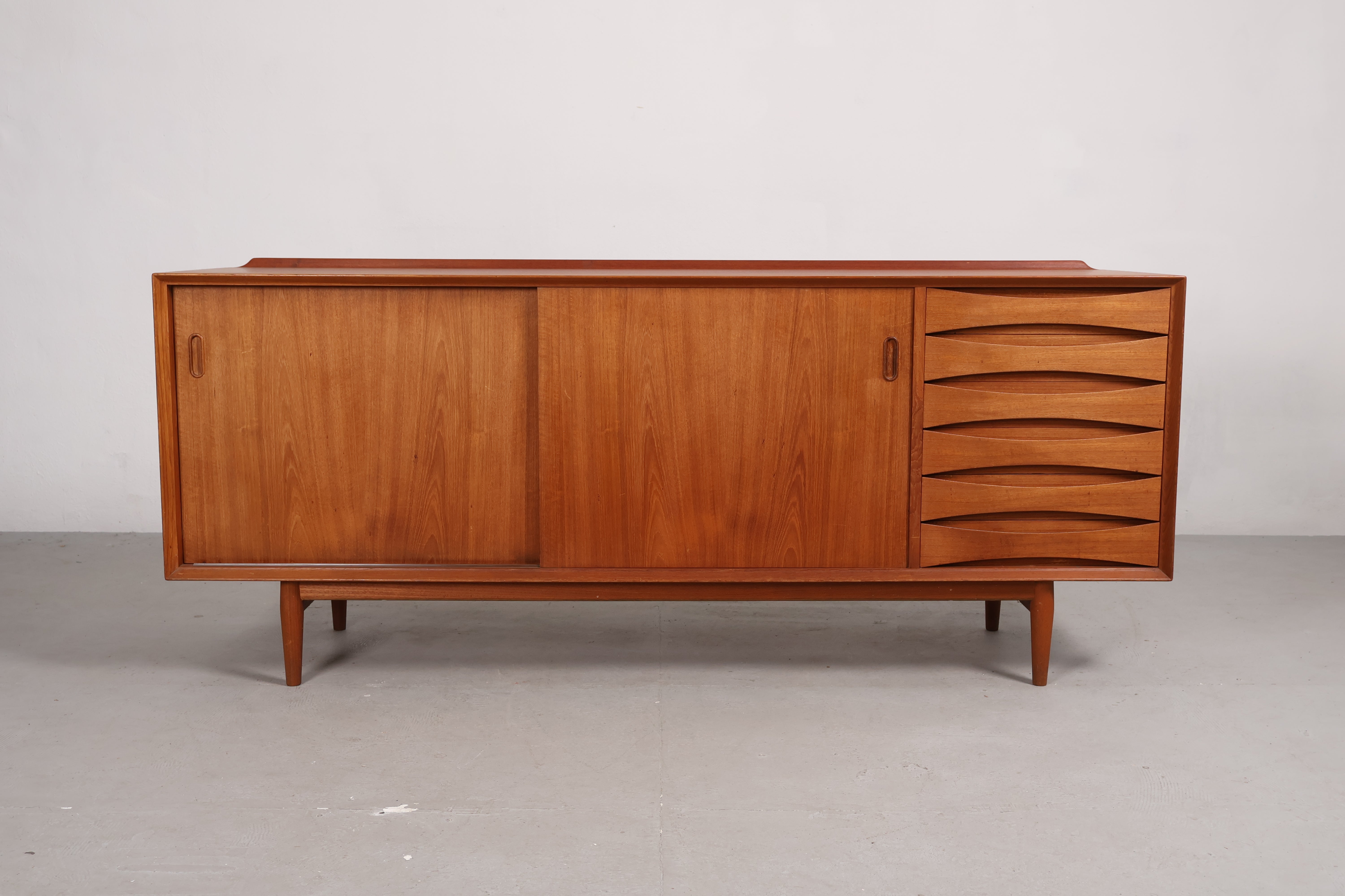 Sideboard „Modell 0529“ aus den 60er-Jahren von Arne Vodder für Sibast Møbelfabrik. Hergestellt in Dänemark. Gefertigt aus Teak. Höhe 77 cm, Breite 182 cm, Tiefe 50 cm.