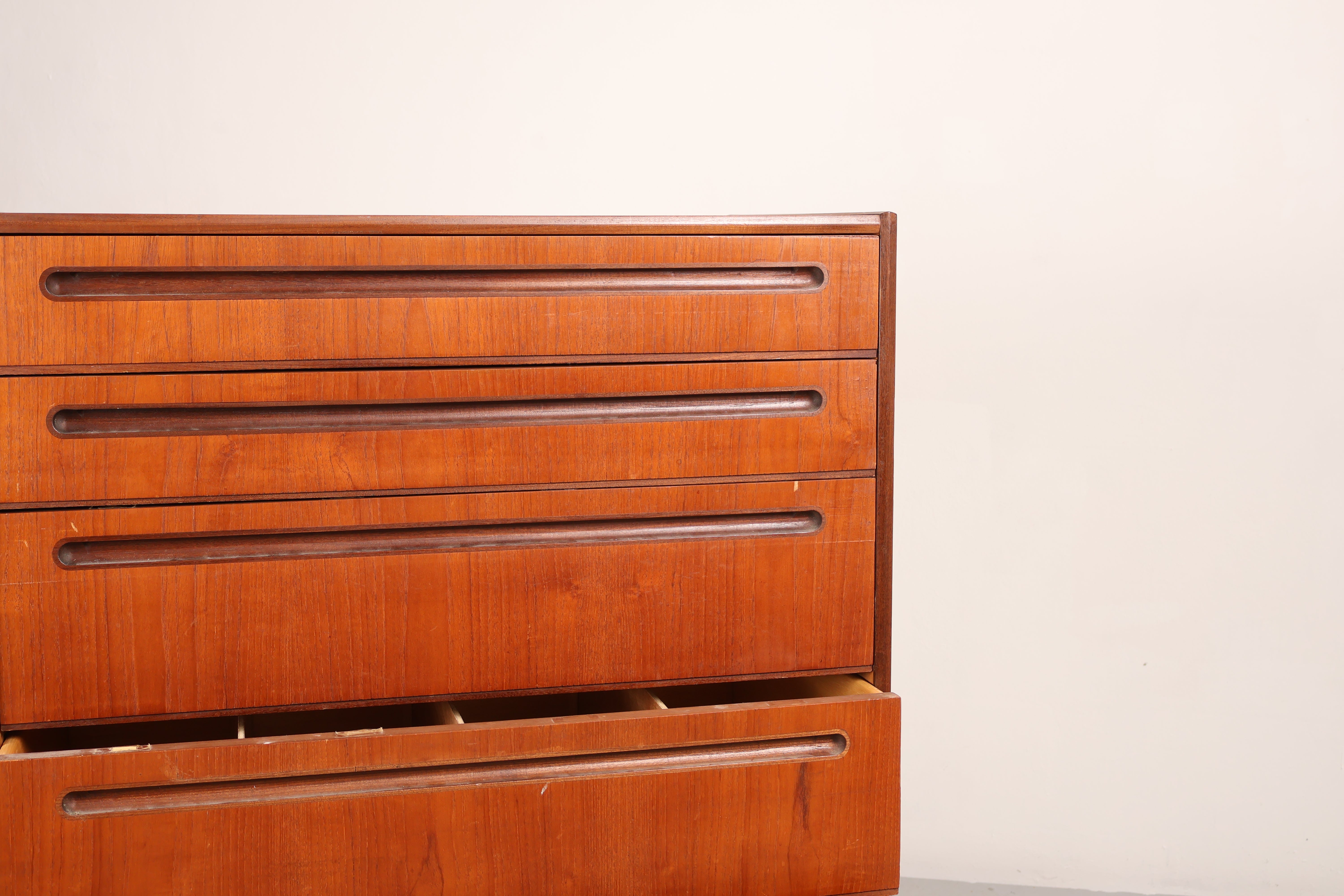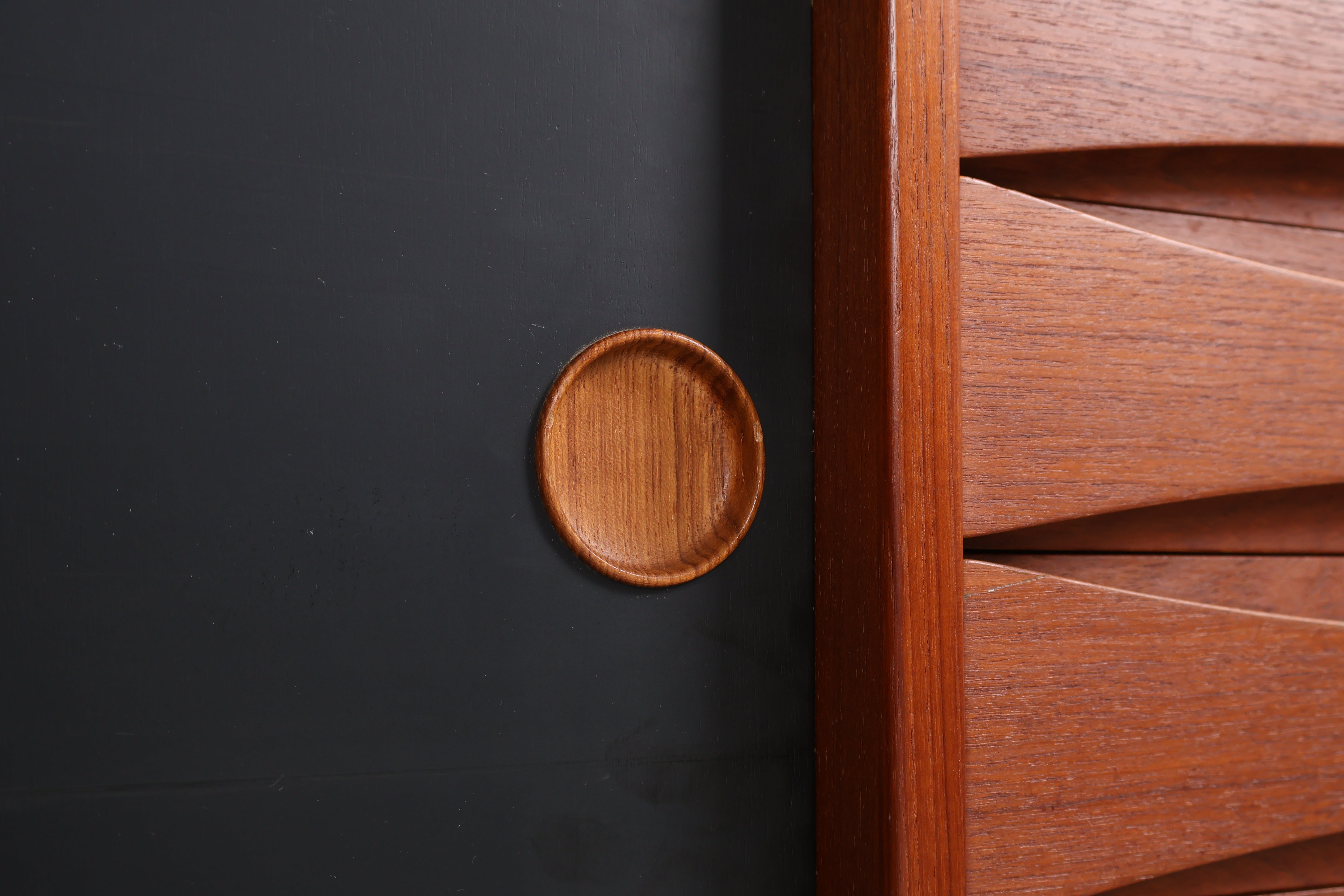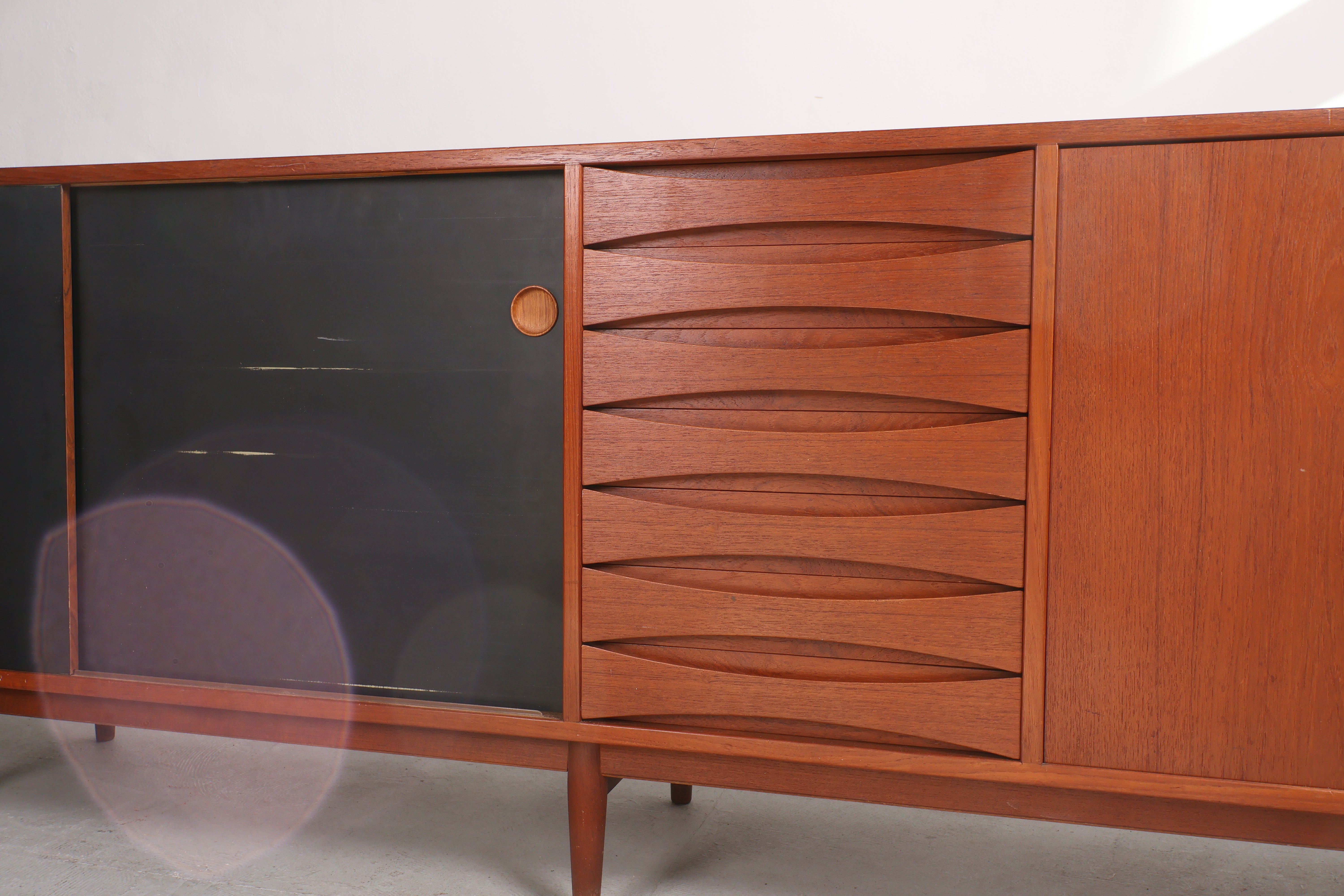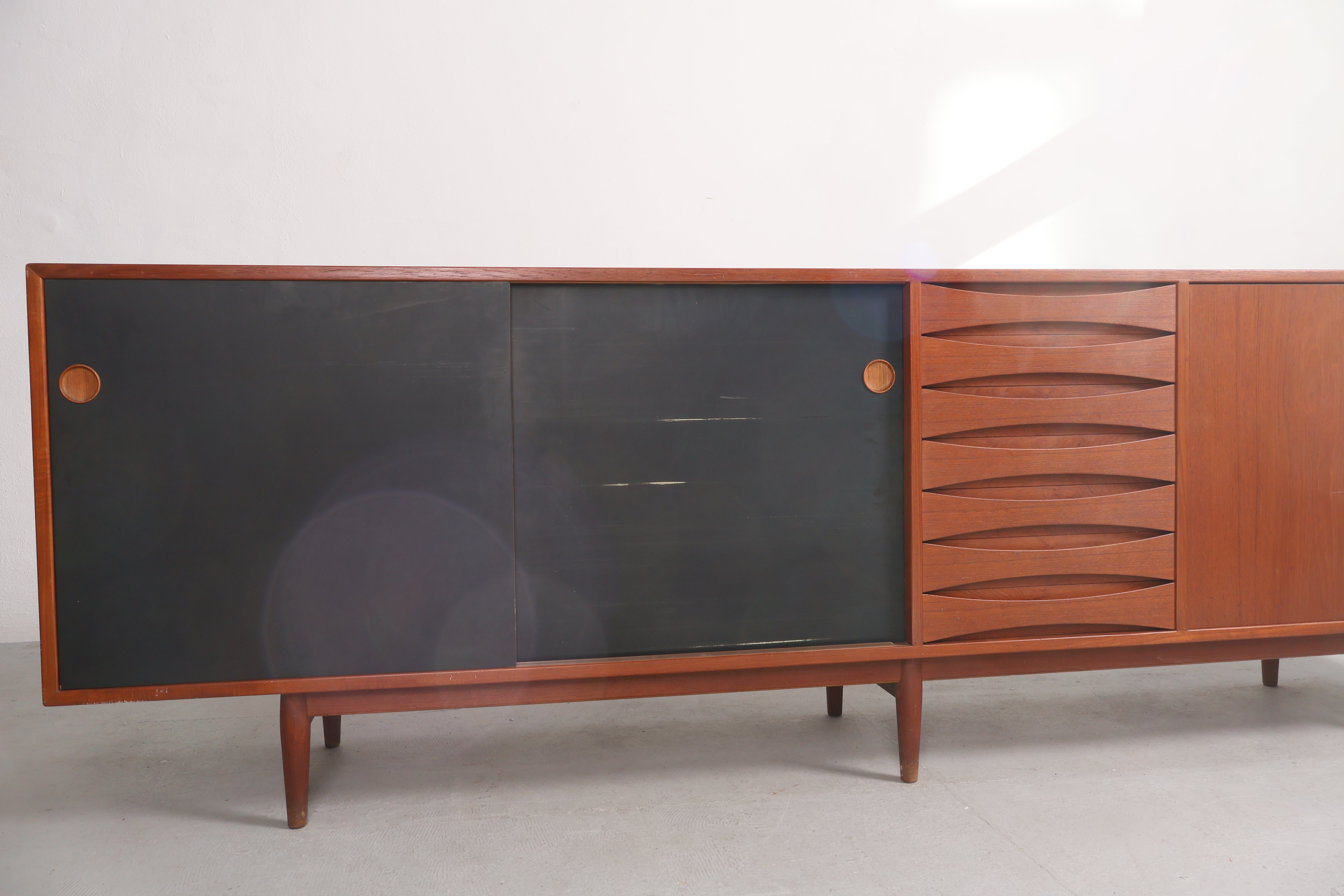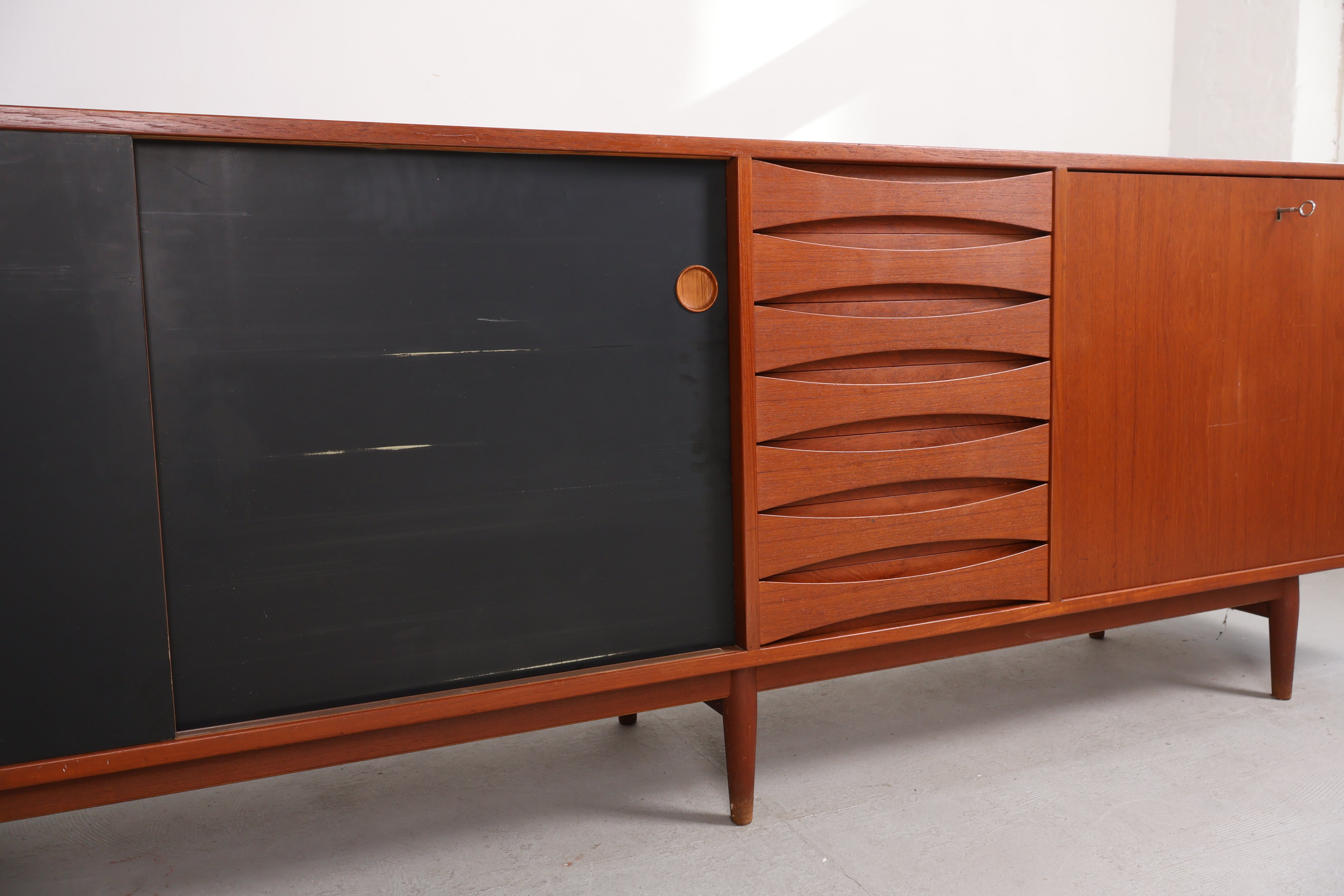 Sideboard „Triennale“ aus den 70er-Jahren von Arne Vodder für Sibast Møbelfabrik. Hergestellt in Dänemark. Gefertigt aus Teak. Höhe 81 cm, Breite 248 cm, Tiefe 47 cm.