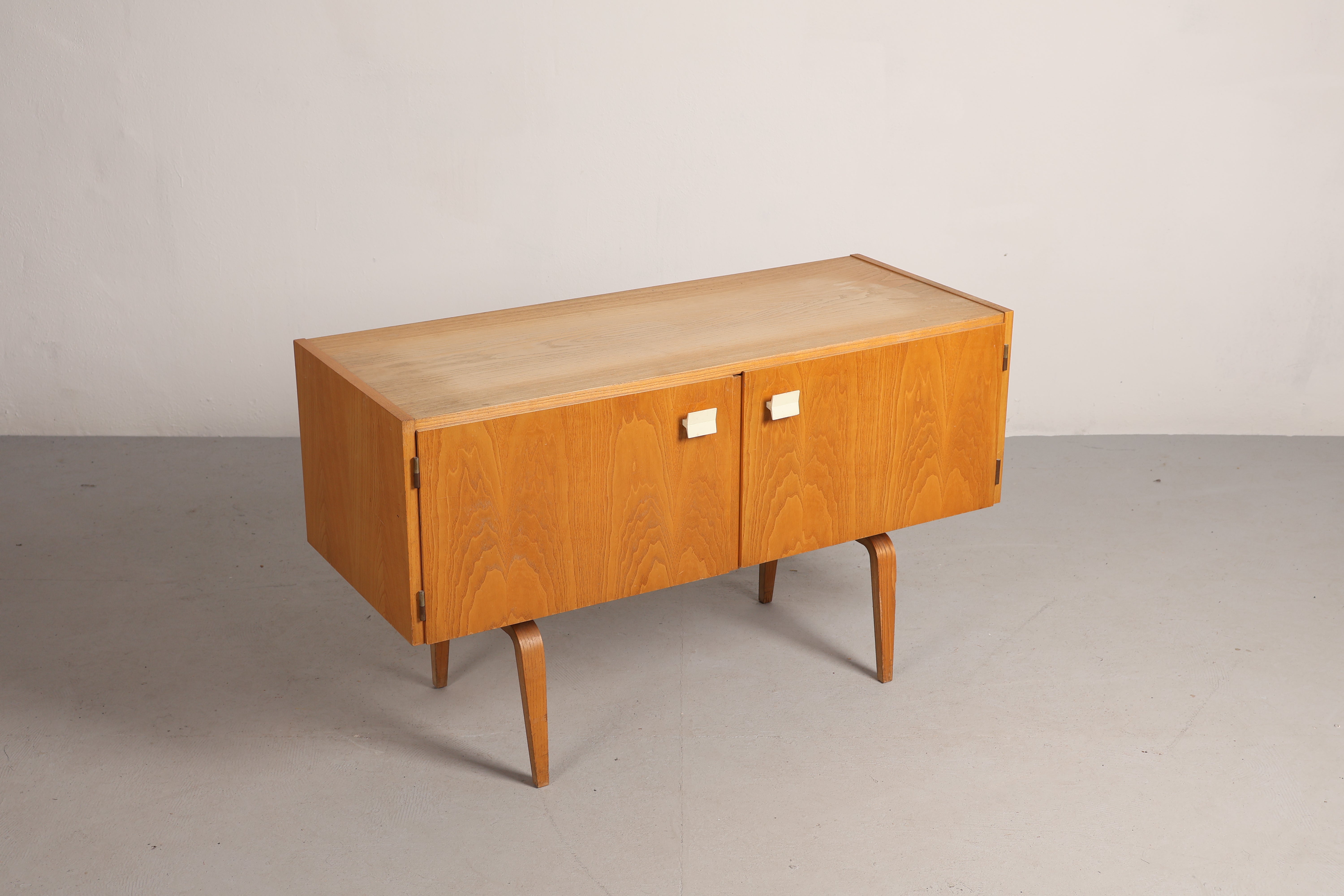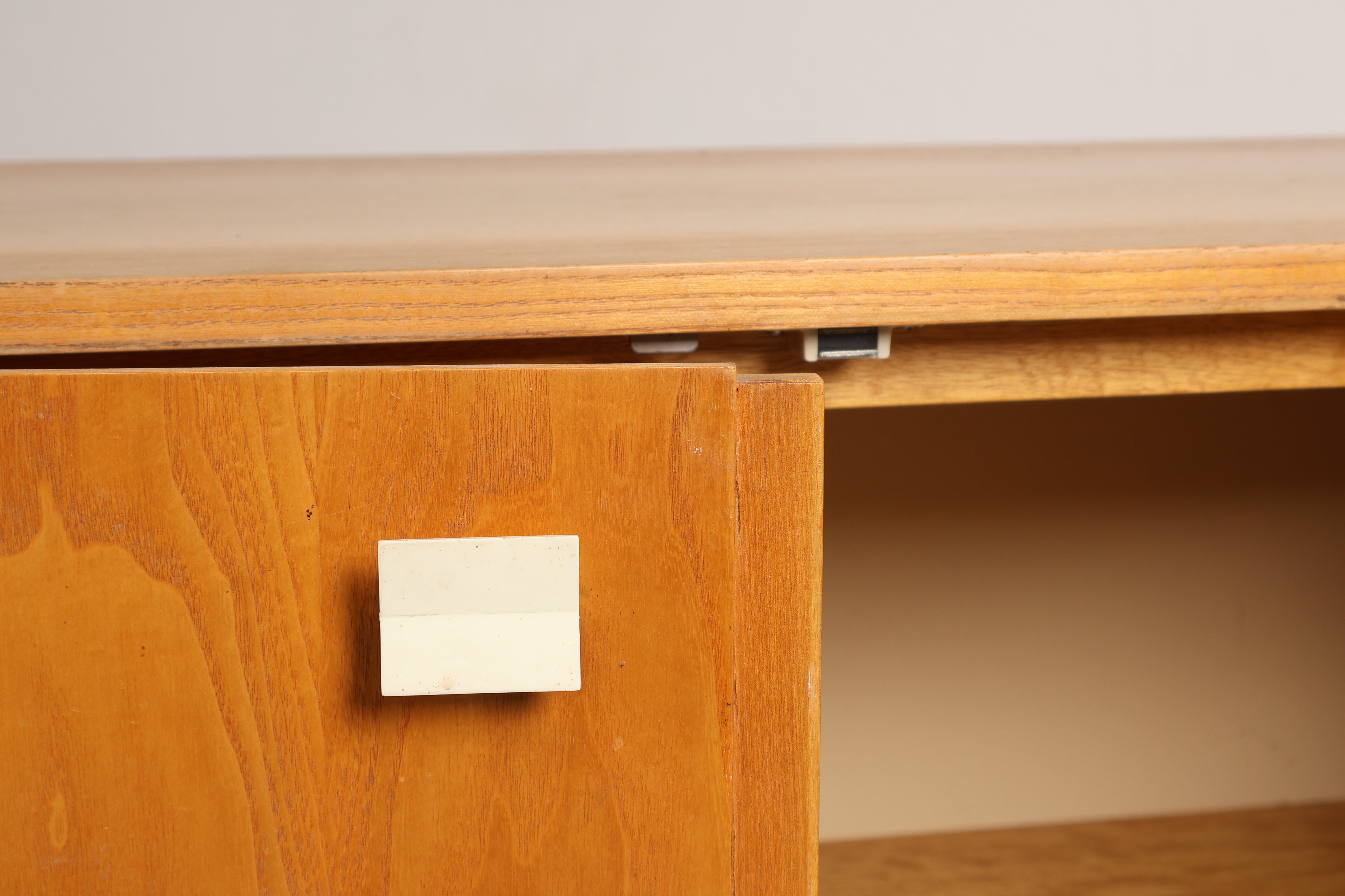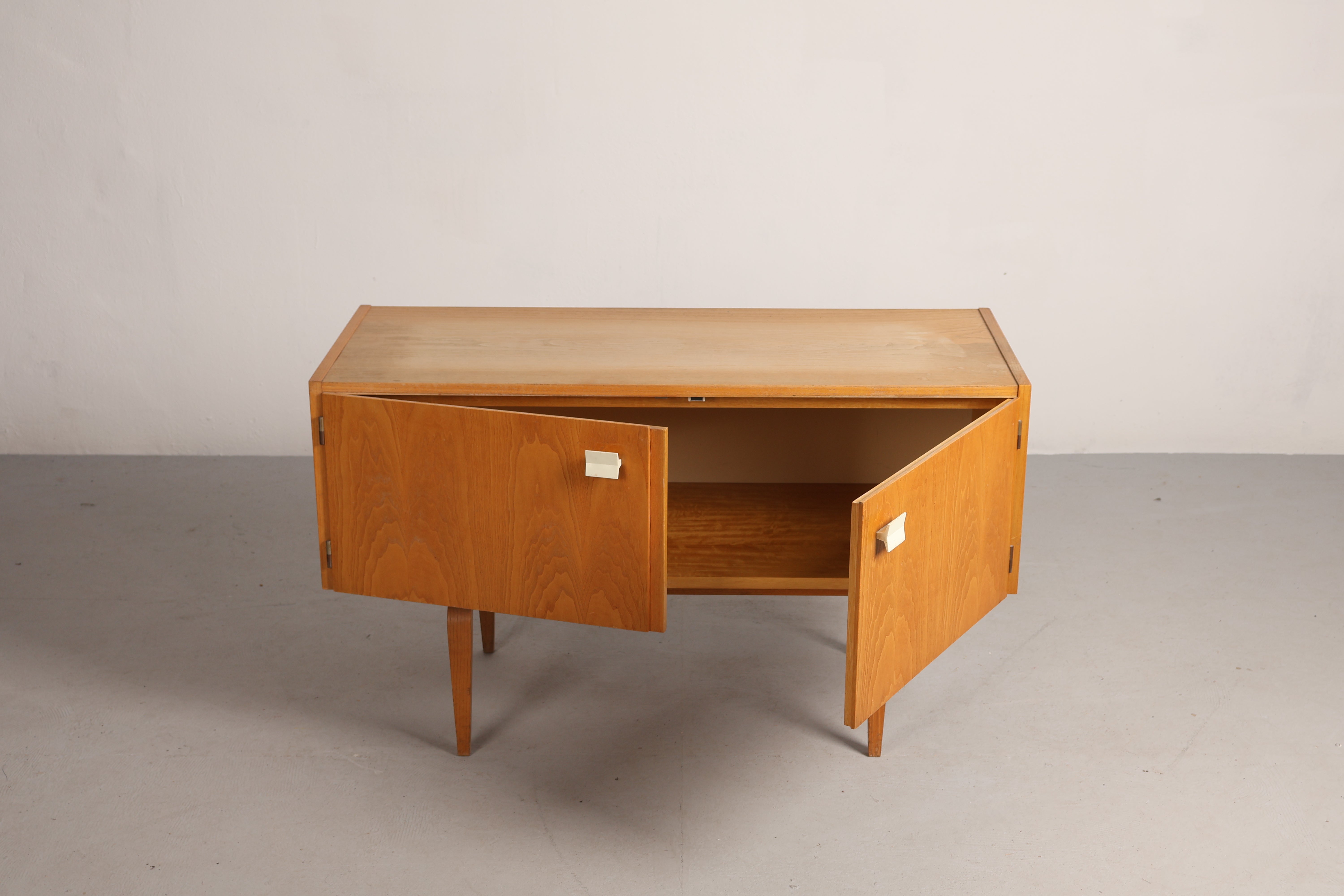 Sideboard aus den 60er-Jahren von Franz Ehrlich für Hellerau. Hergestellt in Deutschland. Gefertigt aus Eiche. Höhe 65 cm, Breite 110 cm, Tiefe 45 cm.