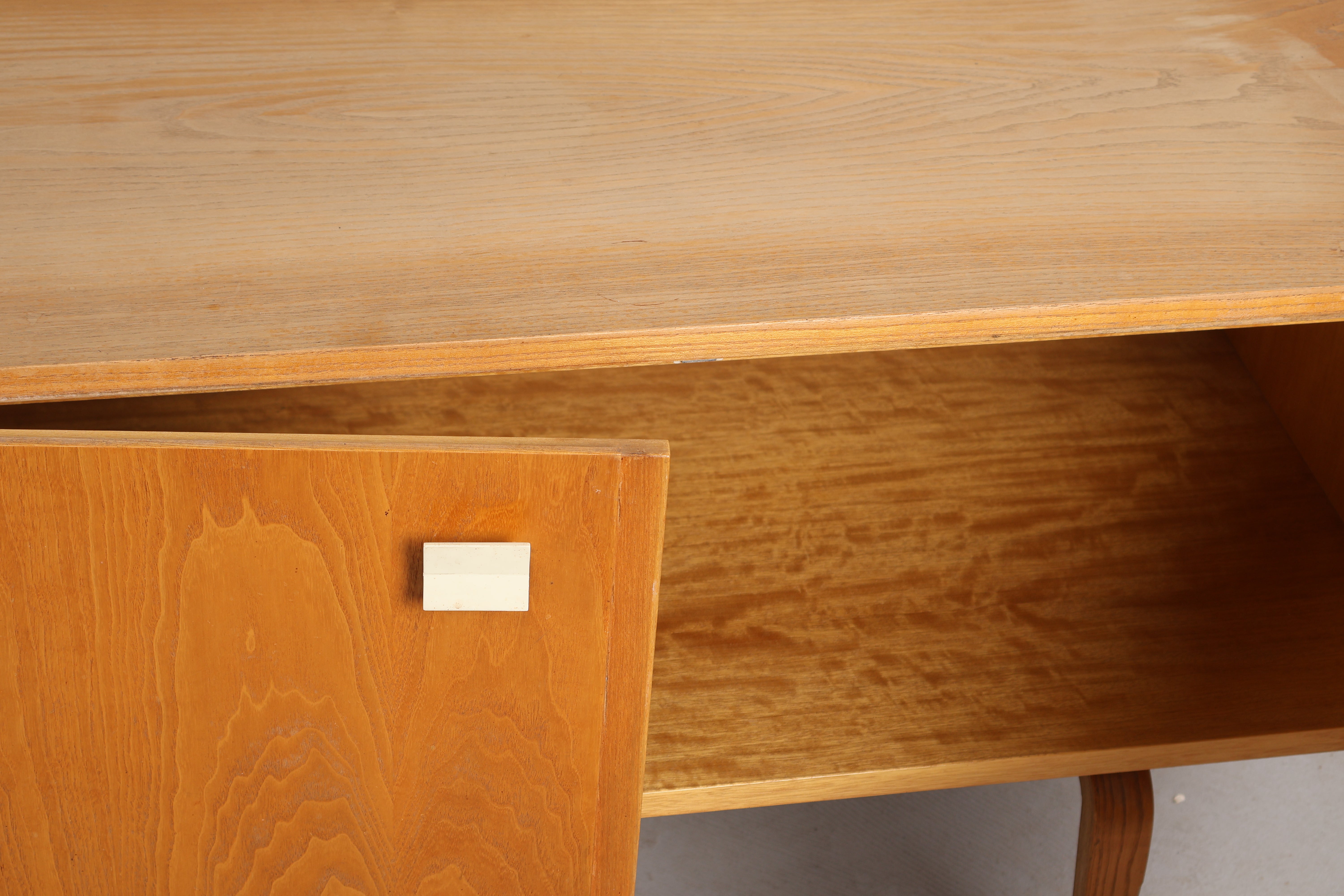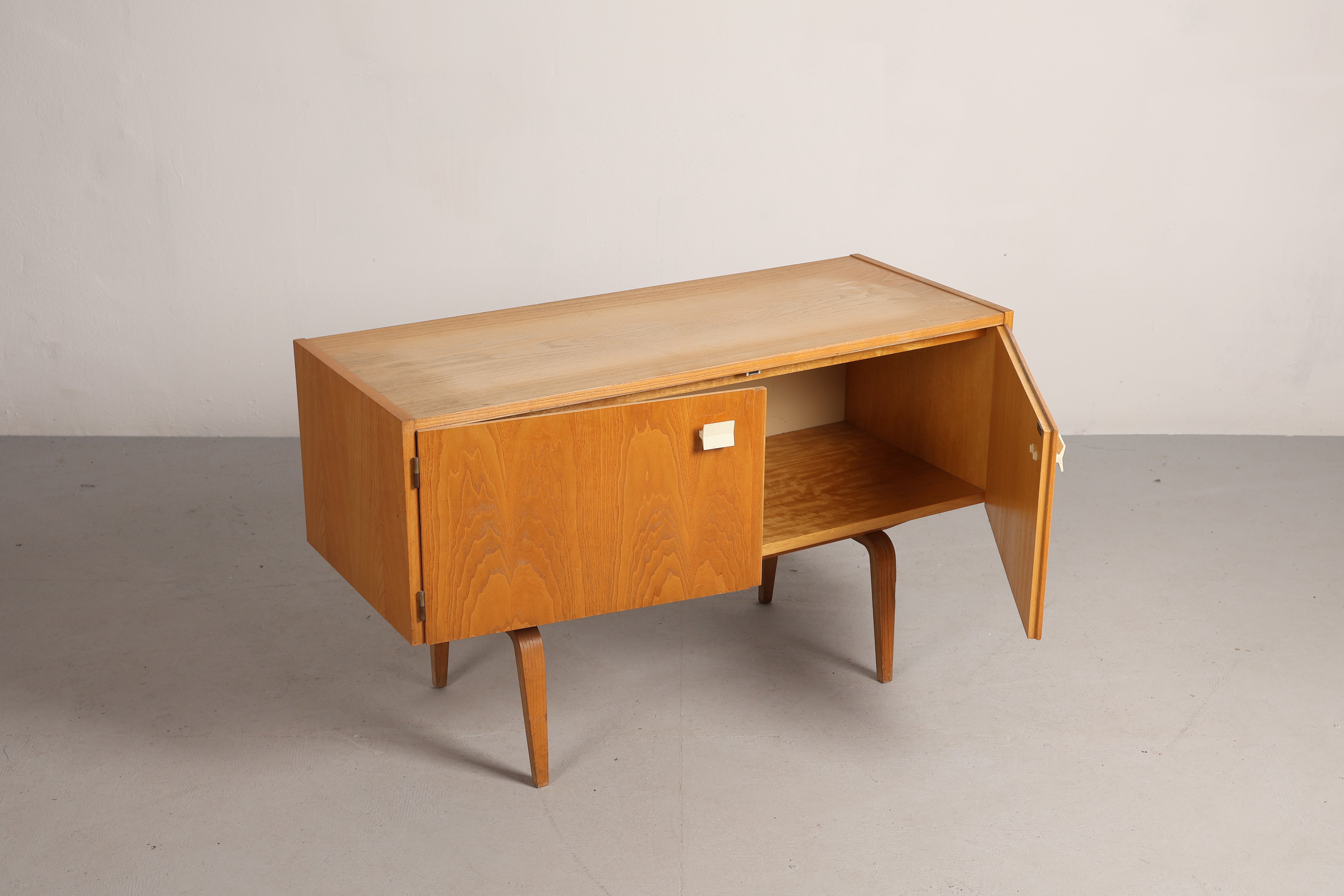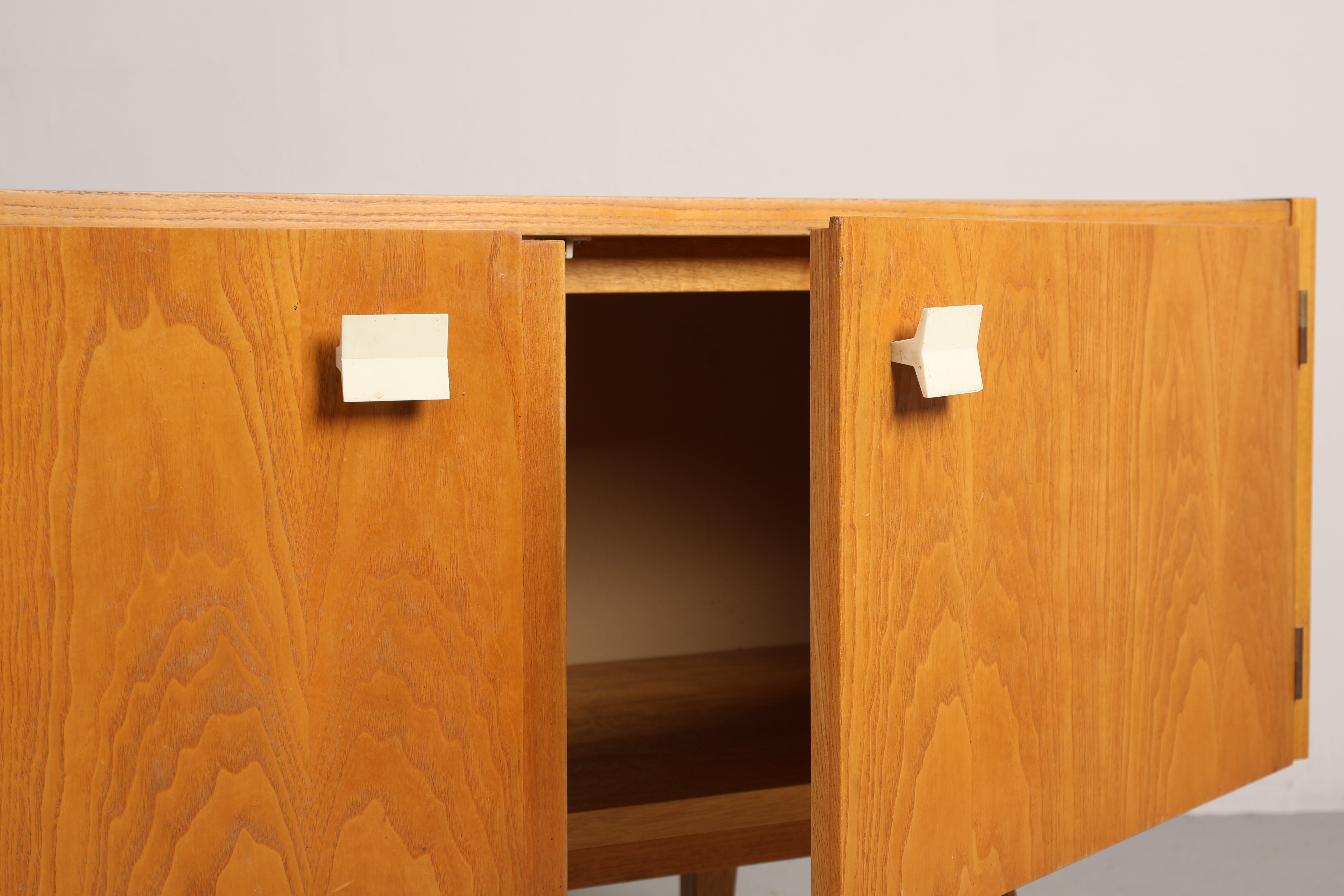 Sideboard aus den 60er-Jahren von Franz Ehrlich für Hellerau. Hergestellt in Deutschland. Gefertigt aus Eiche. Höhe 65 cm, Breite 110 cm, Tiefe 45 cm.