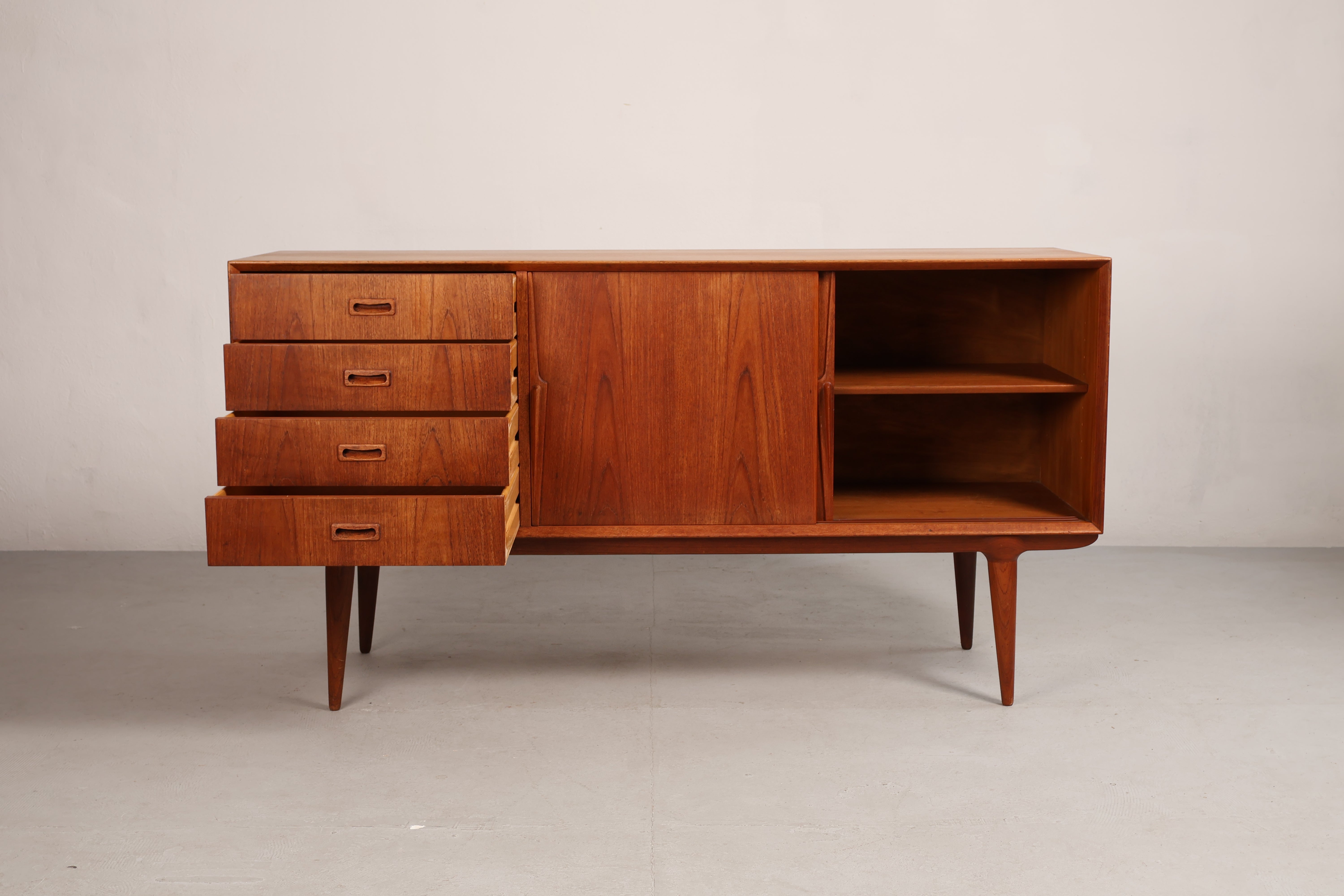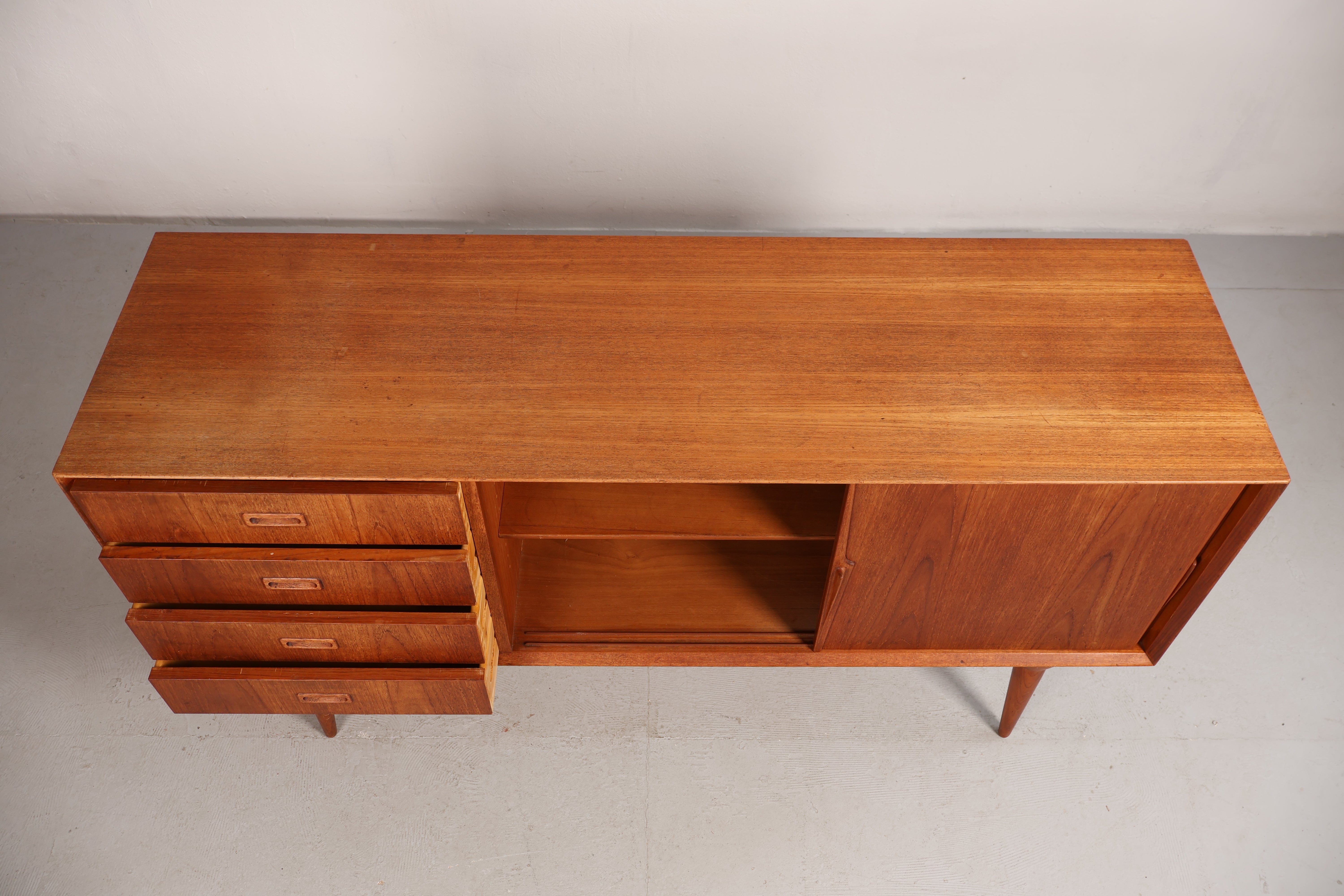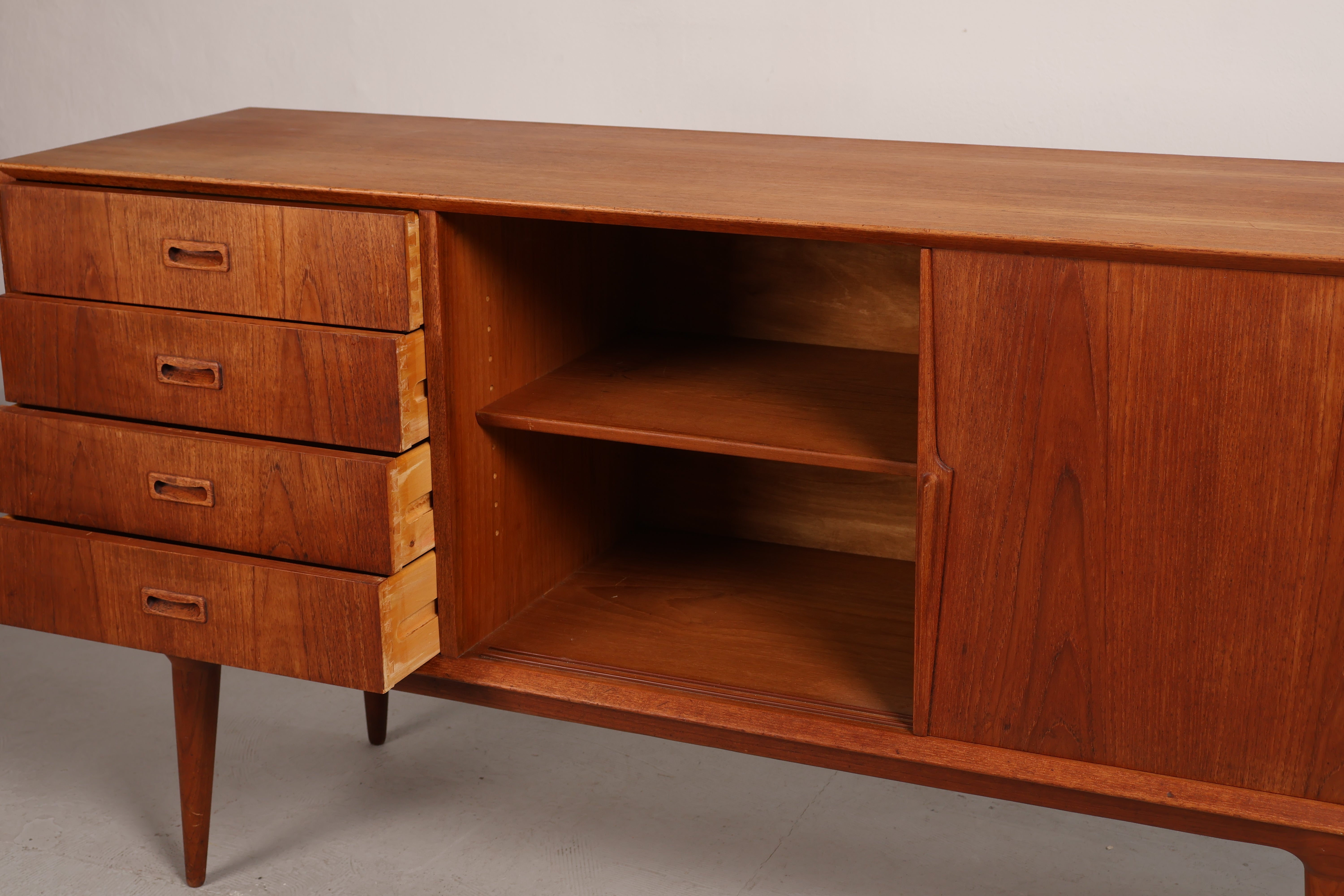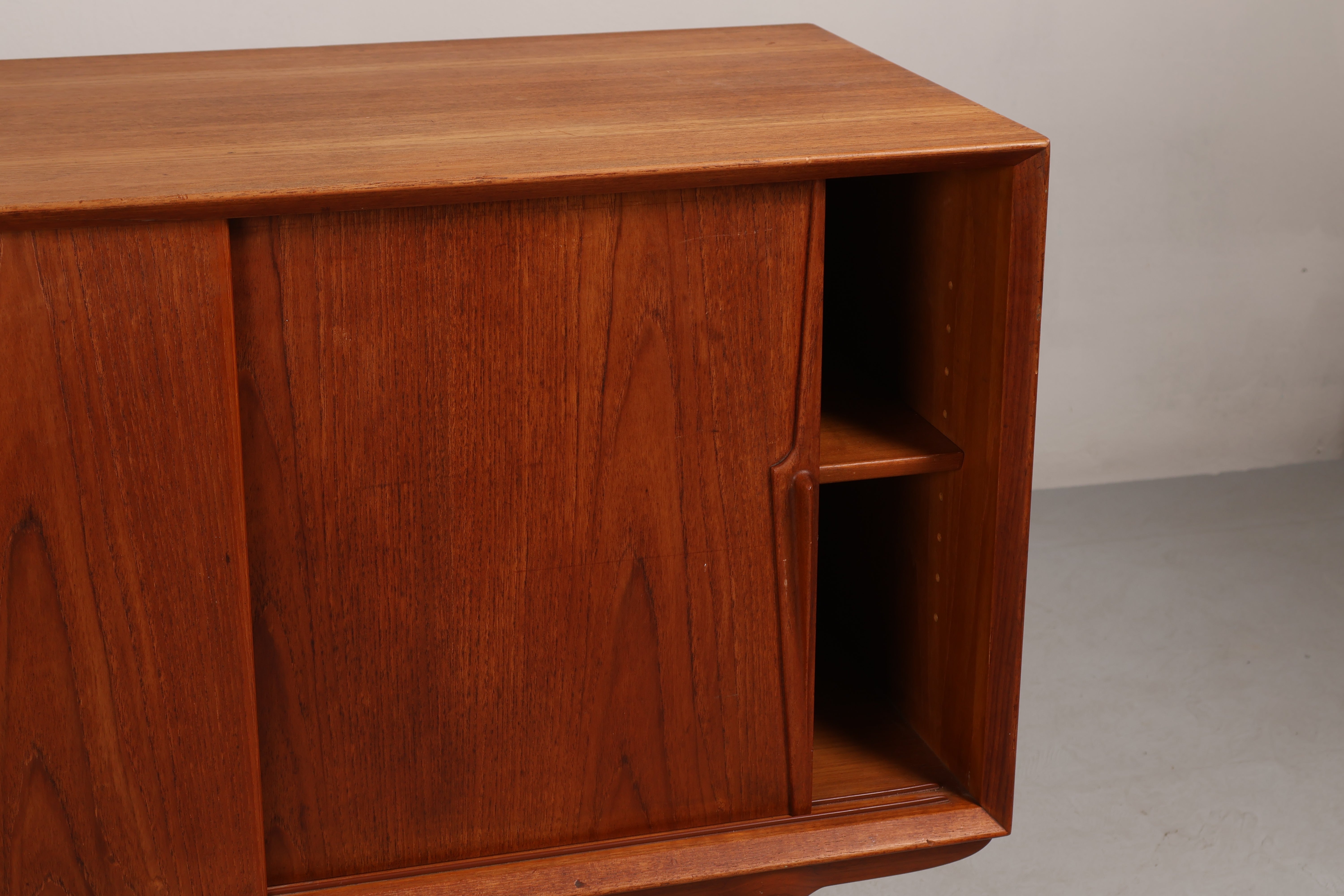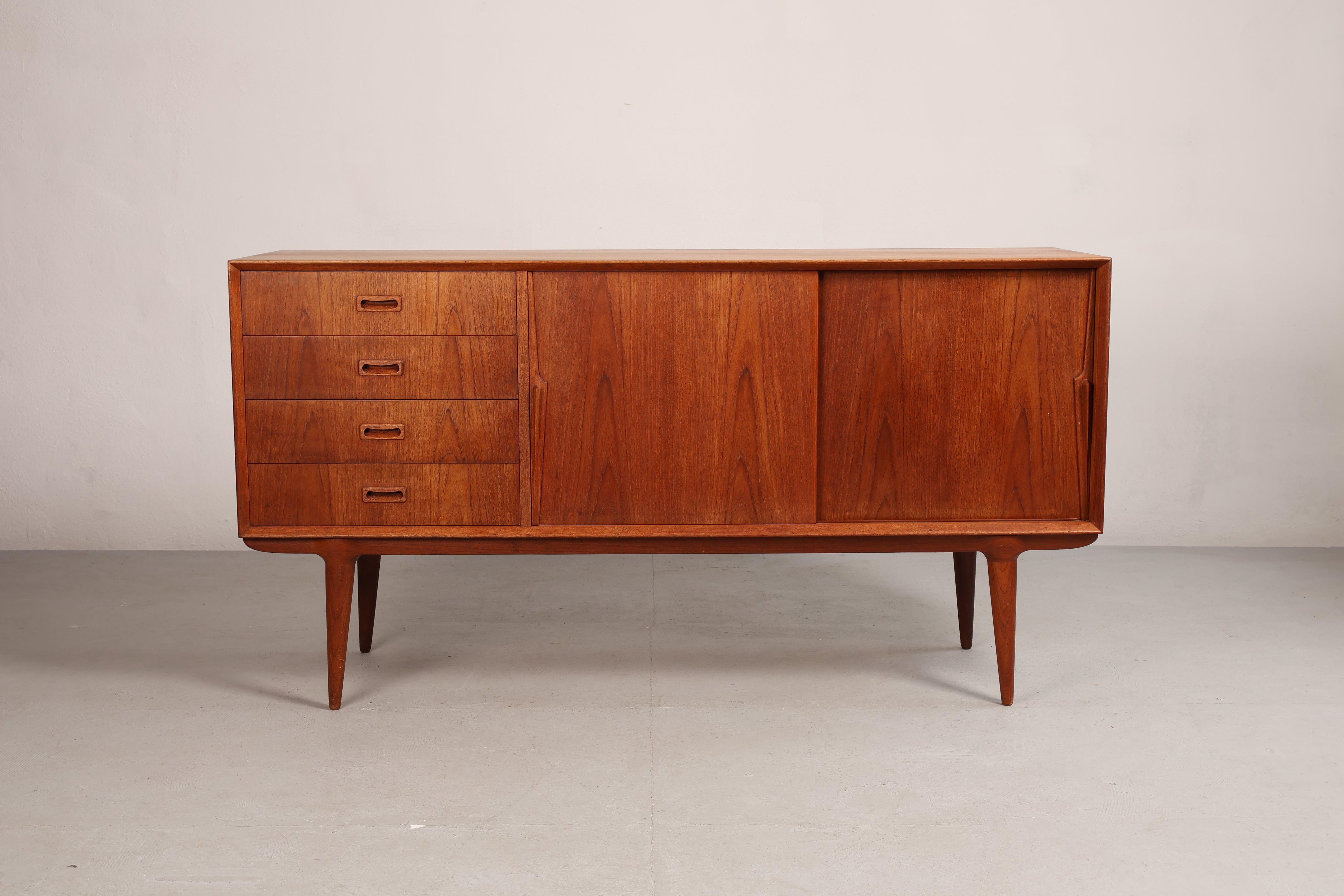 Sideboard aus den 60er-Jahren von Omann Jun. Hergestellt in Dänemark. Gefertigt aus Teak. Höhe 35 cm, Breite 160 cm, Tiefe 48 cm.