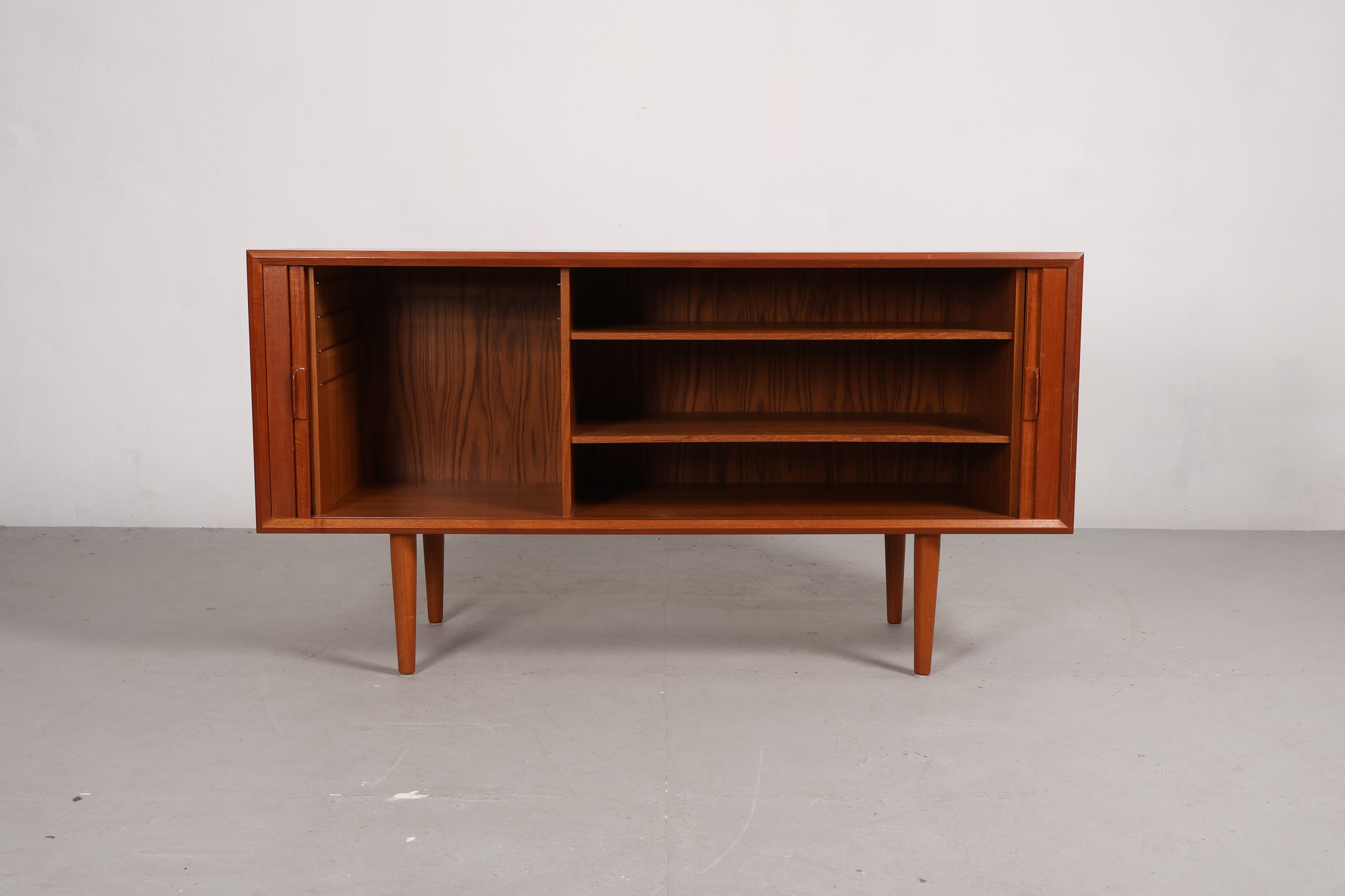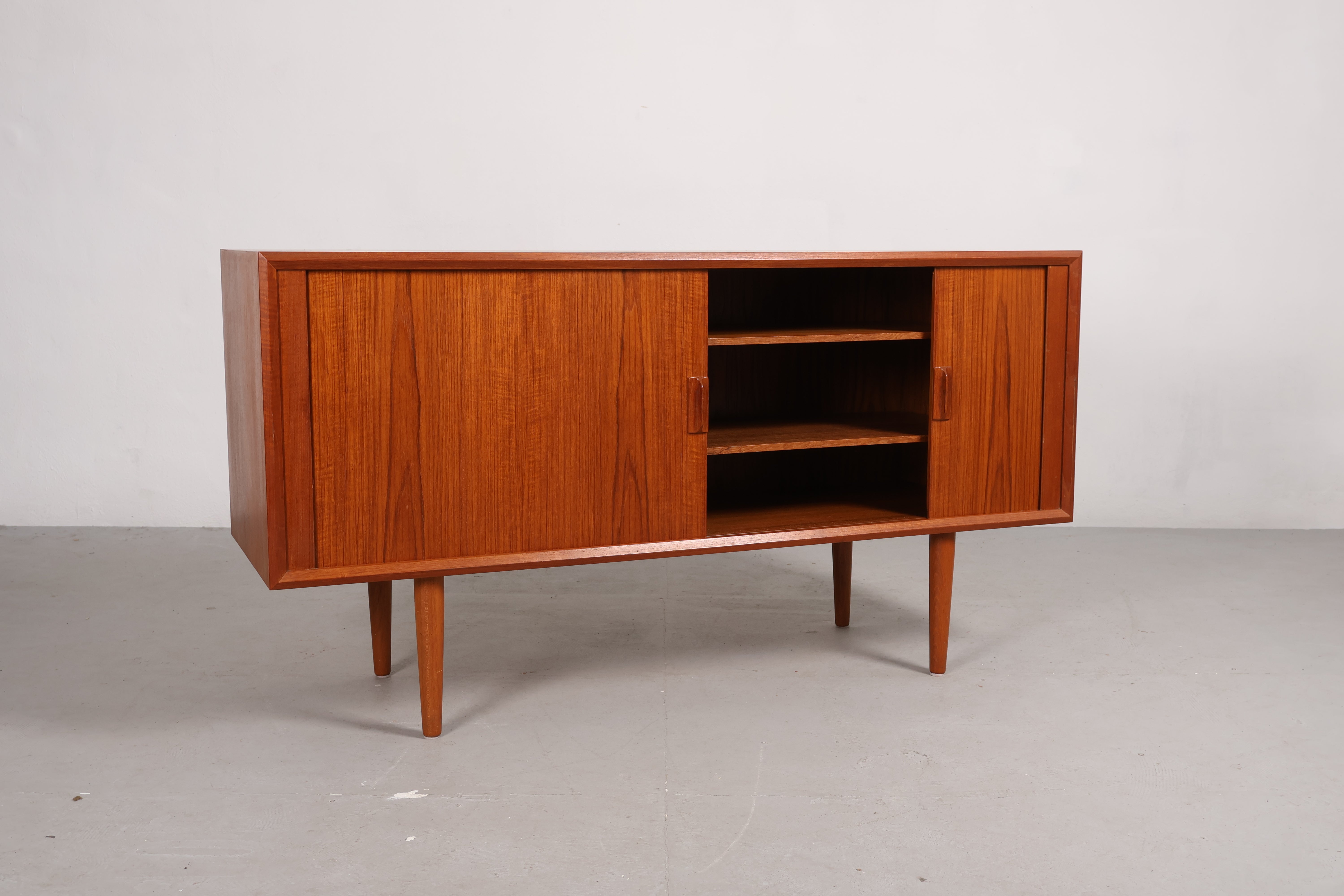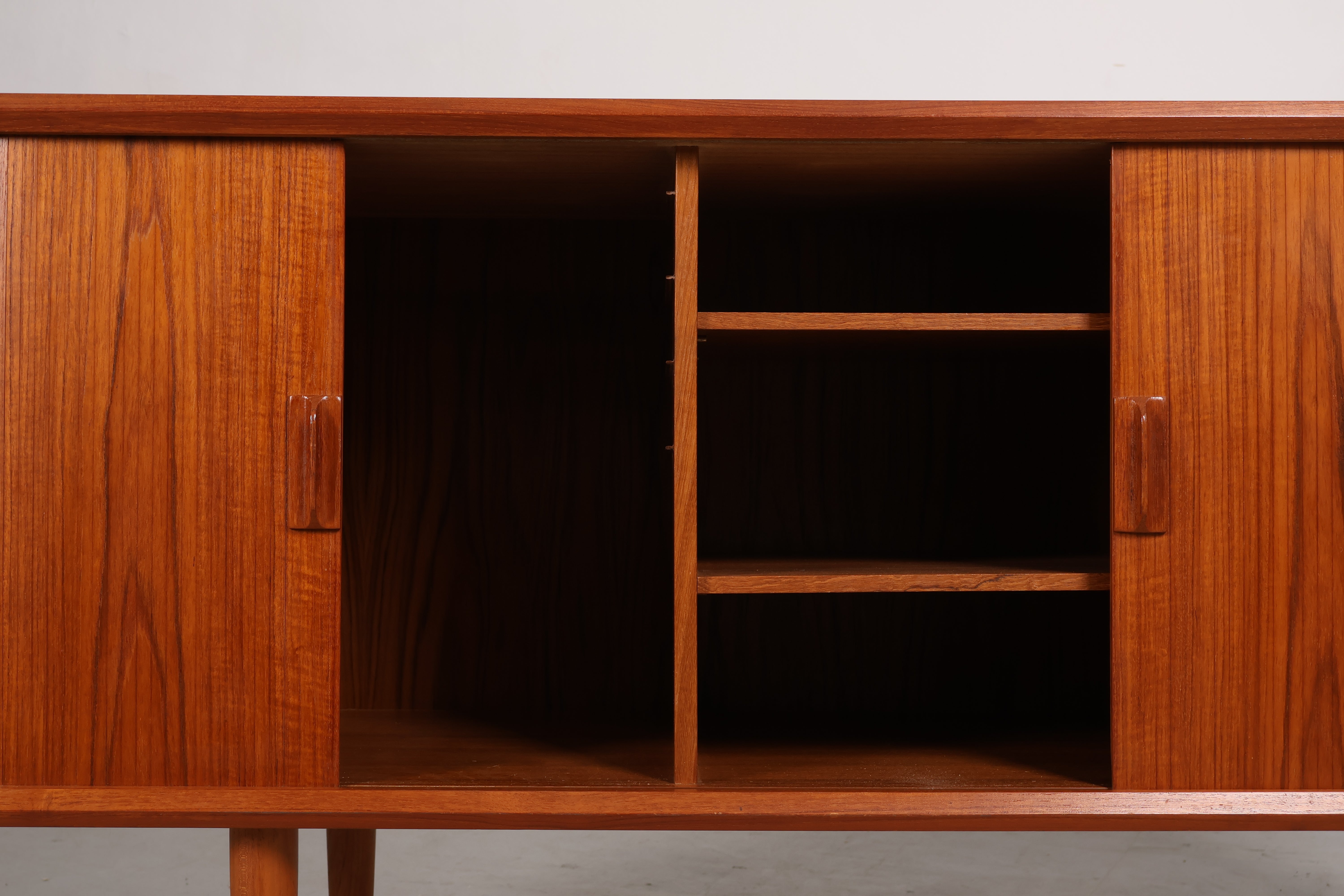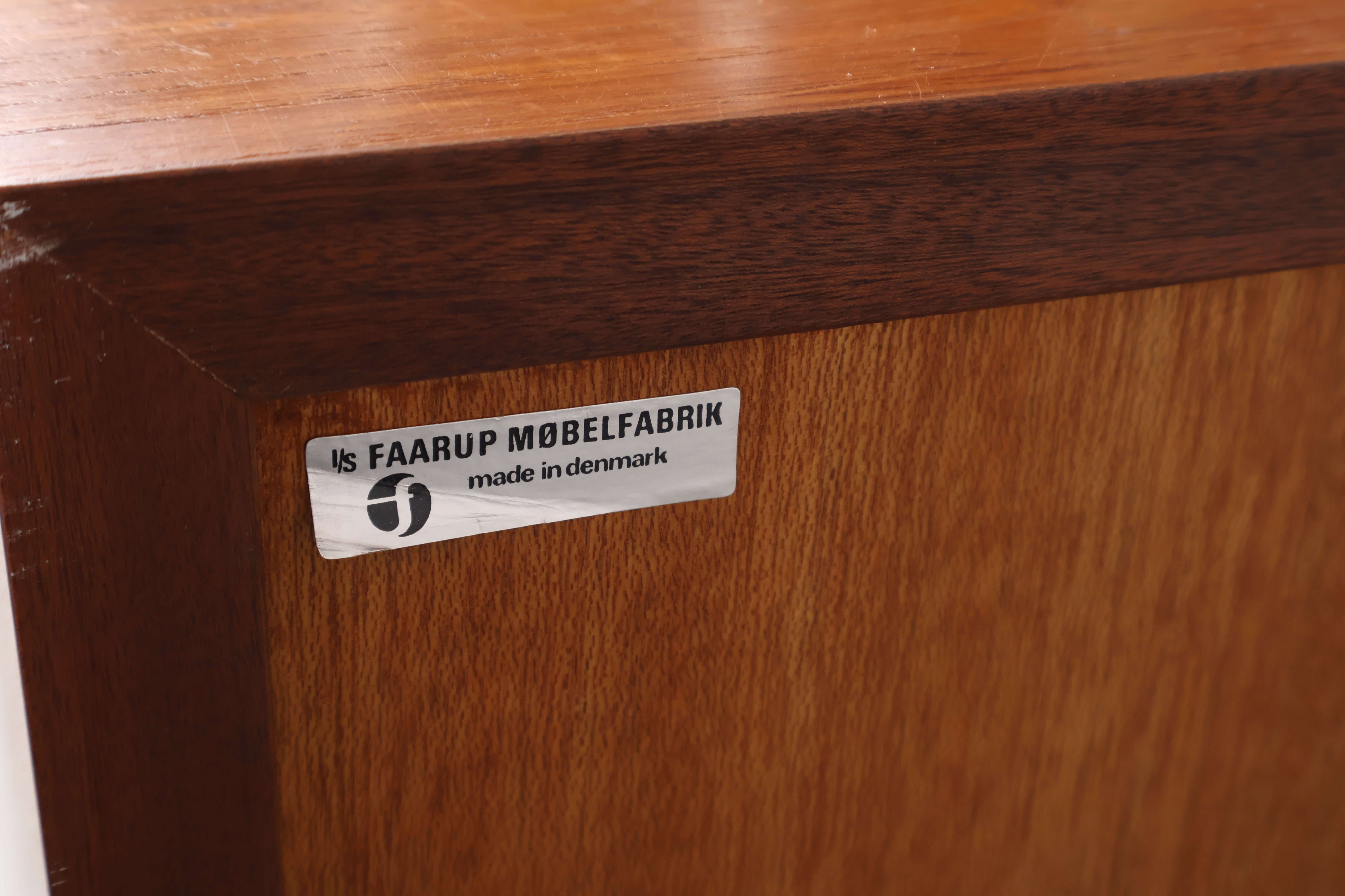 Sideboard aus den 60er-Jahren von Svend Aage Larsen für Faarup Møbelfabrik. Hergestellt in Dänemark. Gefertigt aus Teak. Höhe 80 cm, Breite 150 cm, Tiefe 49 cm.