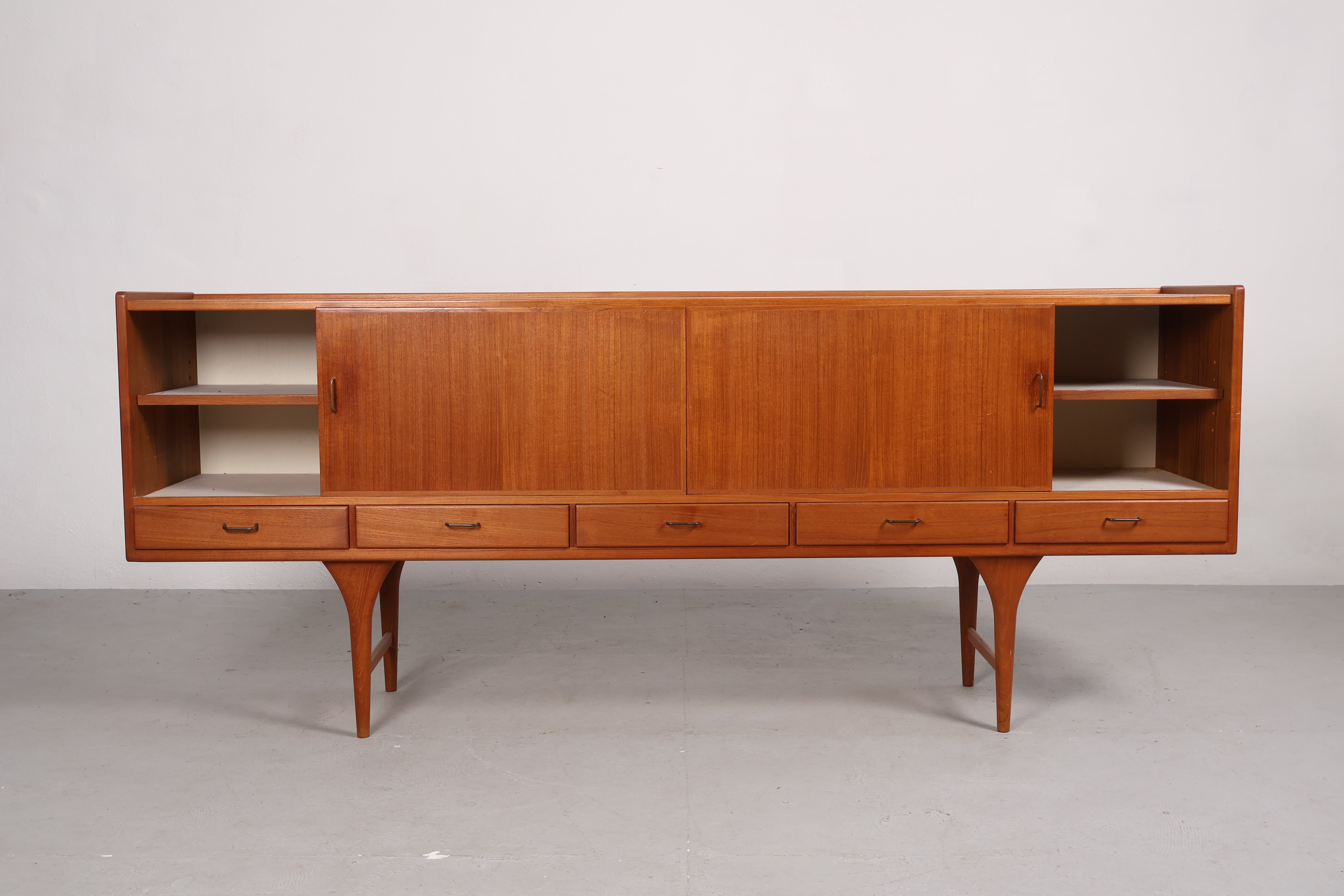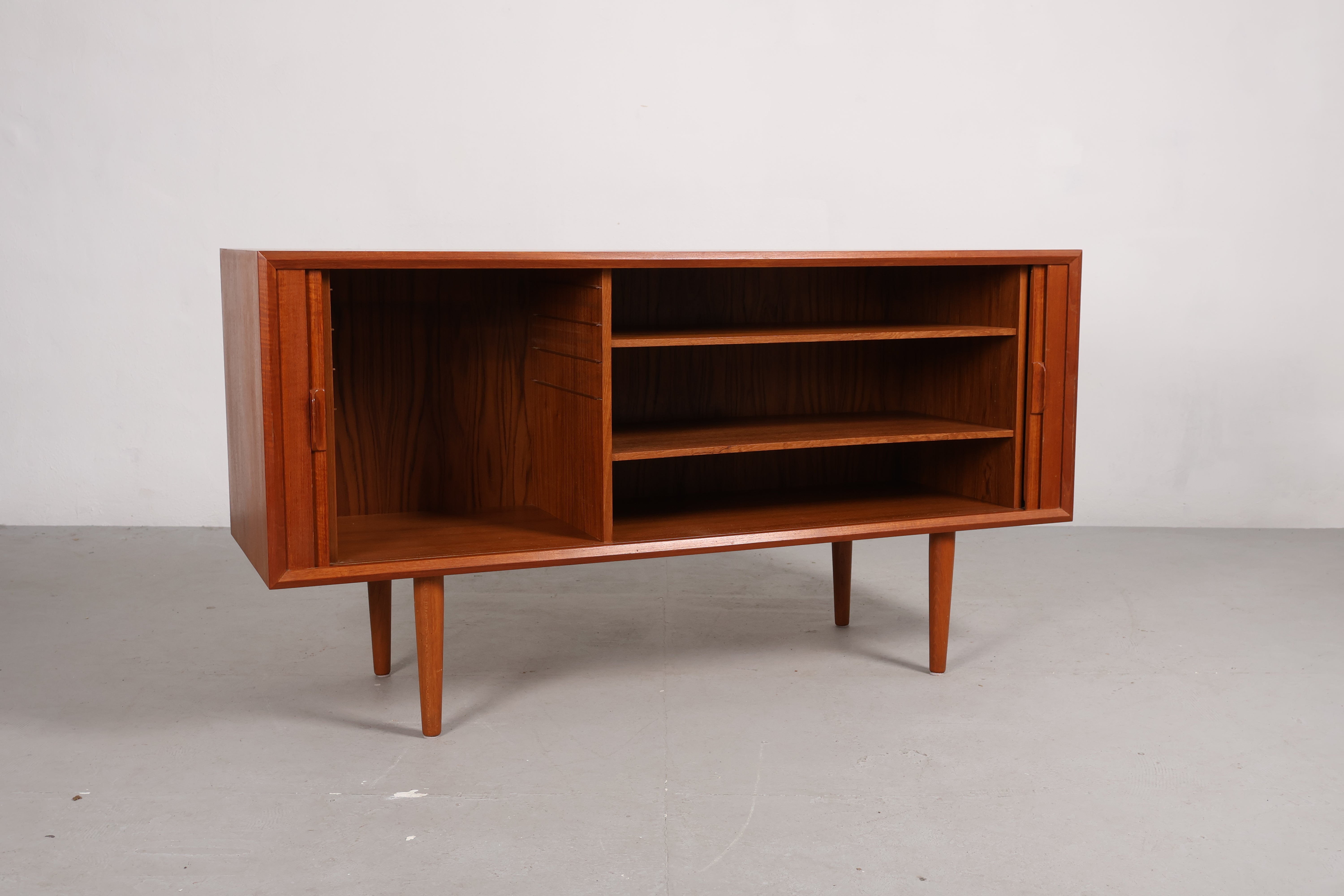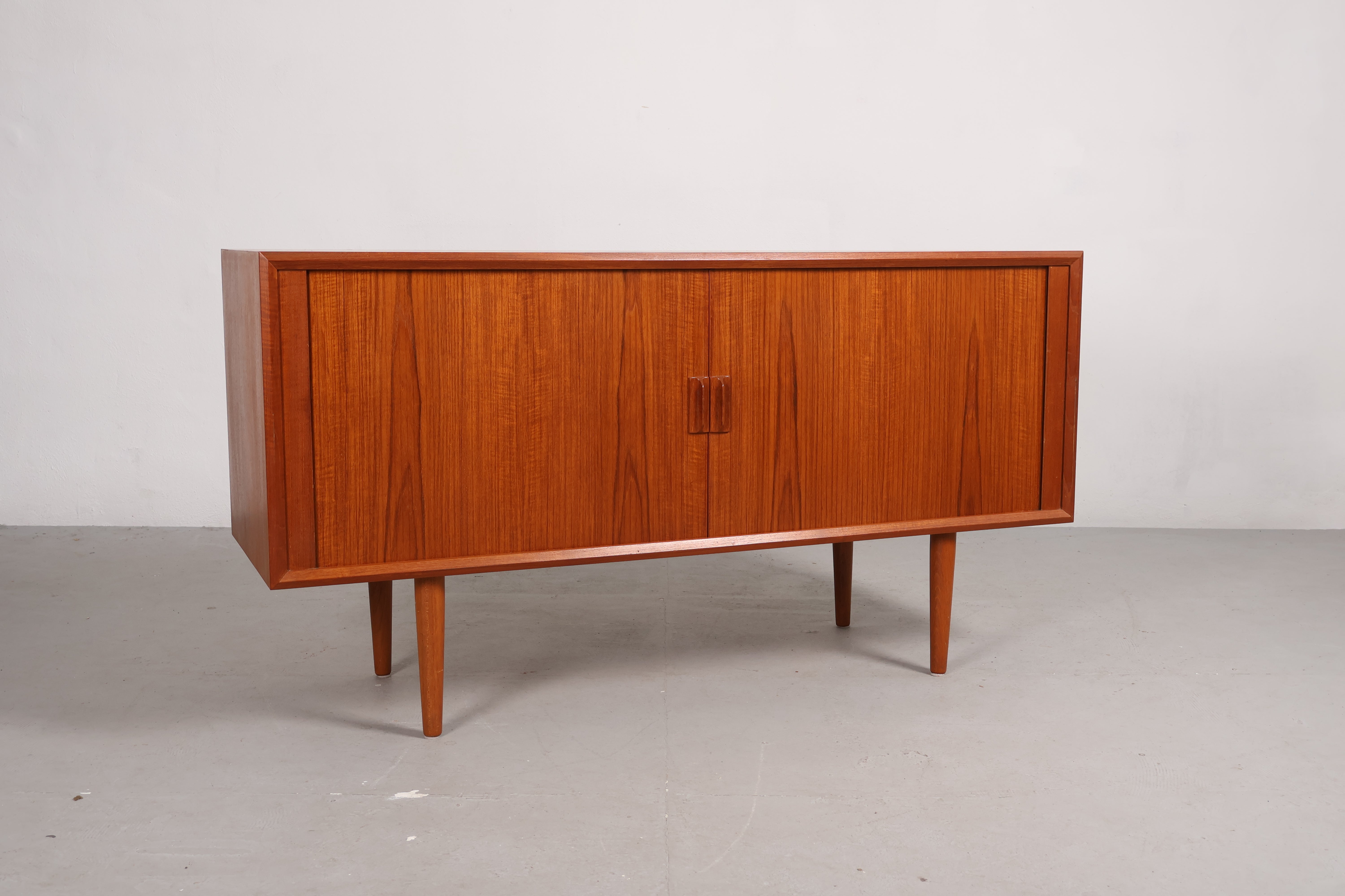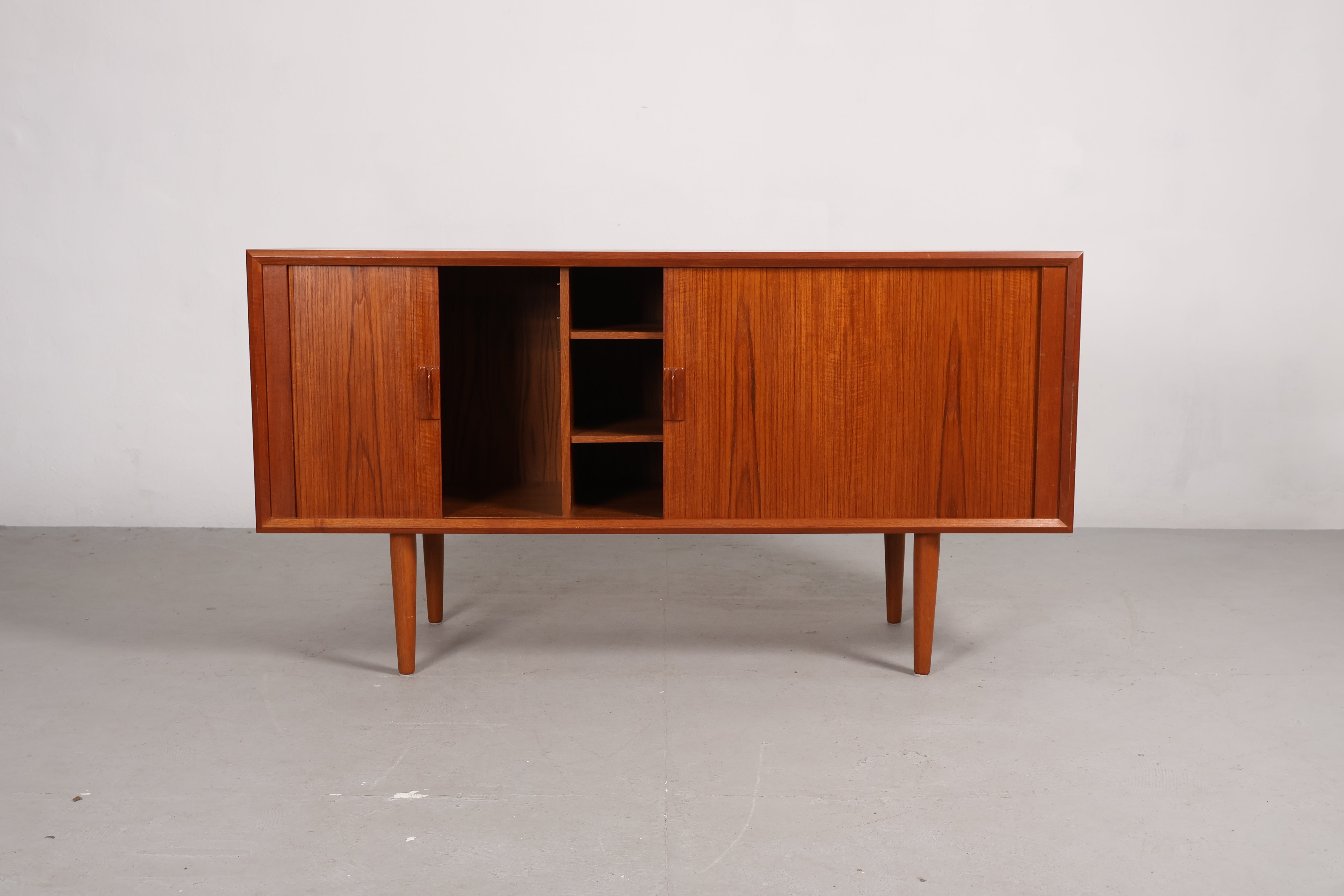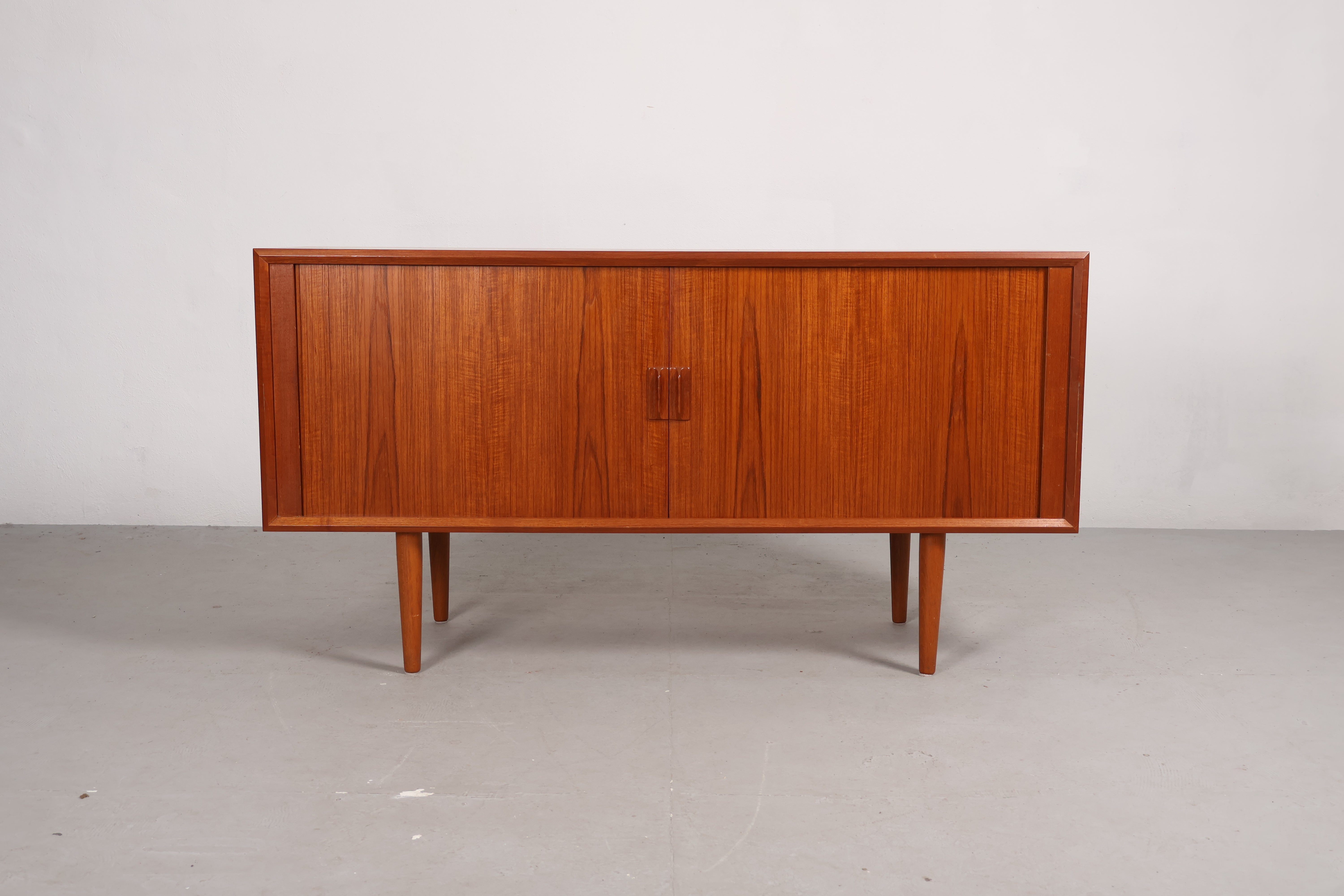 Sideboard aus den 60er-Jahren von Svend Aage Larsen für Faarup Møbelfabrik. Hergestellt in Dänemark. Gefertigt aus Teak. Höhe 80 cm, Breite 150 cm, Tiefe 49 cm.