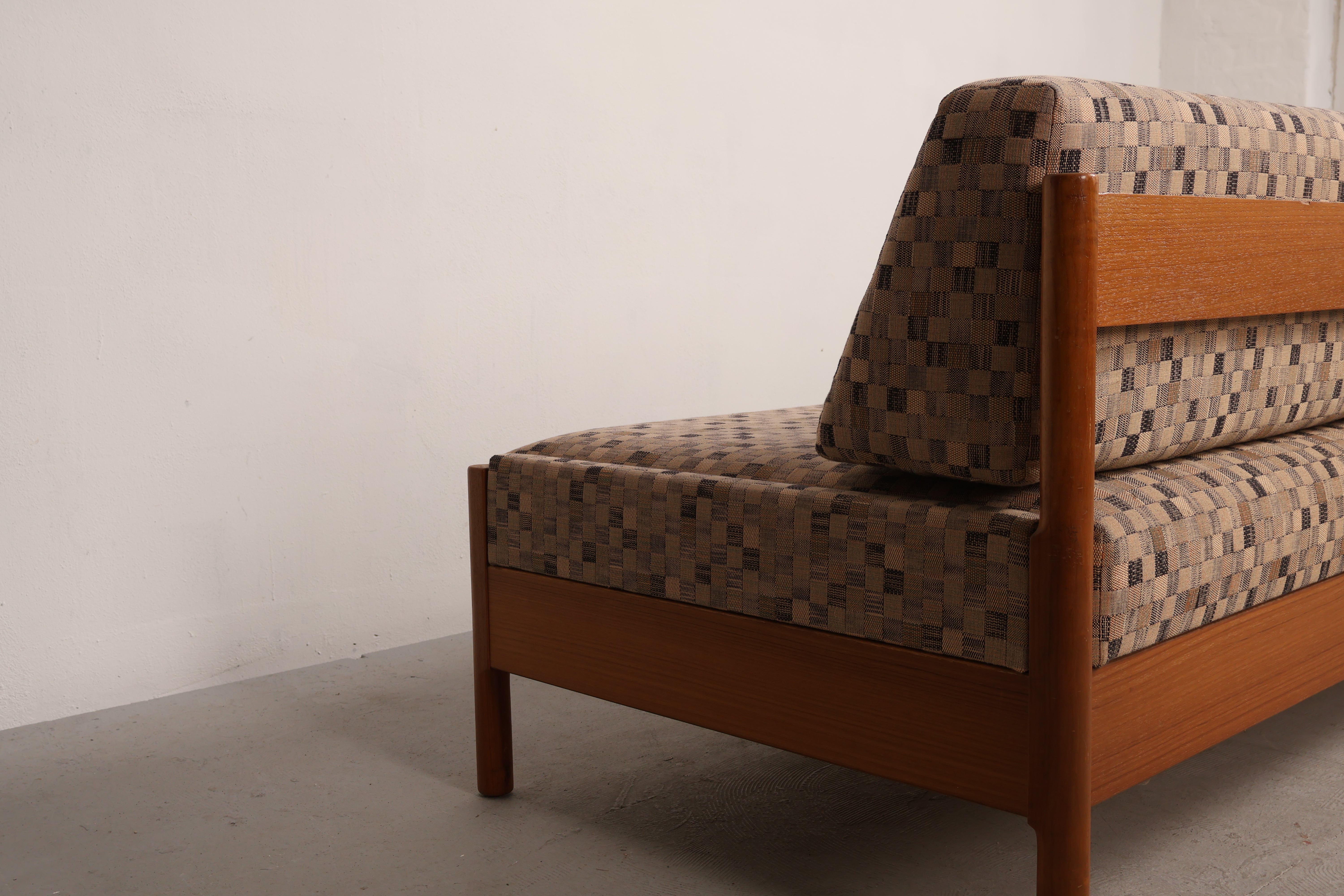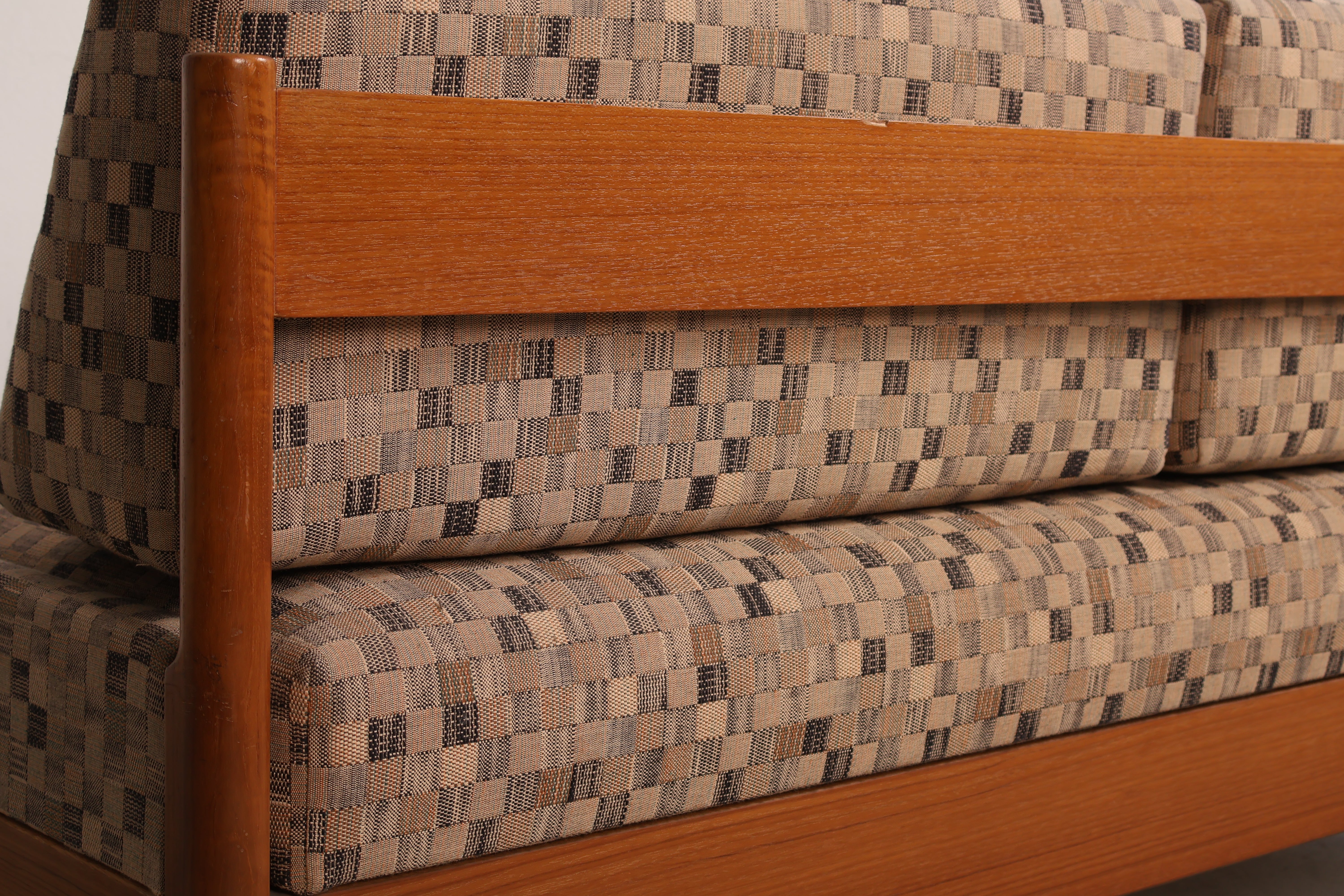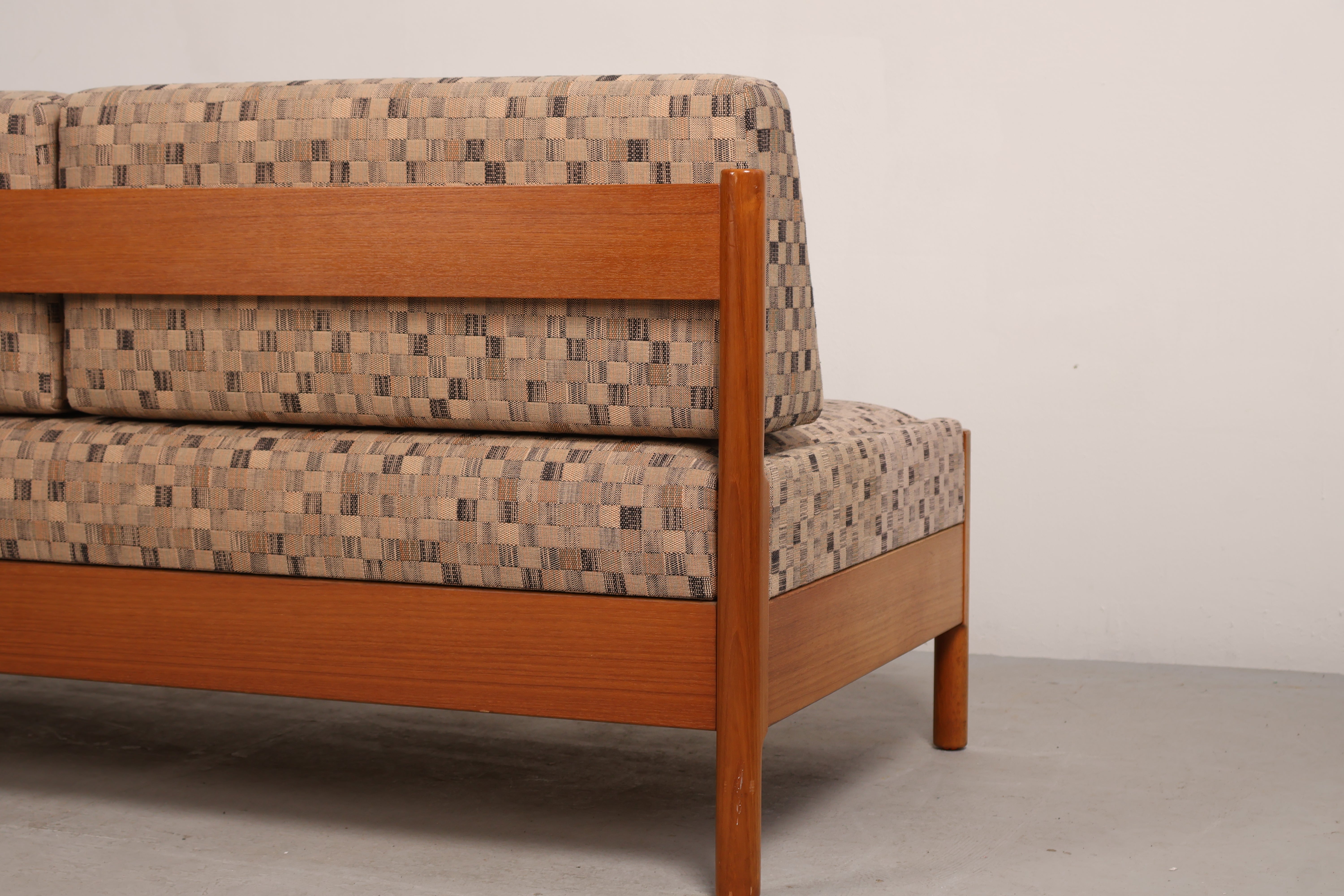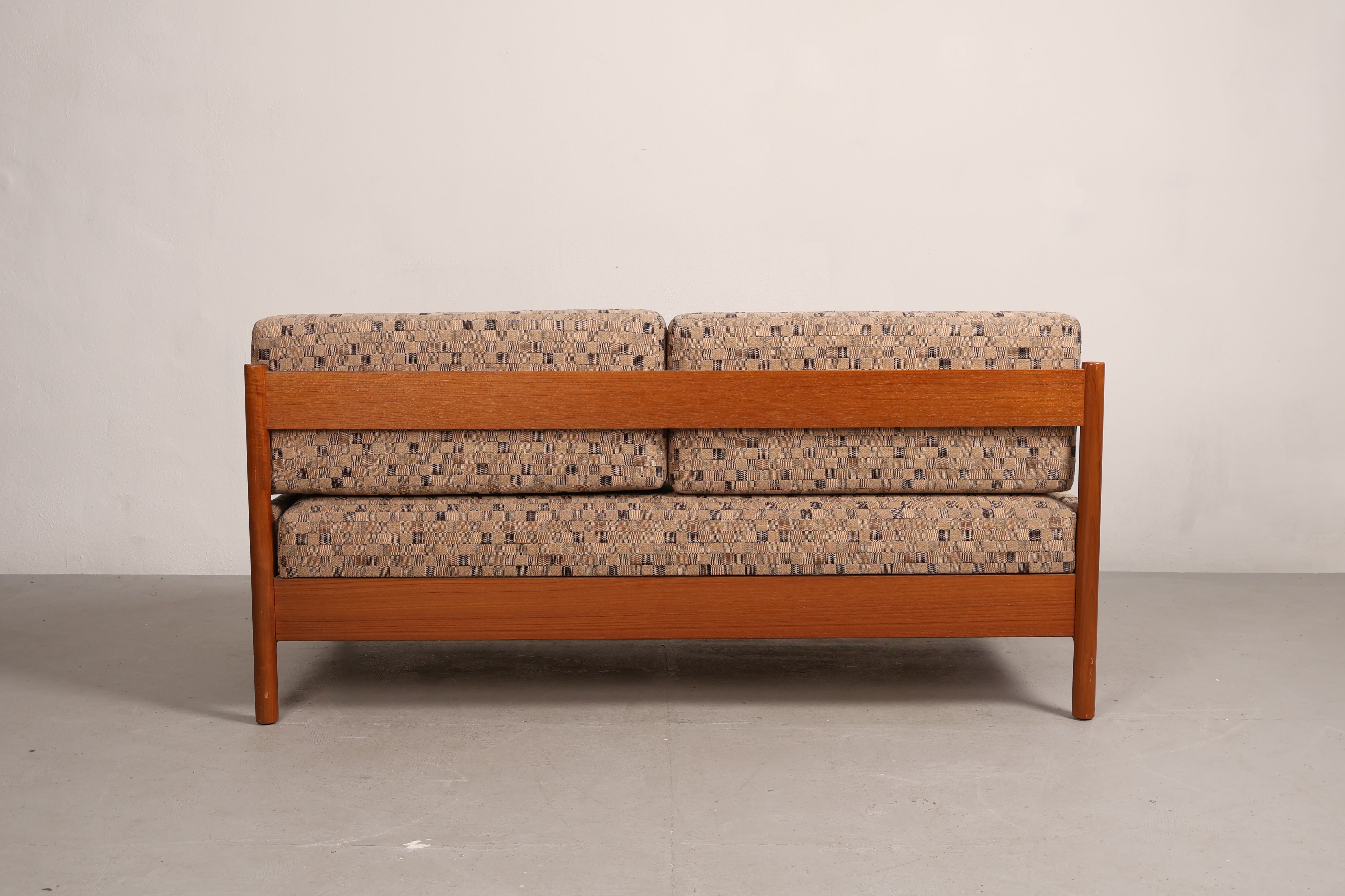 Sofa aus den 70er-Jahren. Hergestellt in Dänemark. Gefertigt aus Teak. Höhe 76 cm, Breite 157 cm, Tiefe 78 cm.