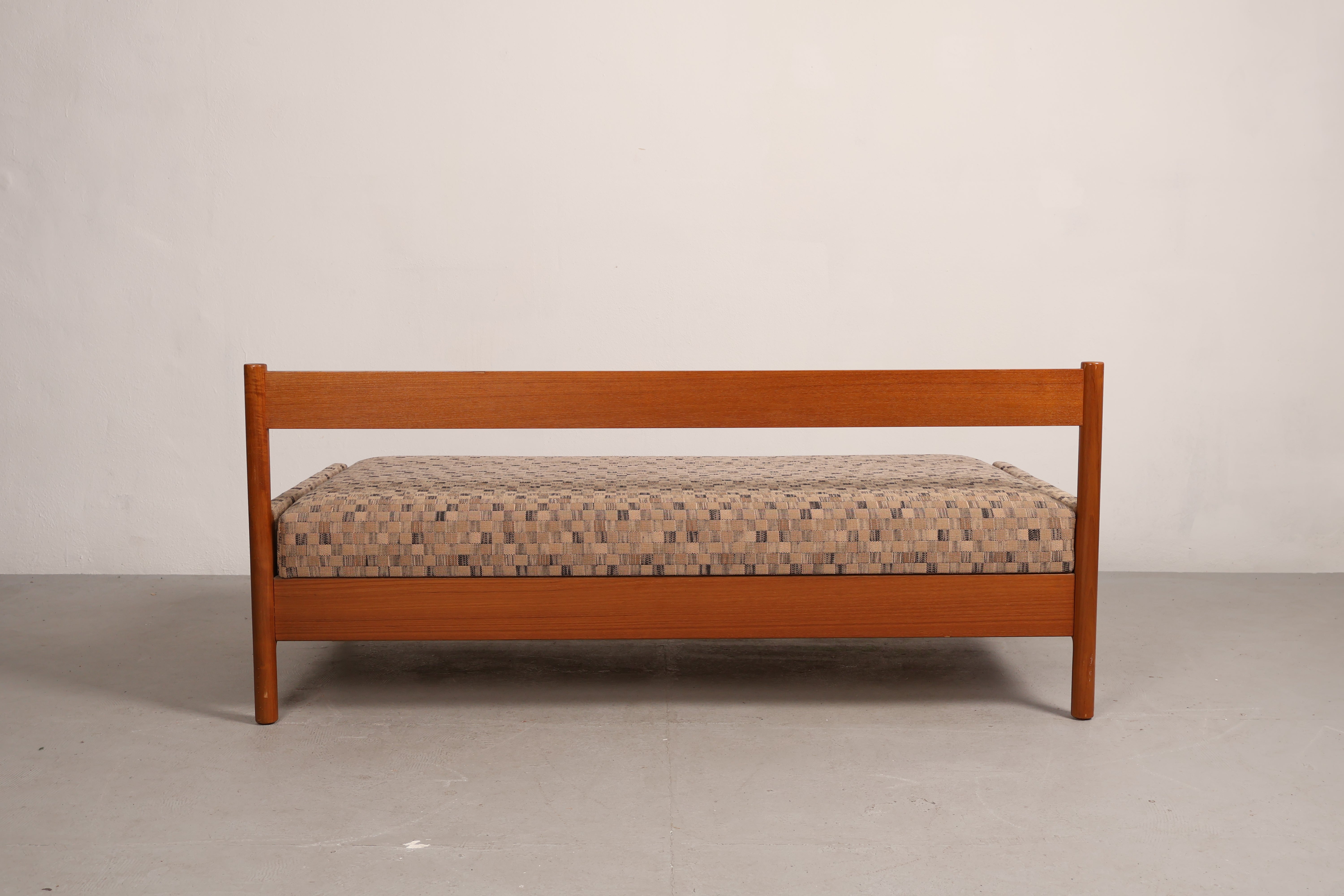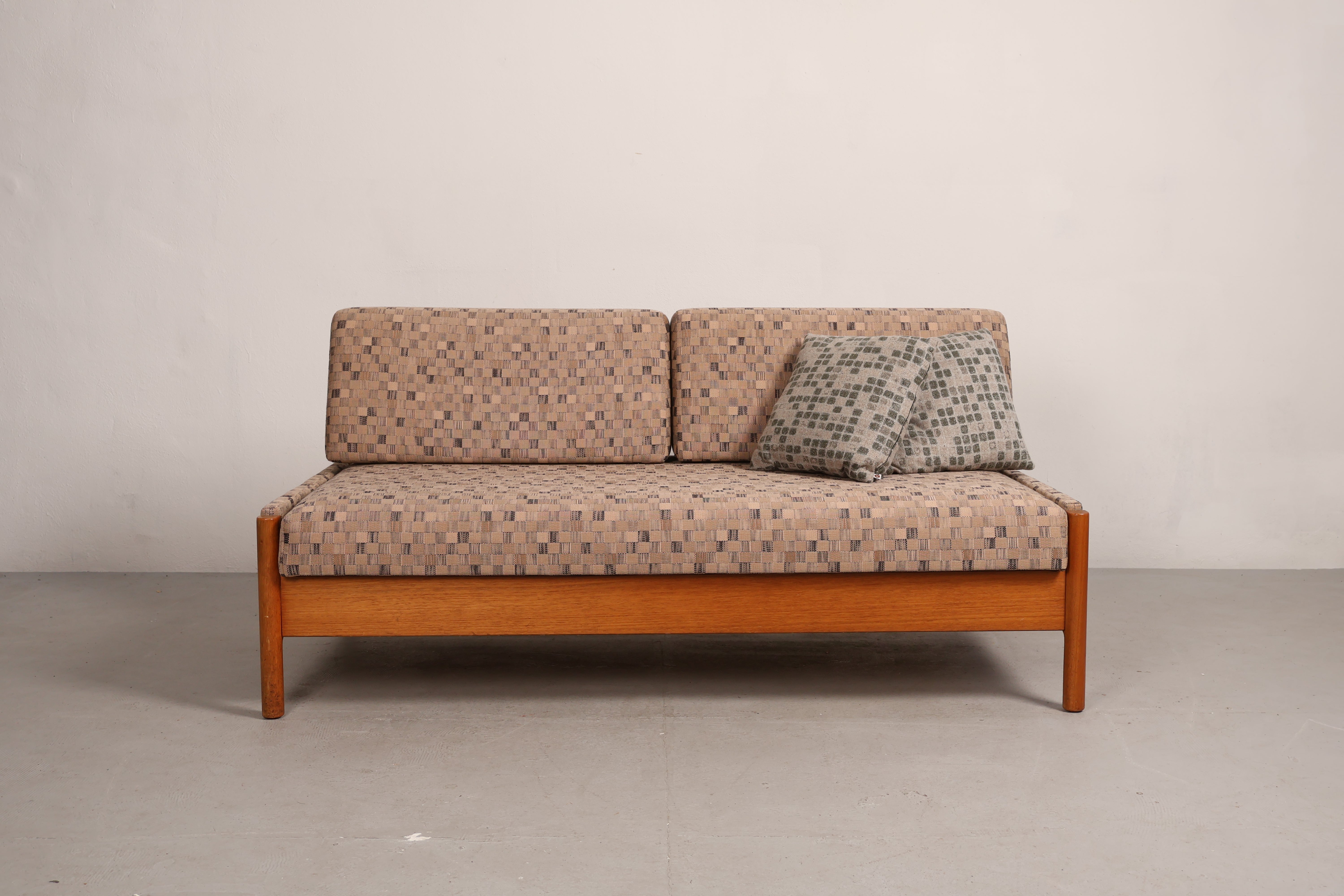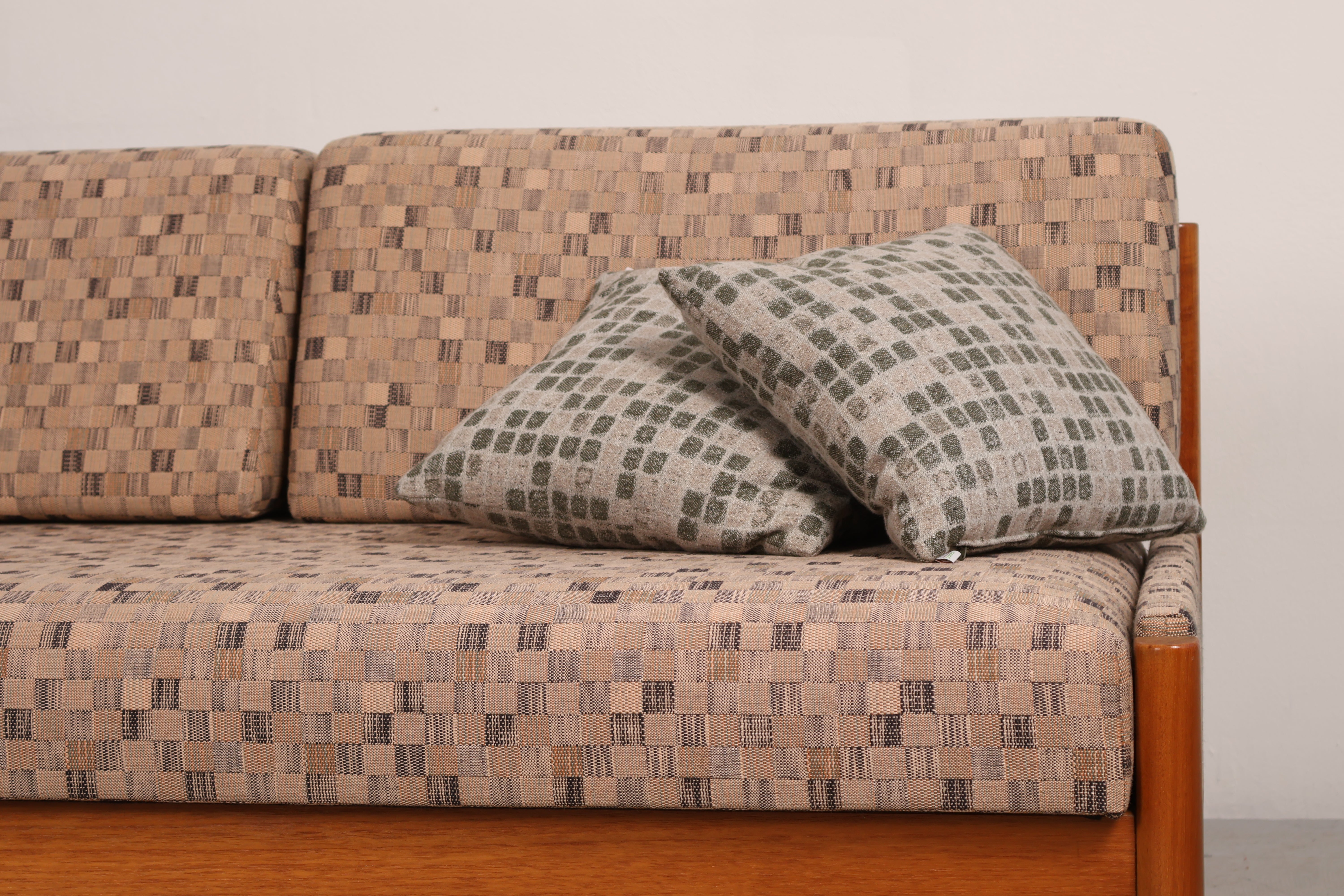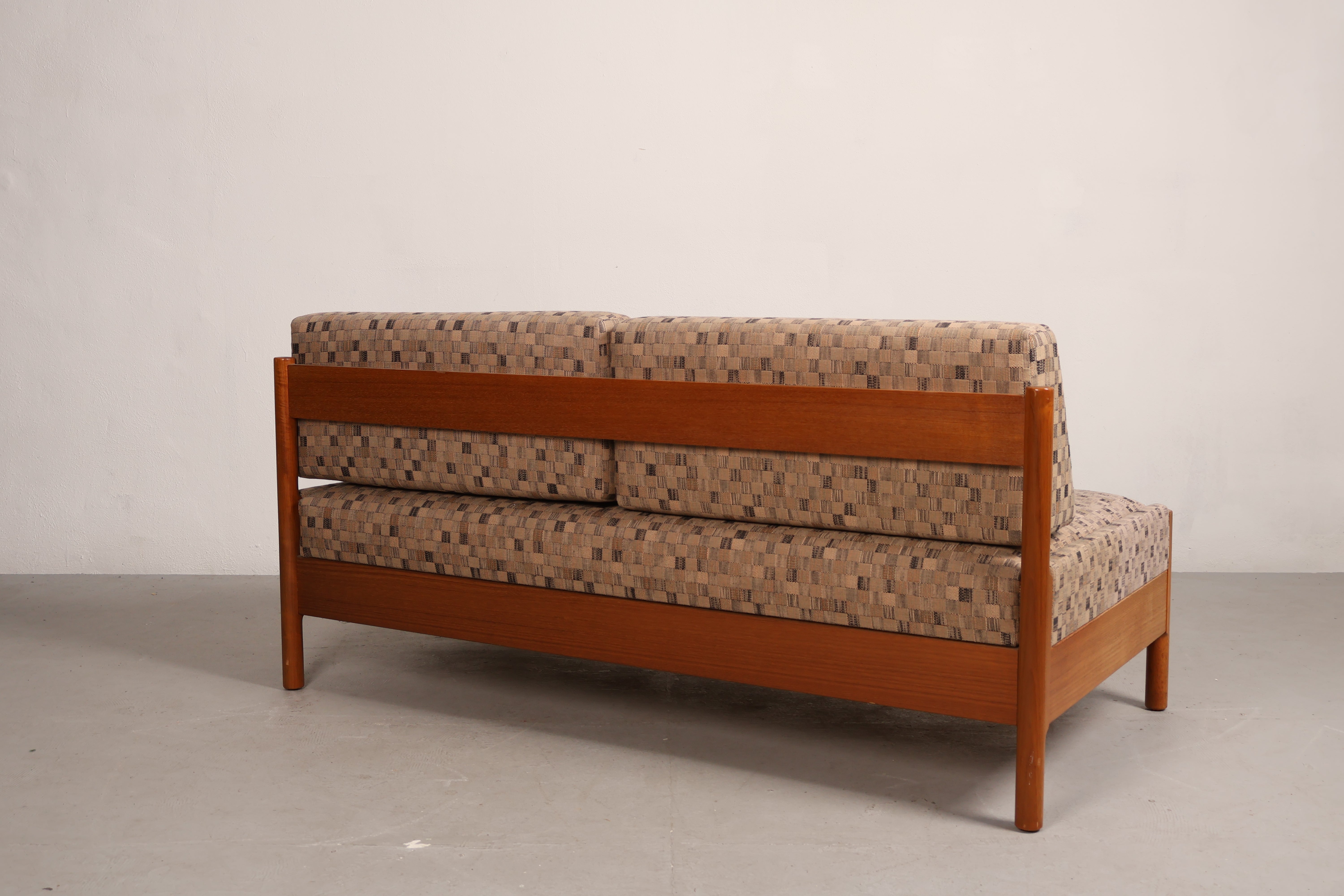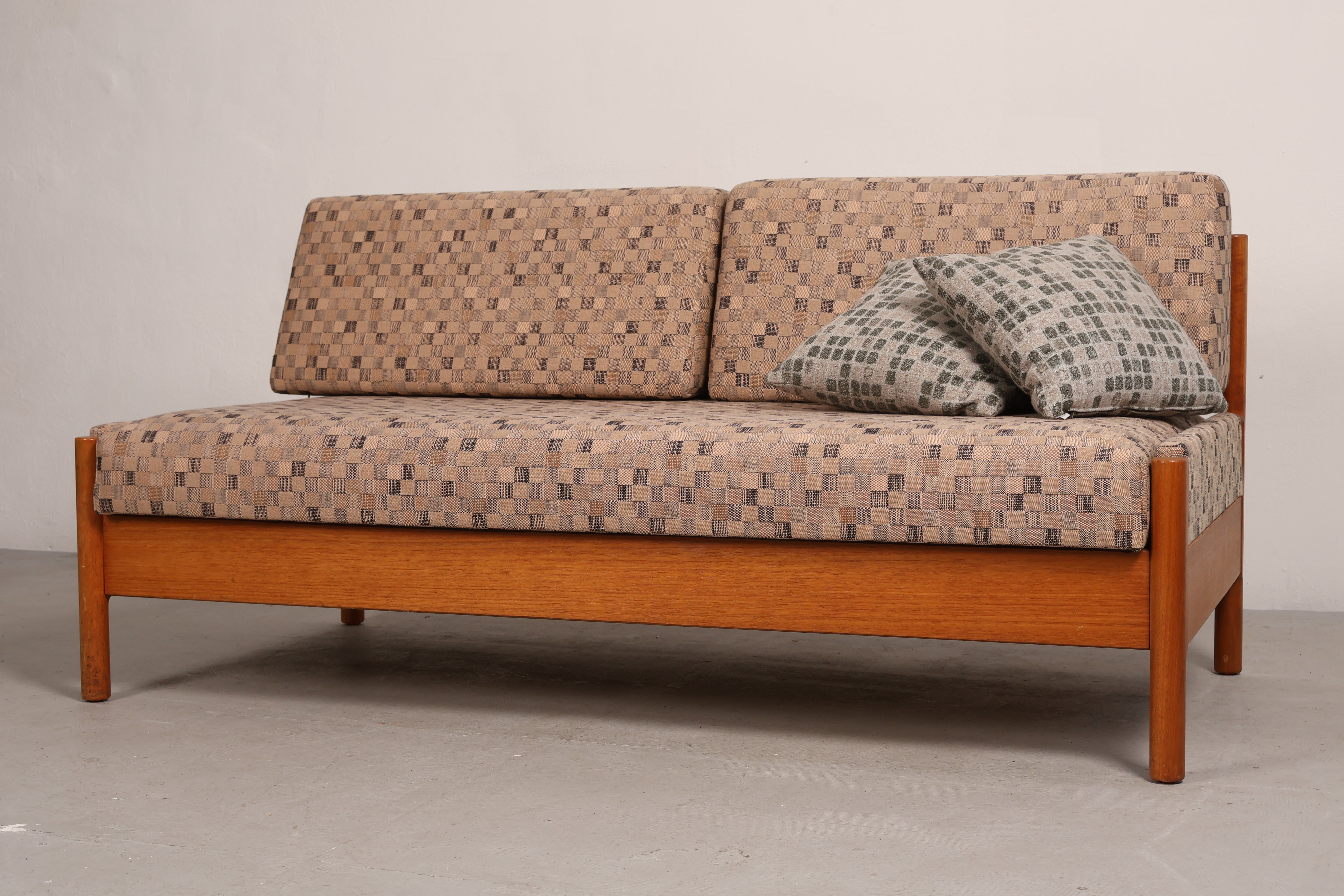 Sofa aus den 70er-Jahren. Hergestellt in Dänemark. Gefertigt aus Teak. Höhe 76 cm, Breite 157 cm, Tiefe 78 cm.