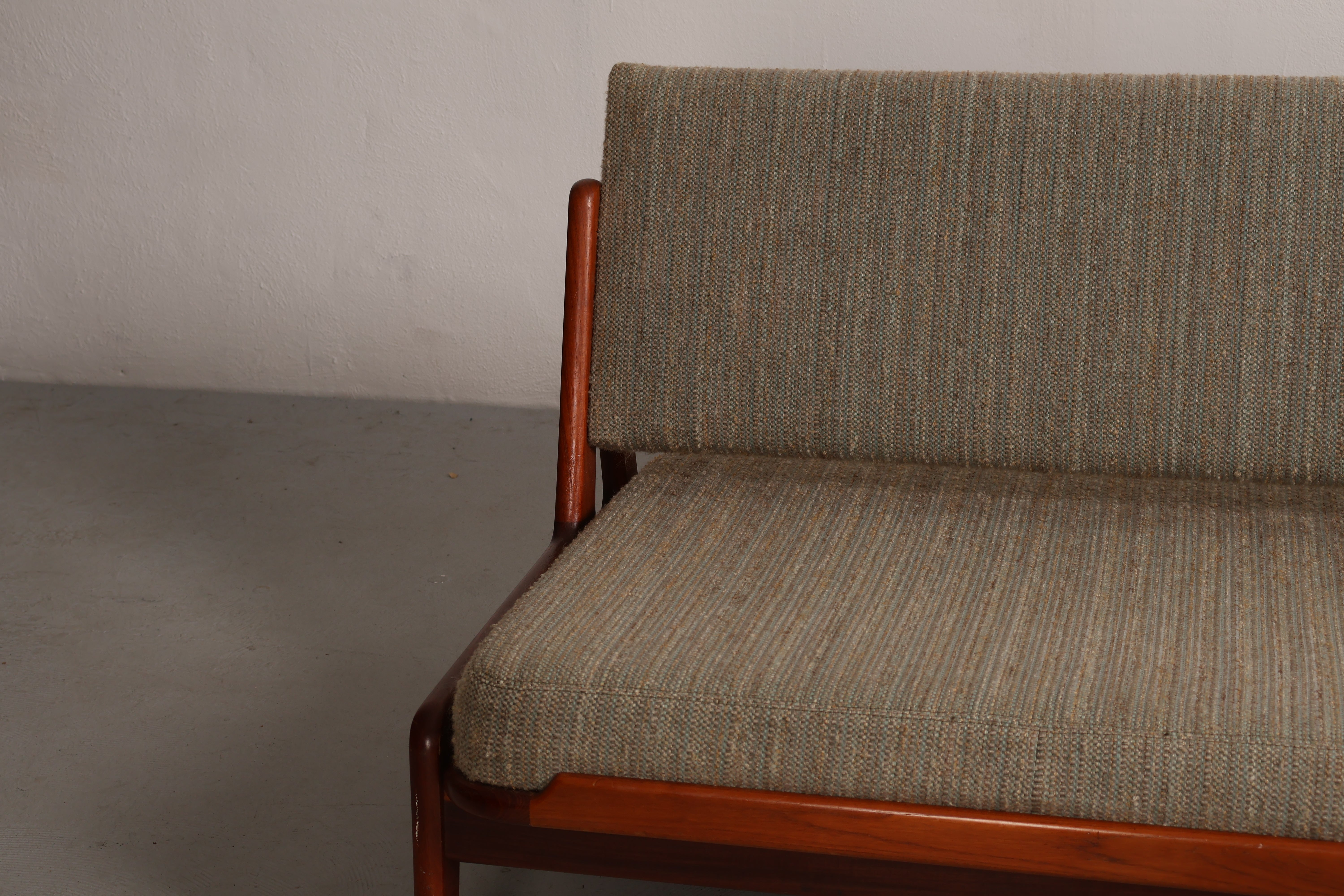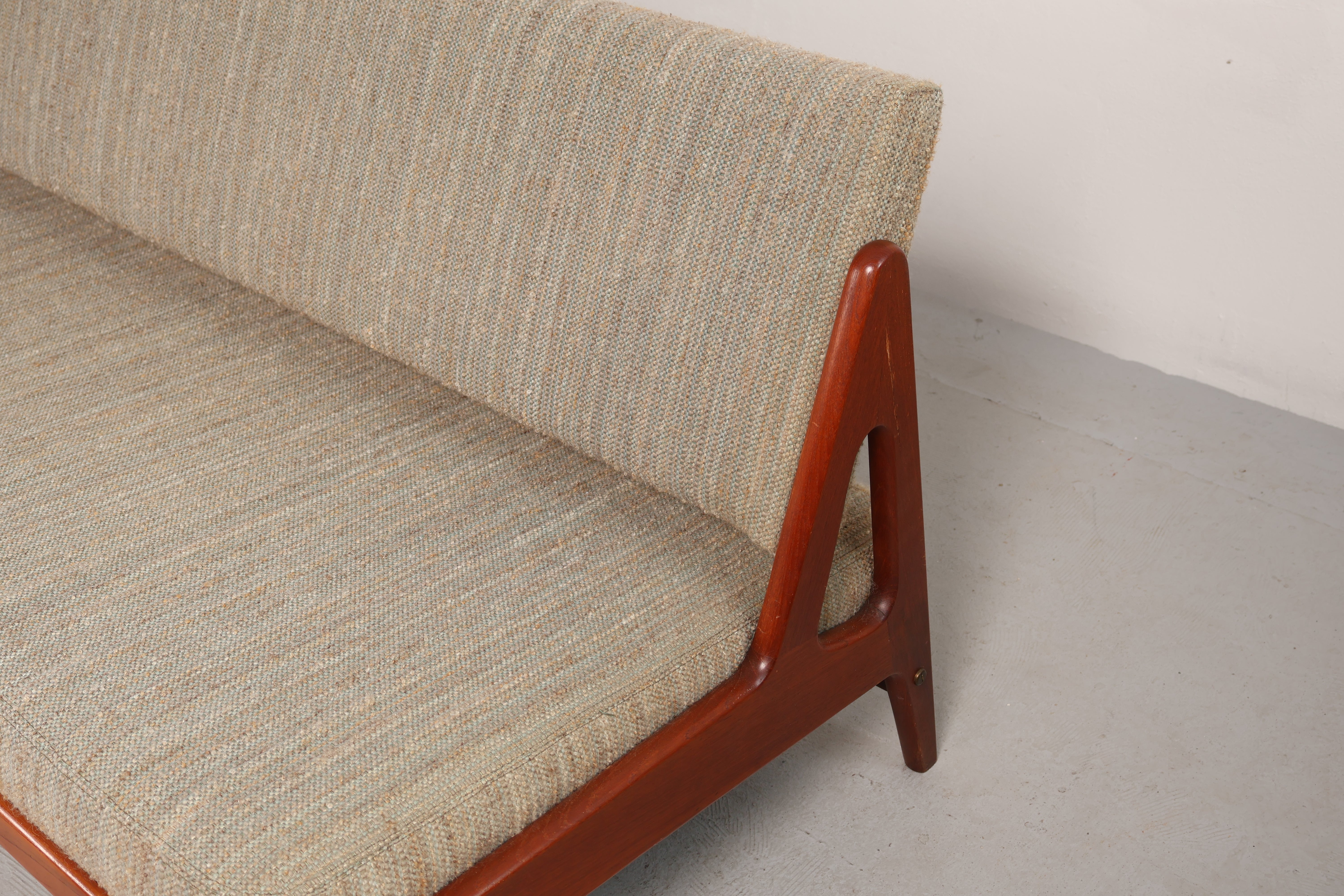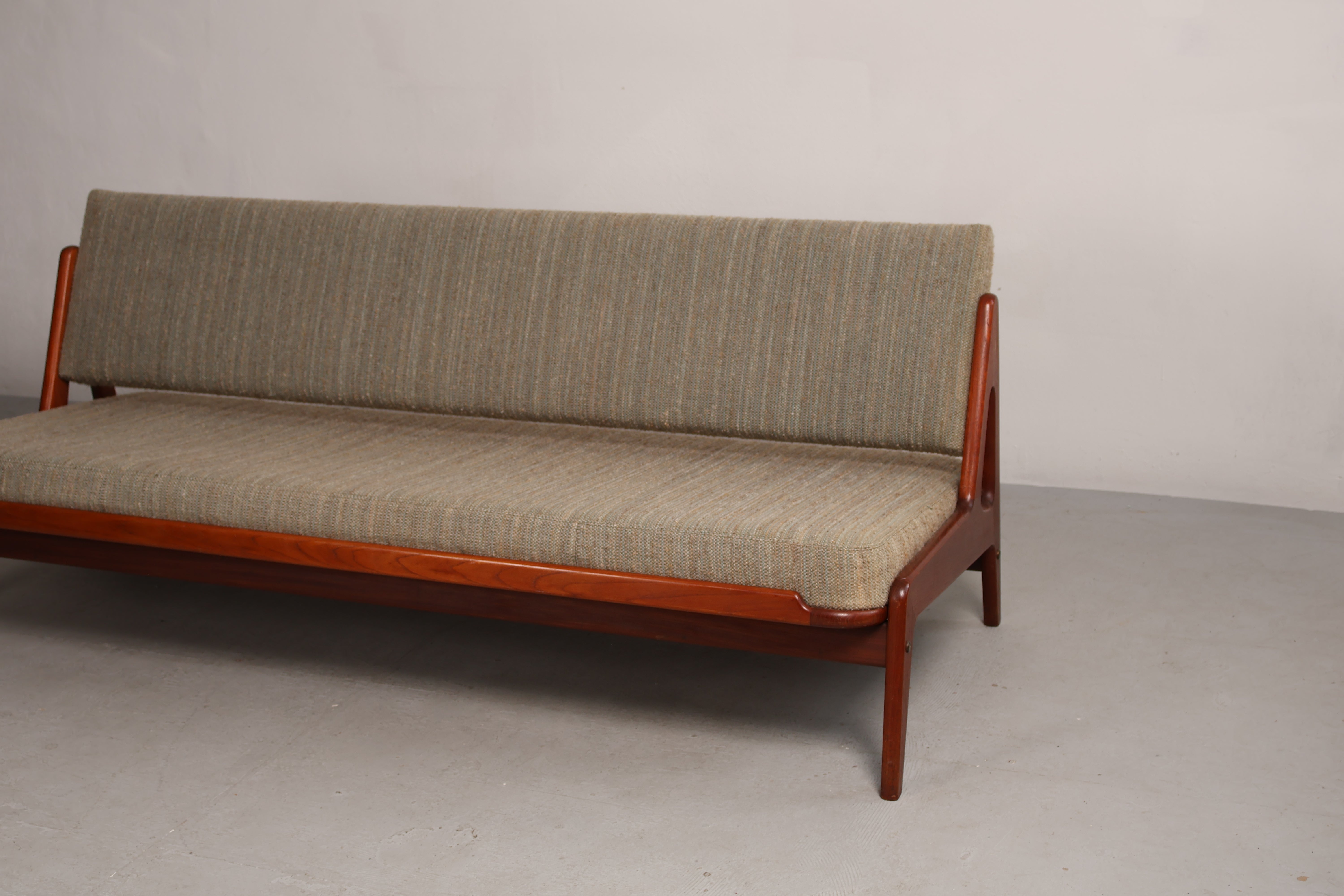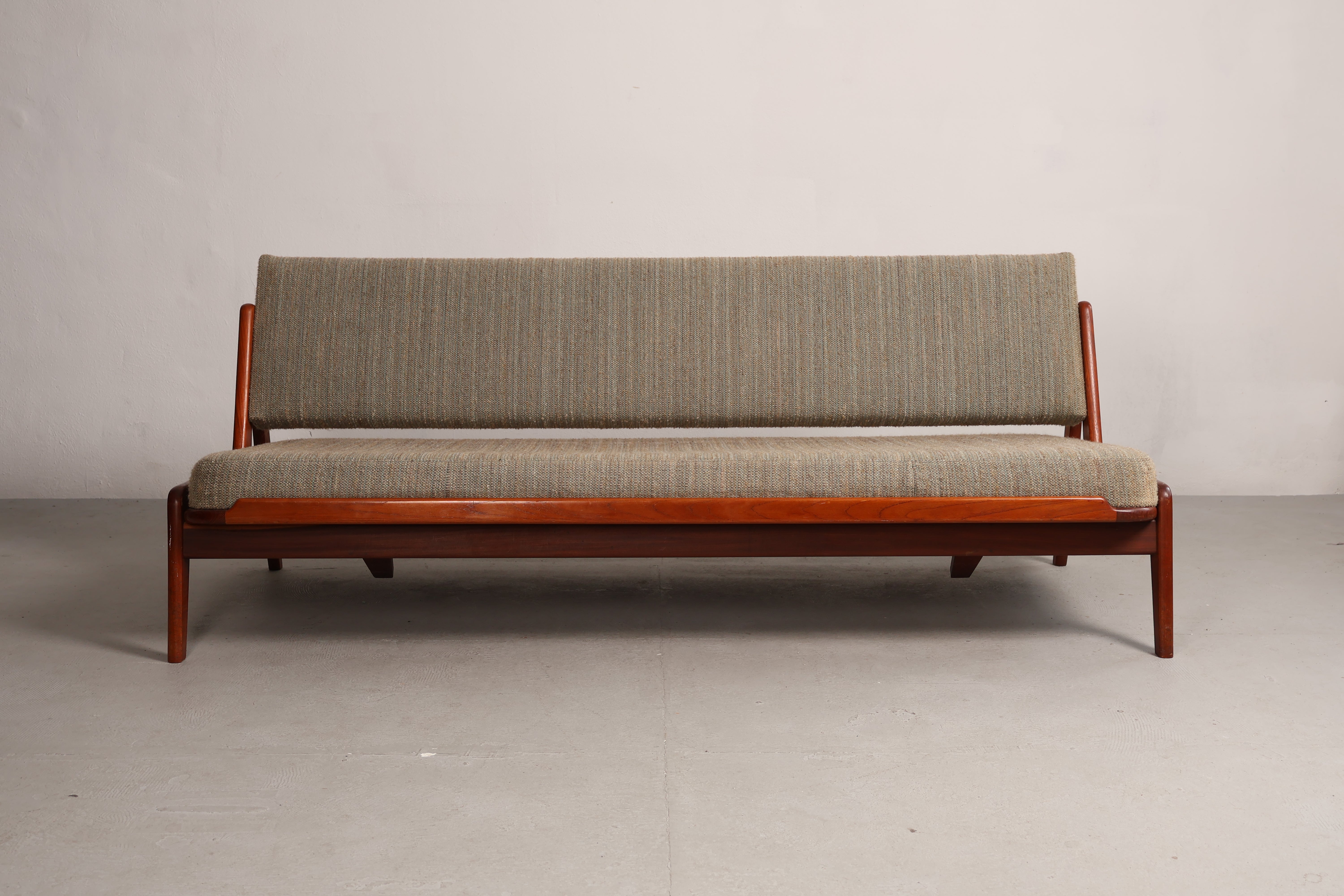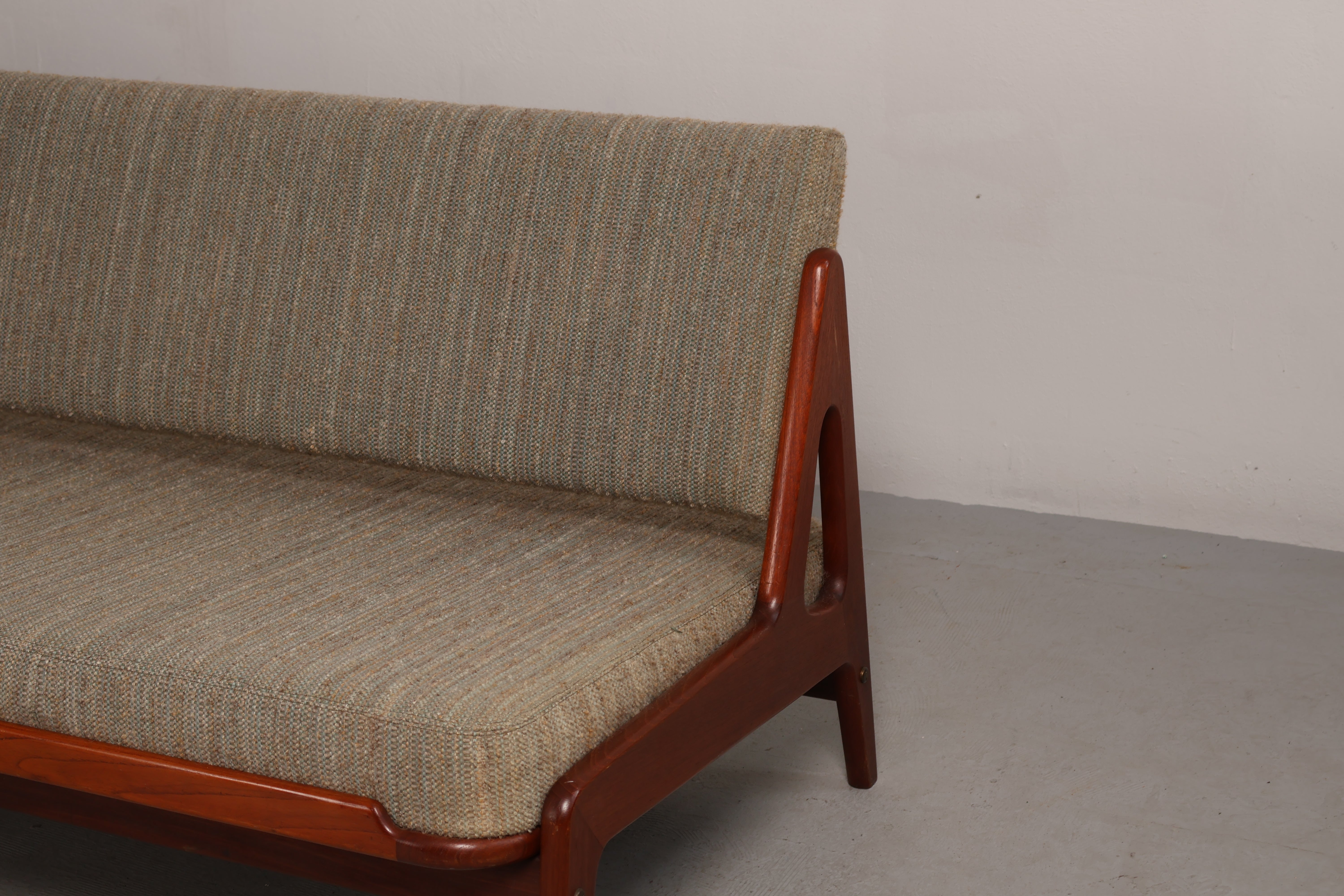 Sofa aus den 60er-Jahren von Arne Wahl Iversen. Hergestellt in Dänemark. Gefertigt aus Teak. Höhe 73 cm, Breite 186 cm, Tiefe 75 cm.