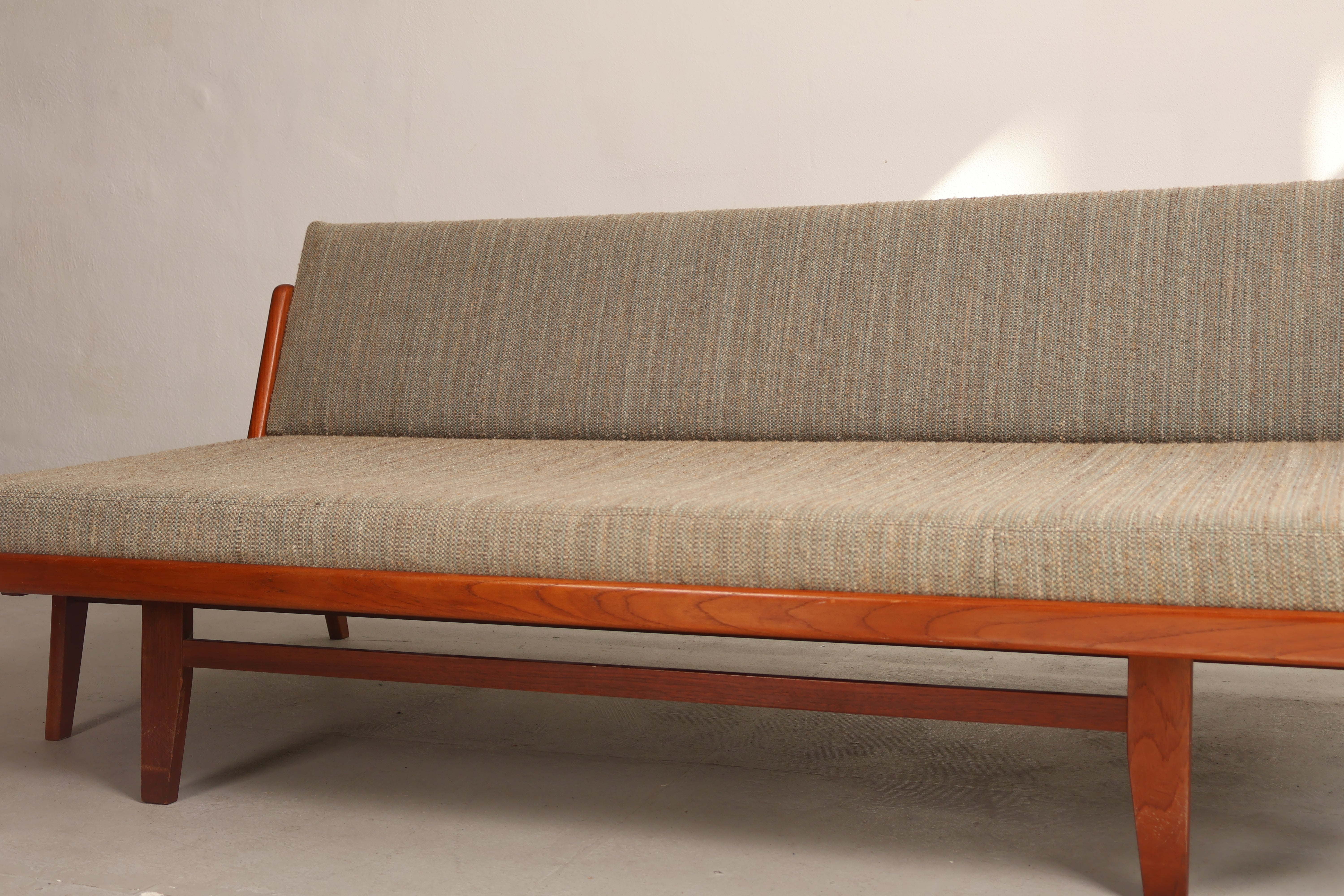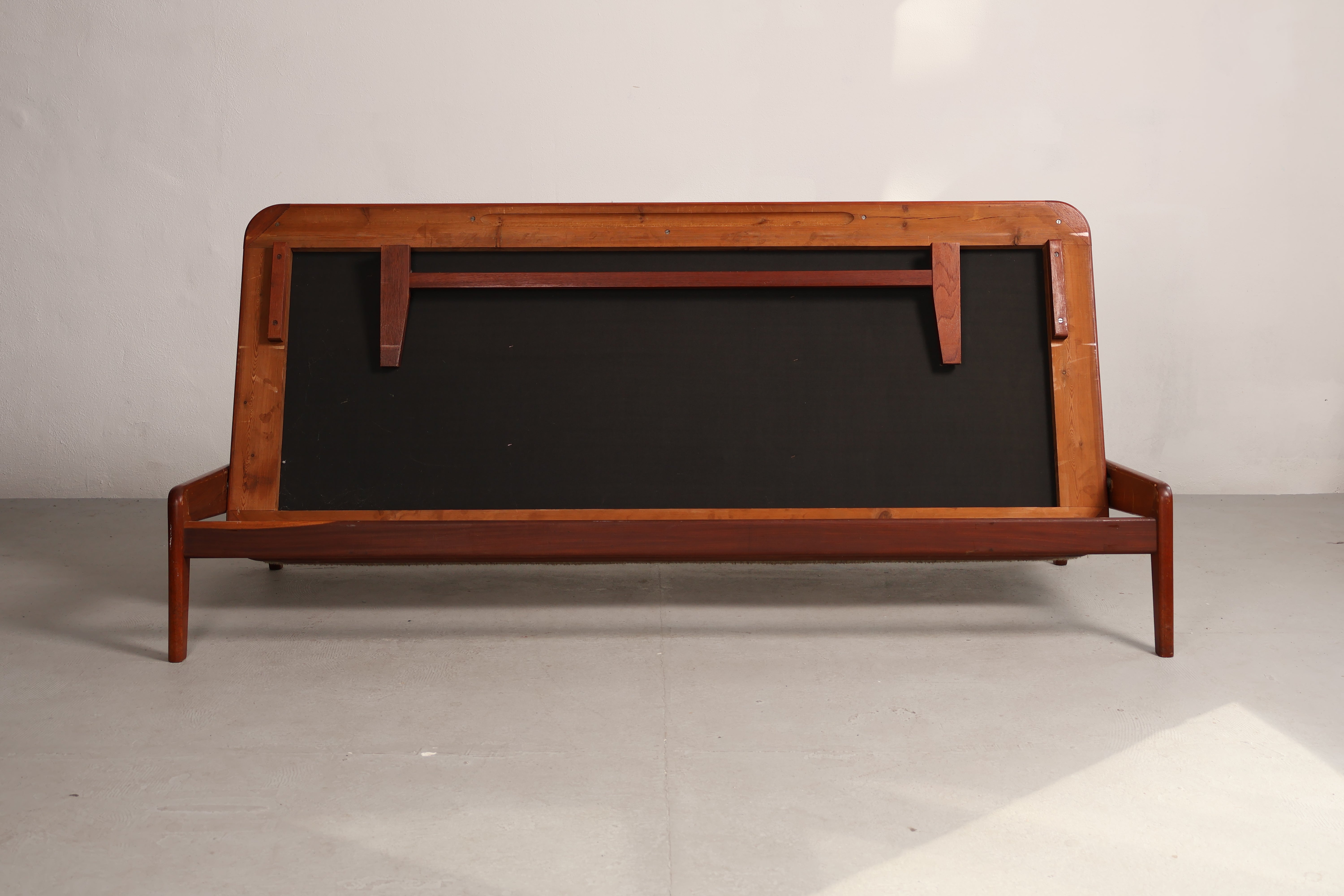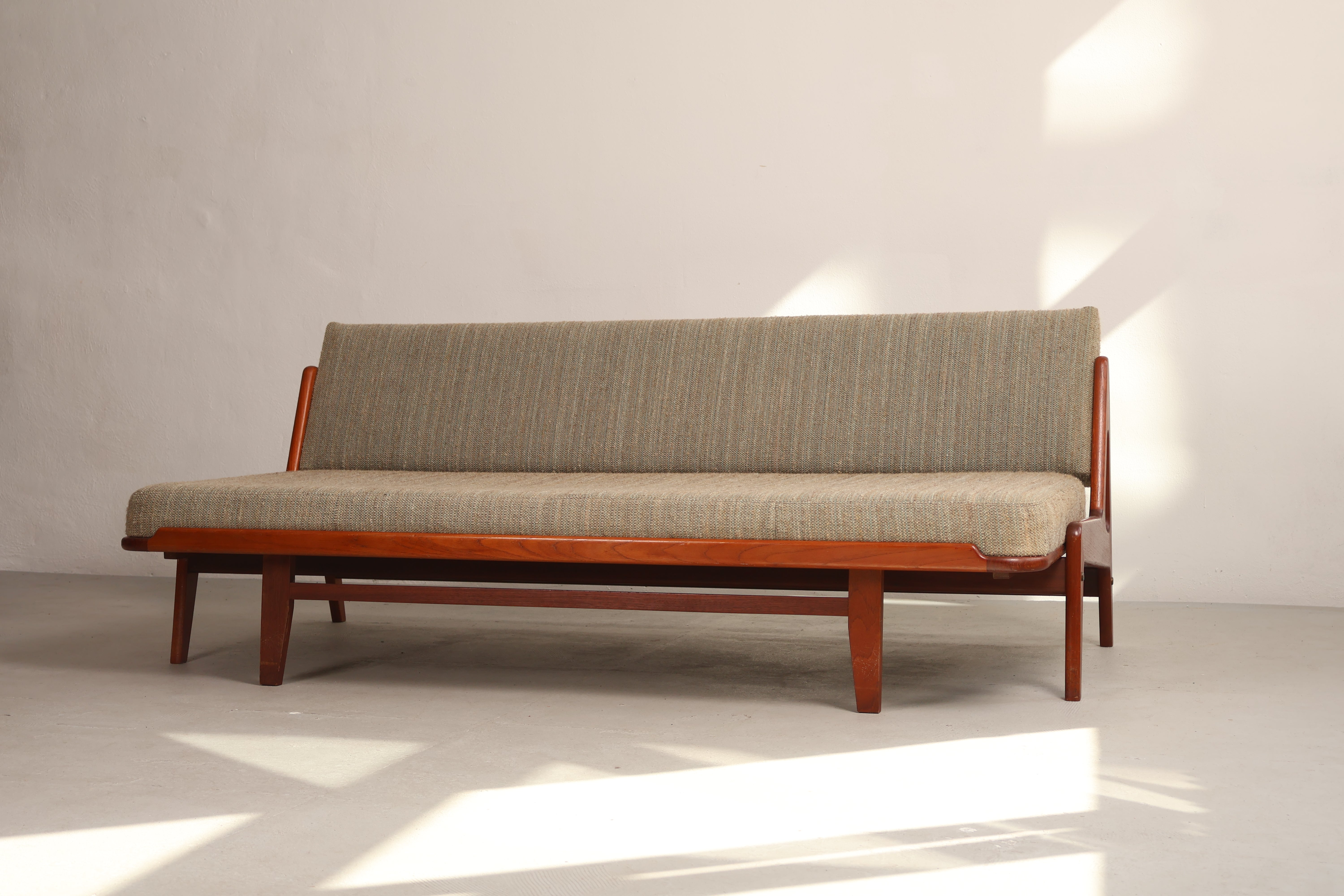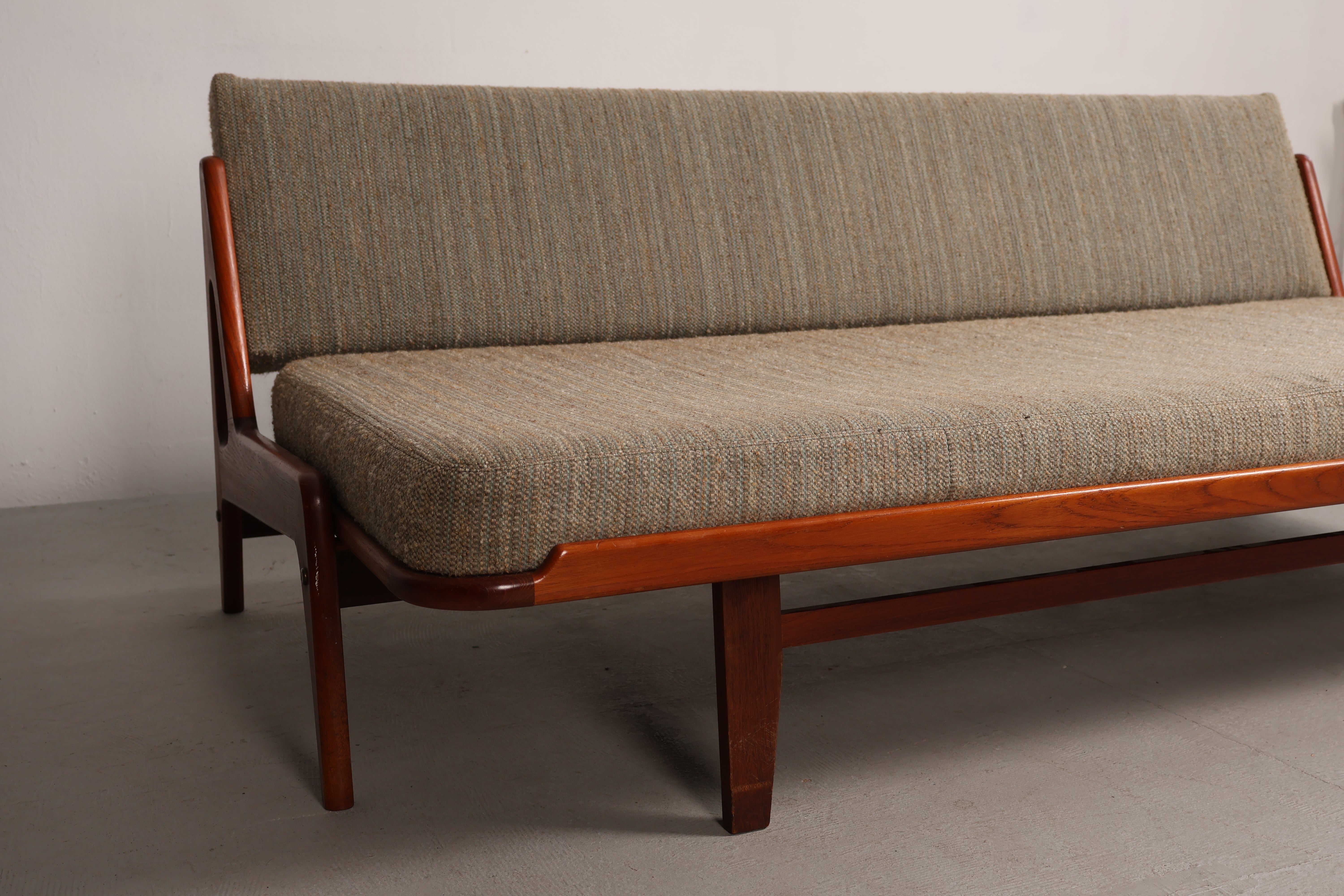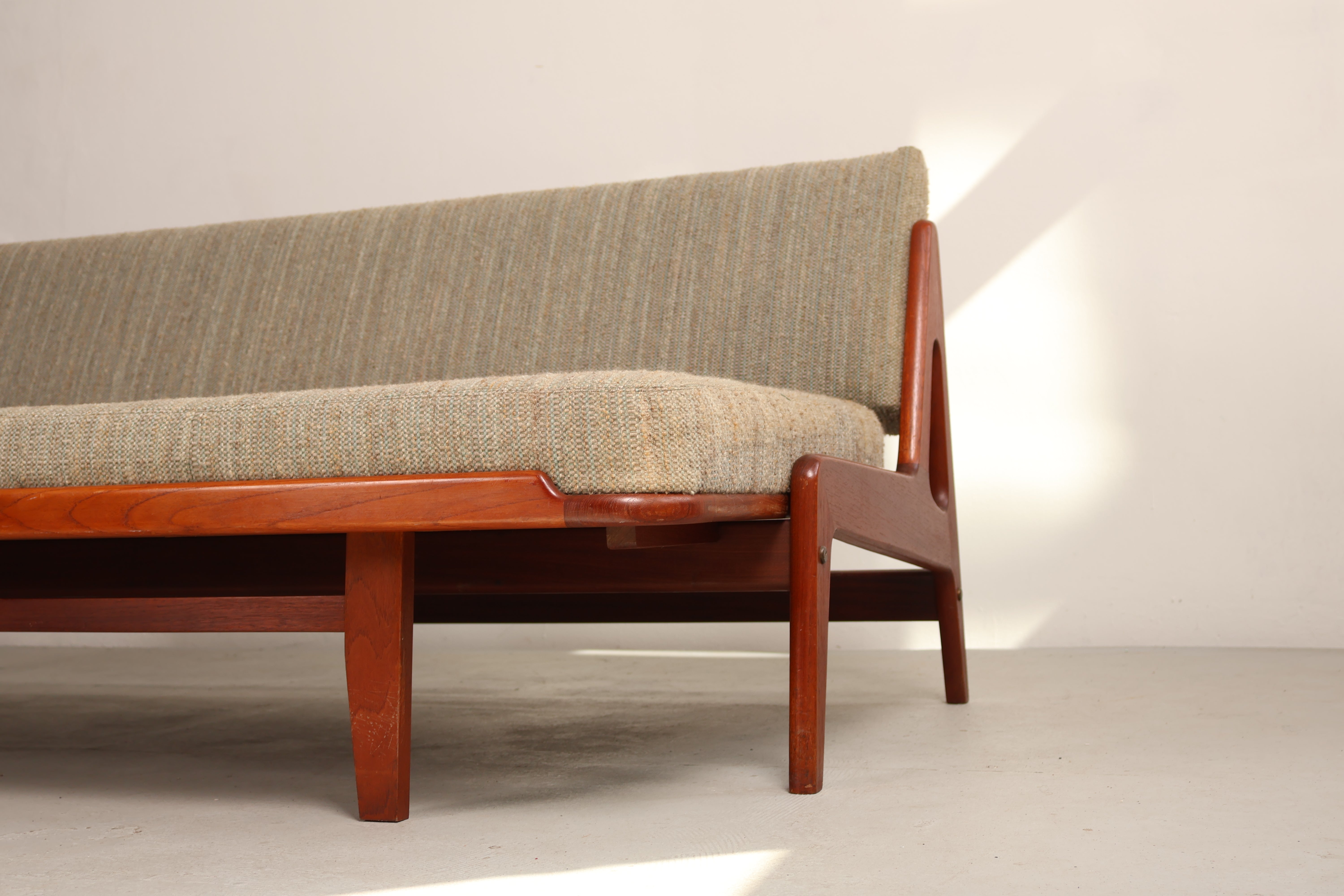 Sofa aus den 60er-Jahren von Arne Wahl Iversen. Hergestellt in Dänemark. Gefertigt aus Teak. Höhe 73 cm, Breite 186 cm, Tiefe 75 cm.