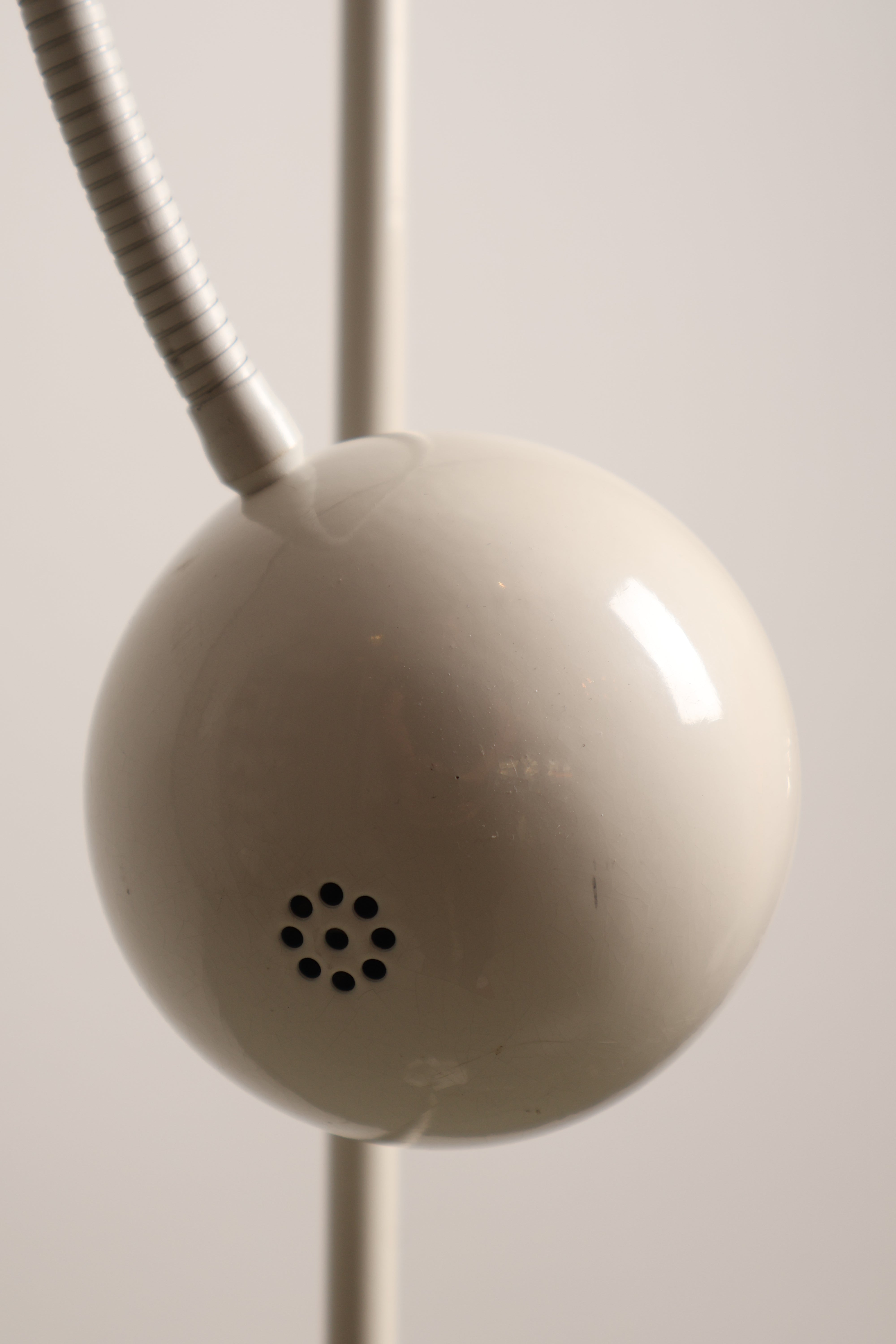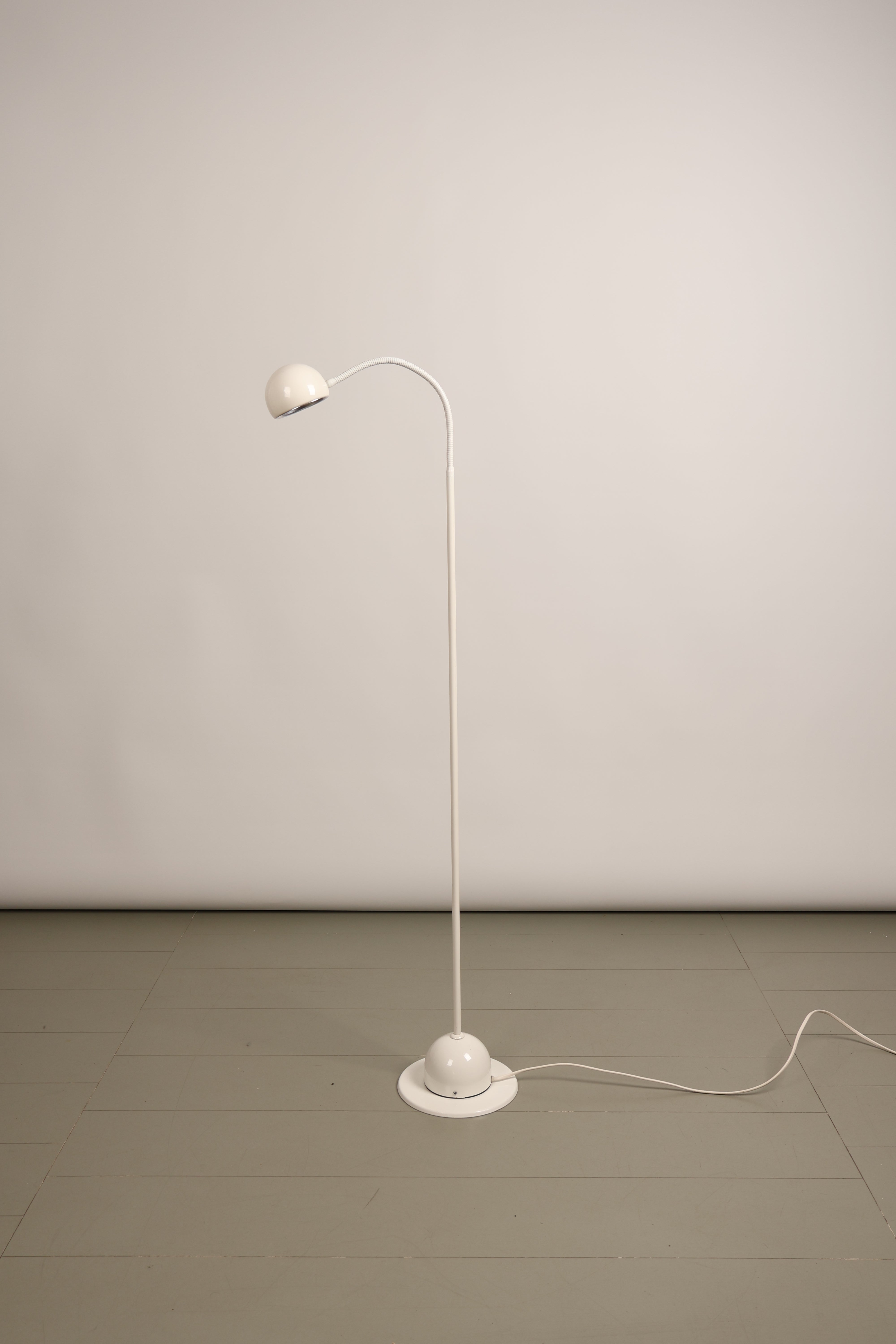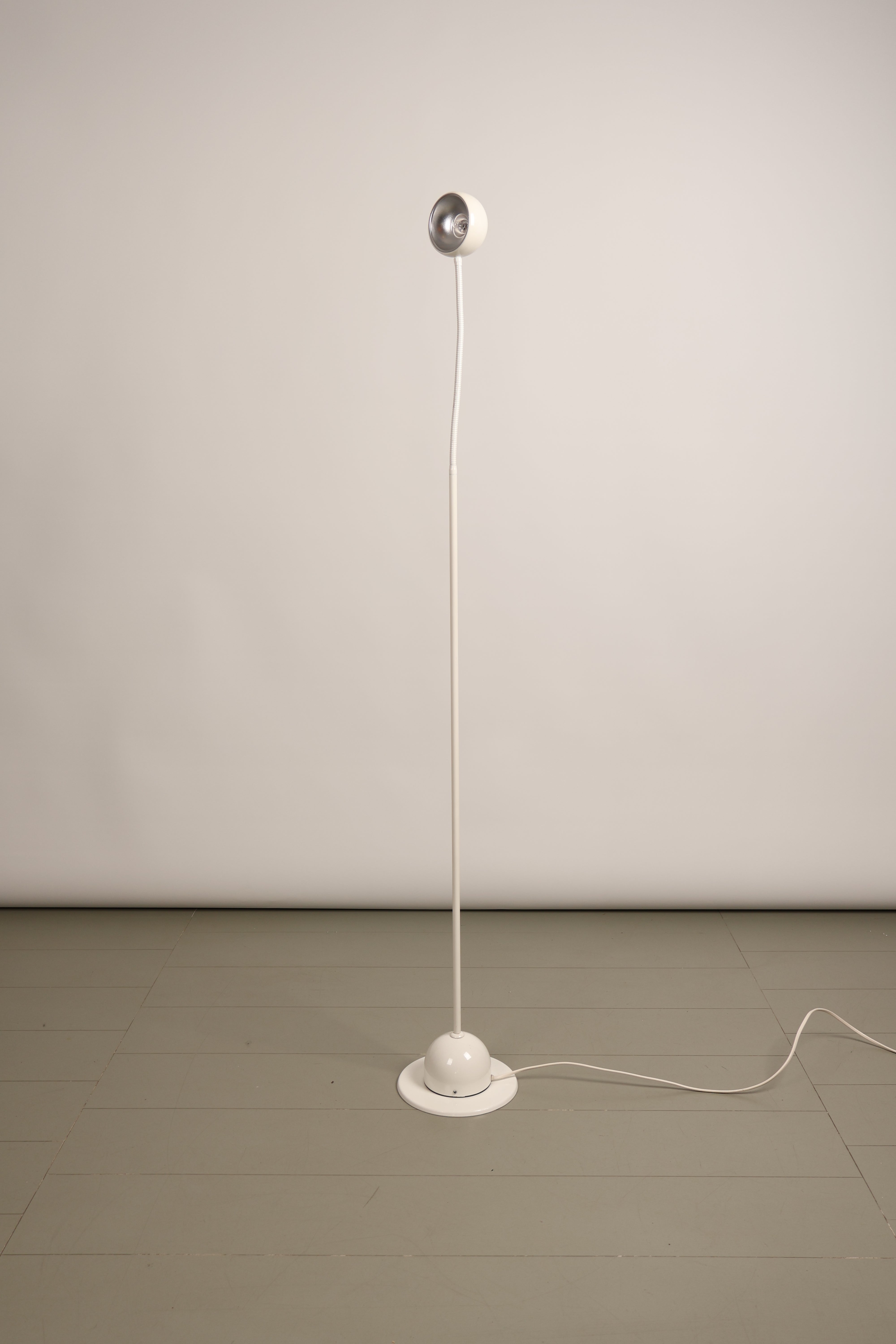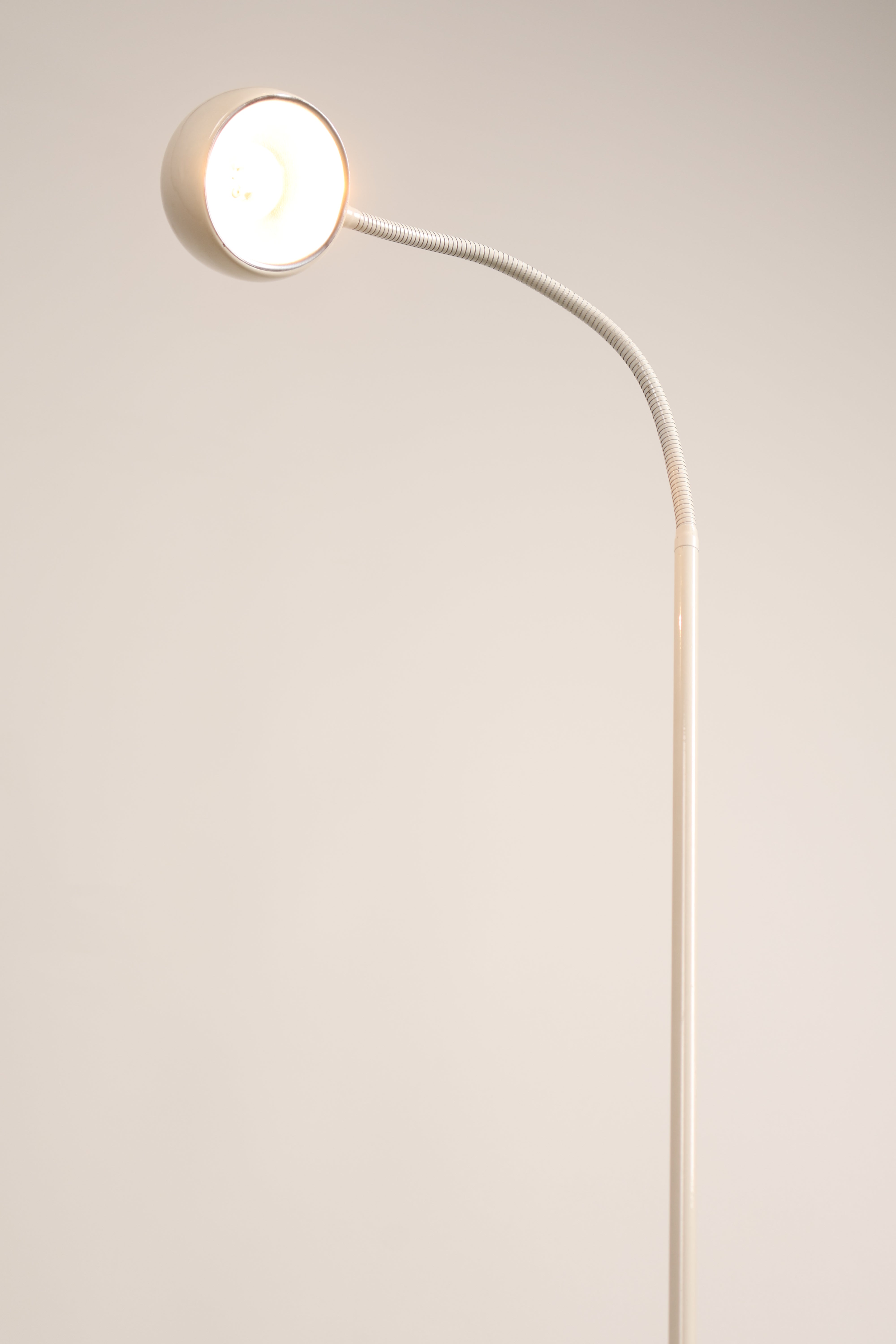 Stehlampe aus den 80er-Jahren für Hustadt Leuchten. Hergestellt in Deutschland. Gefertigt aus Metall. Höhe 153 cm, Breite 22 cm, Tiefe 22 cm.