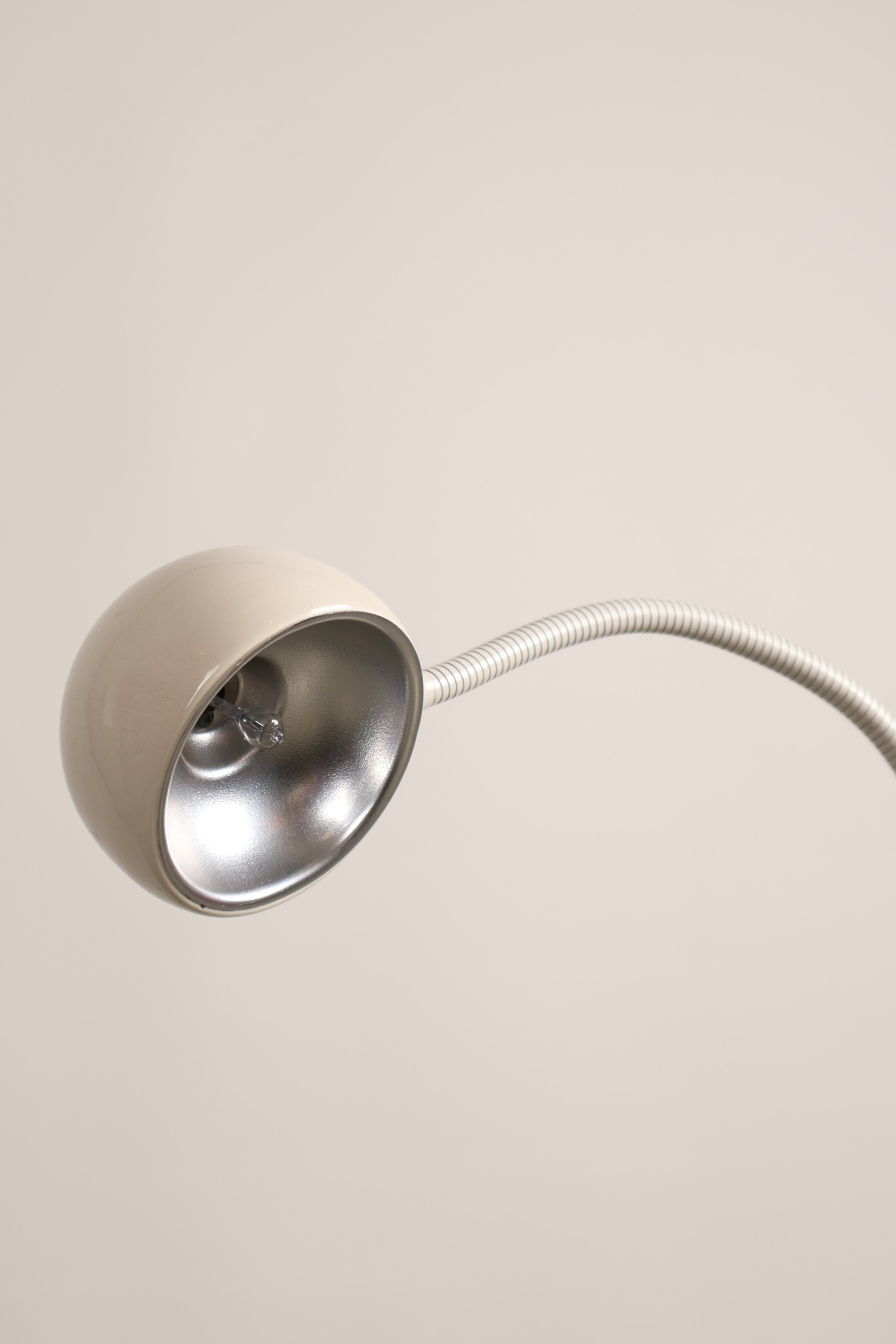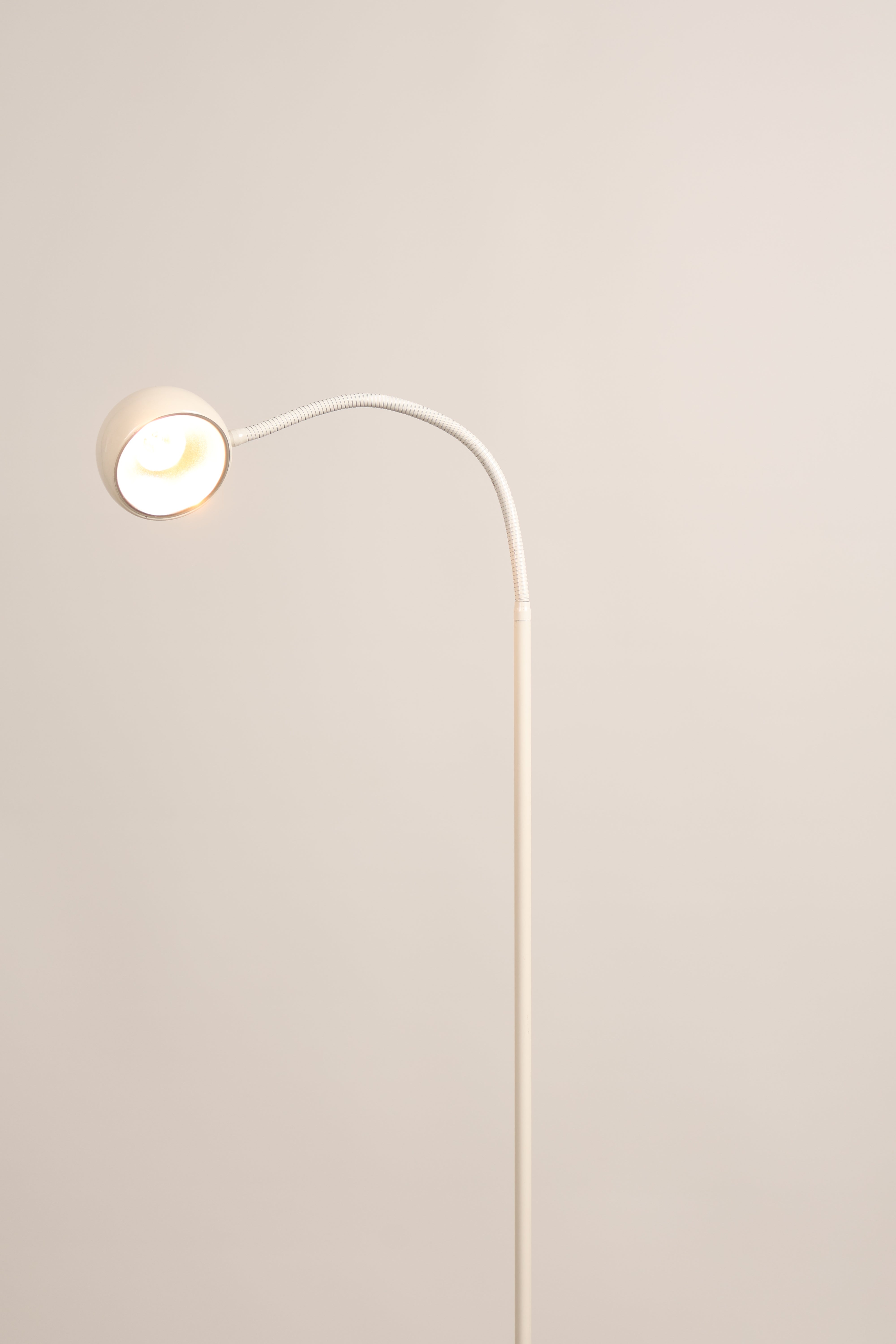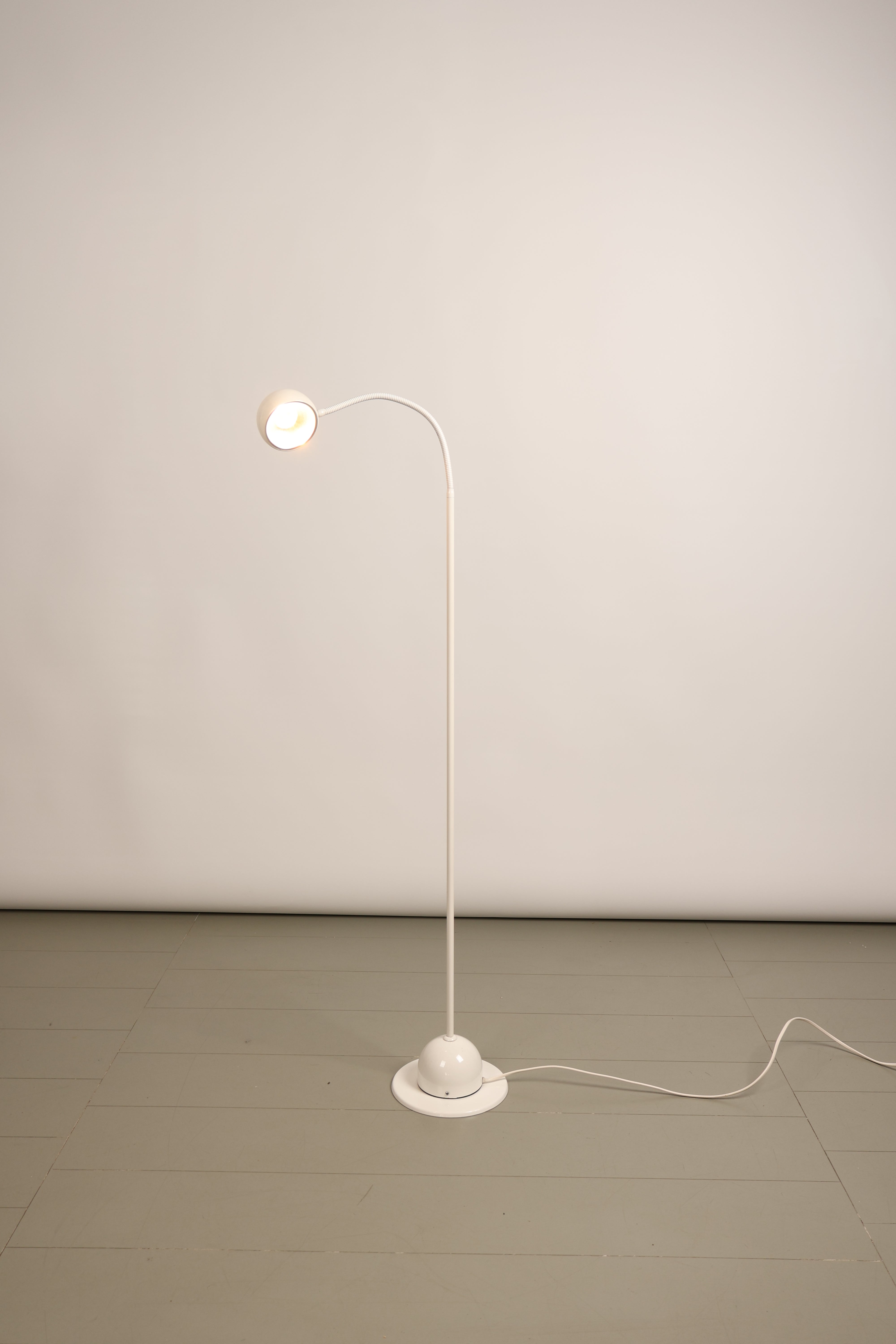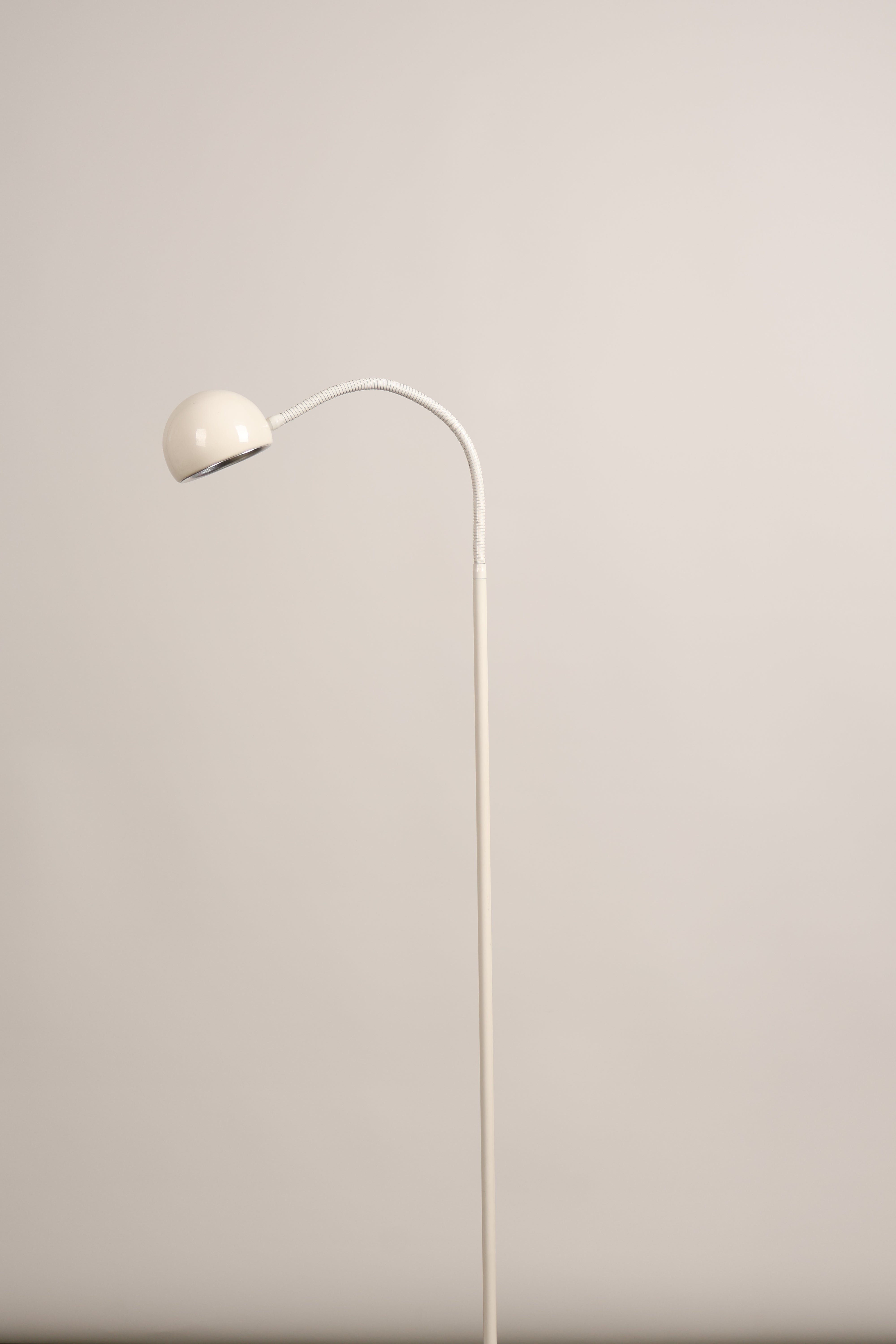 Stehlampe aus den 80er-Jahren für Hustadt Leuchten. Hergestellt in Deutschland. Gefertigt aus Metall. Höhe 153 cm, Breite 22 cm, Tiefe 22 cm.