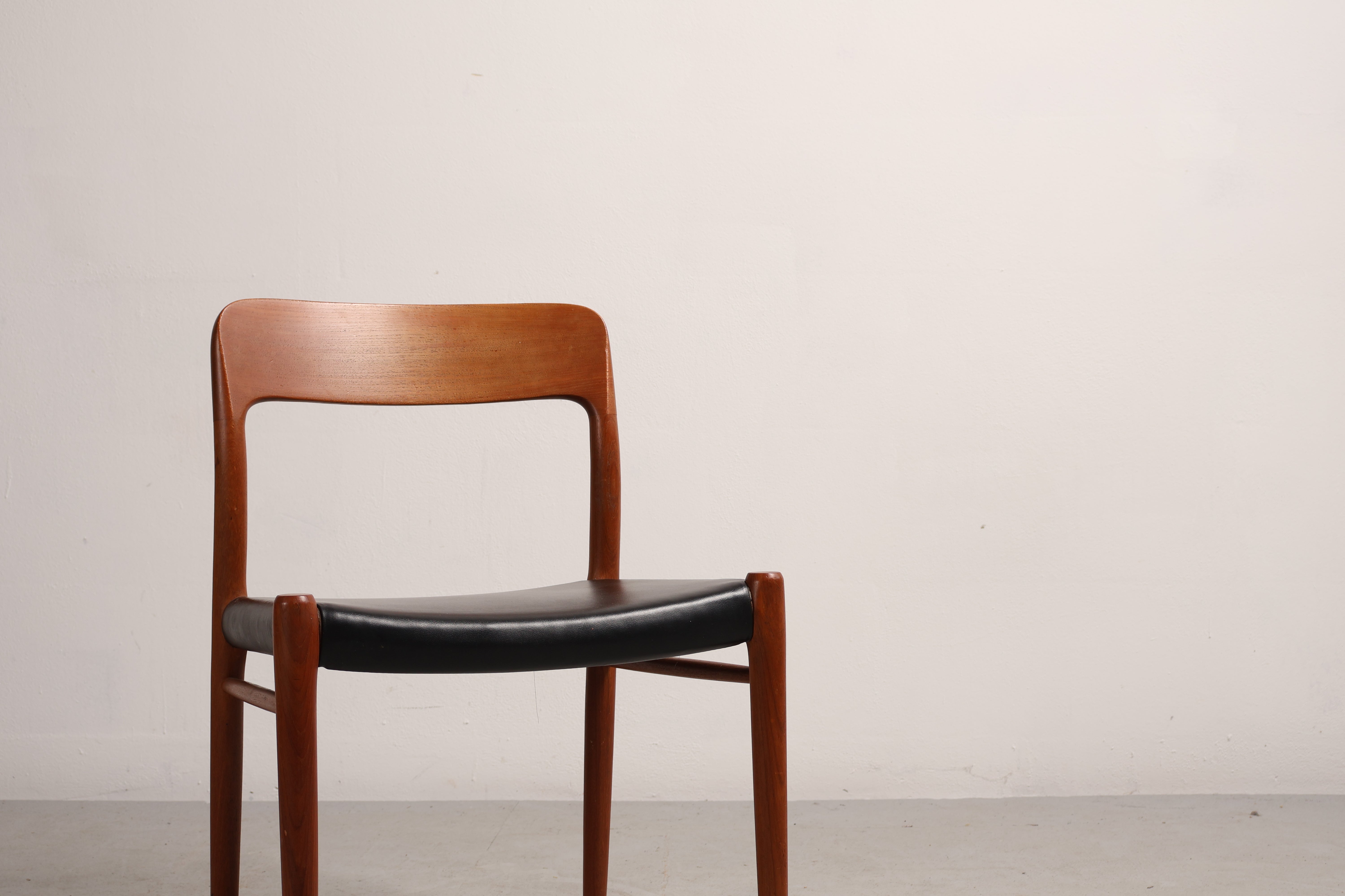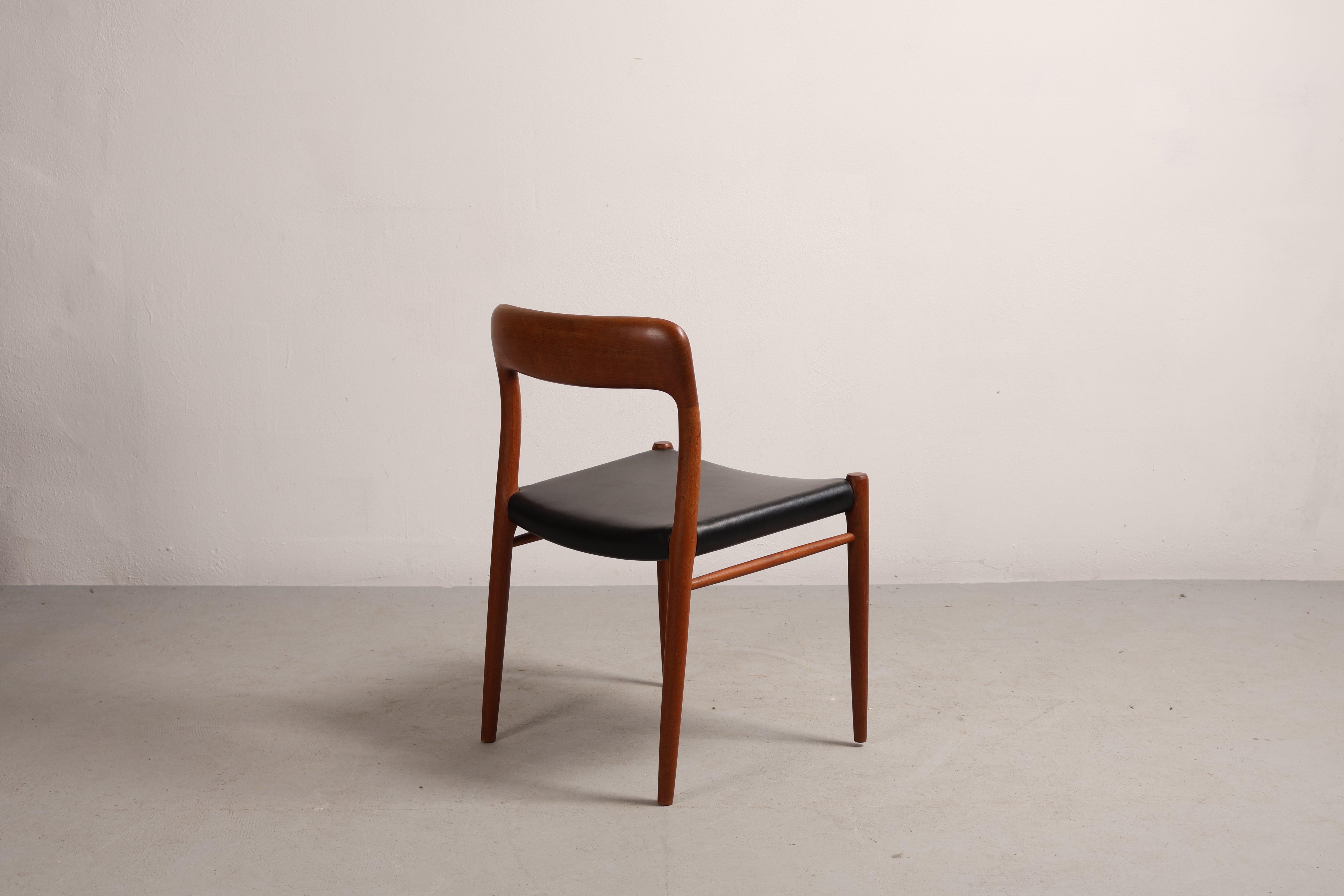 Stuhl „Modell 75“ von Niels Otto Møller, Teak, Leder, 60er, Dänemark