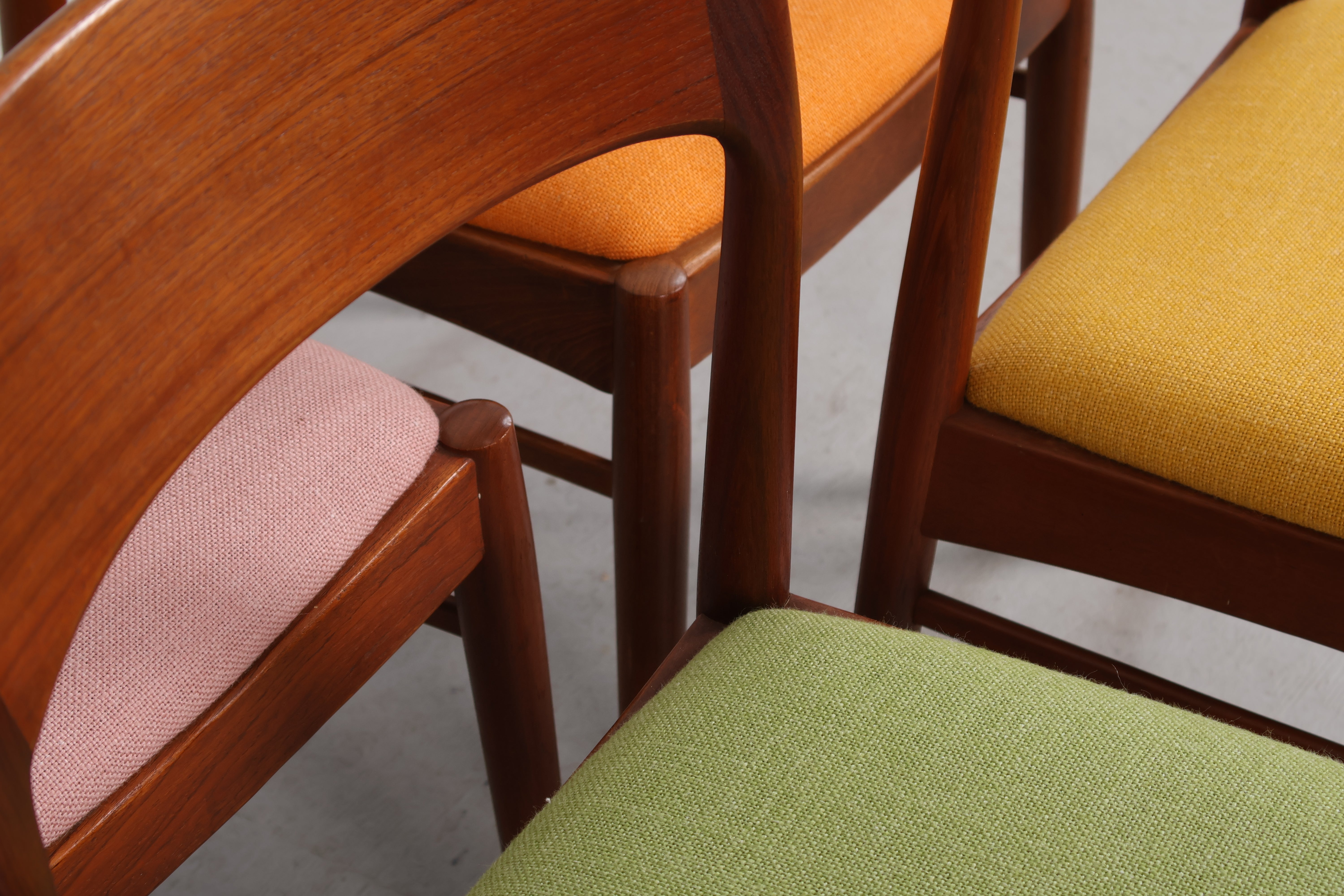 Stuhl aus den 60er-Jahren für K. S. Korup. Hergestellt in Dänemark. Gefertigt aus Teak. Höhe 80 cm, Breite 47 cm, Tiefe 47 cm.