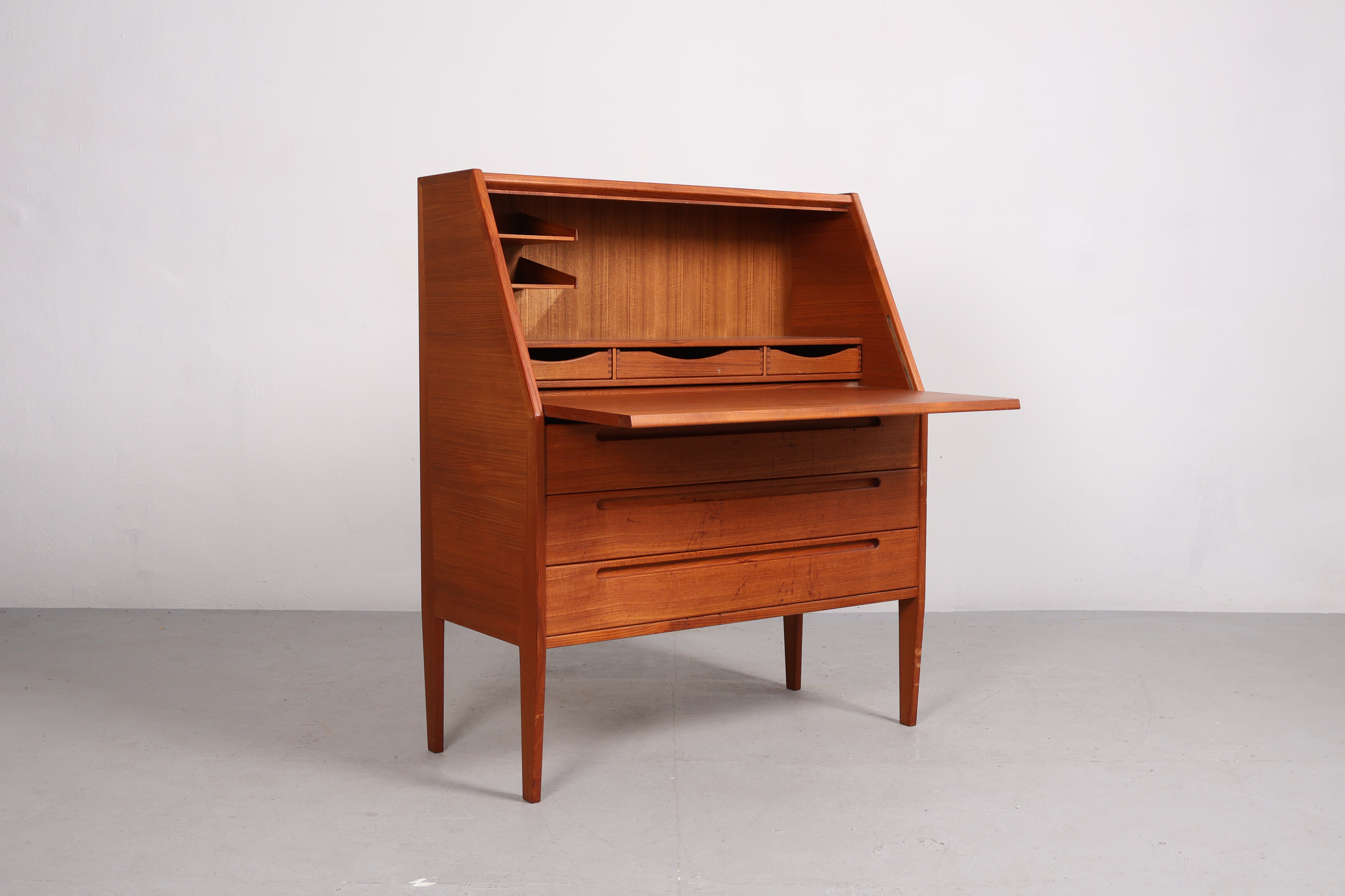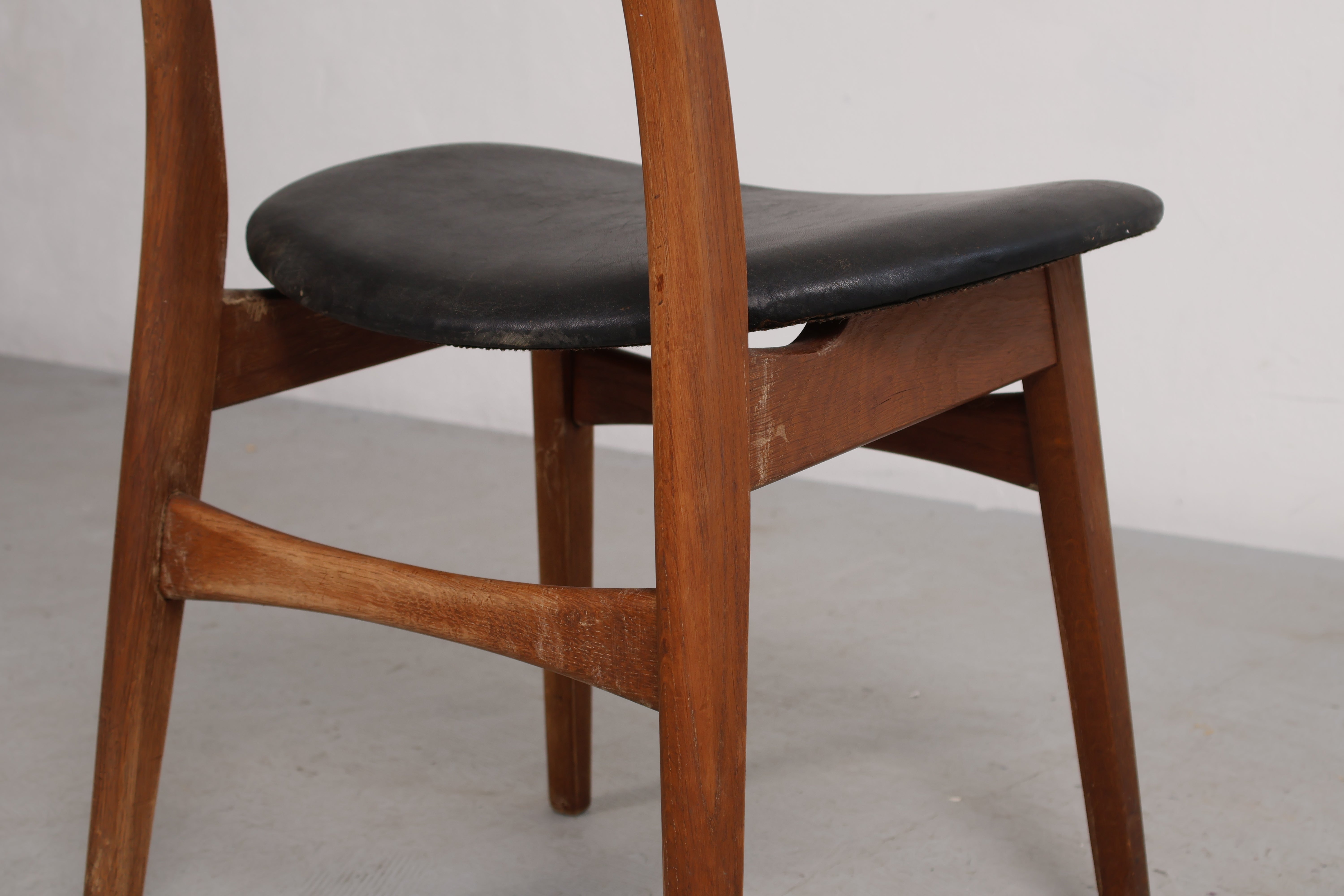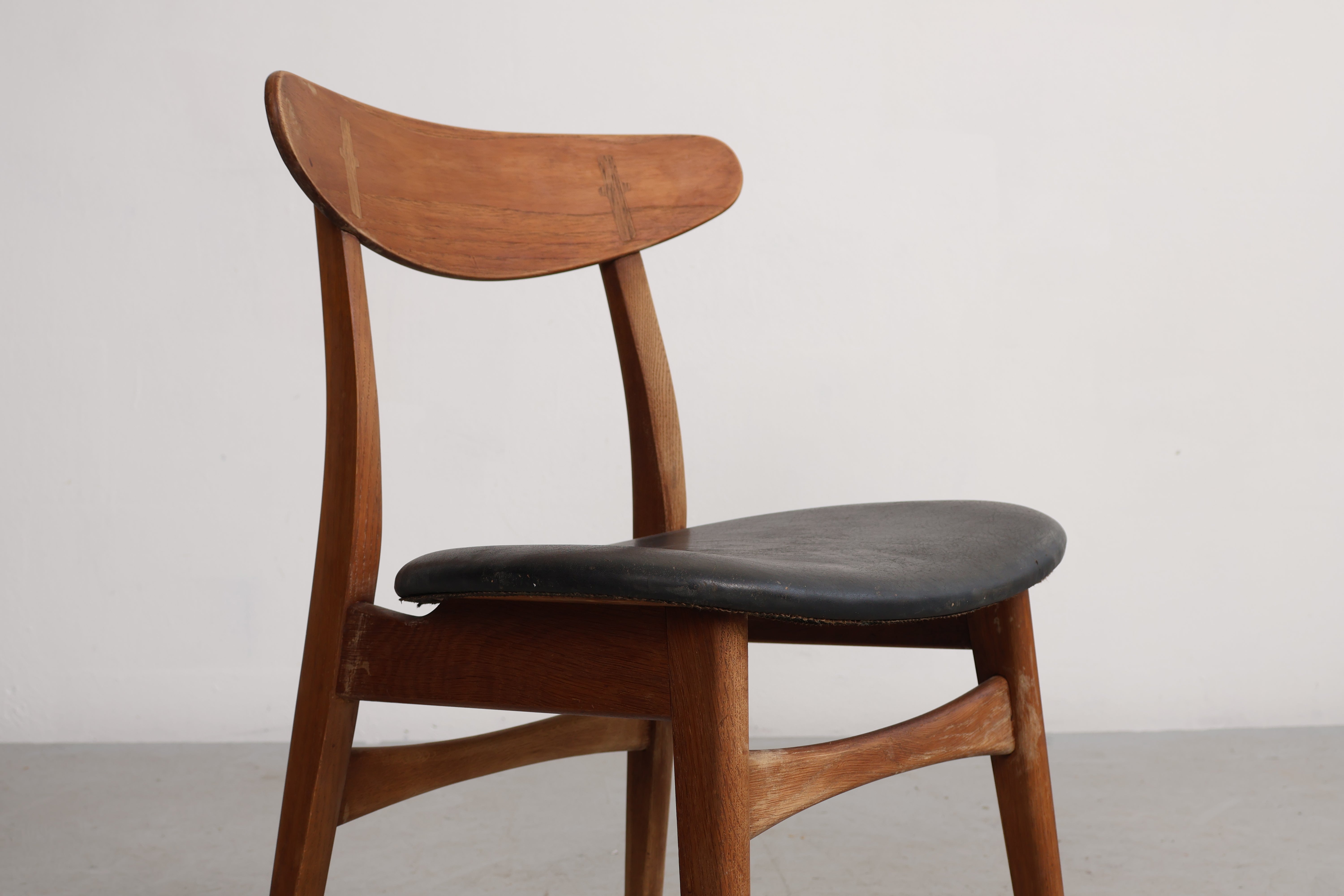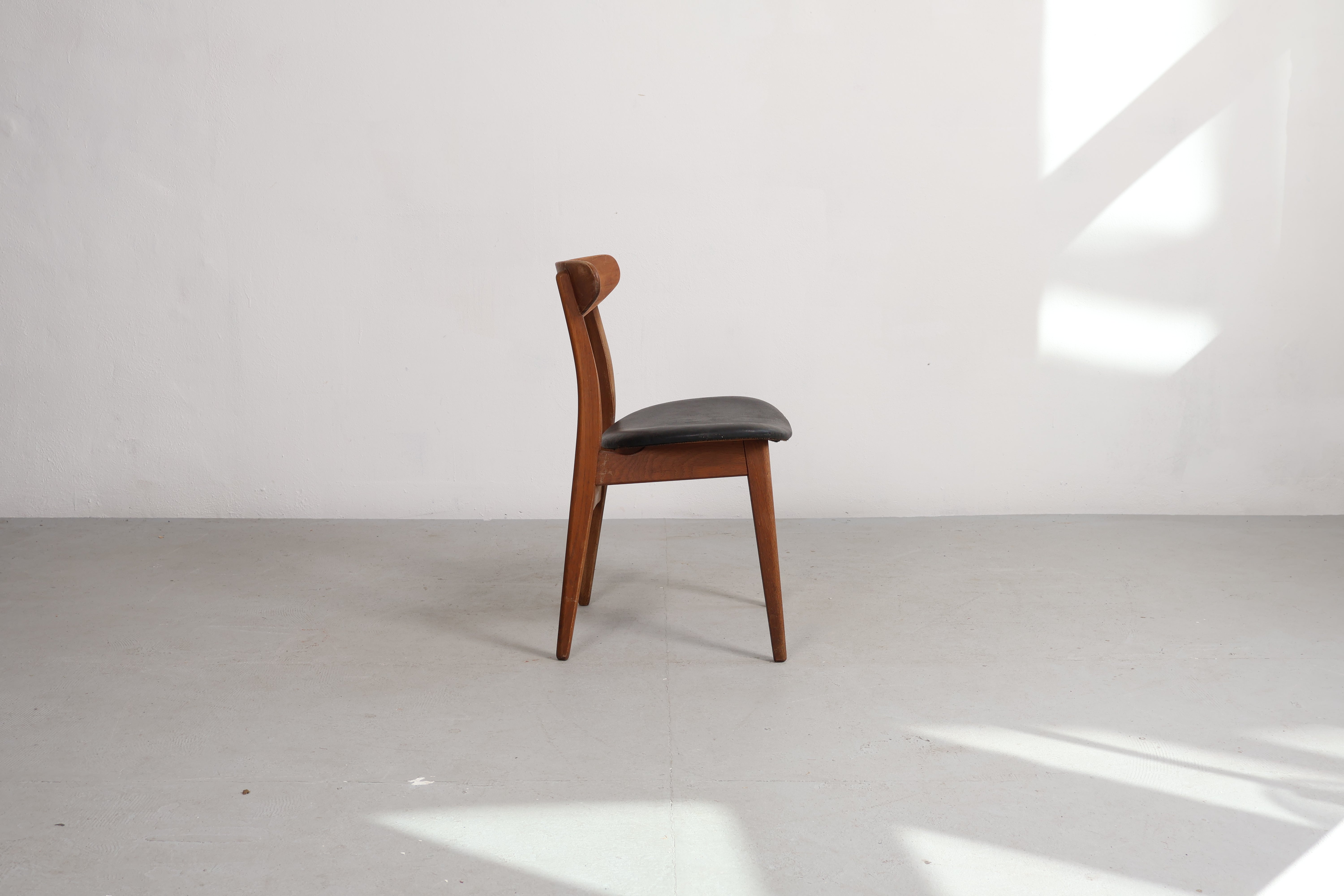 Stuhl aus den 60er-Jahren von Hans Wegner für Carl Hansen & Son. Hergestellt in Dänemark. Gefertigt aus Teak. Höhe 79 cm, Breite 52 cm, Tiefe 47 cm.
