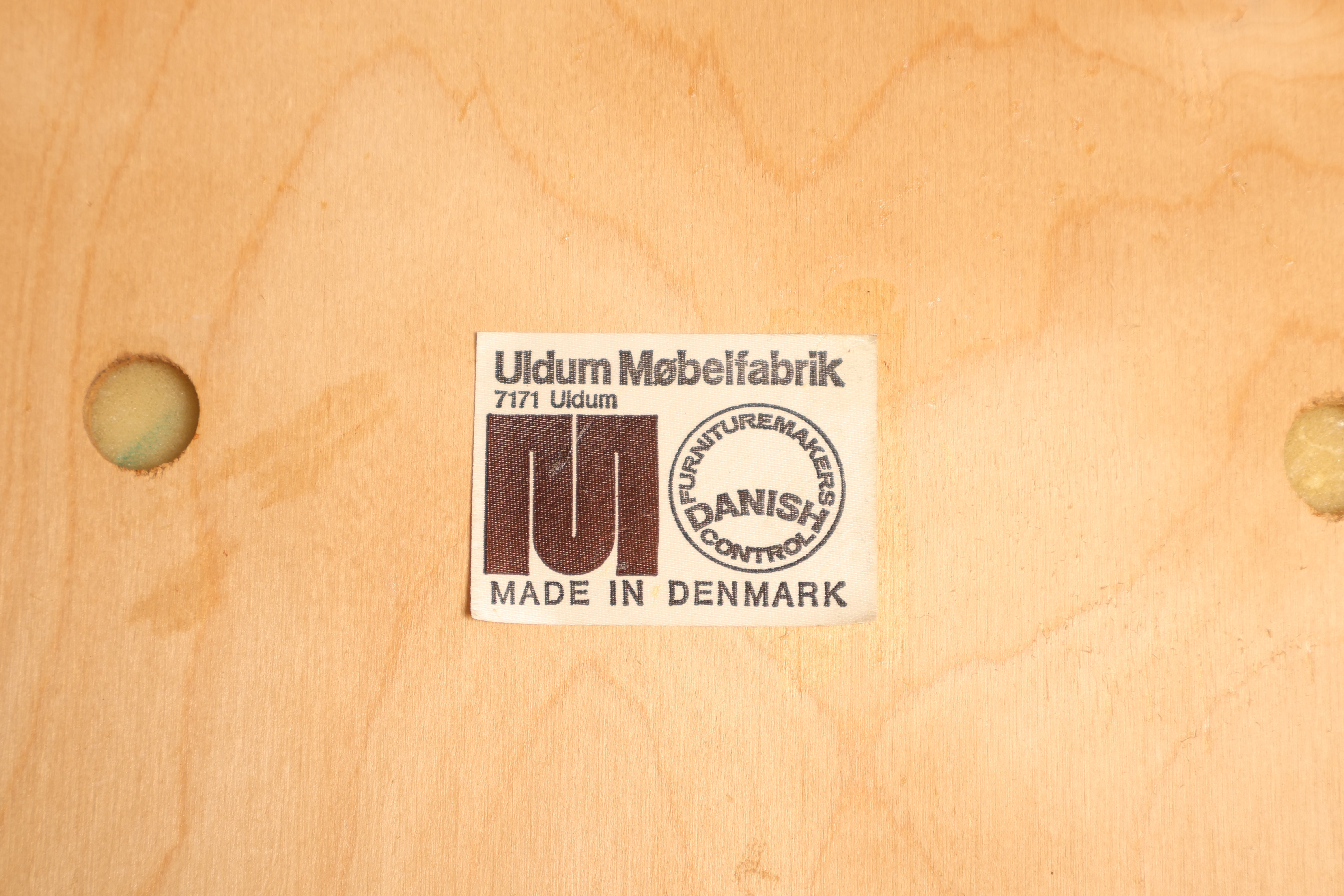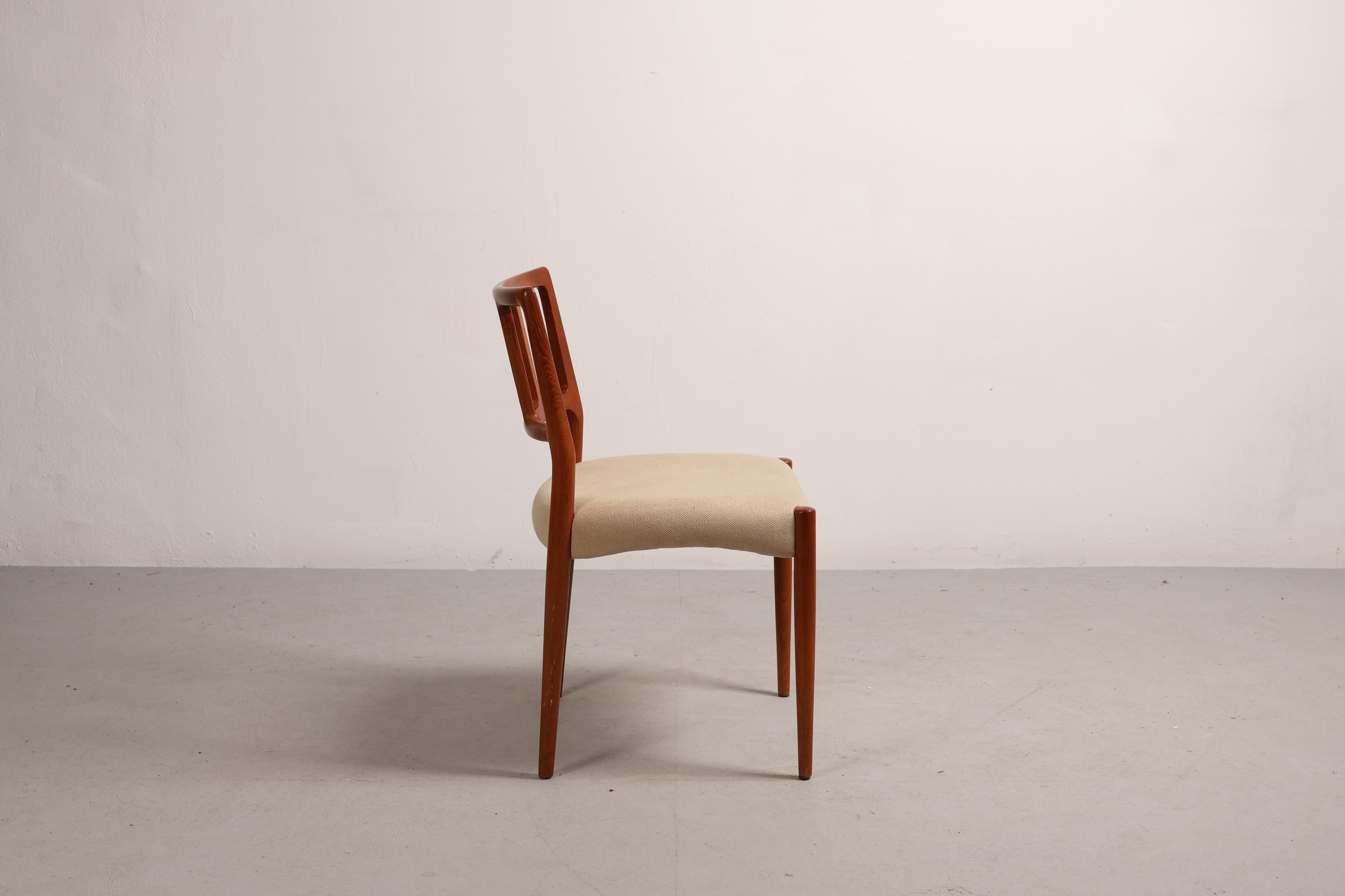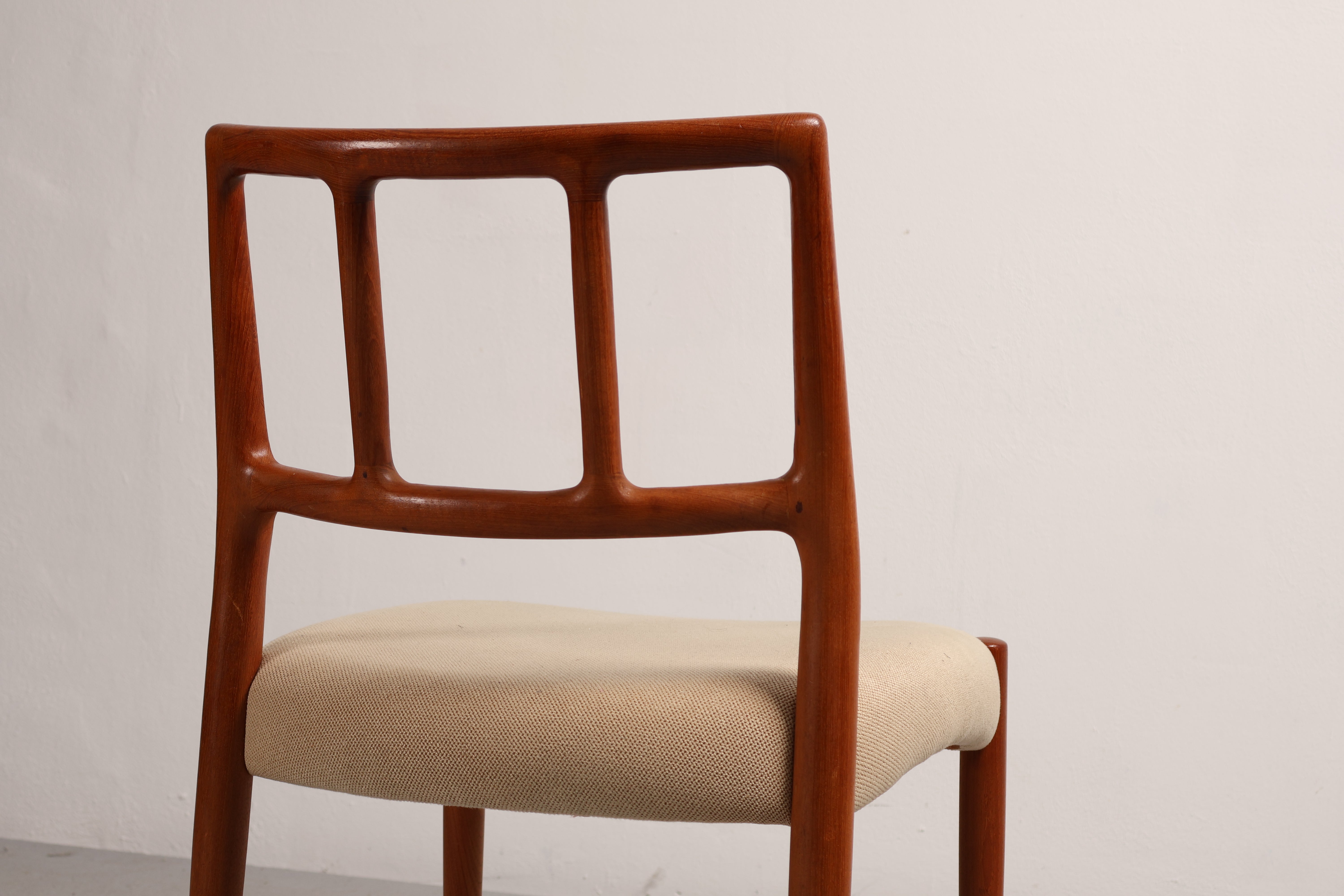 Stuhl aus den 50er-Jahren von Johannes Andersen für Uldum Møbelfabrik. Hergestellt in Dänemark. Gefertigt aus Teak. Höhe 80 cm, Breite 48 cm, Tiefe 54 cm.