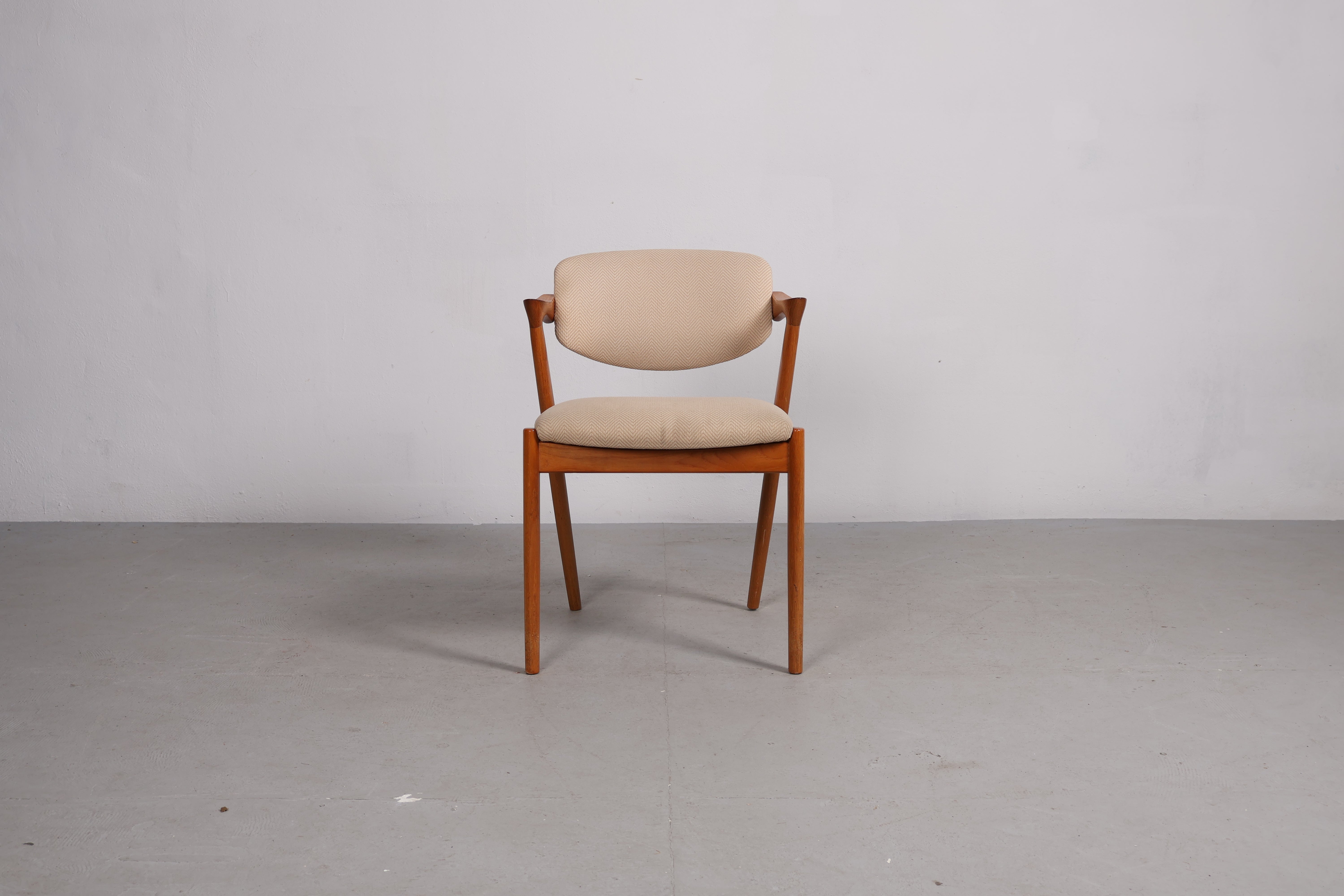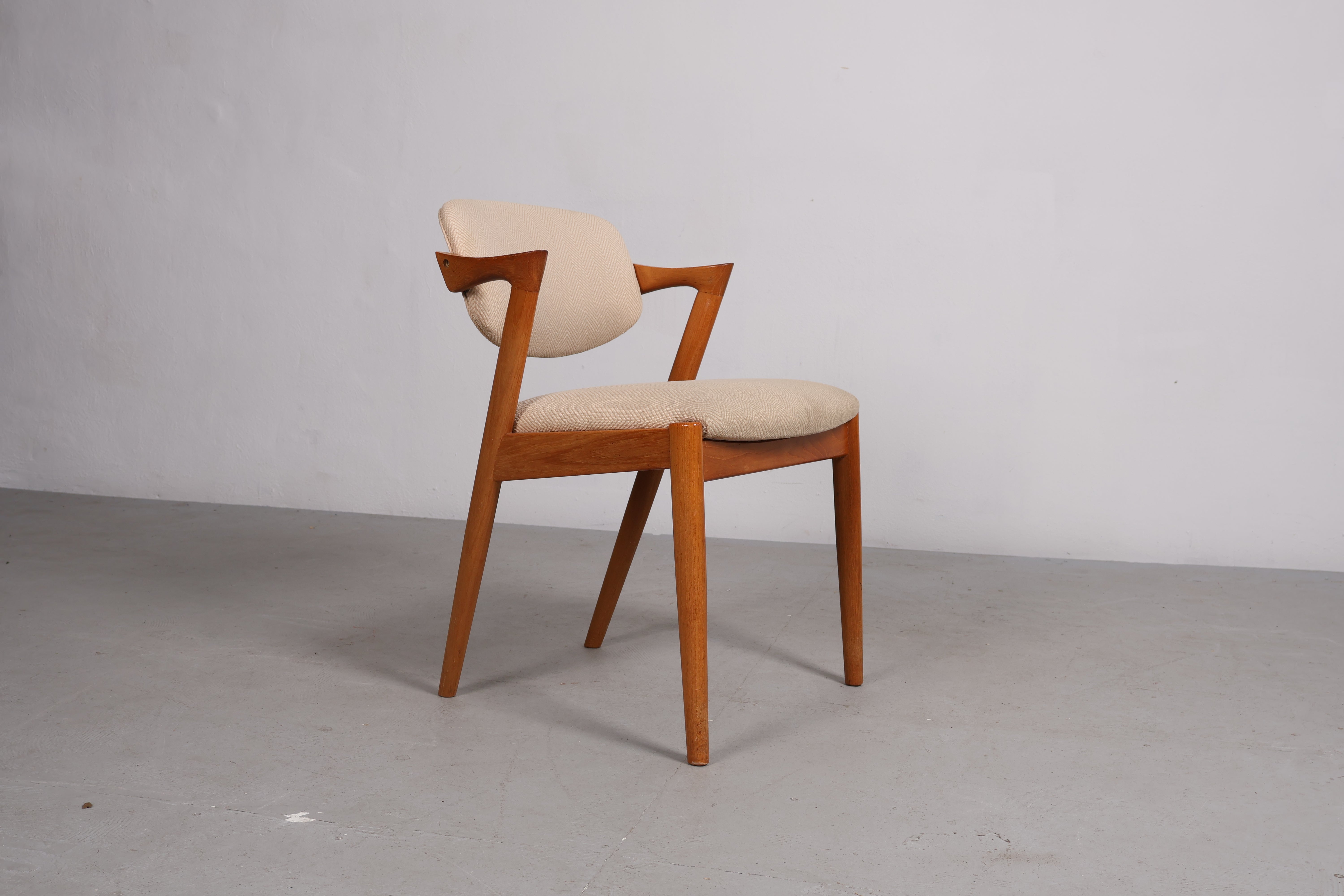 Stuhl „Z-Stuhl“ aus den 60er-Jahren von Kai Kristiansen. Hergestellt in Dänemark. Gefertigt aus Teak. Höhe 76 cm, Breite 54 cm, Tiefe 52 cm.