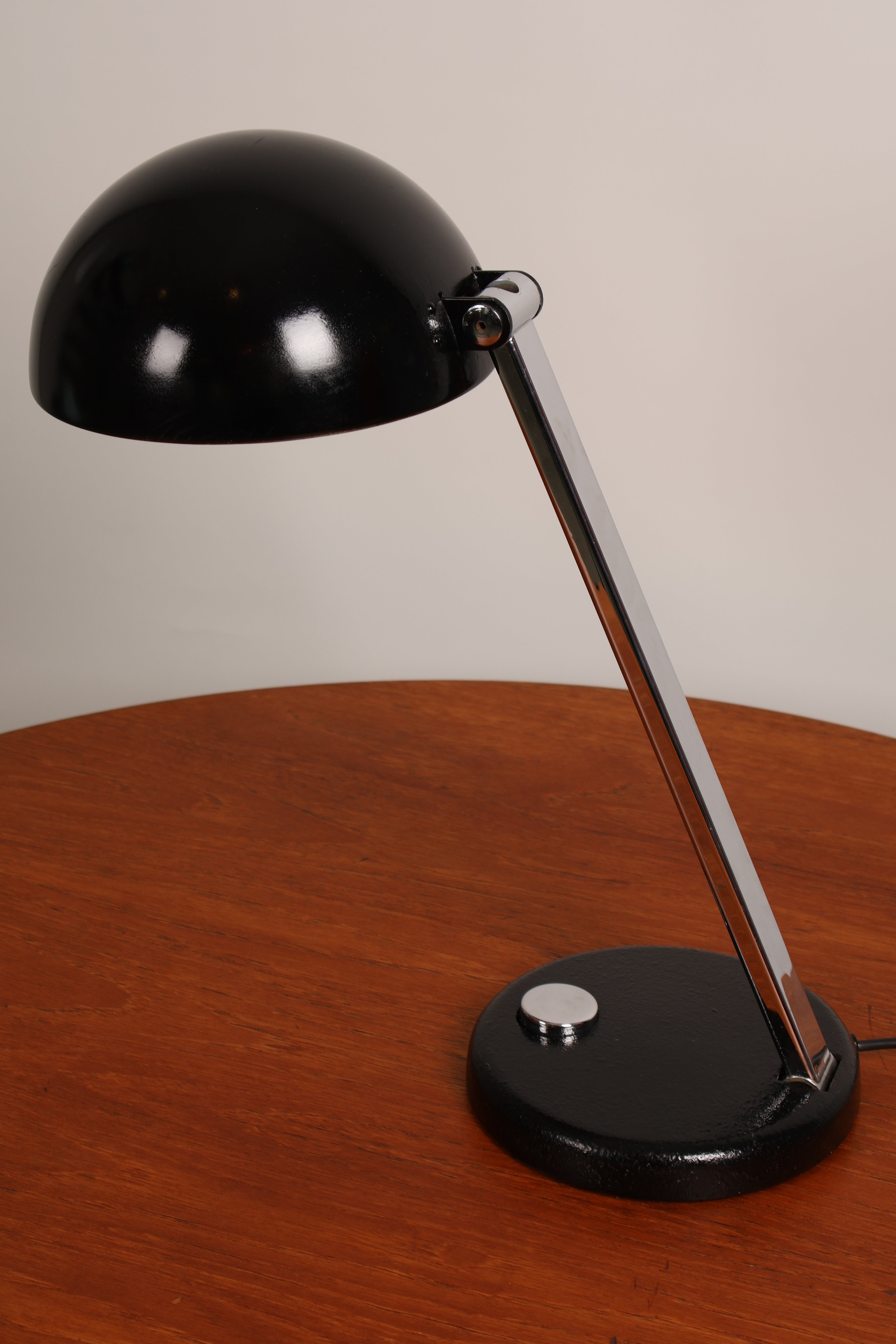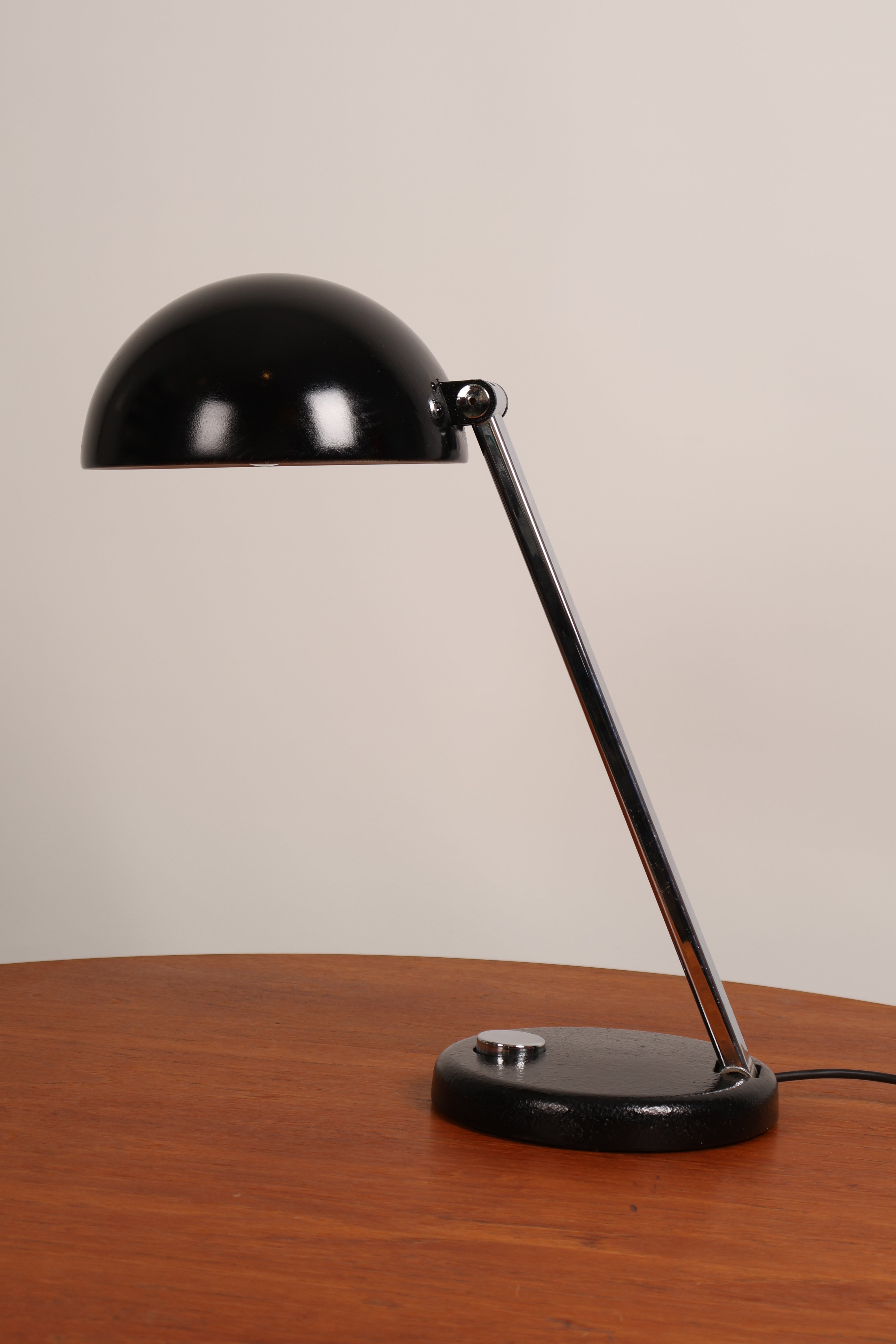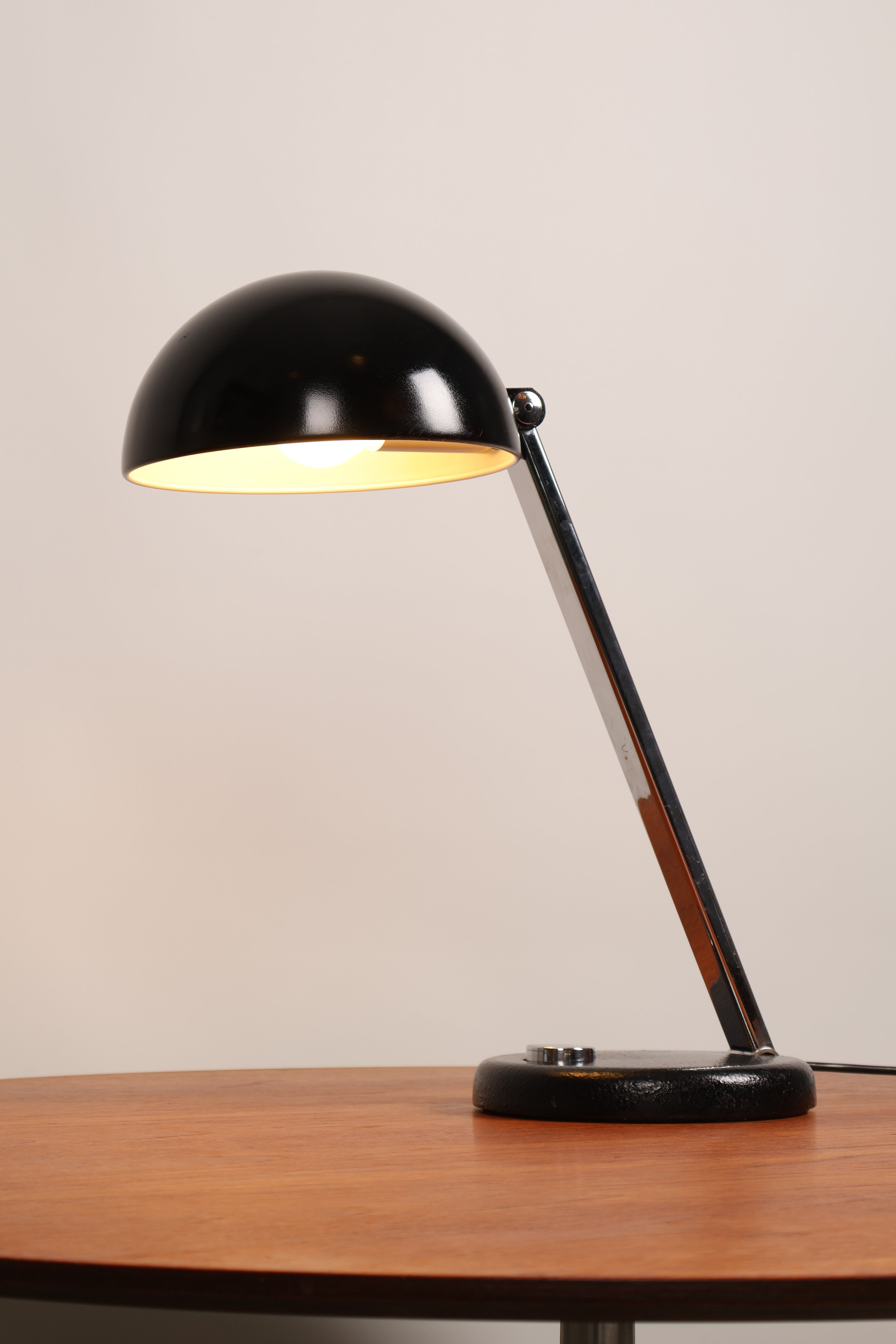 Tischlampe aus den 70er-Jahren für Hillebrand. Hergestellt in Deutschland. Gefertigt aus Metall. Höhe 48 cm, Breite 36 cm, Tiefe 22 cm.