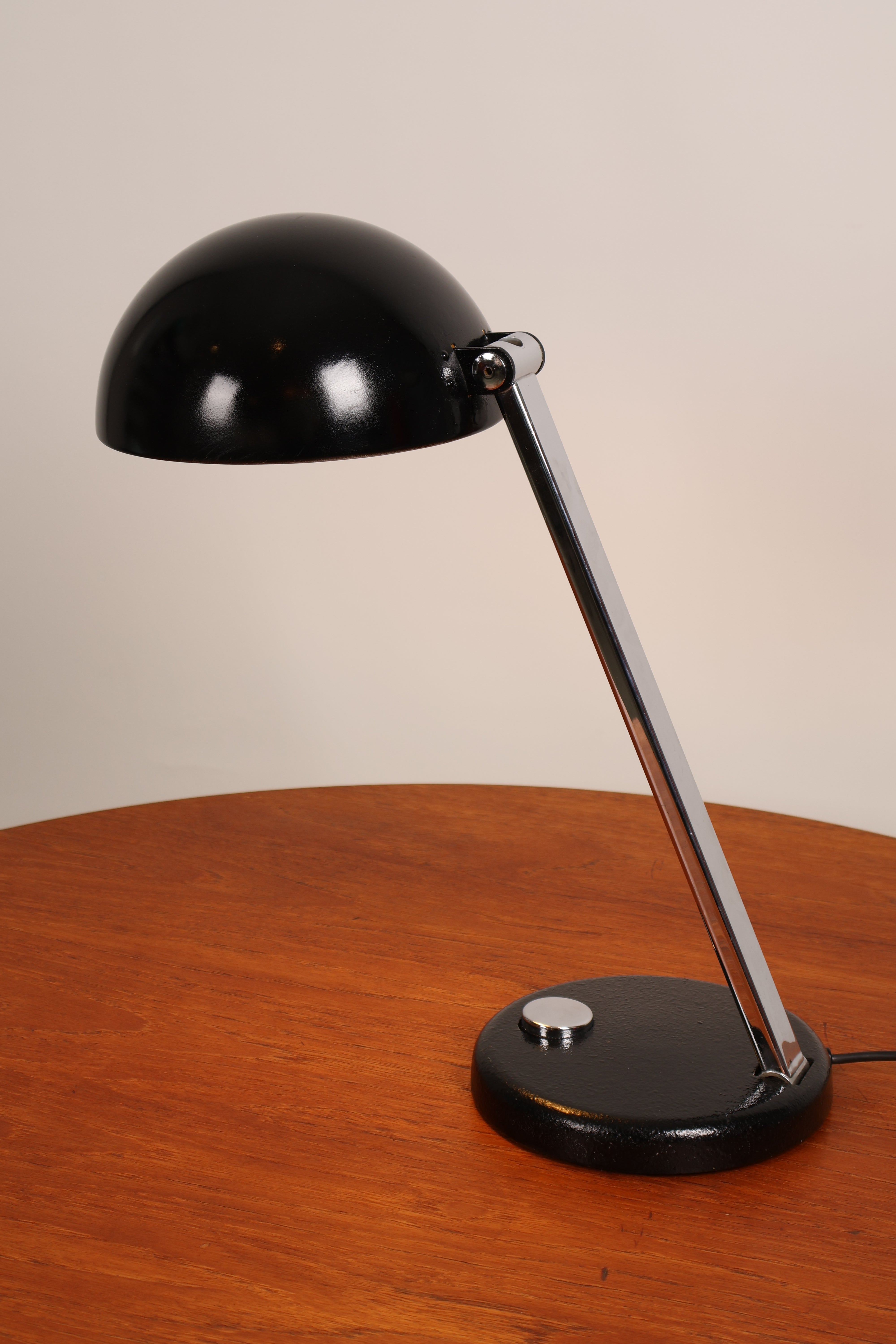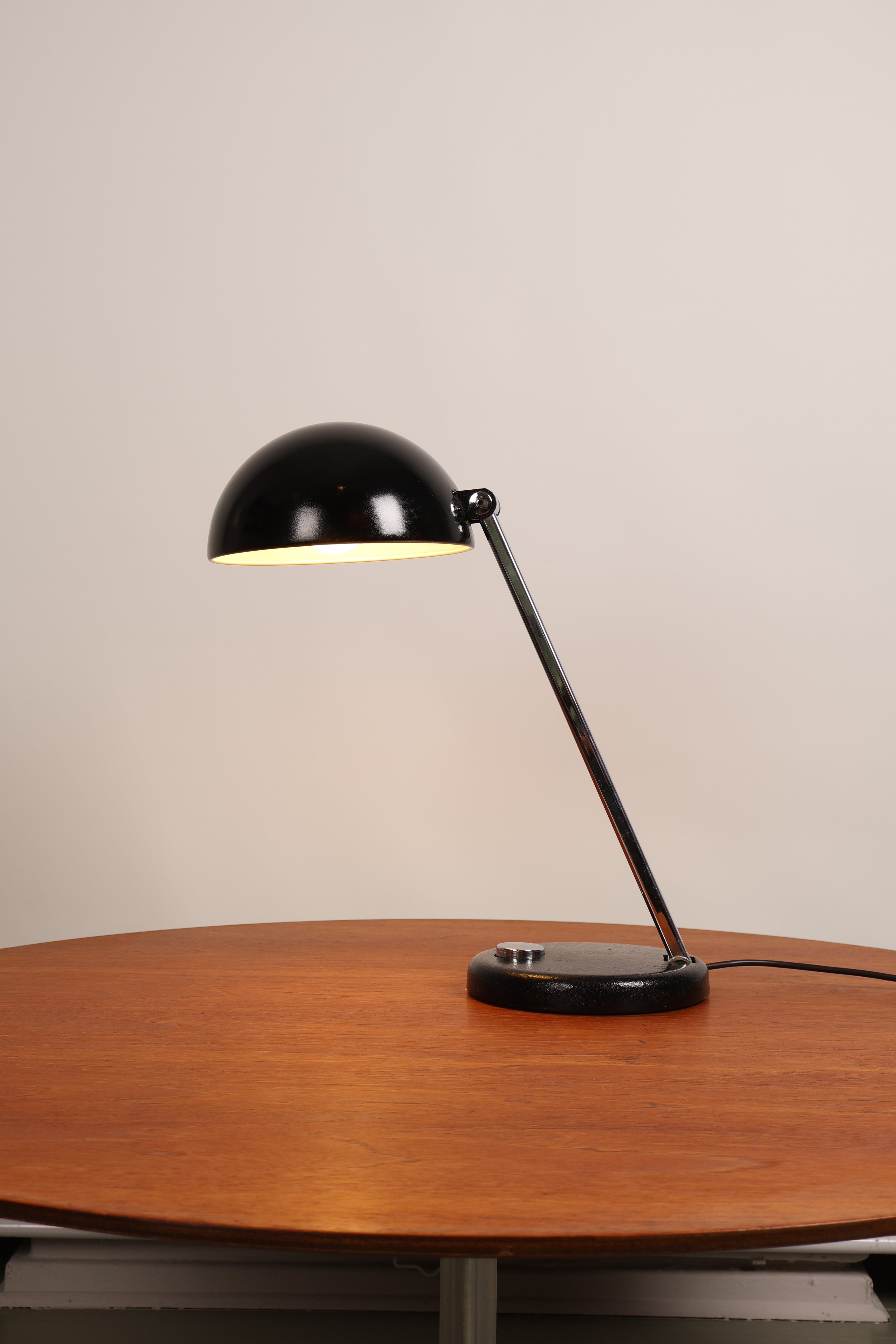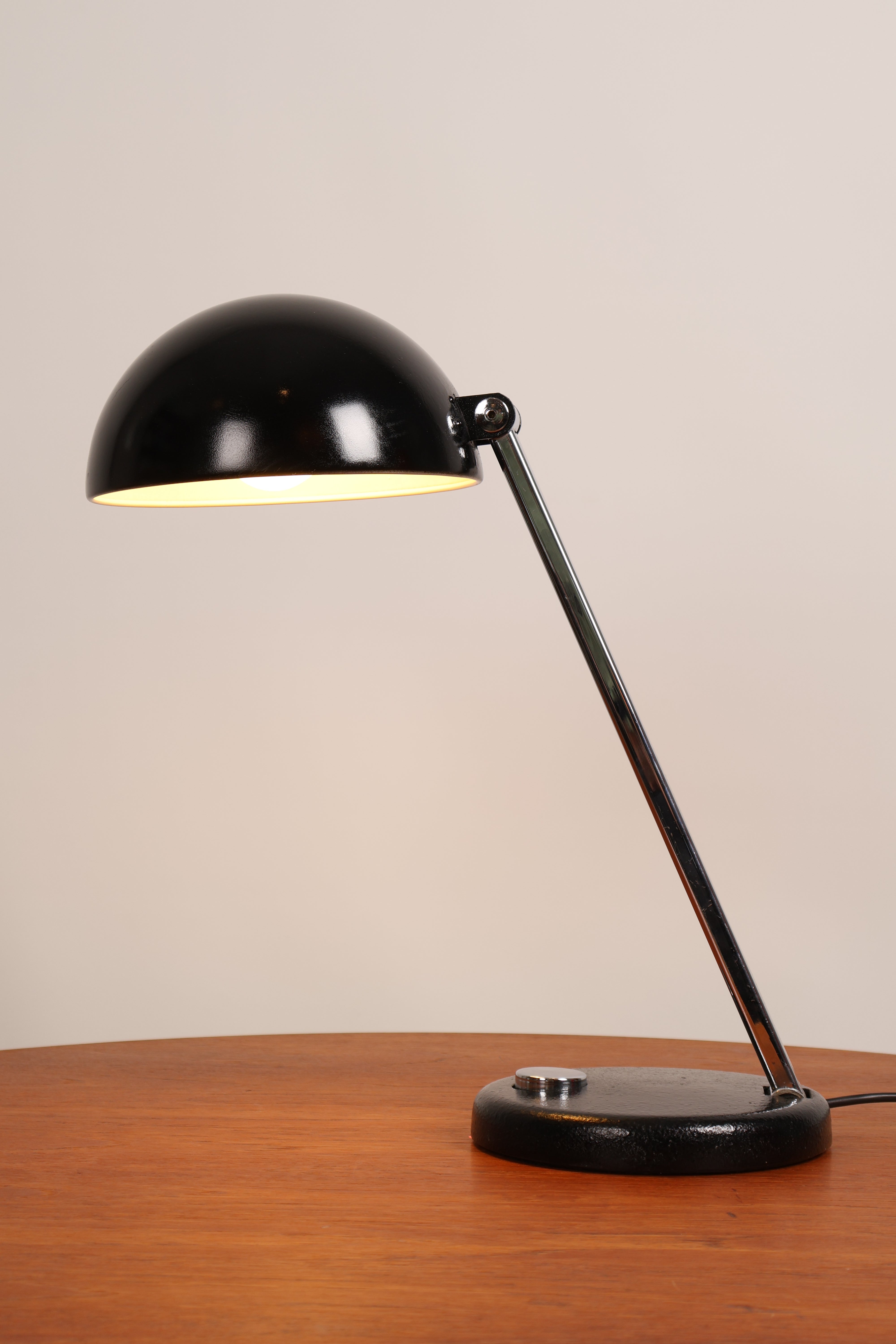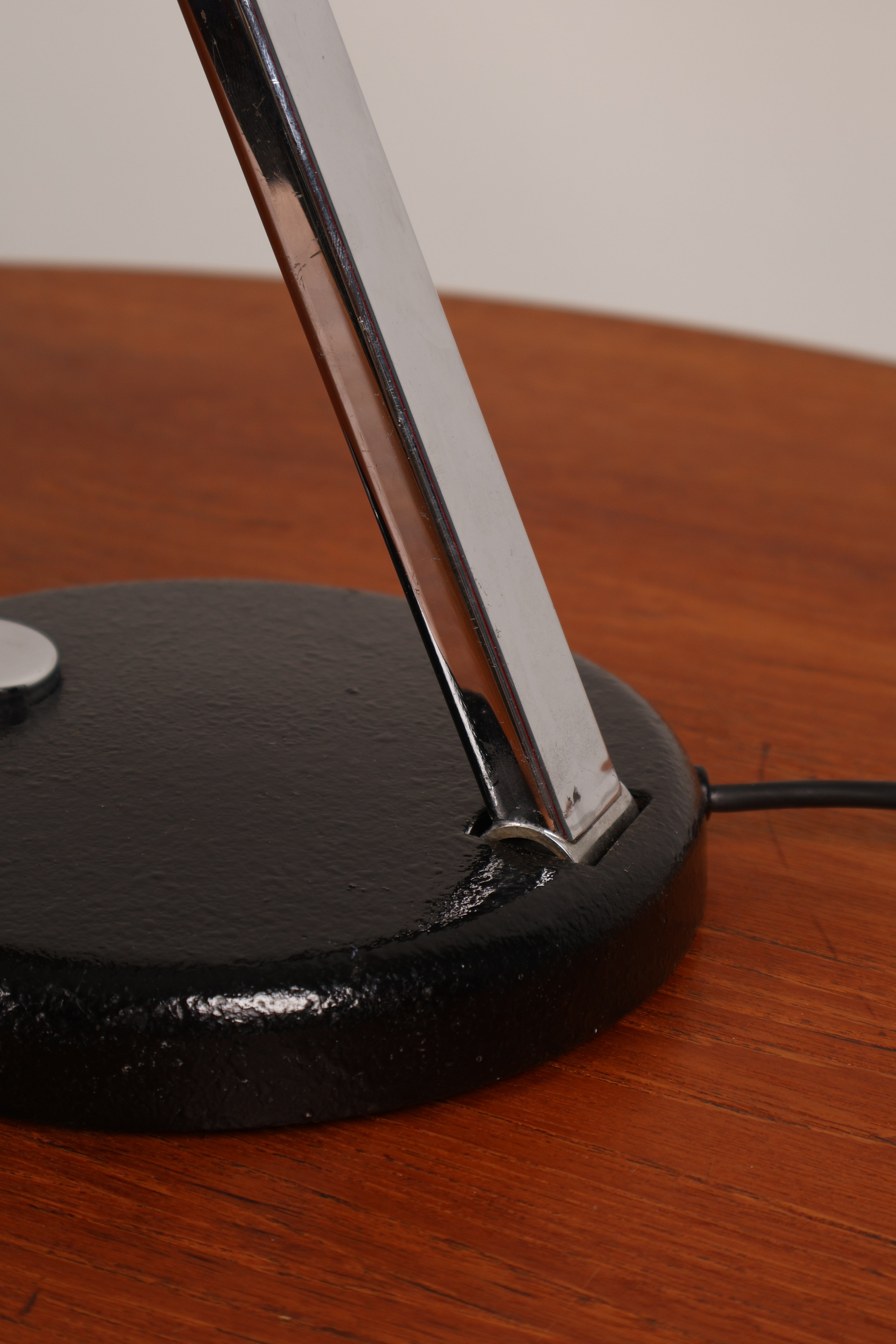 Tischlampe aus den 70er-Jahren für Hillebrand. Hergestellt in Deutschland. Gefertigt aus Metall. Höhe 48 cm, Breite 36 cm, Tiefe 22 cm.