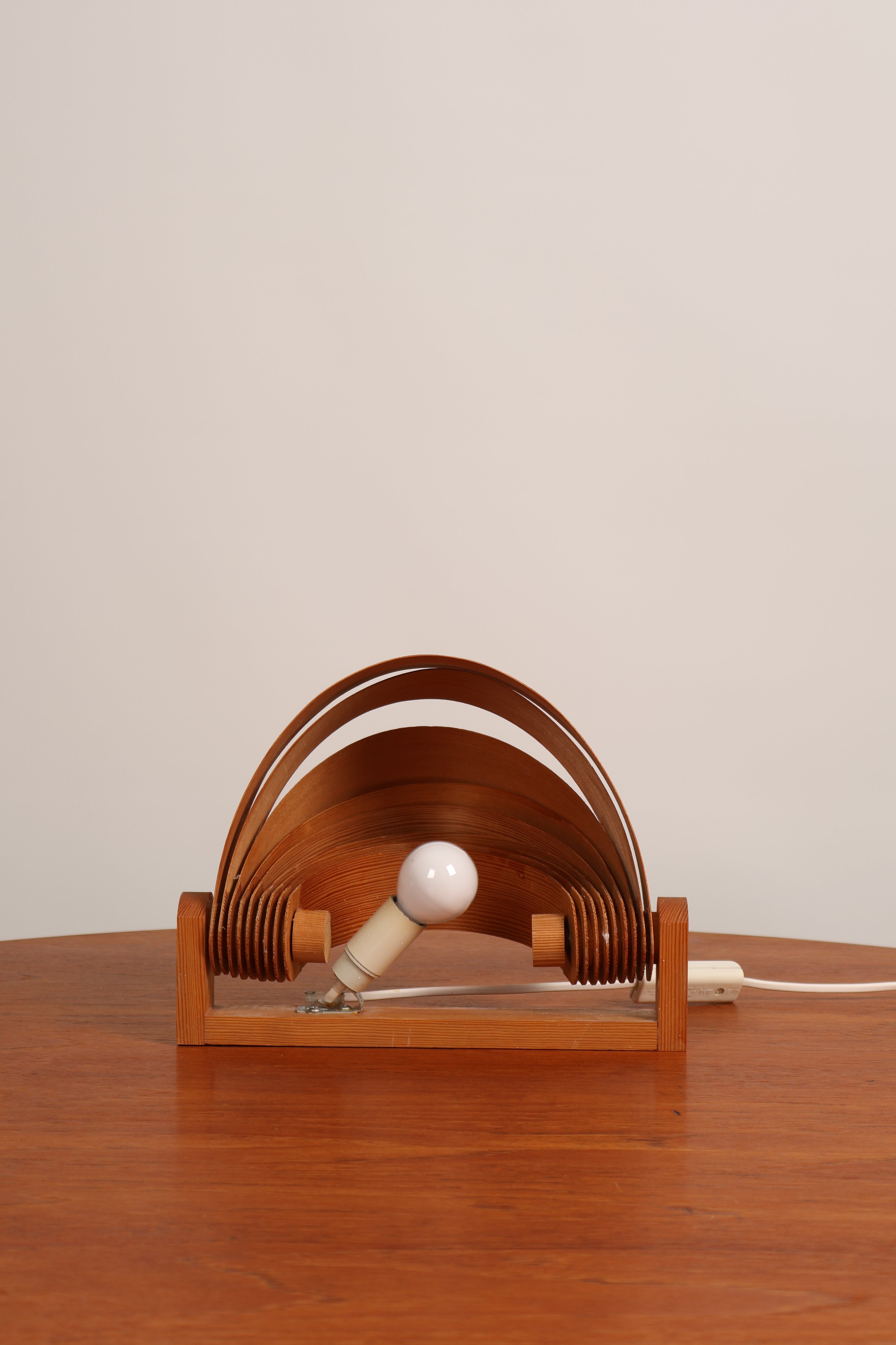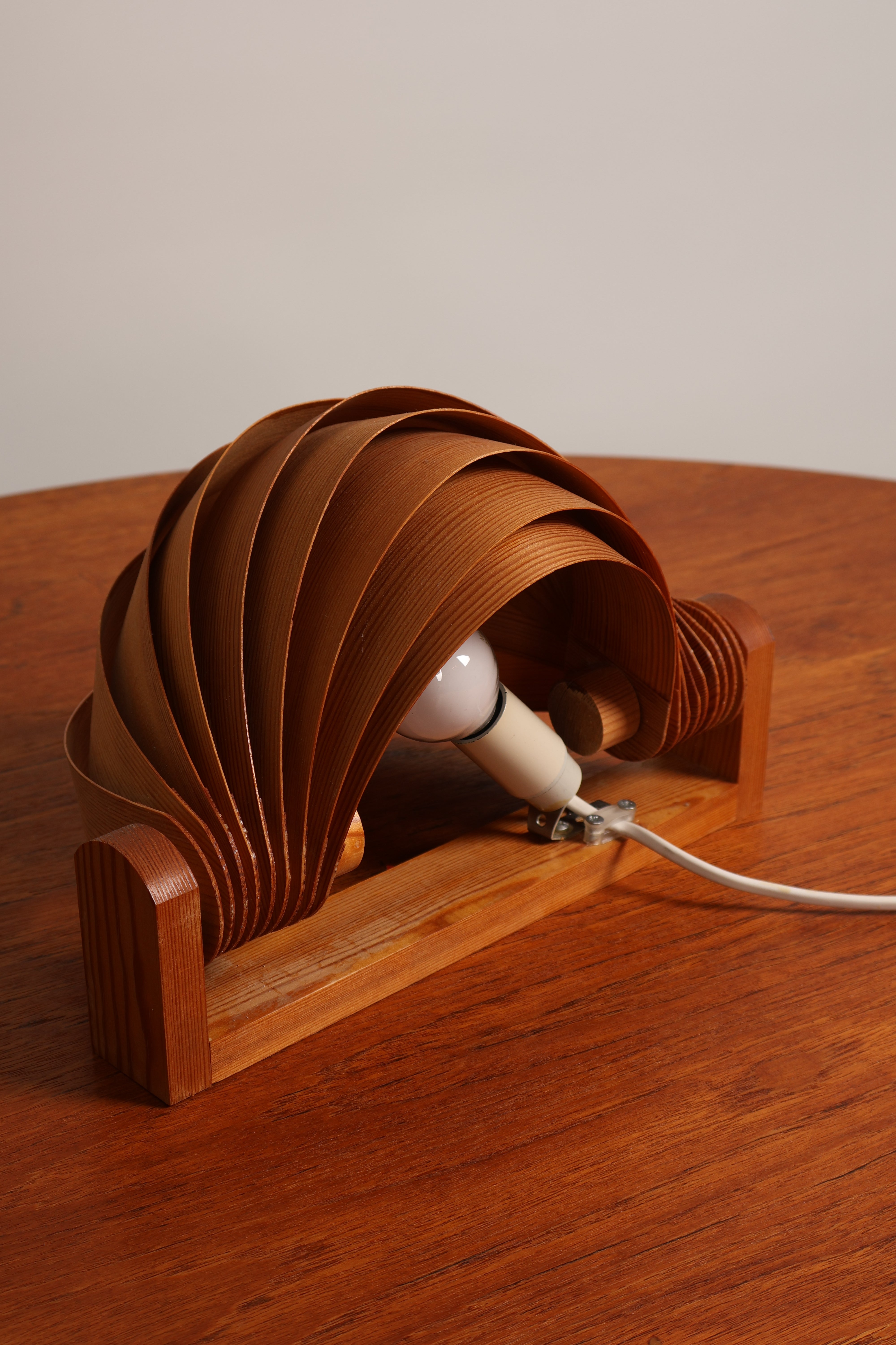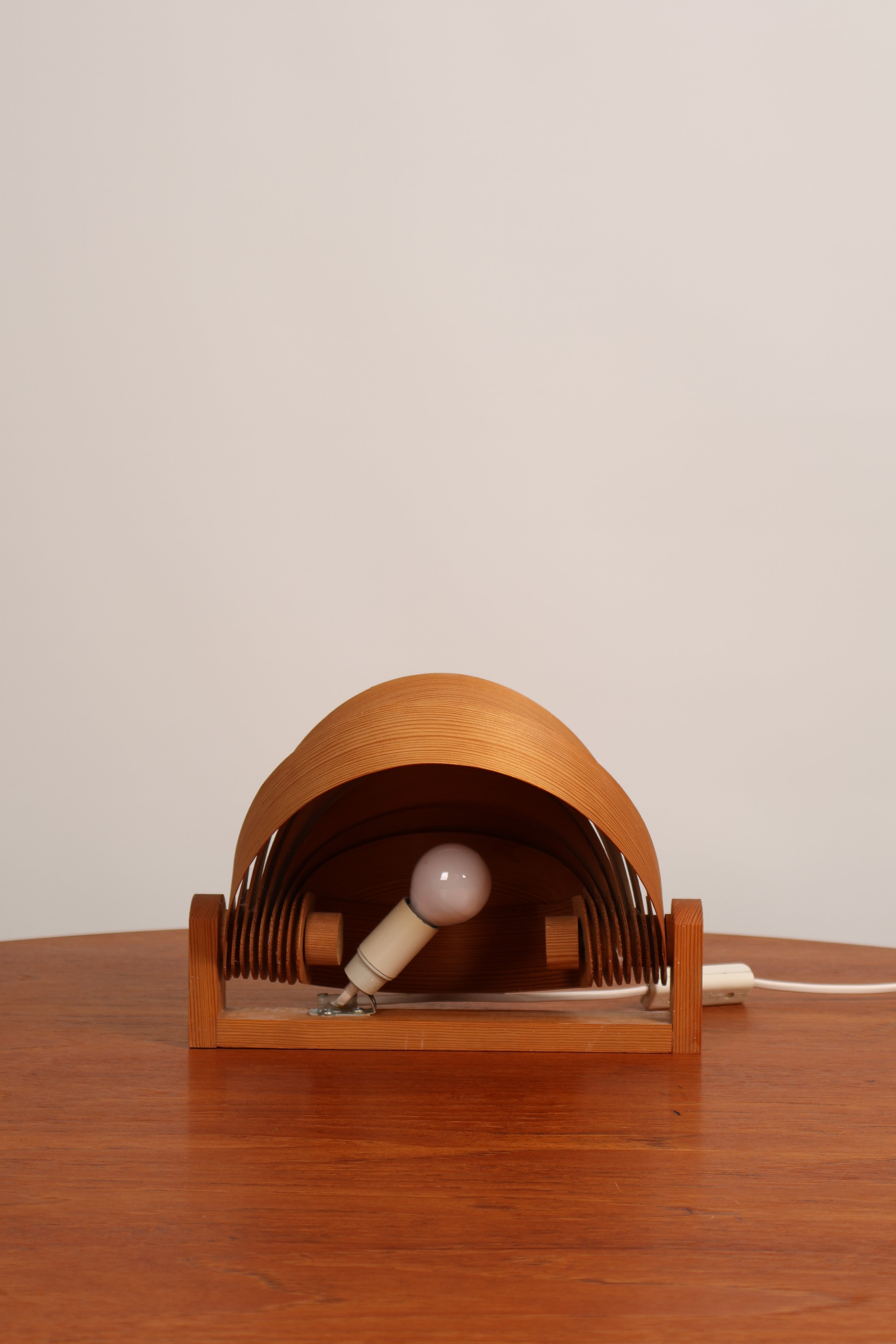 Wandlampe aus den 60er-Jahren von Hans Agne Jakobsson. Hergestellt in Schweden. Gefertigt aus Kiefer. Höhe 21 cm, Breite 28 cm, Tiefe 5 cm.