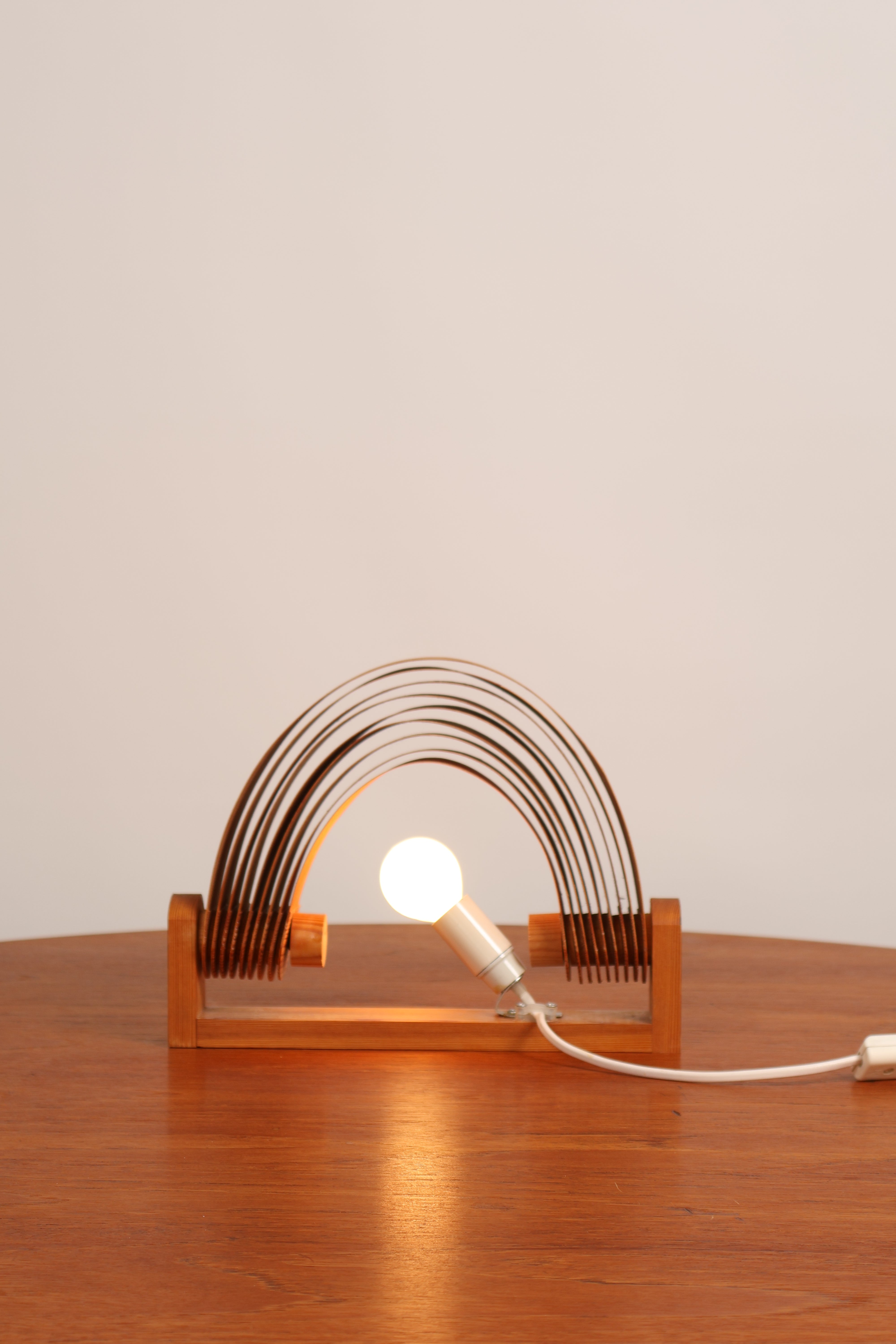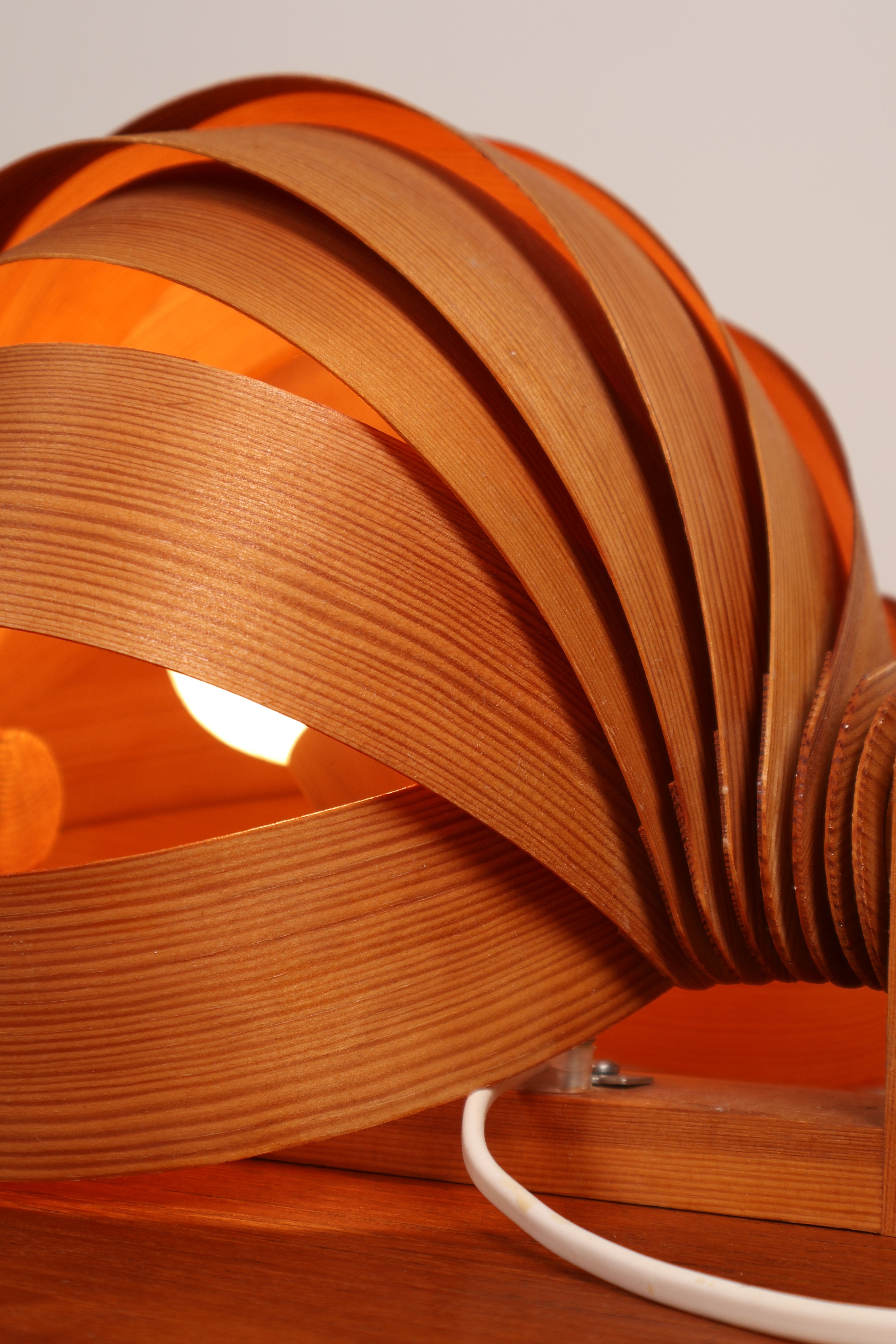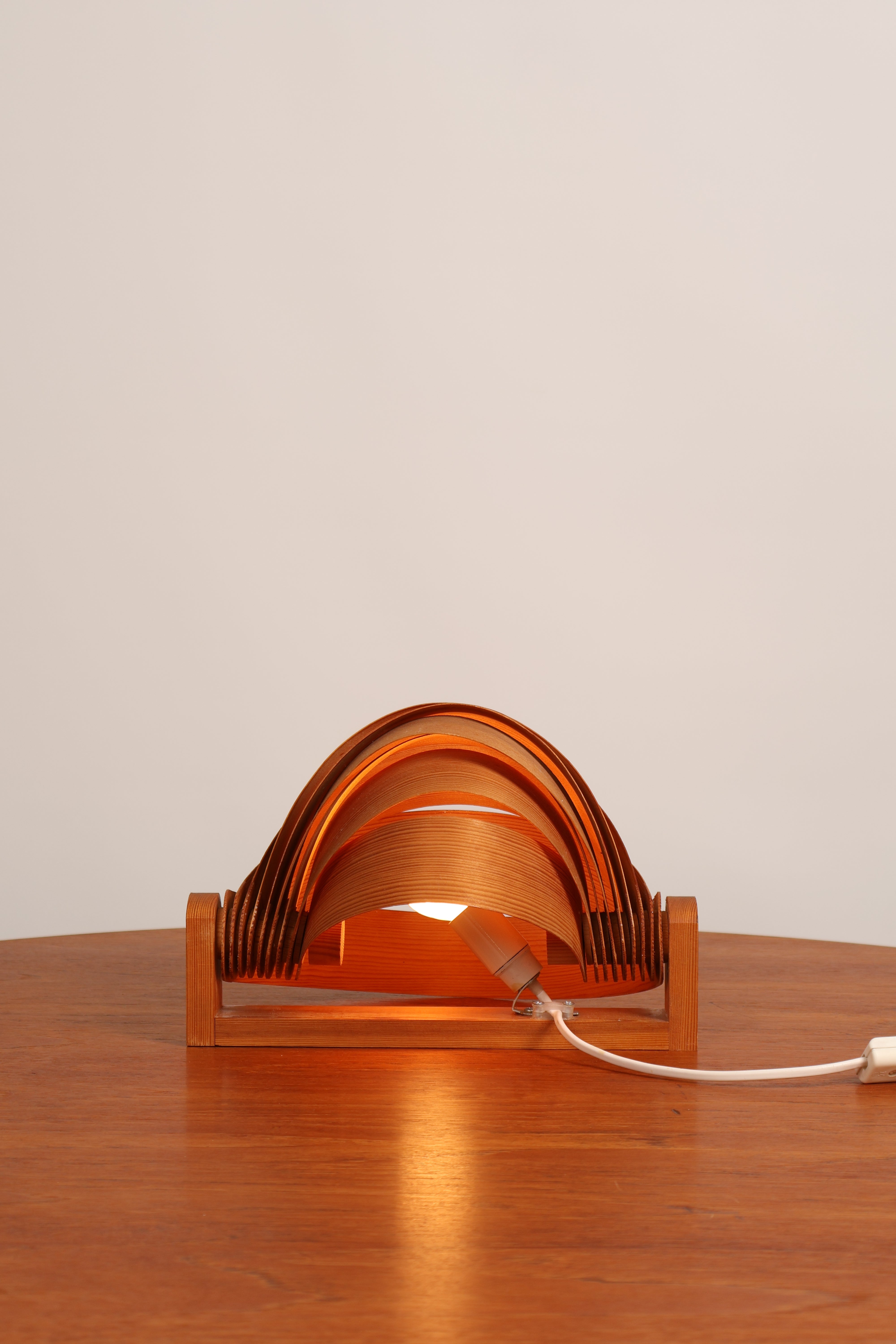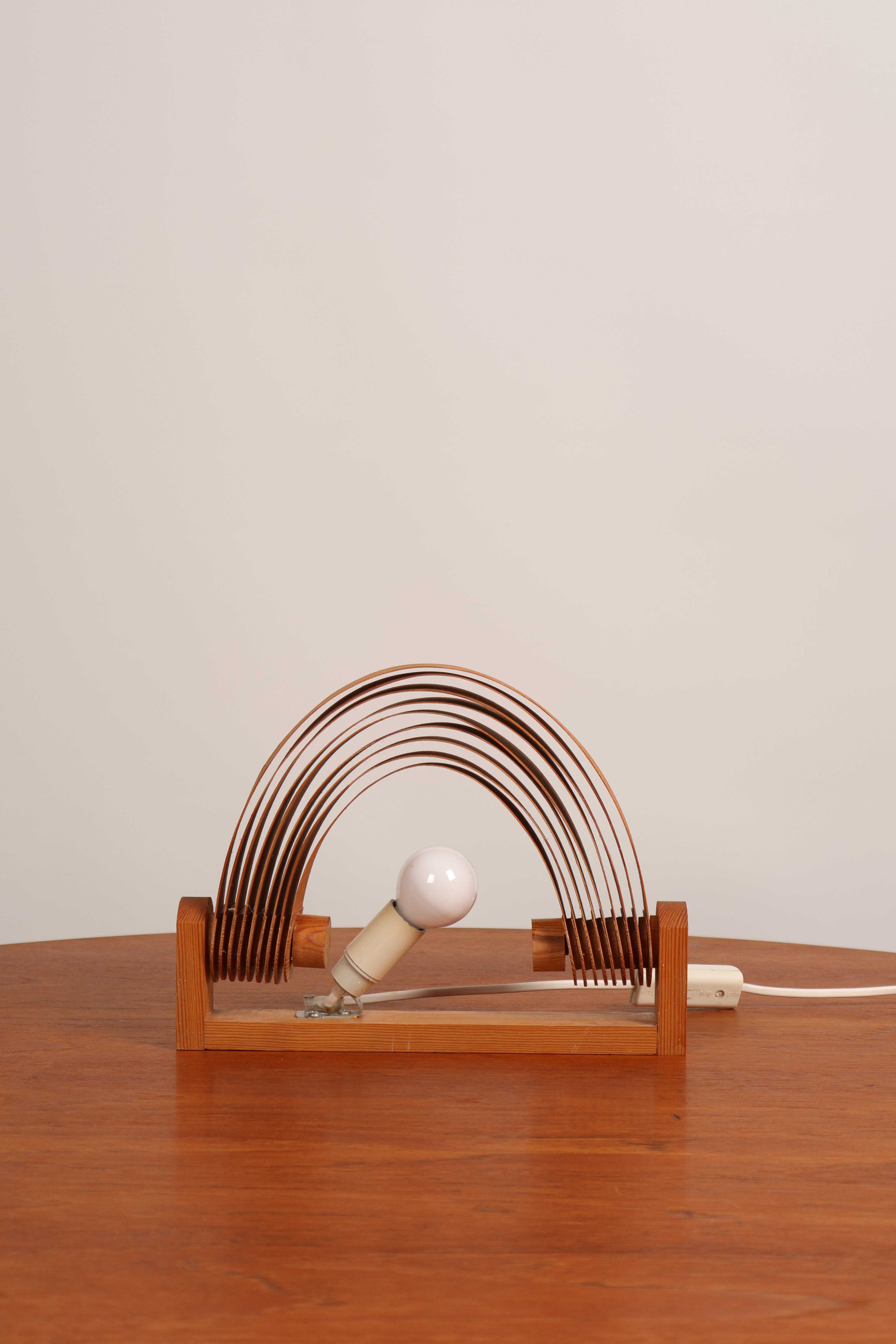 Wandlampe aus den 60er-Jahren von Hans Agne Jakobsson. Hergestellt in Schweden. Gefertigt aus Kiefer. Höhe 21 cm, Breite 28 cm, Tiefe 5 cm.